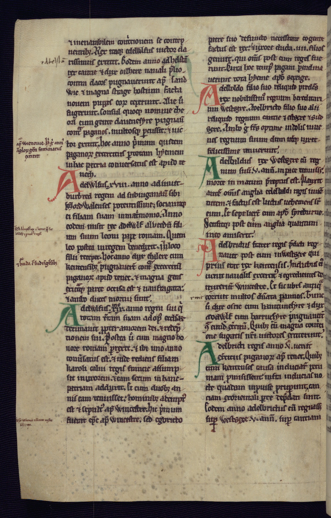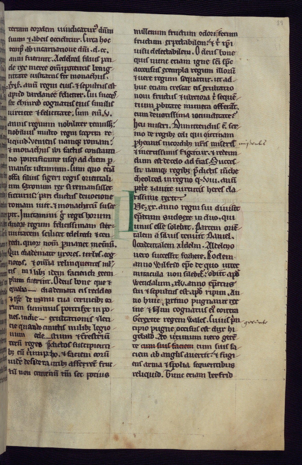 - Hand note: Pre-Gothic bookhand; lists of kings in margins of fols. 106v-107v by different hands in late anglicana script
