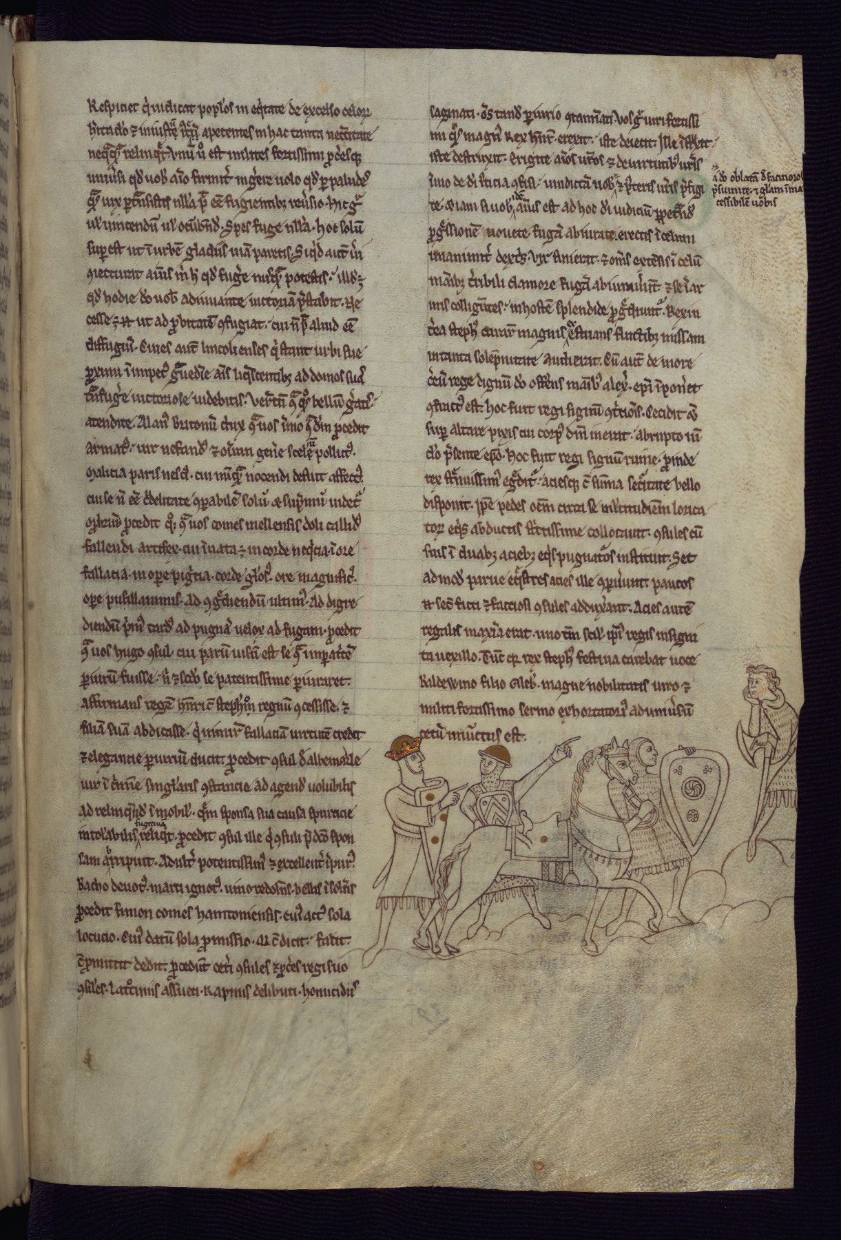 - Label: This depicts an event more thoroughly recorded in Henry of Huntingdon's History than elsewhere, in which King Stephen, before the Battle of Lincoln in 1141, asks Baldwin FitzGilbert to address the troops because his own voice was too weak.