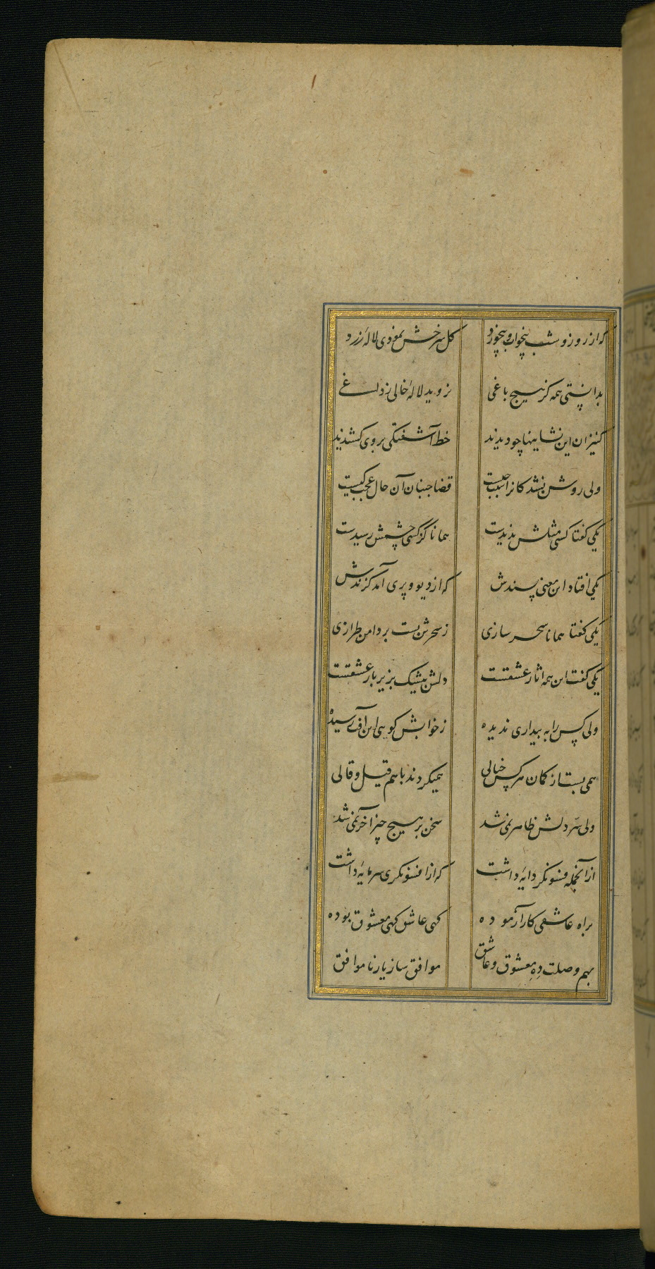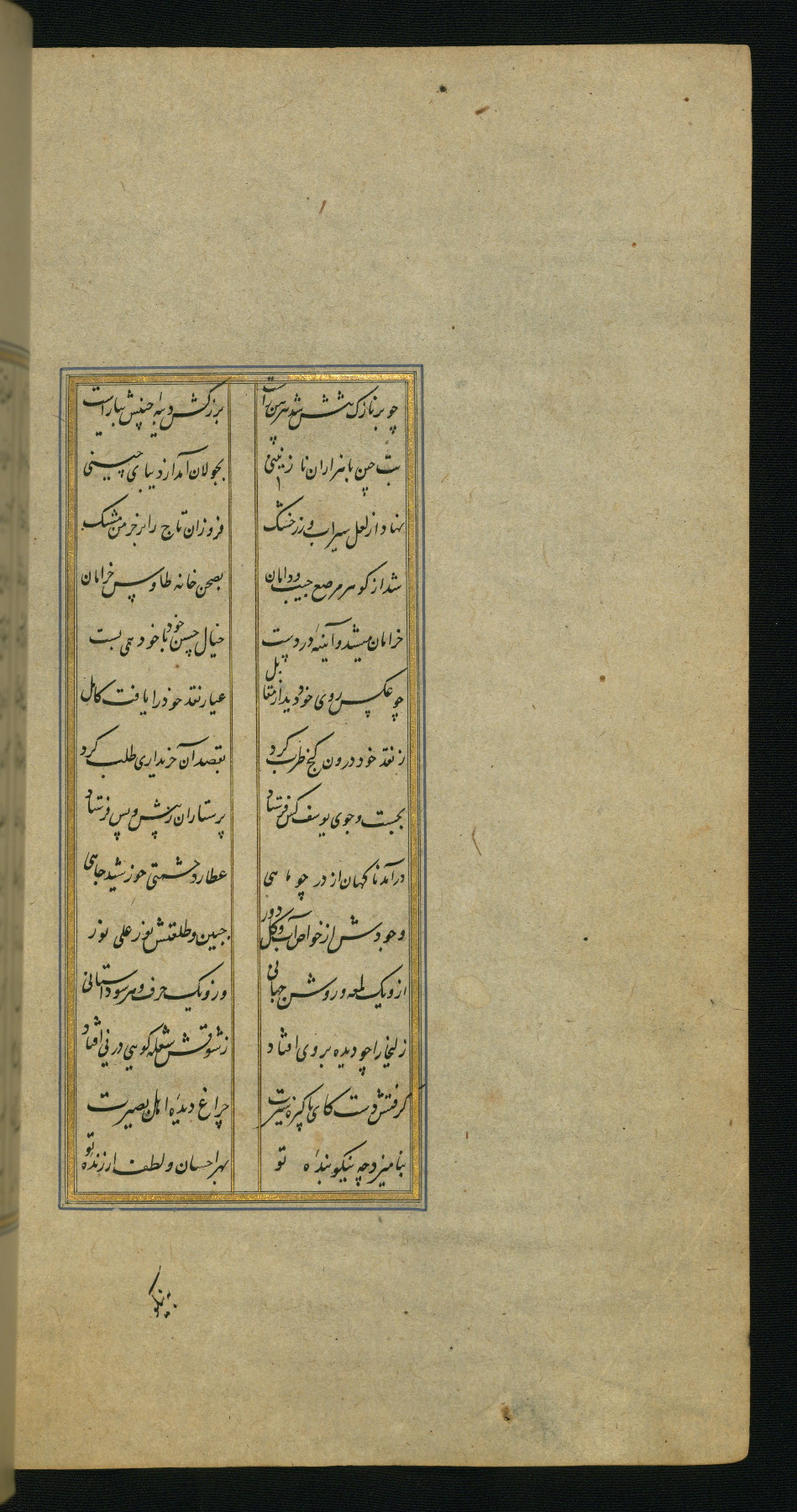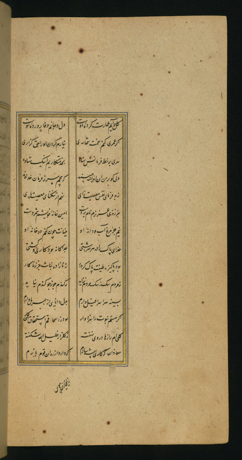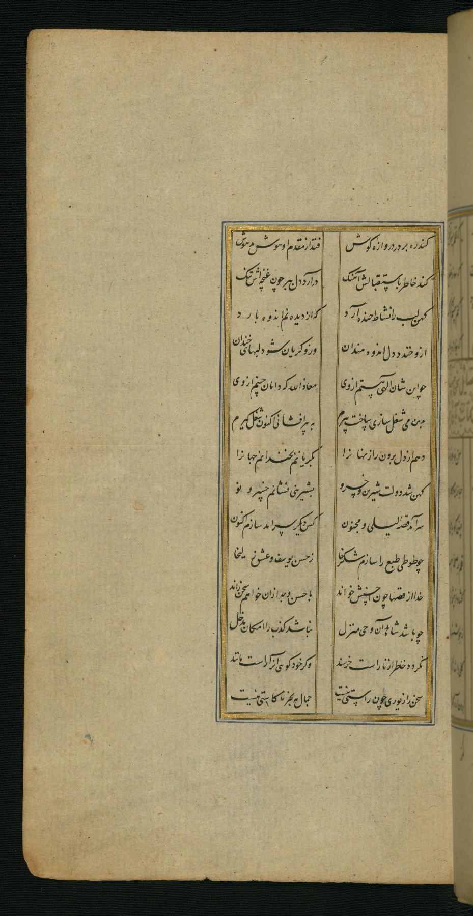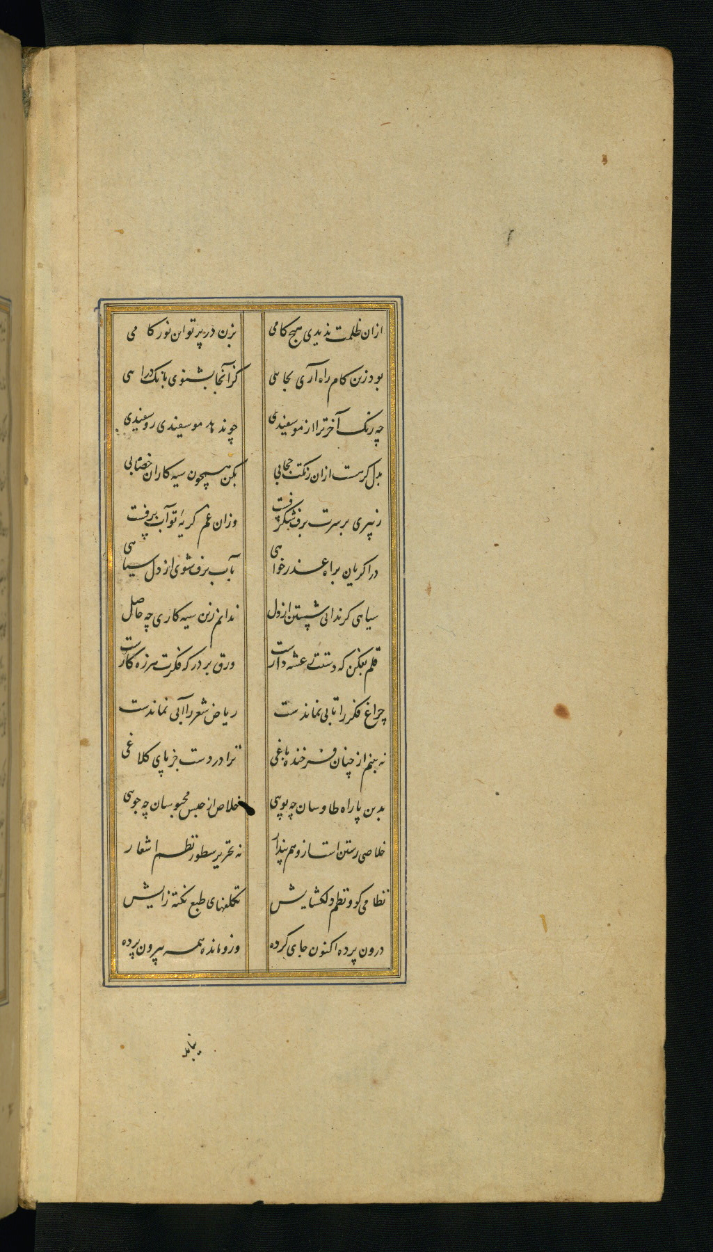 This is an illustrated and illuminated Safavid copy of Joseph (Yūsuf) and Zulaykhā by Nūr al-Dīn Jāmī (d. 898 AH / 1492 CE), executed in Iran in the early tenth century AH / sixteenth CE. The codex opens with a double-page illuminated incipit (fols. 1b-2a) containing the first verses of the work, the title, and the author's name. There are eight paintings illustrating the text. The binding is slightly later than the manuscript.