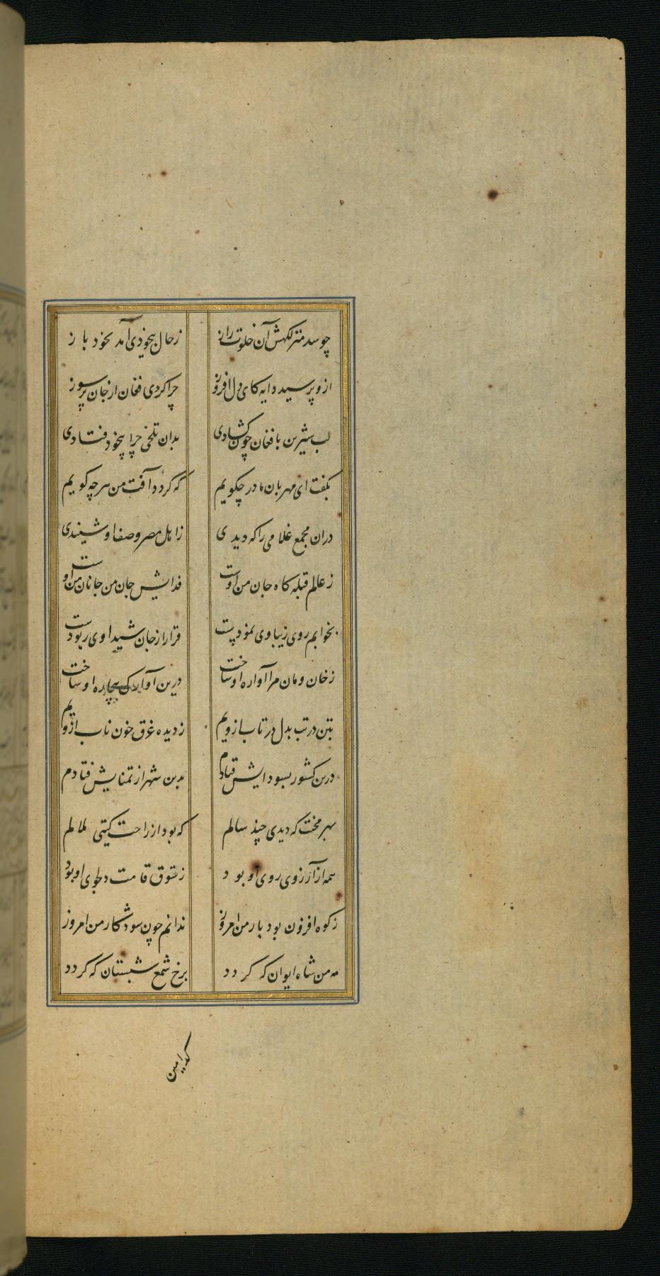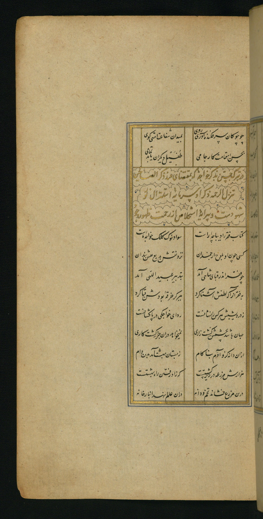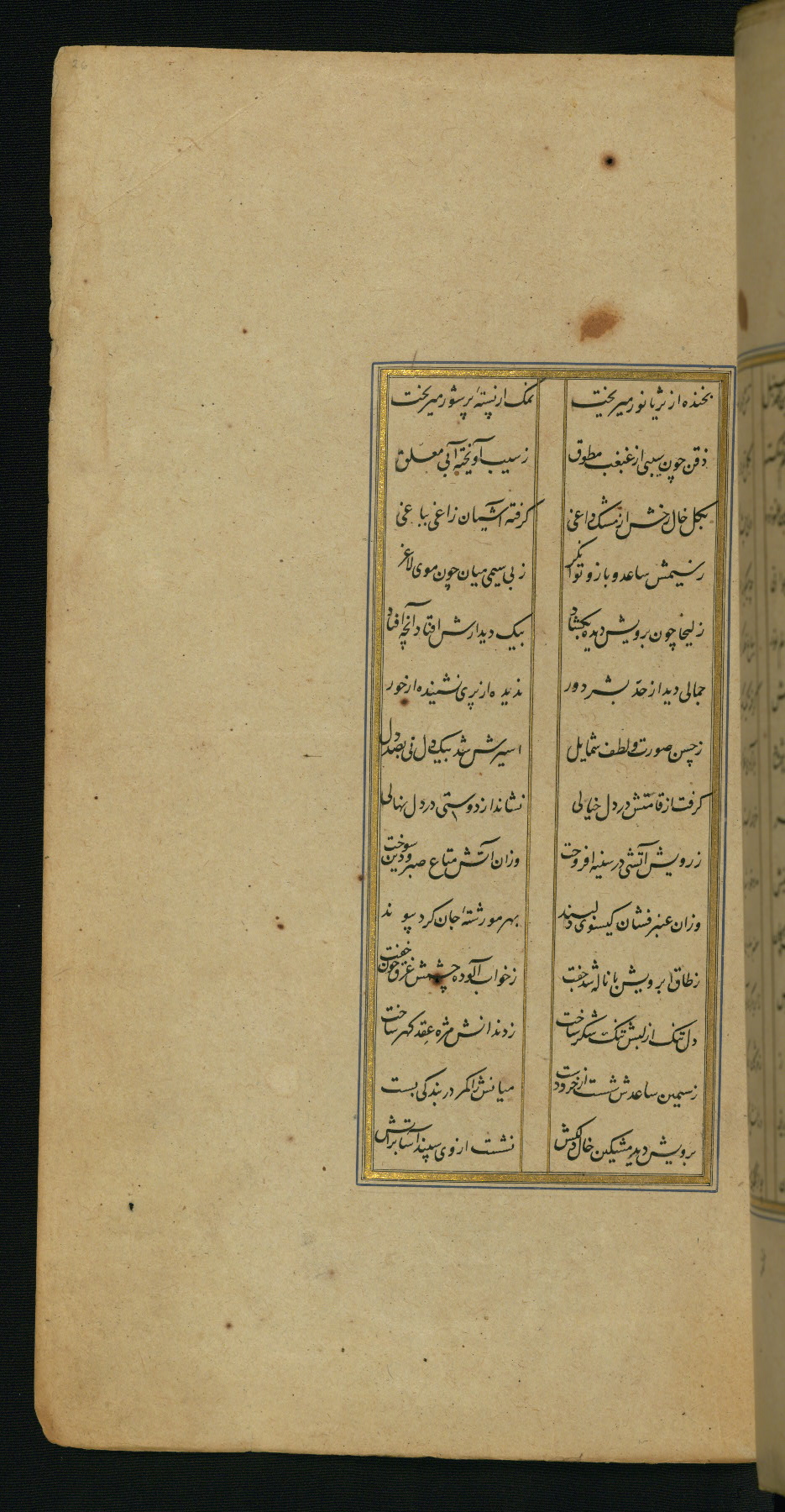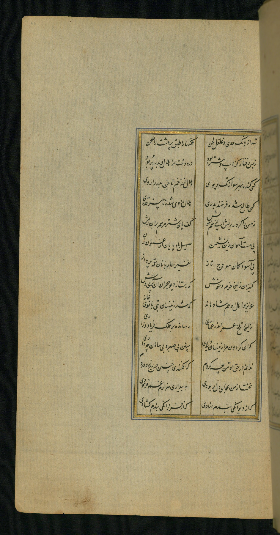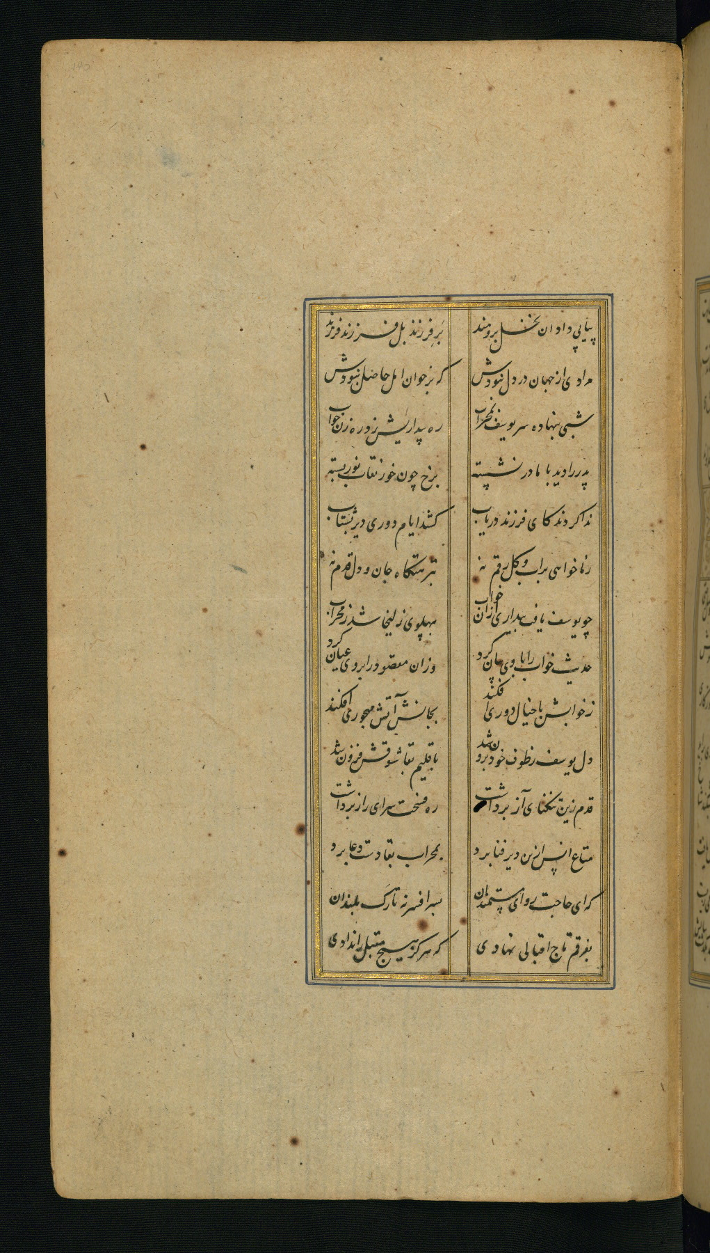 This is an illustrated and illuminated Safavid copy of Joseph (Yūsuf) and Zulaykhā by Nūr al-Dīn Jāmī (d. 898 AH / 1492 CE), executed in Iran in the early tenth century AH / sixteenth CE. The codex opens with a double-page illuminated incipit (fols. 1b-2a) containing the first verses of the work, the title, and the author's name. There are eight paintings illustrating the text. The binding is slightly later than the manuscript.