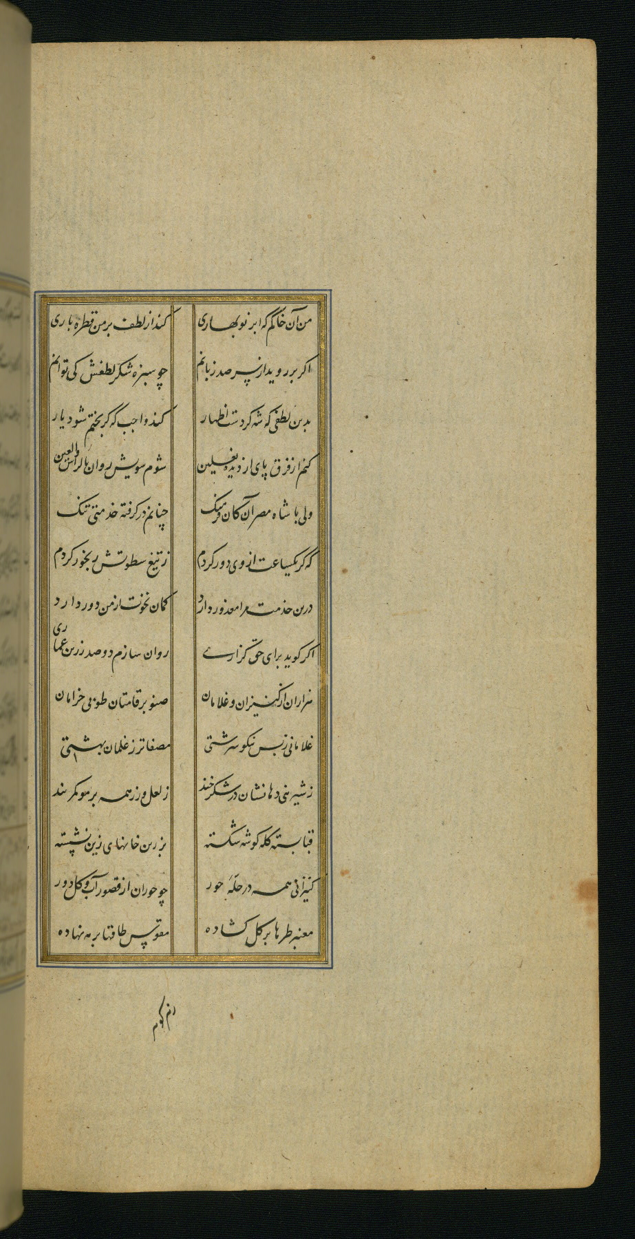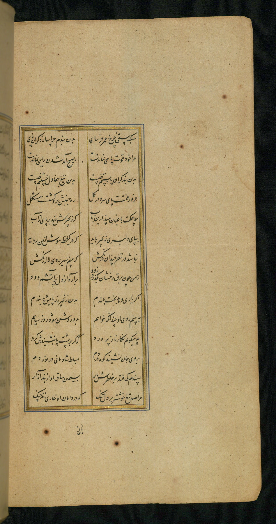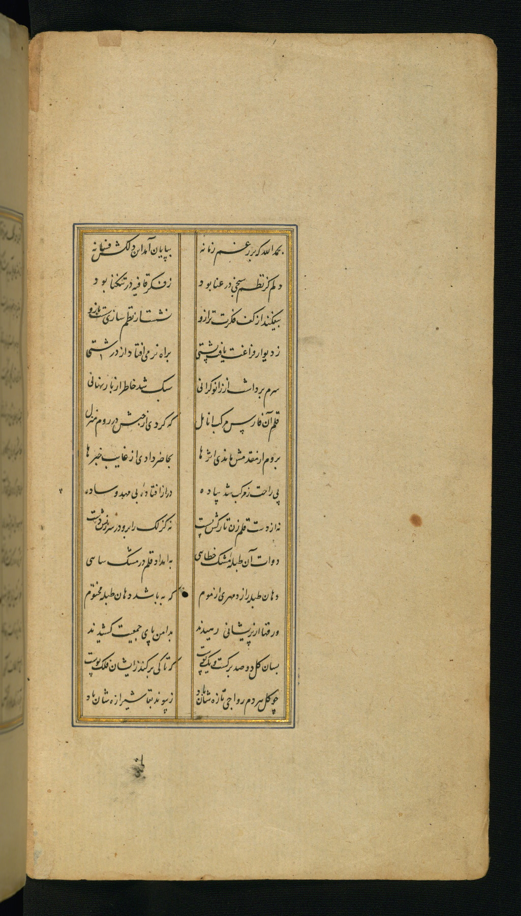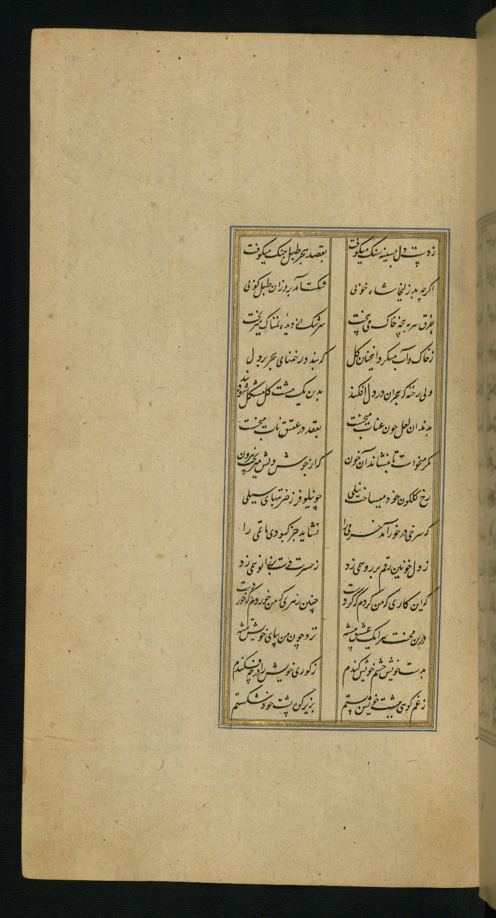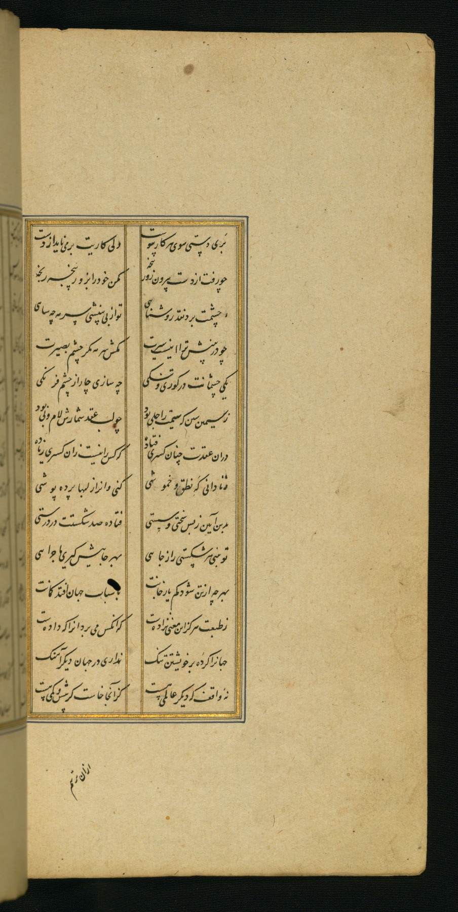 This is an illustrated and illuminated Safavid copy of Joseph (Yūsuf) and Zulaykhā by Nūr al-Dīn Jāmī (d. 898 AH / 1492 CE), executed in Iran in the early tenth century AH / sixteenth CE. The codex opens with a double-page illuminated incipit (fols. 1b-2a) containing the first verses of the work, the title, and the author's name. There are eight paintings illustrating the text. The binding is slightly later than the manuscript.