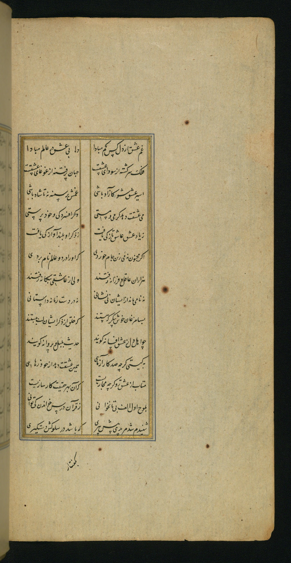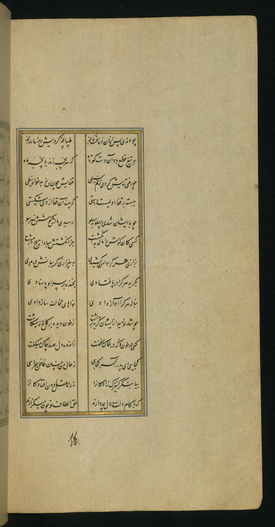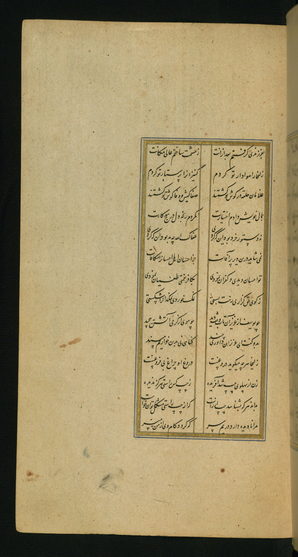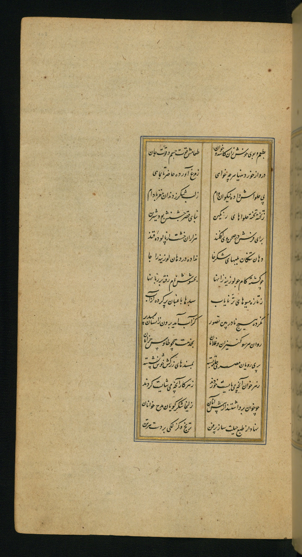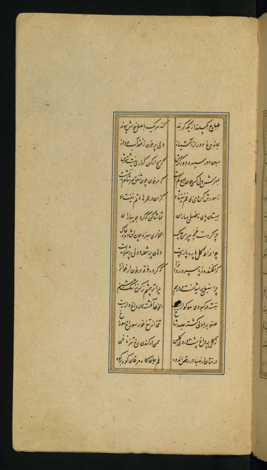 This is an illustrated and illuminated Safavid copy of Joseph (Yūsuf) and Zulaykhā by Nūr al-Dīn Jāmī (d. 898 AH / 1492 CE), executed in Iran in the early tenth century AH / sixteenth CE. The codex opens with a double-page illuminated incipit (fols. 1b-2a) containing the first verses of the work, the title, and the author's name. There are eight paintings illustrating the text. The binding is slightly later than the manuscript.