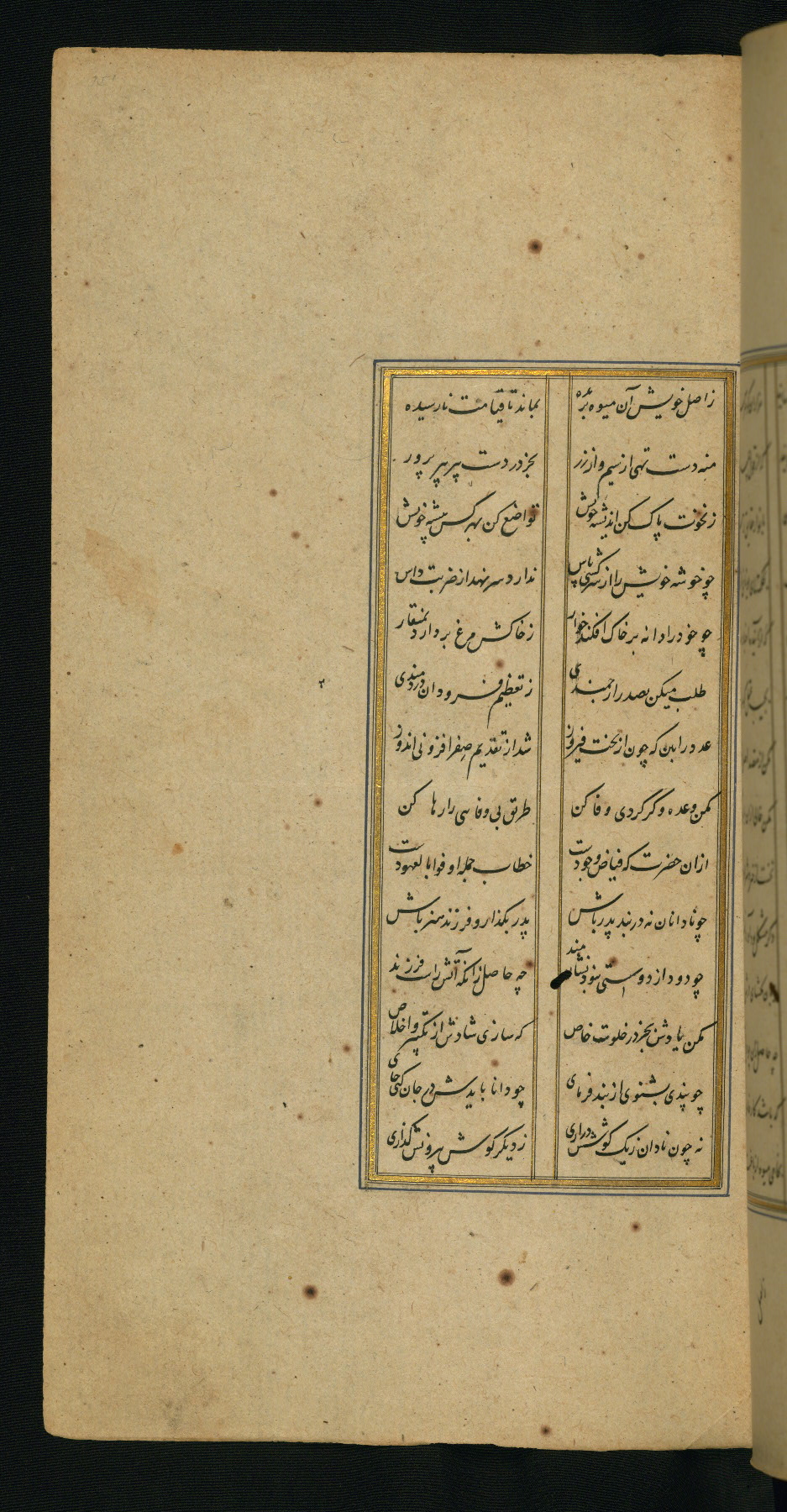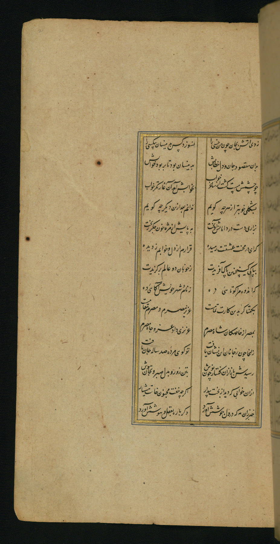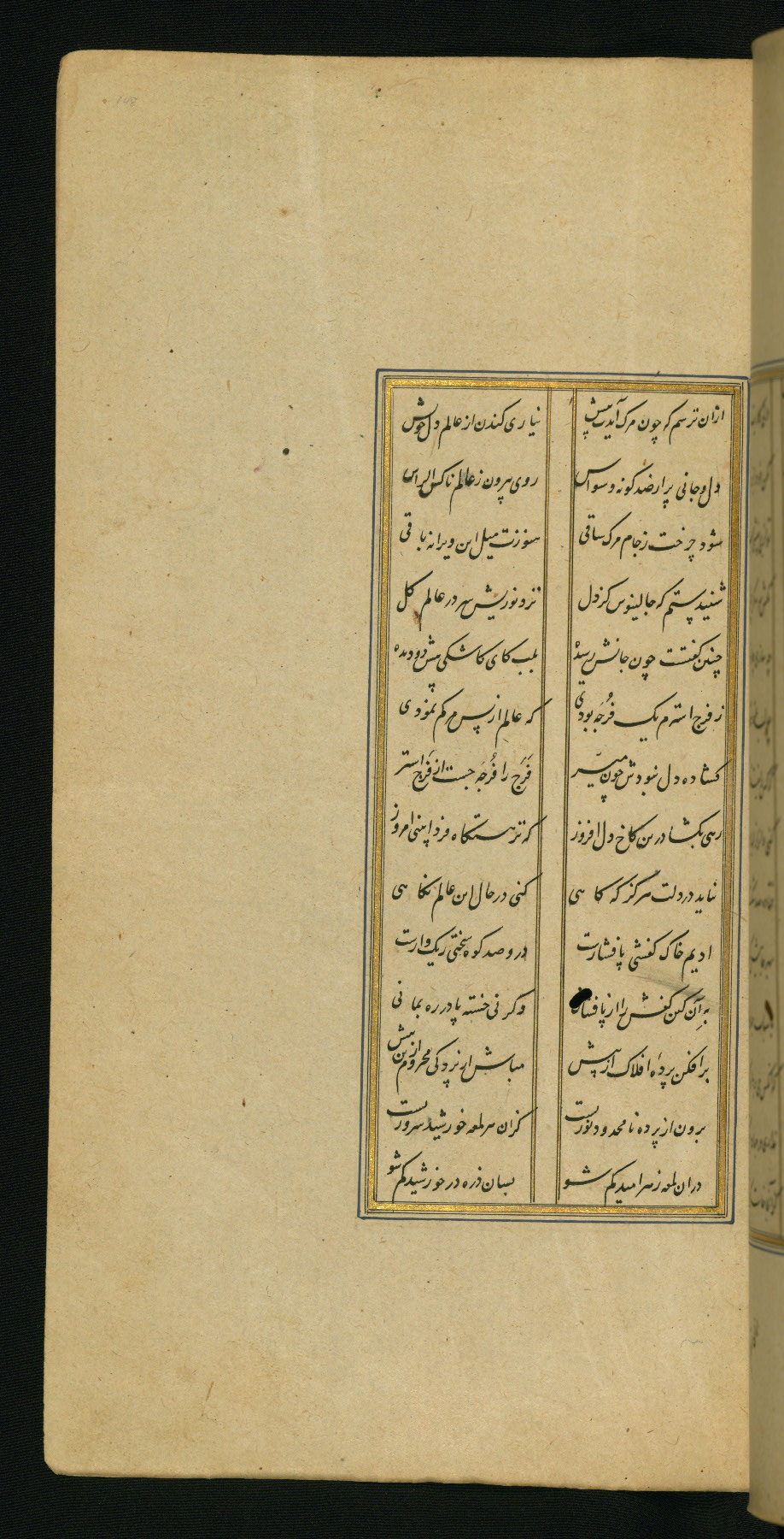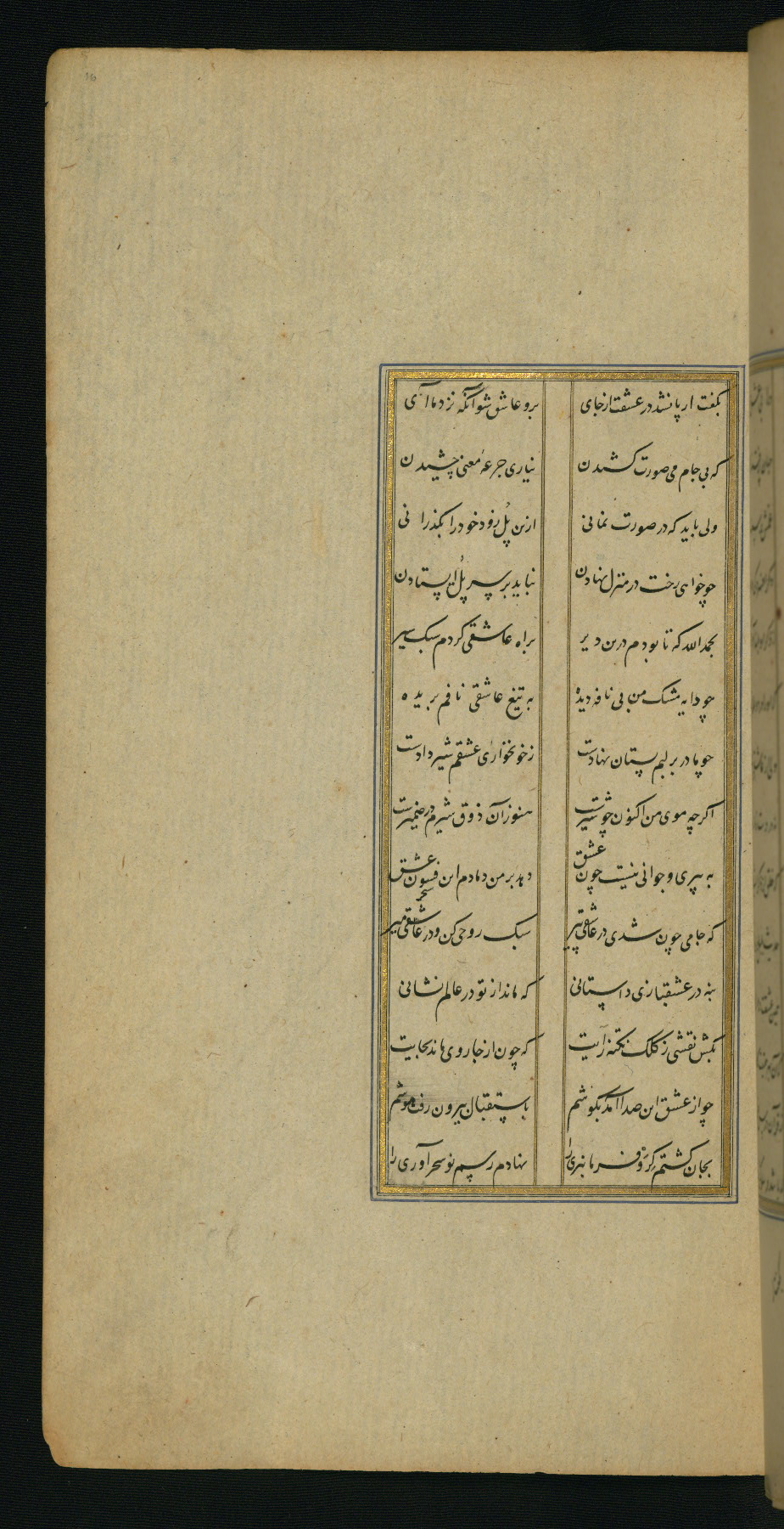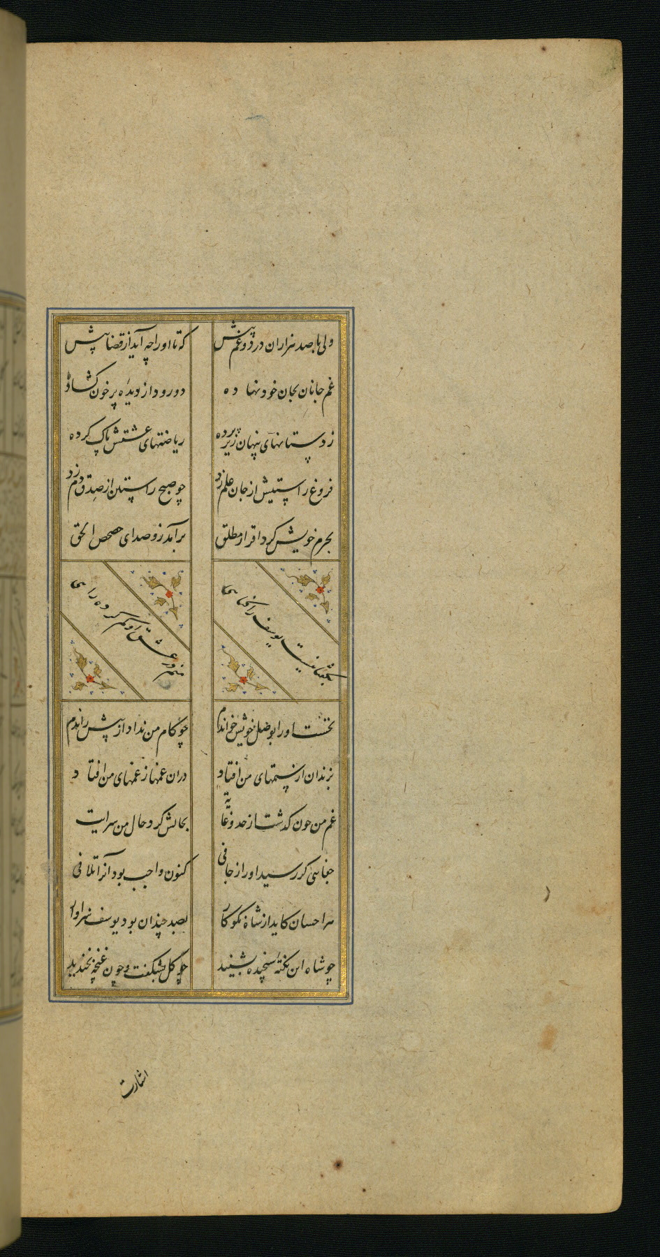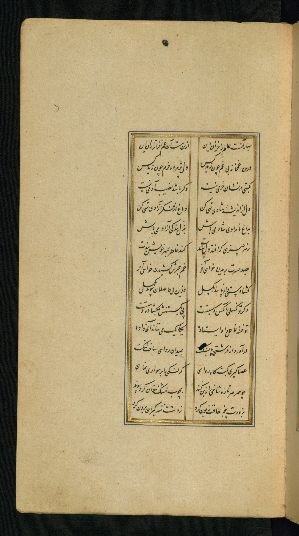 This is an illustrated and illuminated Safavid copy of Joseph (Yūsuf) and Zulaykhā by Nūr al-Dīn Jāmī (d. 898 AH / 1492 CE), executed in Iran in the early tenth century AH / sixteenth CE. The codex opens with a double-page illuminated incipit (fols. 1b-2a) containing the first verses of the work, the title, and the author's name. There are eight paintings illustrating the text. The binding is slightly later than the manuscript.