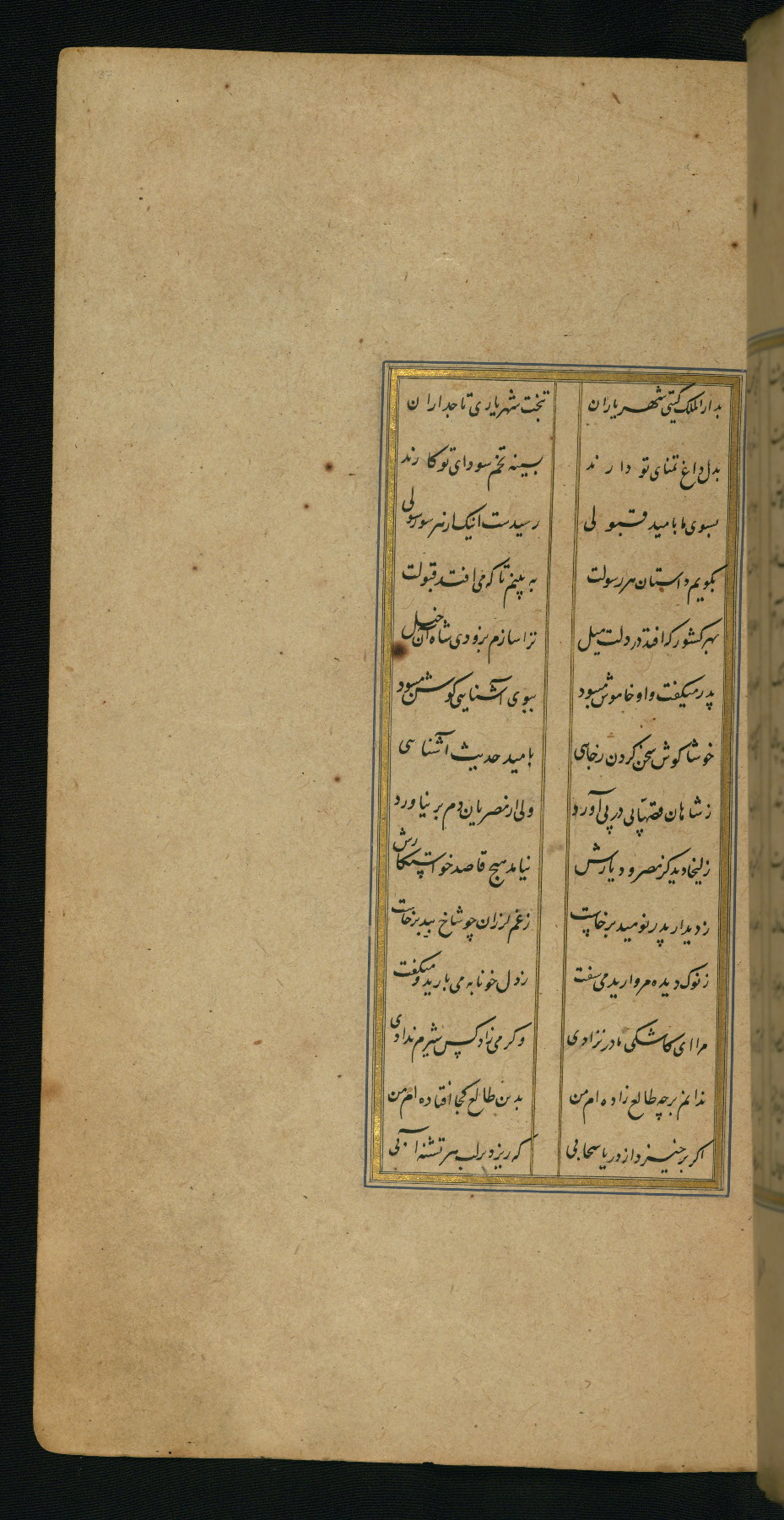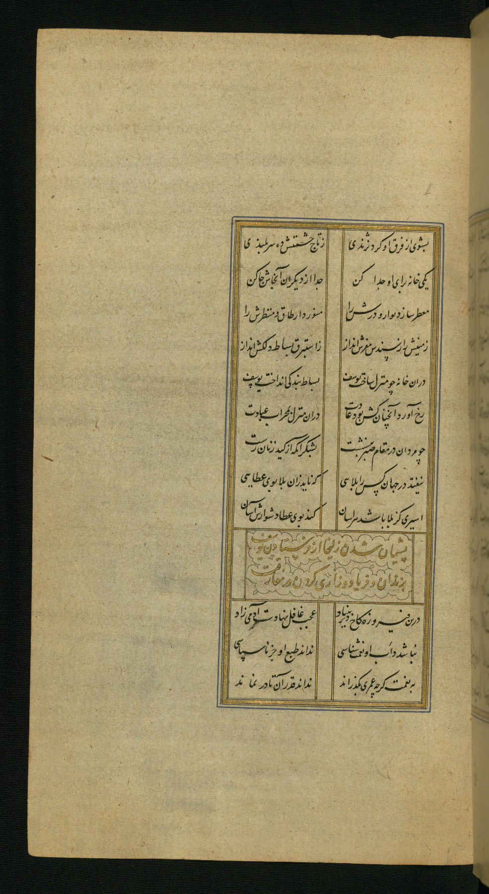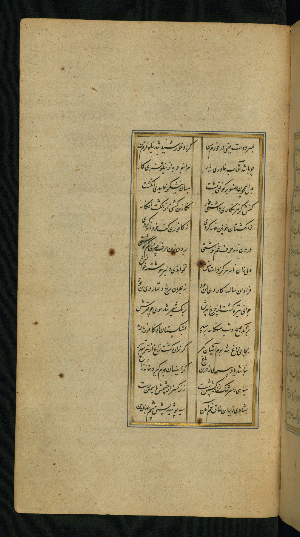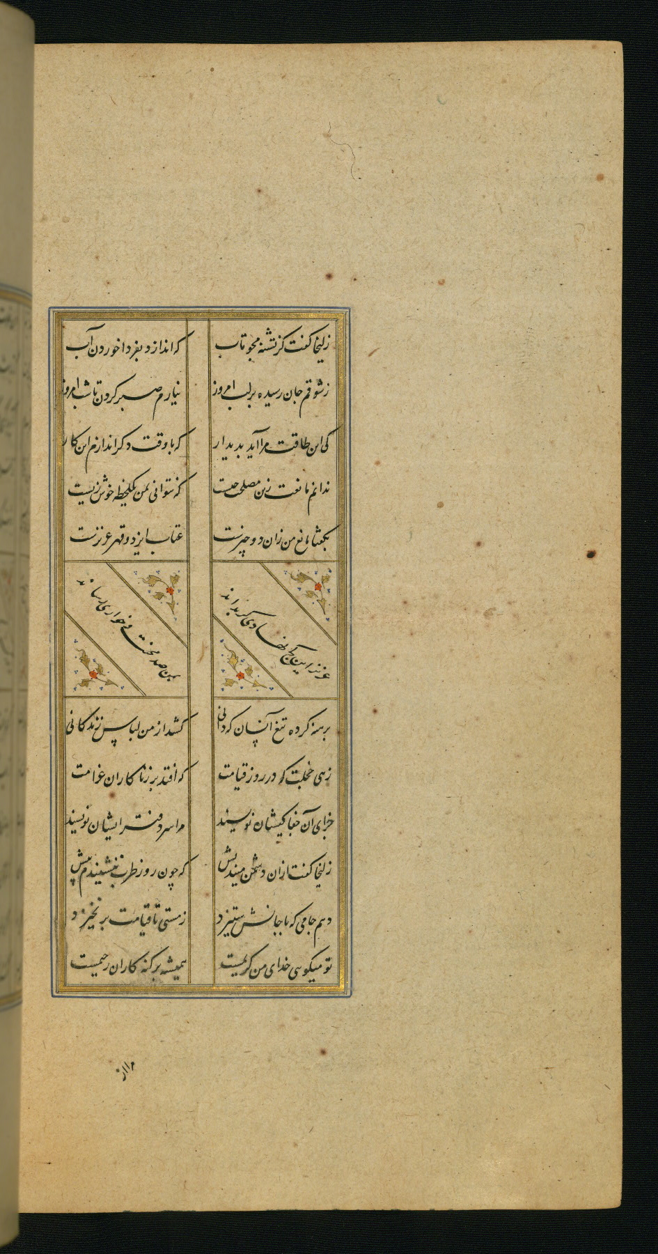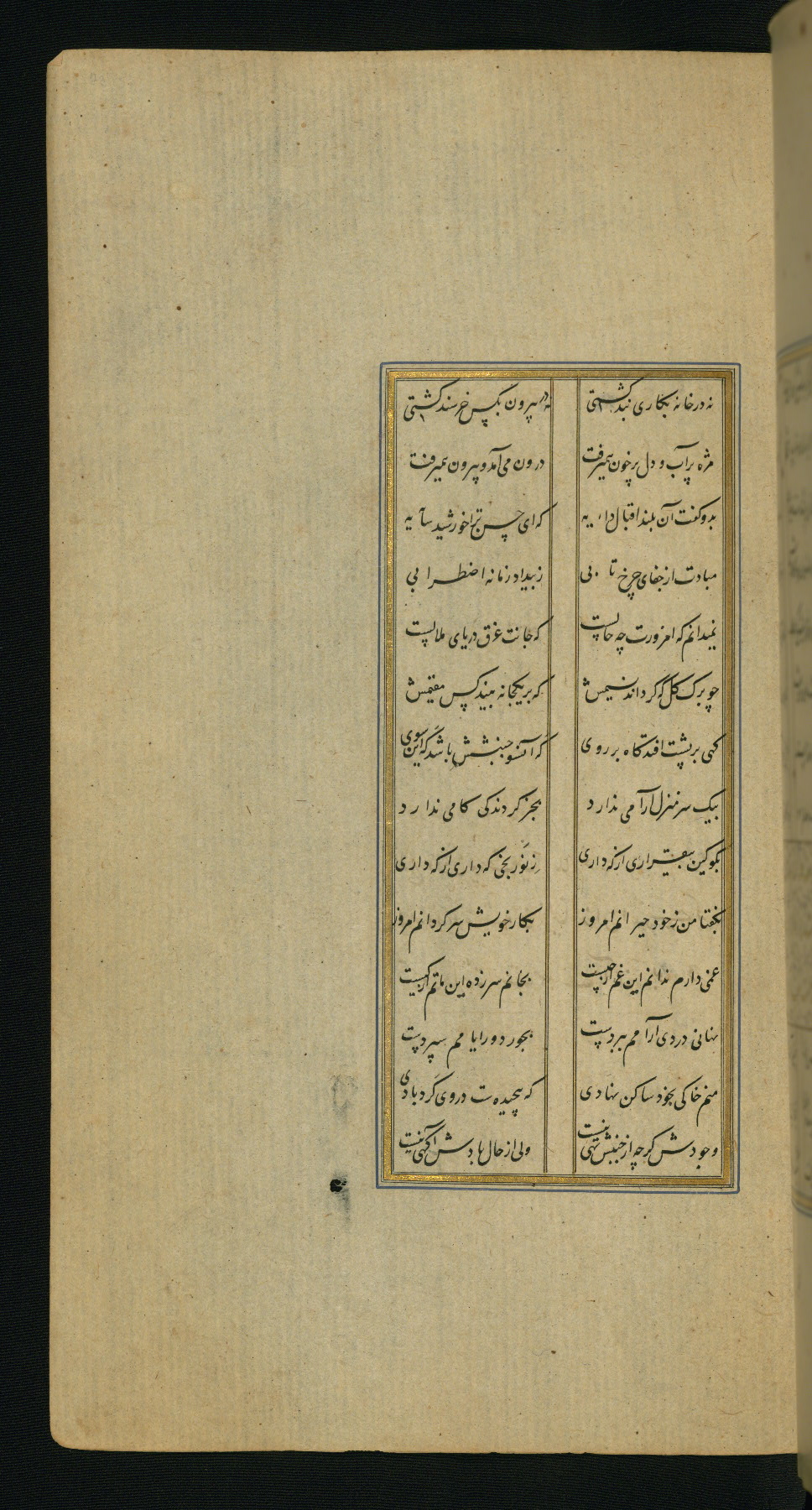 This is an illustrated and illuminated Safavid copy of Joseph (Yūsuf) and Zulaykhā by Nūr al-Dīn Jāmī (d. 898 AH / 1492 CE), executed in Iran in the early tenth century AH / sixteenth CE. The codex opens with a double-page illuminated incipit (fols. 1b-2a) containing the first verses of the work, the title, and the author's name. There are eight paintings illustrating the text. The binding is slightly later than the manuscript.