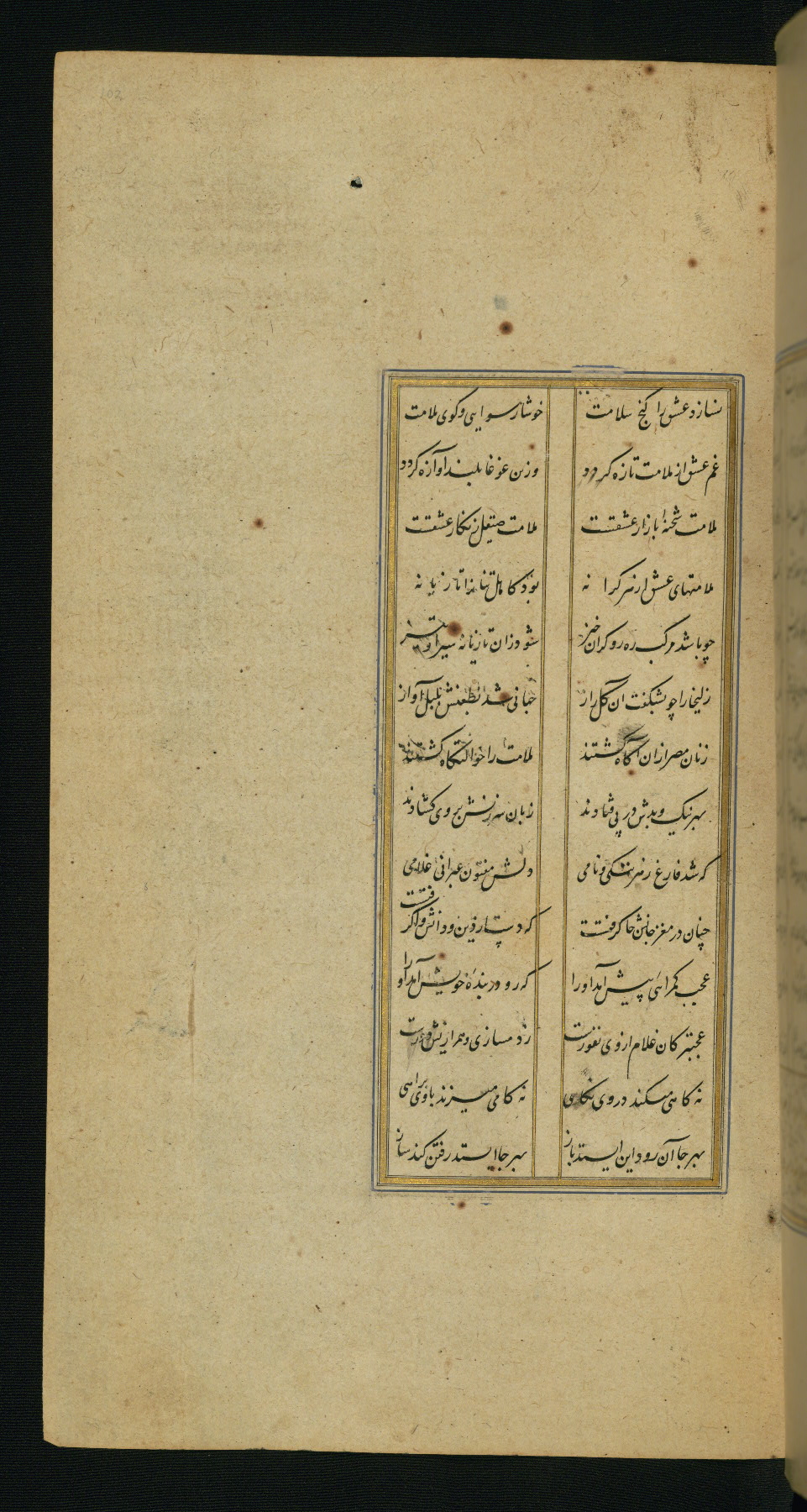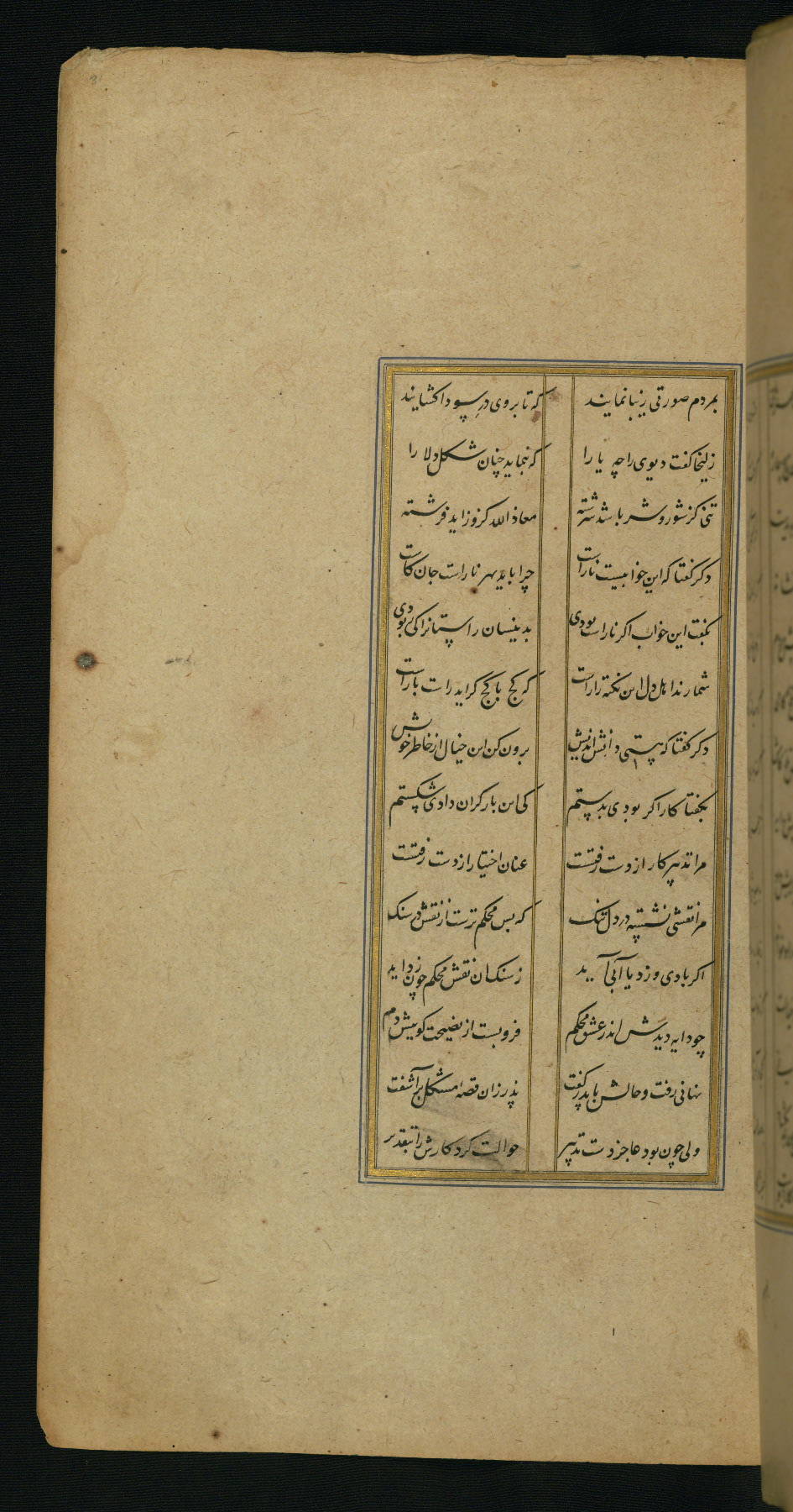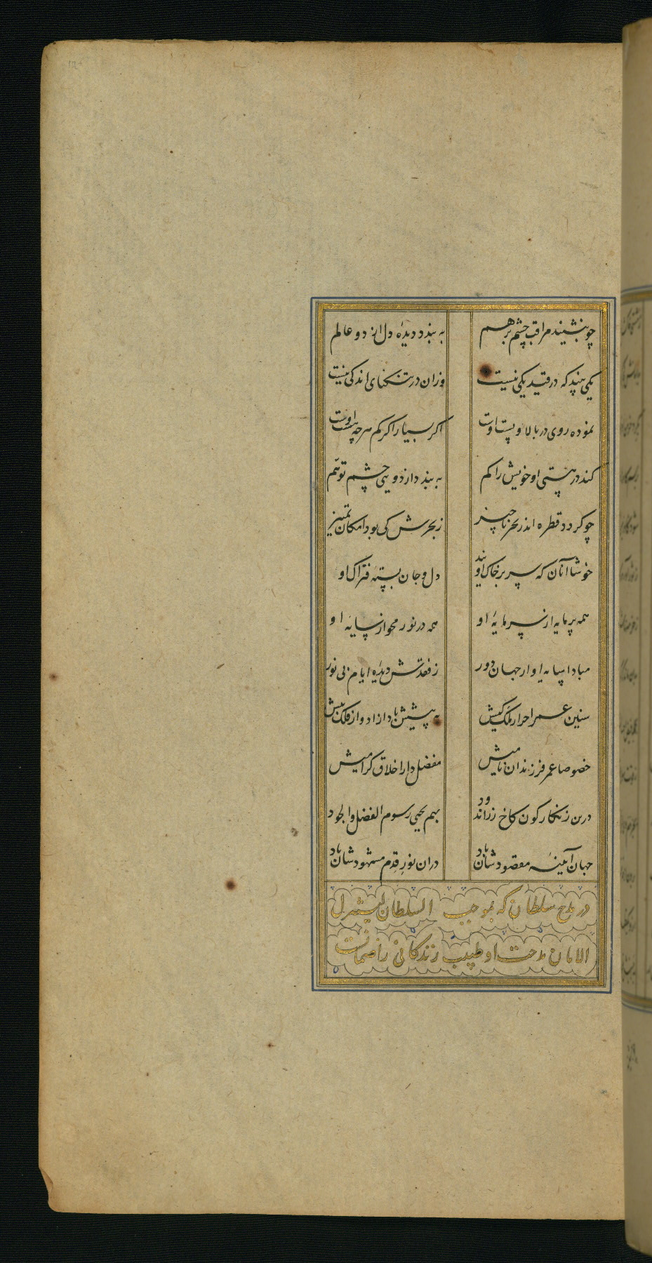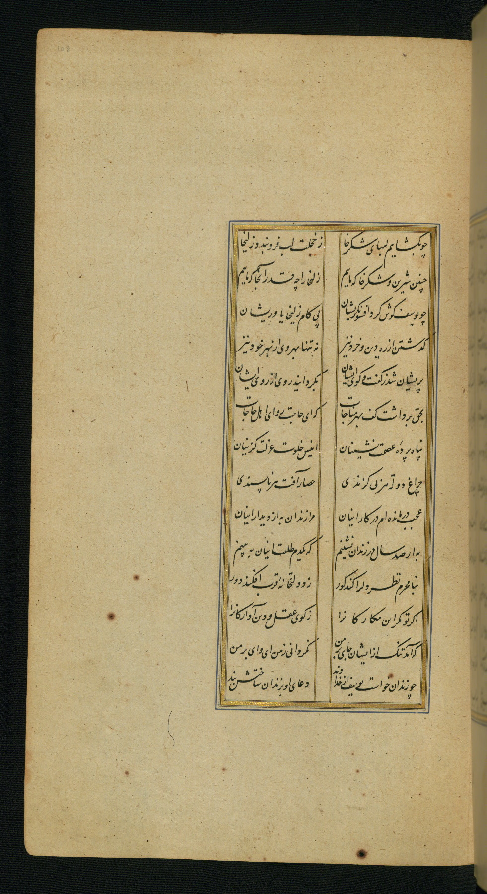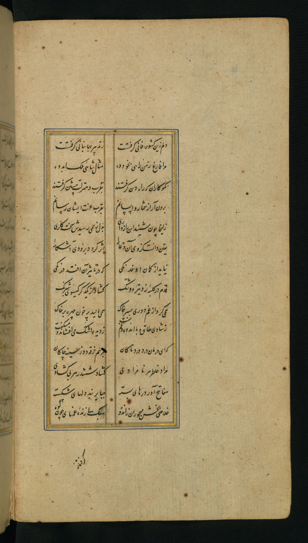 This is an illustrated and illuminated Safavid copy of Joseph (Yūsuf) and Zulaykhā by Nūr al-Dīn Jāmī (d. 898 AH / 1492 CE), executed in Iran in the early tenth century AH / sixteenth CE. The codex opens with a double-page illuminated incipit (fols. 1b-2a) containing the first verses of the work, the title, and the author's name. There are eight paintings illustrating the text. The binding is slightly later than the manuscript.