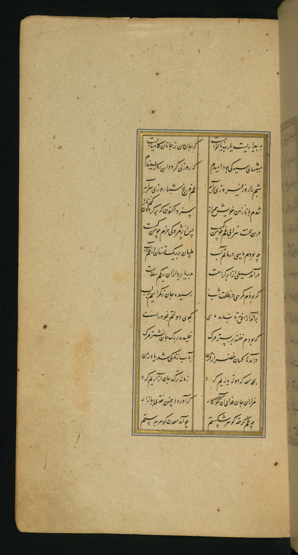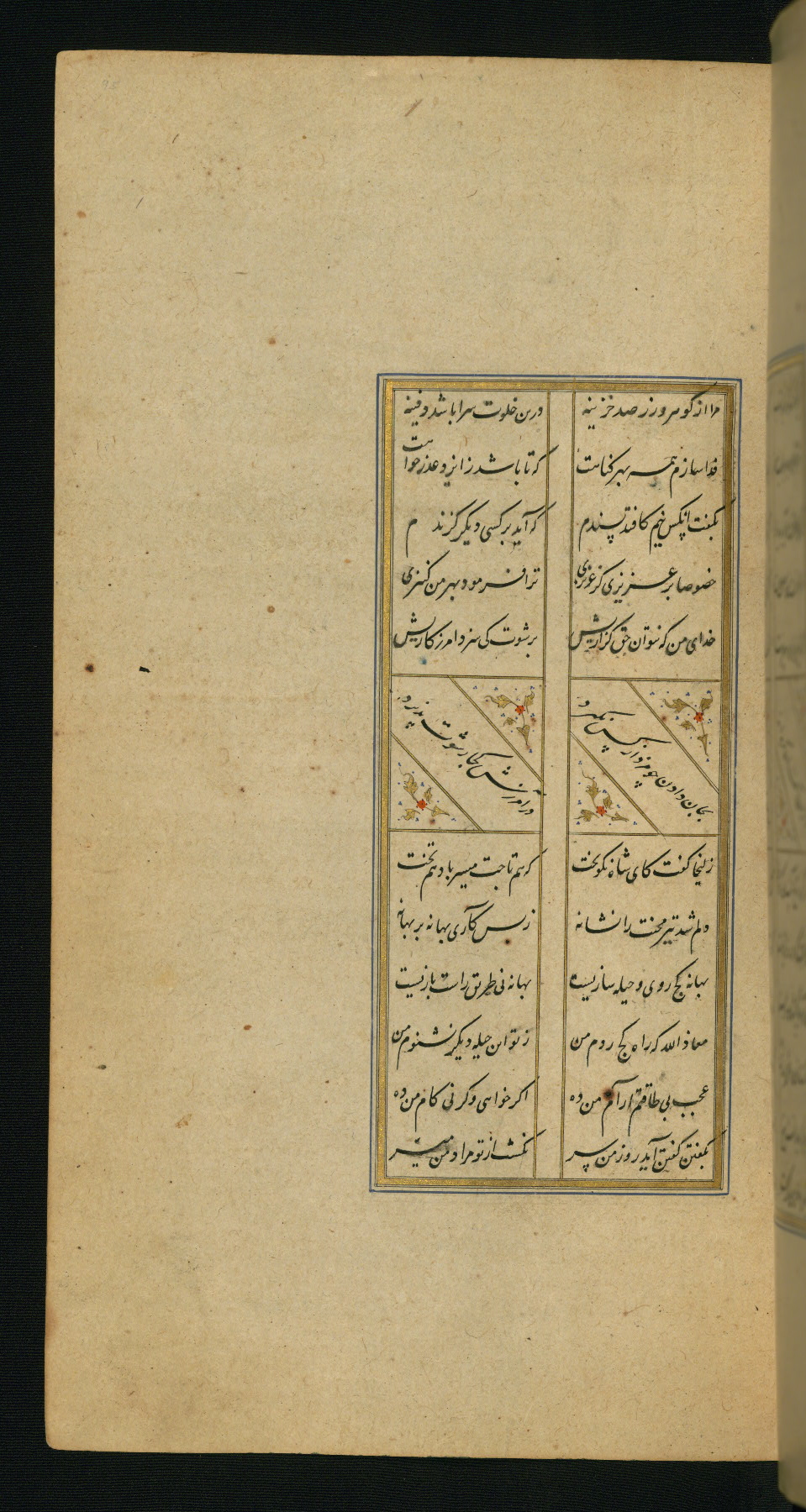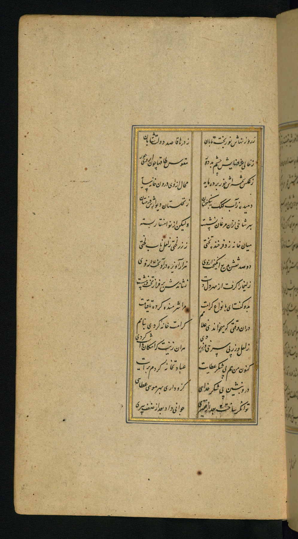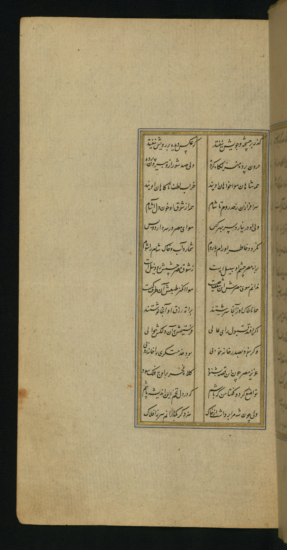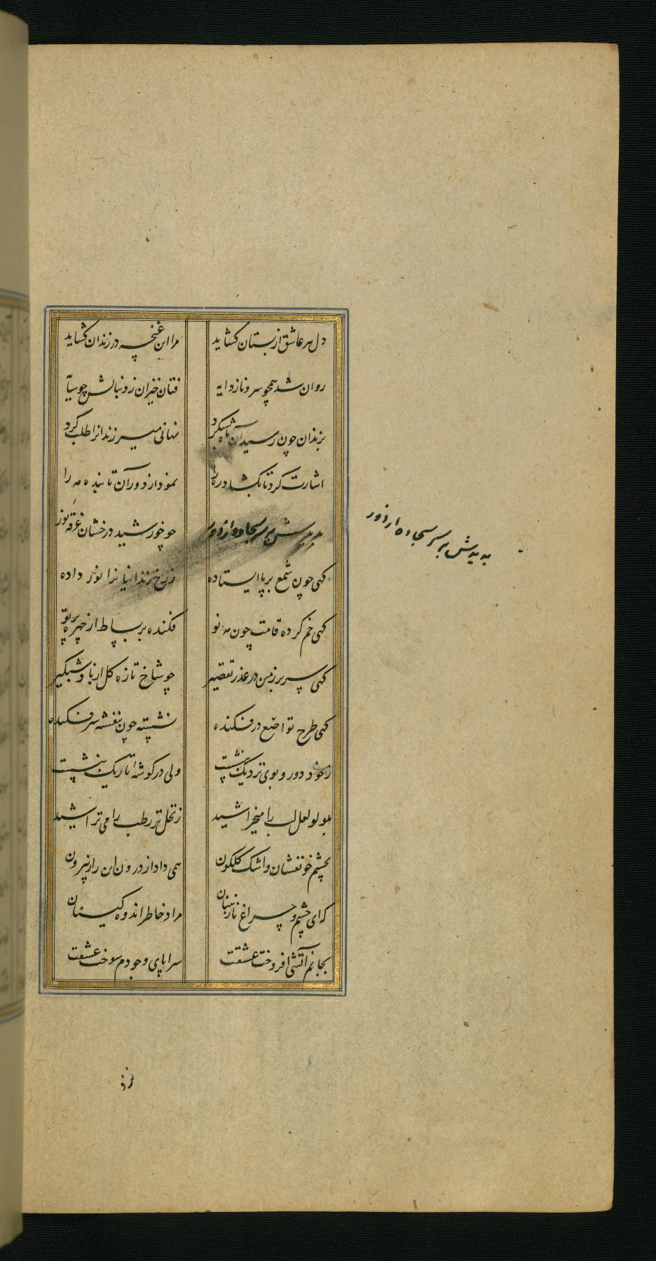This is an illustrated and illuminated Safavid copy of Joseph (Yūsuf) and Zulaykhā by Nūr al-Dīn Jāmī (d. 898 AH / 1492 CE), executed in Iran in the early tenth century AH / sixteenth CE. The codex opens with a double-page illuminated incipit (fols. 1b-2a) containing the first verses of the work, the title, and the author's name. There are eight paintings illustrating the text. The binding is slightly later than the manuscript.