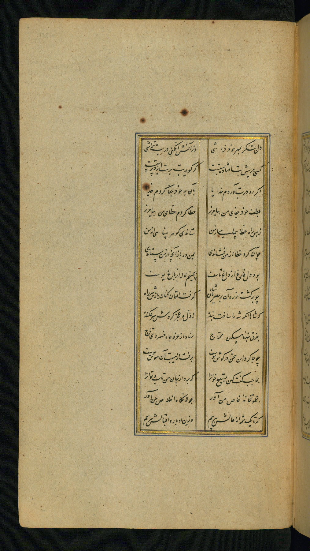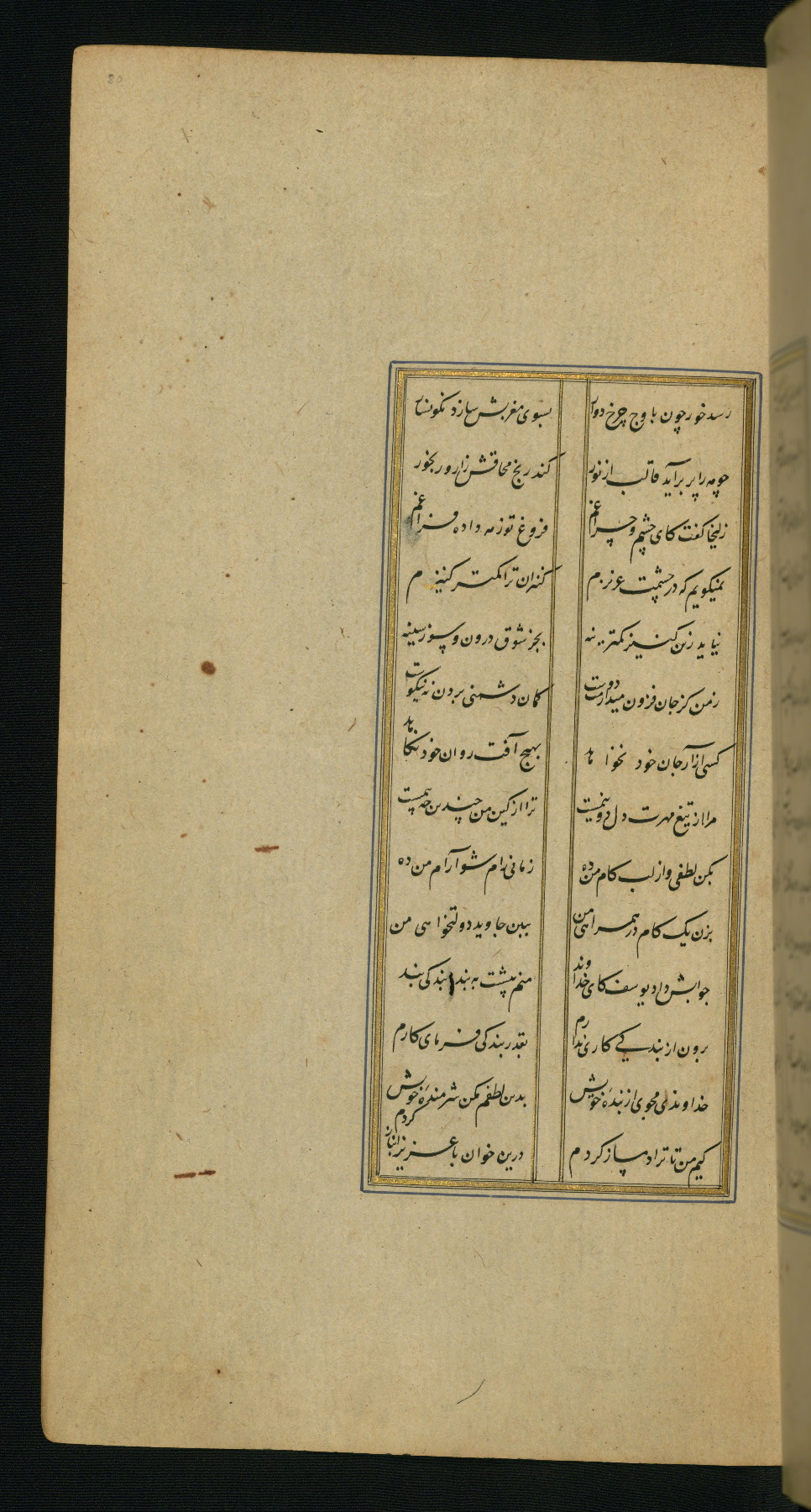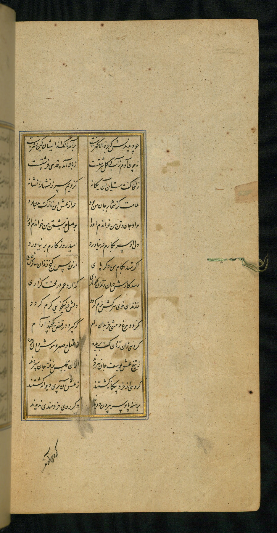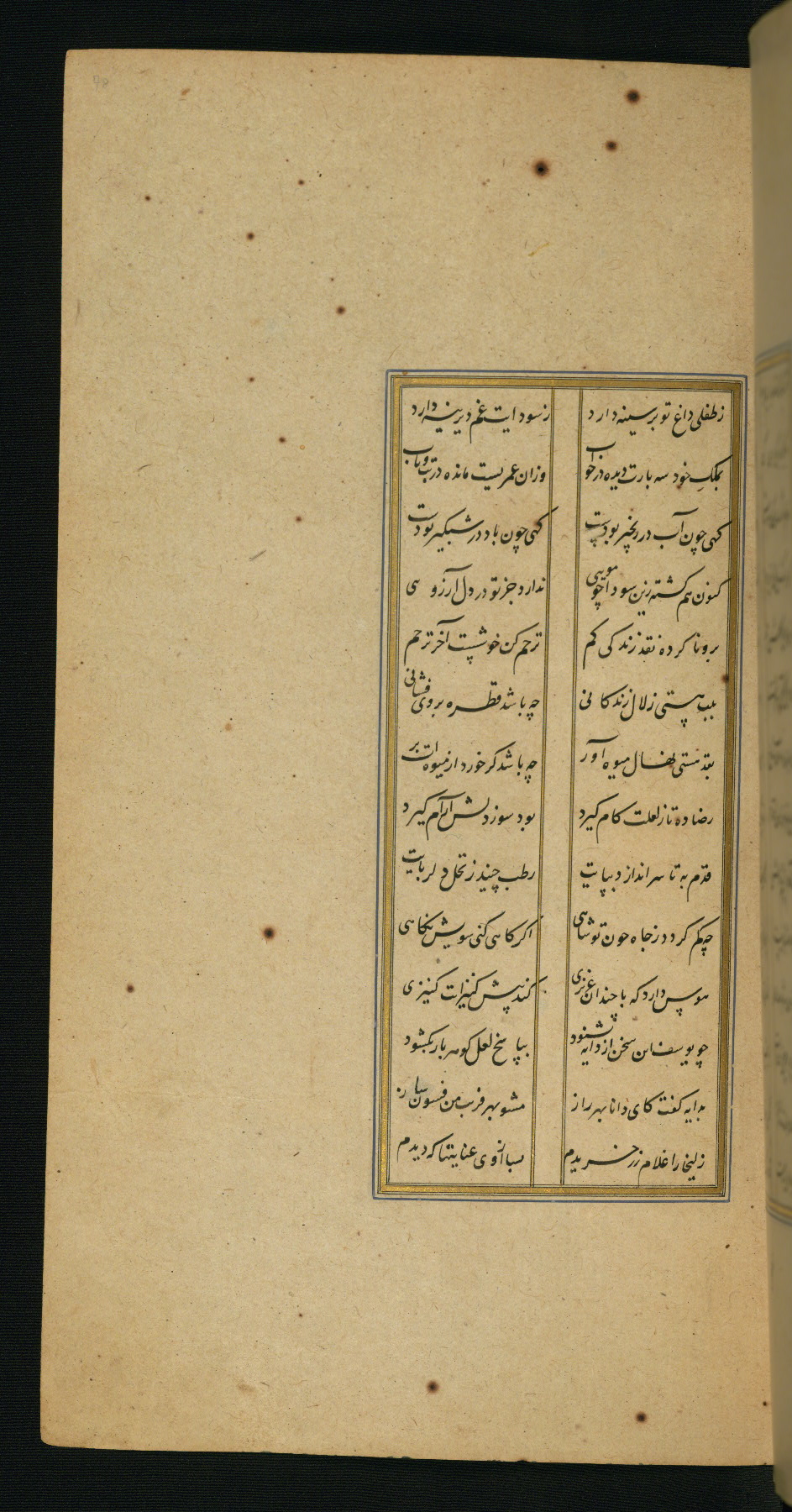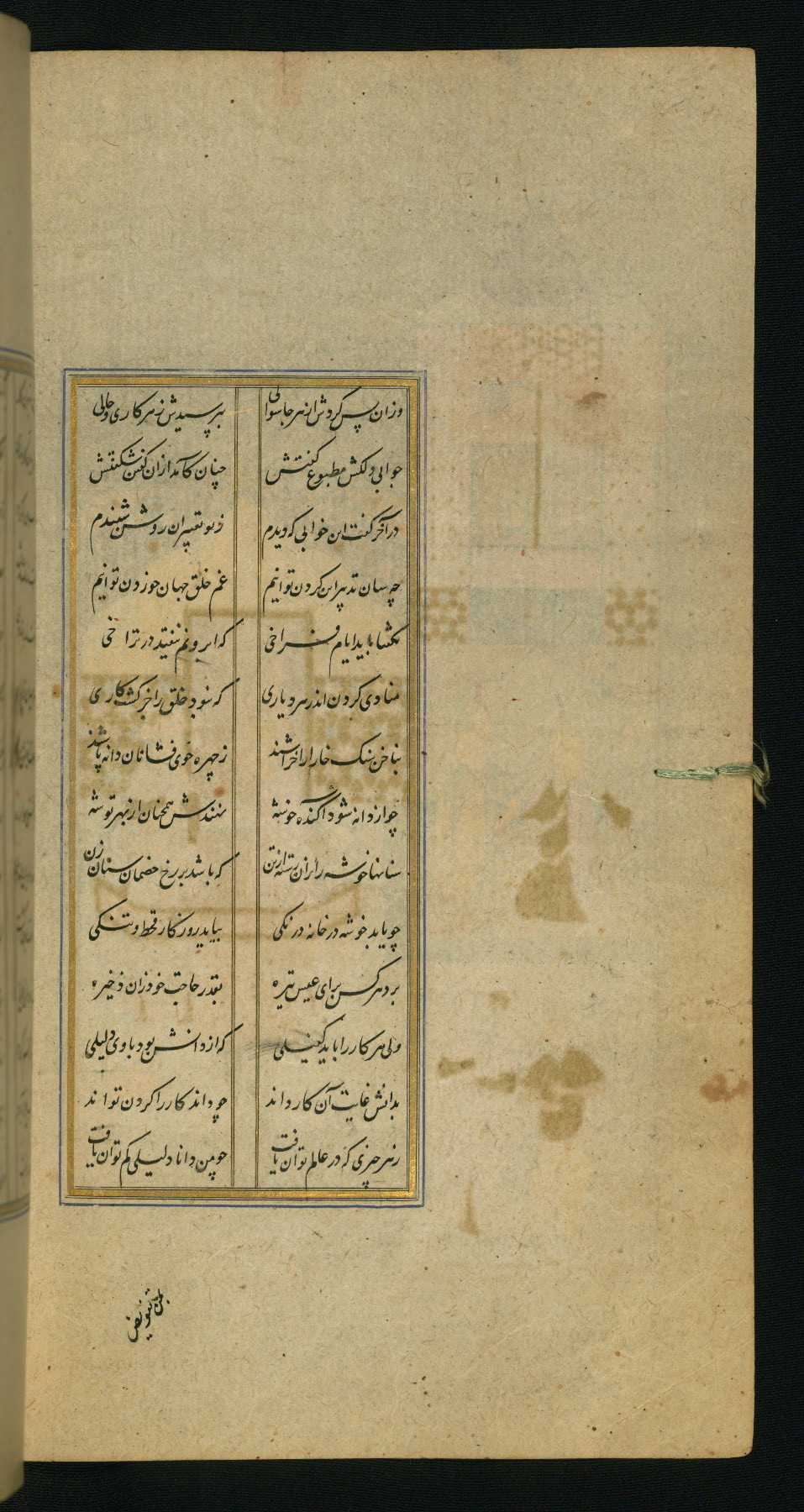 This is an illustrated and illuminated Safavid copy of Joseph (Yūsuf) and Zulaykhā by Nūr al-Dīn Jāmī (d. 898 AH / 1492 CE), executed in Iran in the early tenth century AH / sixteenth CE. The codex opens with a double-page illuminated incipit (fols. 1b-2a) containing the first verses of the work, the title, and the author's name. There are eight paintings illustrating the text. The binding is slightly later than the manuscript.