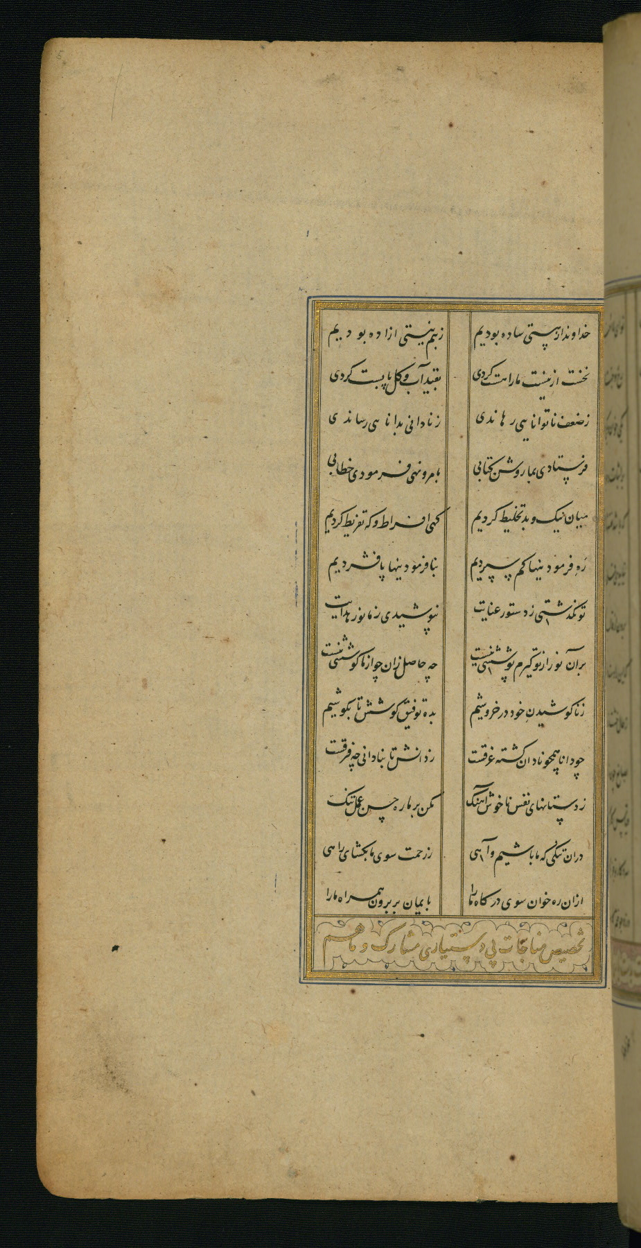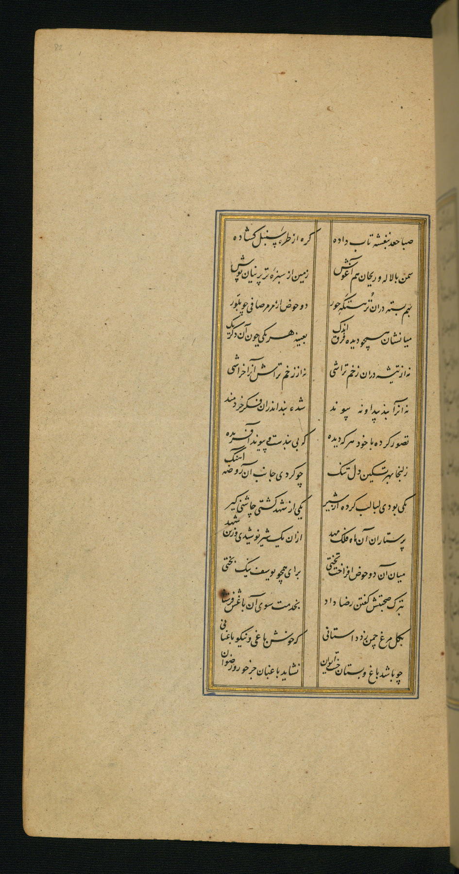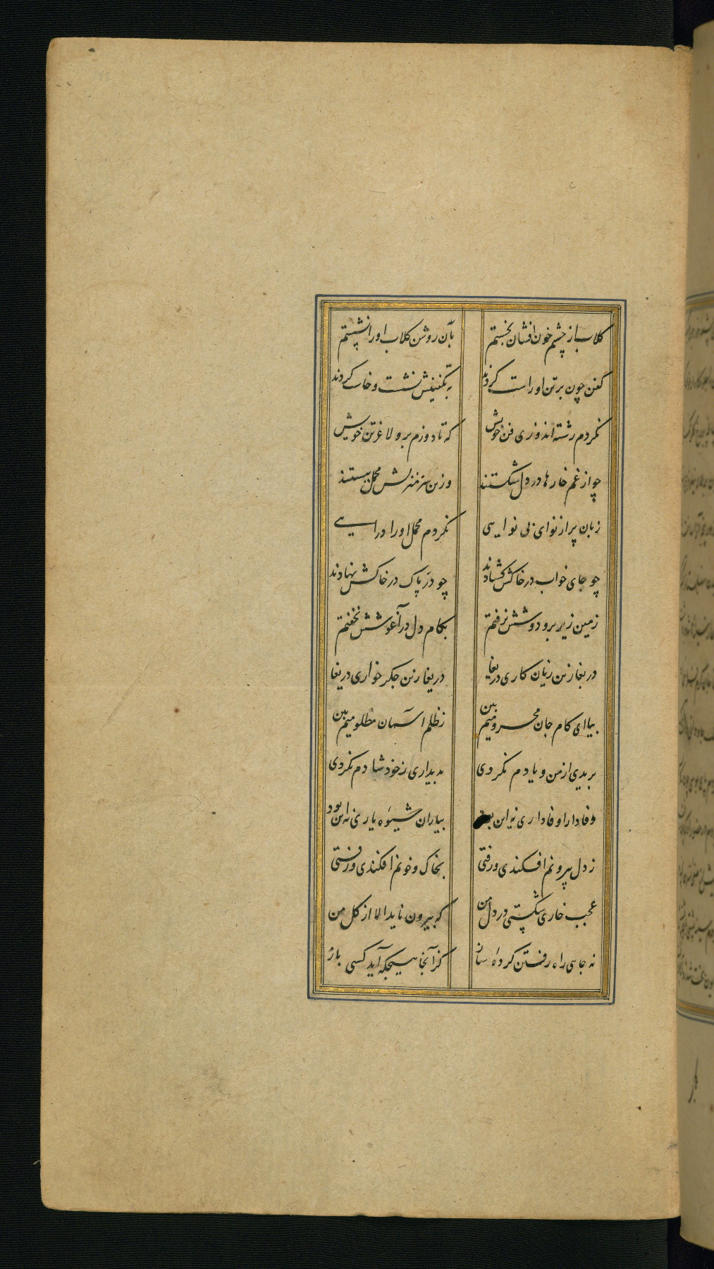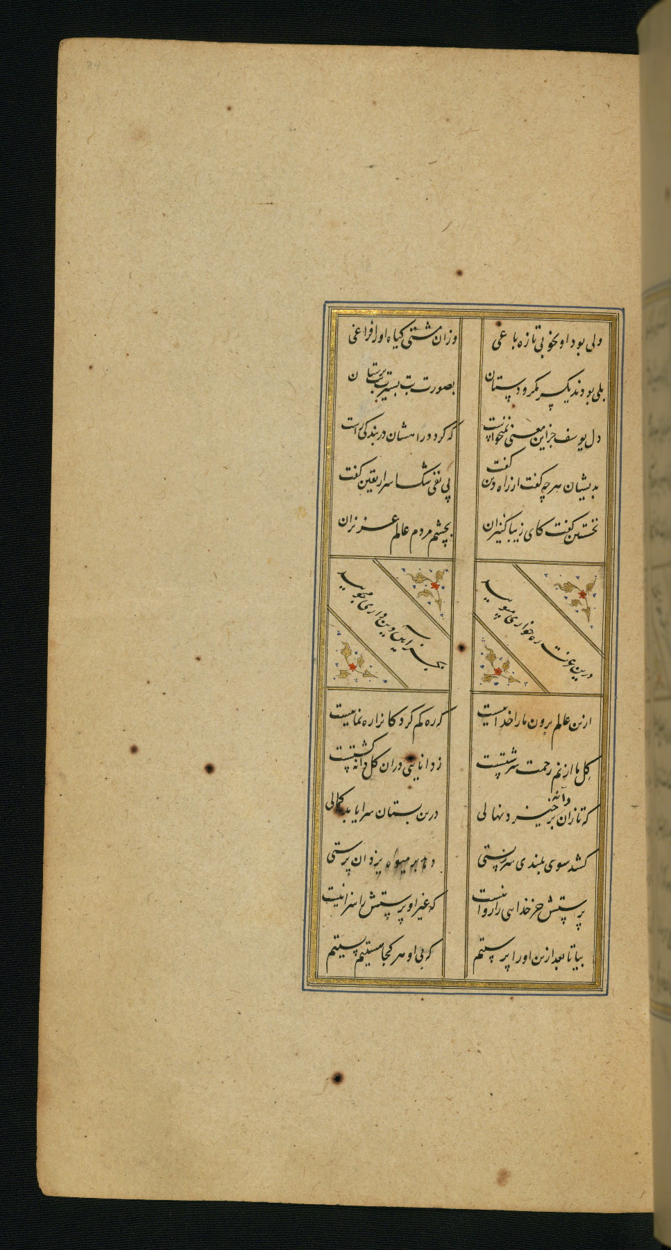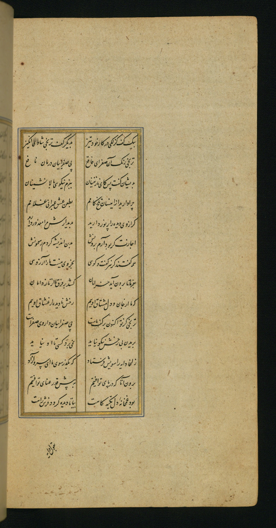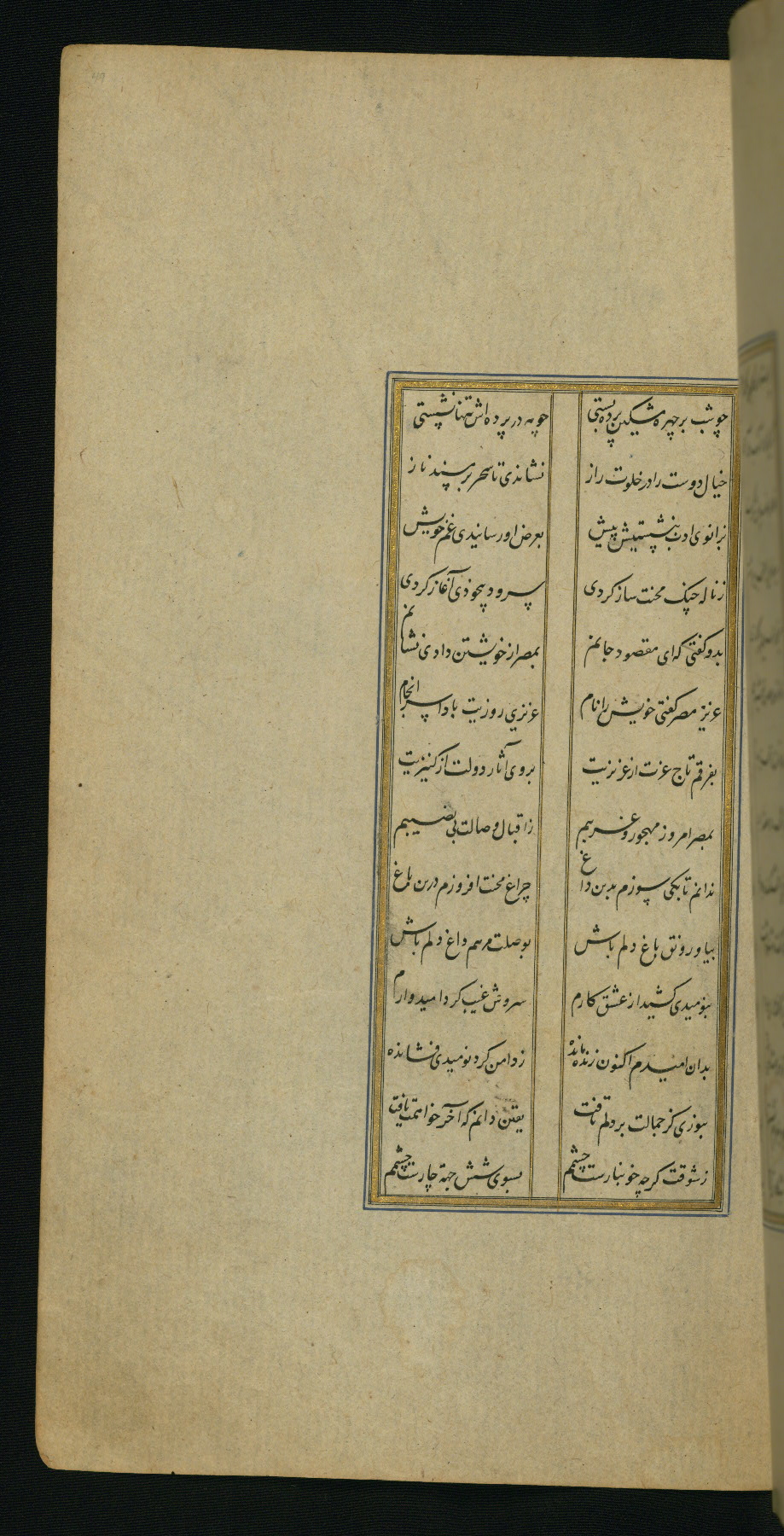 This is an illustrated and illuminated Safavid copy of Joseph (Yūsuf) and Zulaykhā by Nūr al-Dīn Jāmī (d. 898 AH / 1492 CE), executed in Iran in the early tenth century AH / sixteenth CE. The codex opens with a double-page illuminated incipit (fols. 1b-2a) containing the first verses of the work, the title, and the author's name. There are eight paintings illustrating the text. The binding is slightly later than the manuscript.