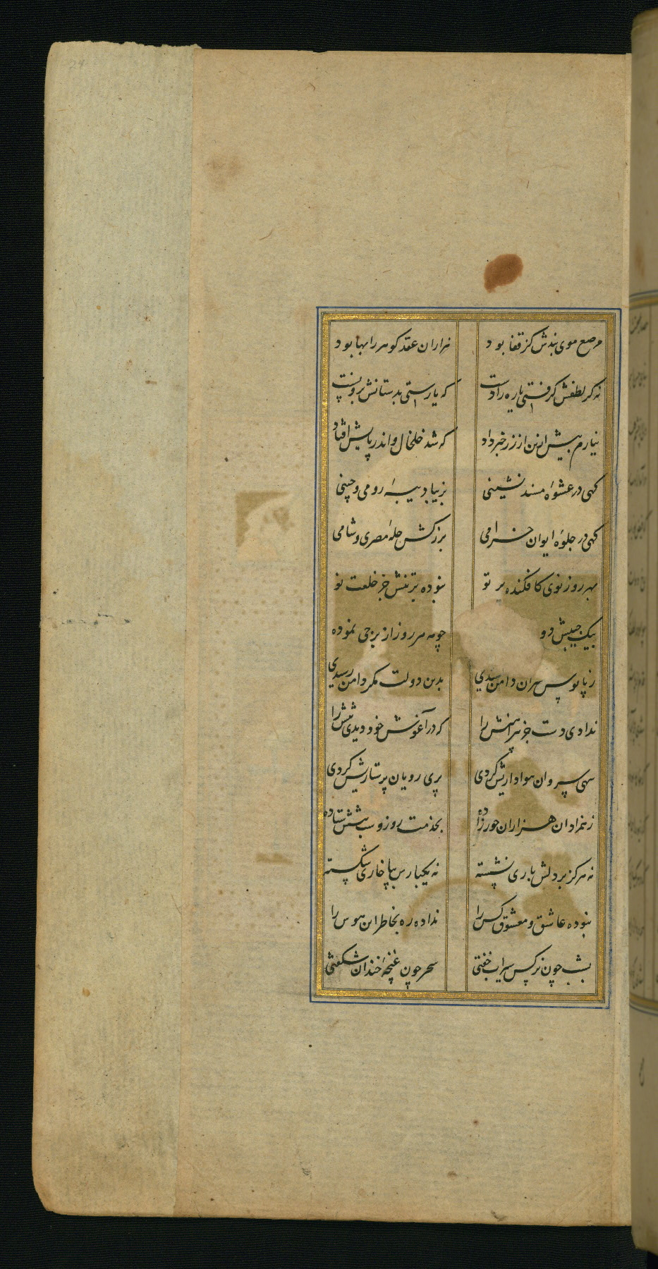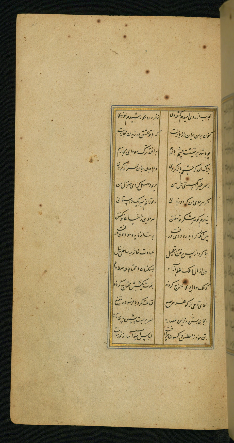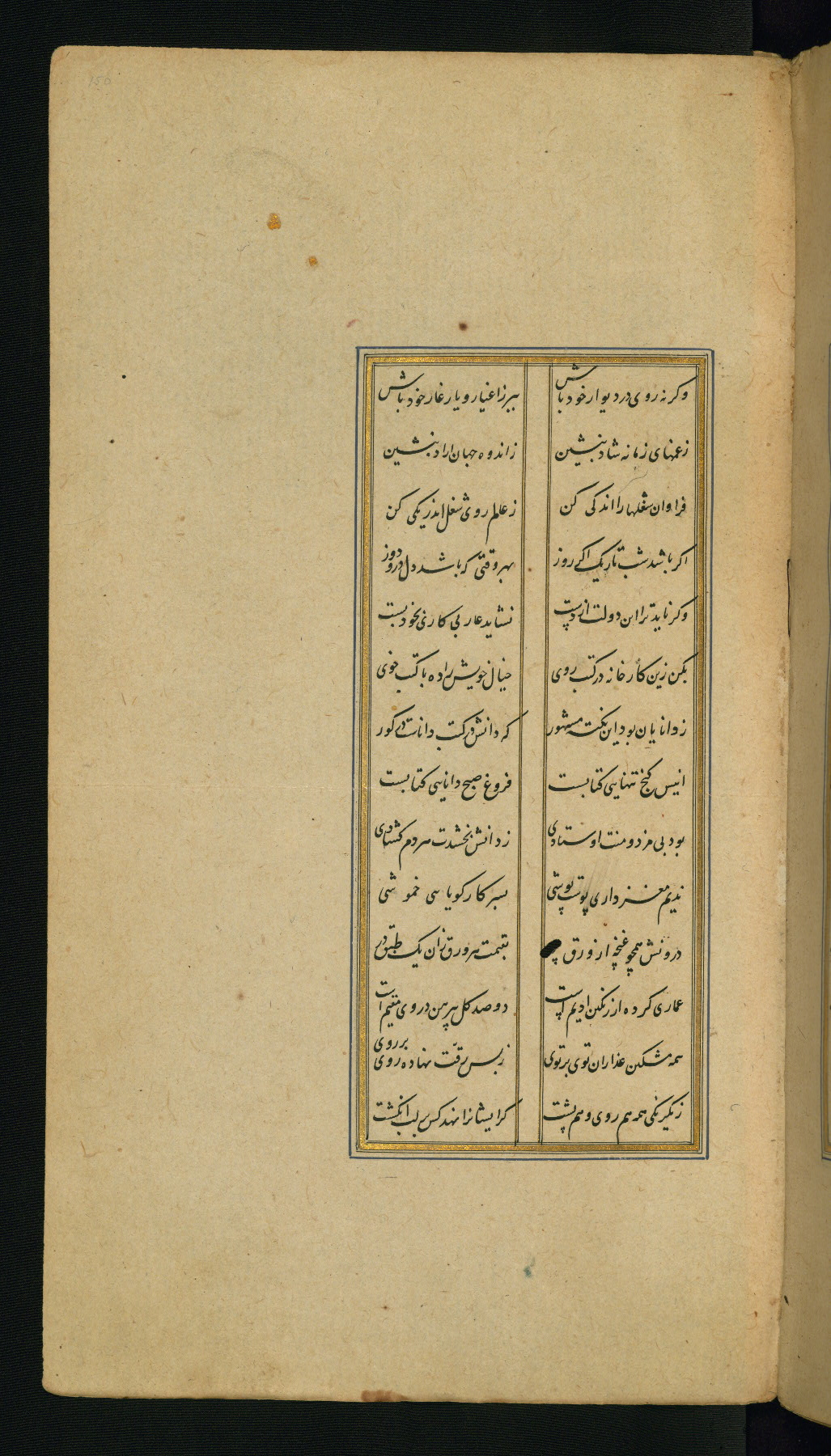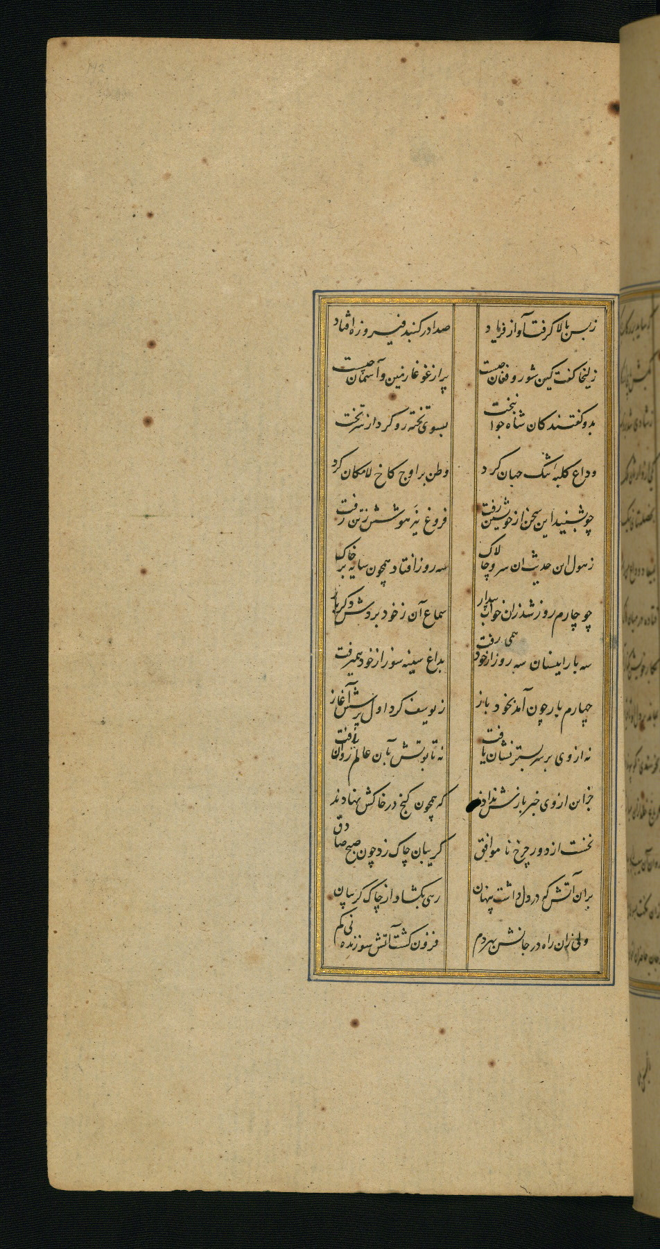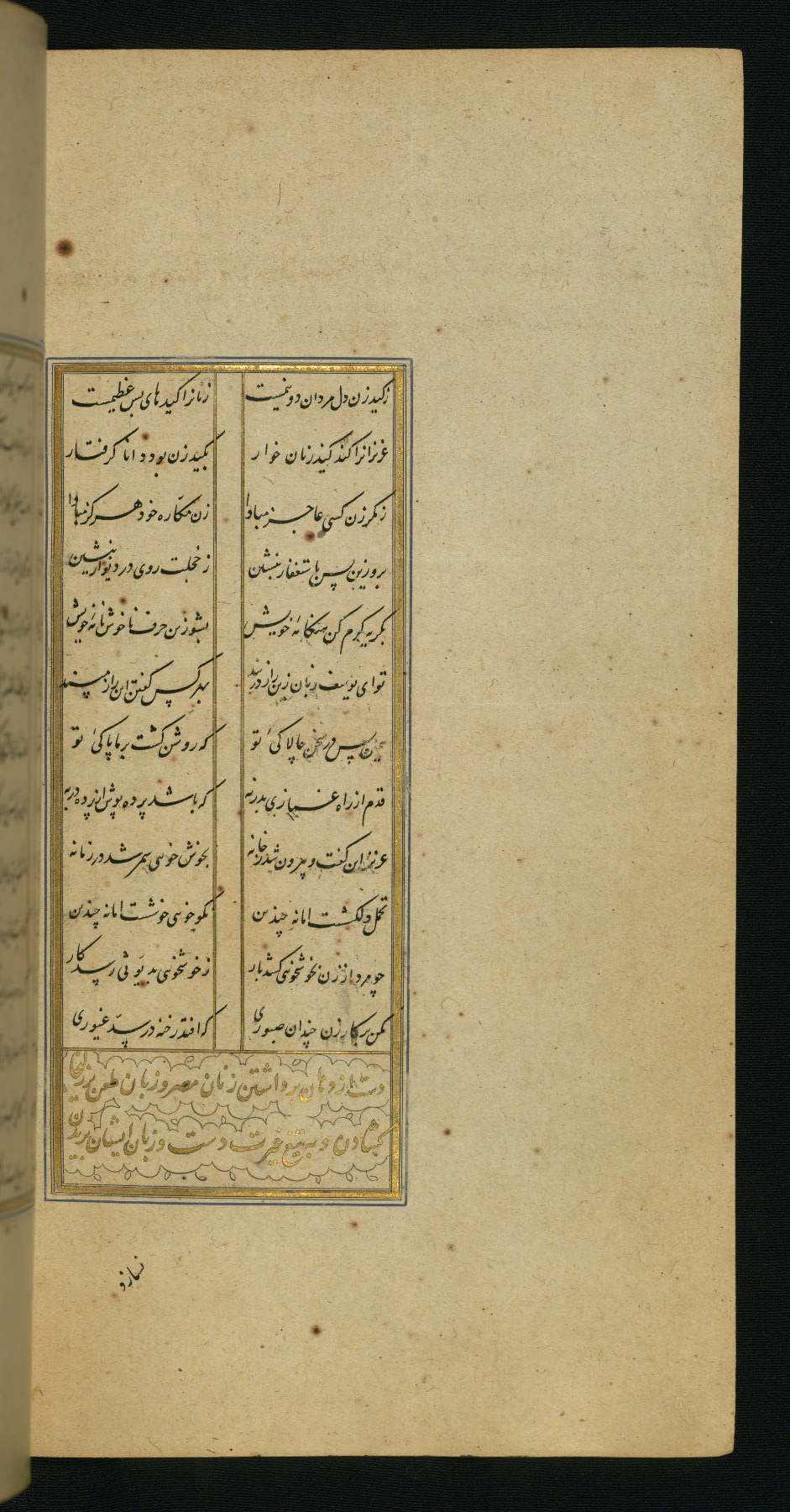 This is an illustrated and illuminated Safavid copy of Joseph (Yūsuf) and Zulaykhā by Nūr al-Dīn Jāmī (d. 898 AH / 1492 CE), executed in Iran in the early tenth century AH / sixteenth CE. The codex opens with a double-page illuminated incipit (fols. 1b-2a) containing the first verses of the work, the title, and the author's name. There are eight paintings illustrating the text. The binding is slightly later than the manuscript.