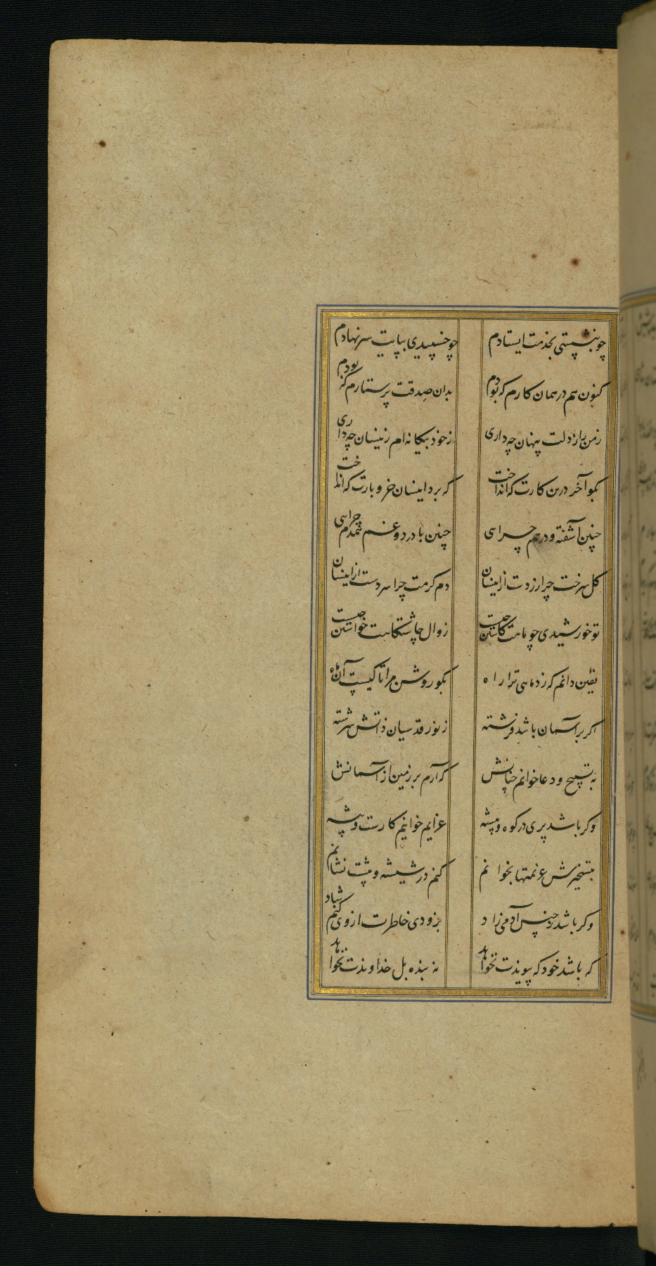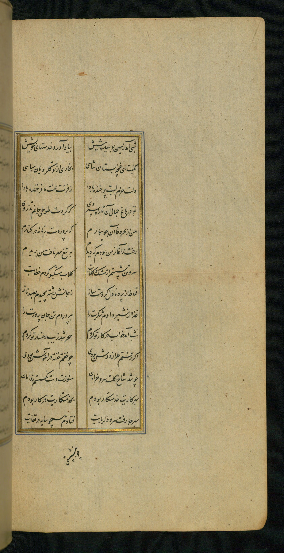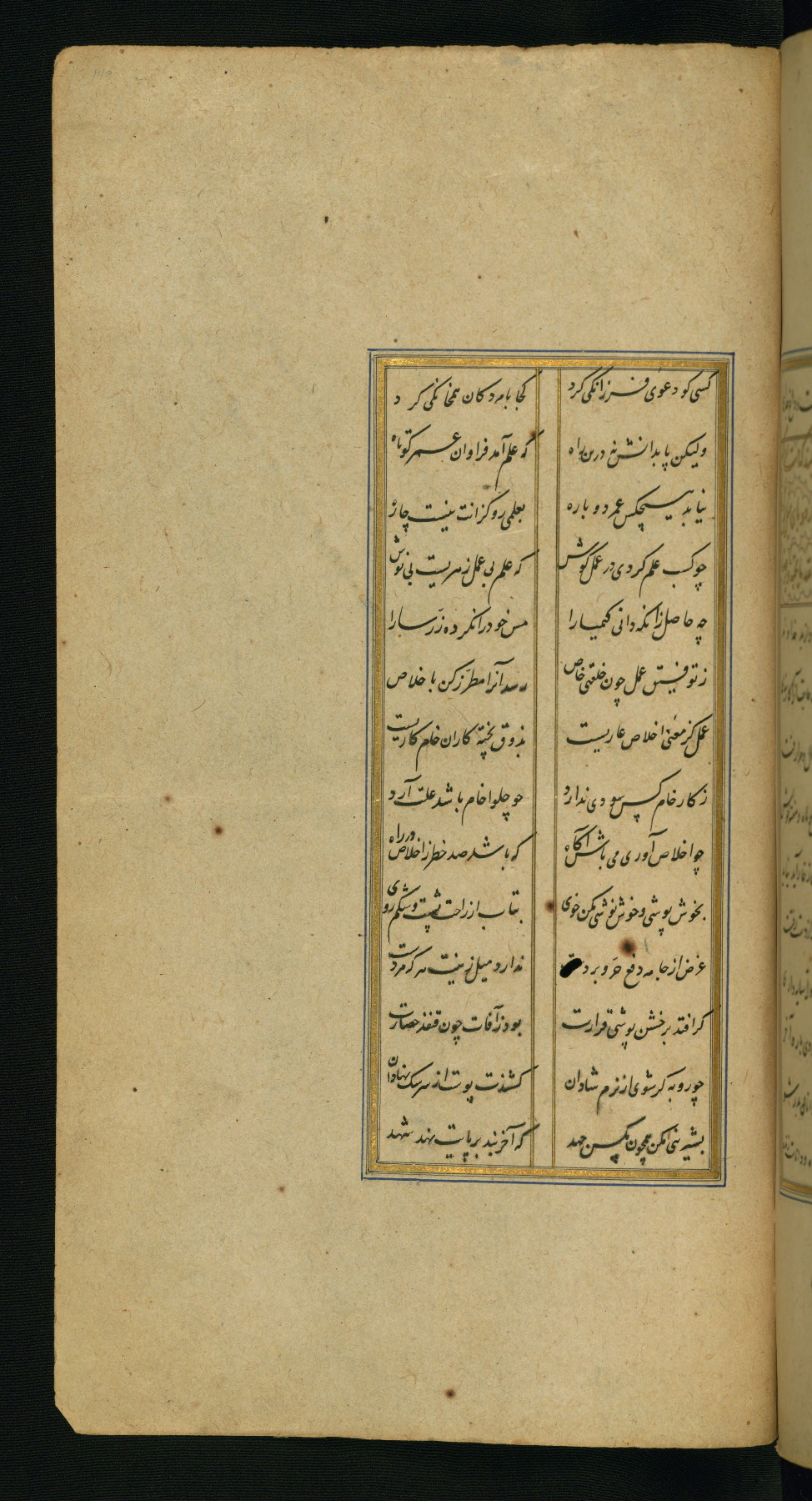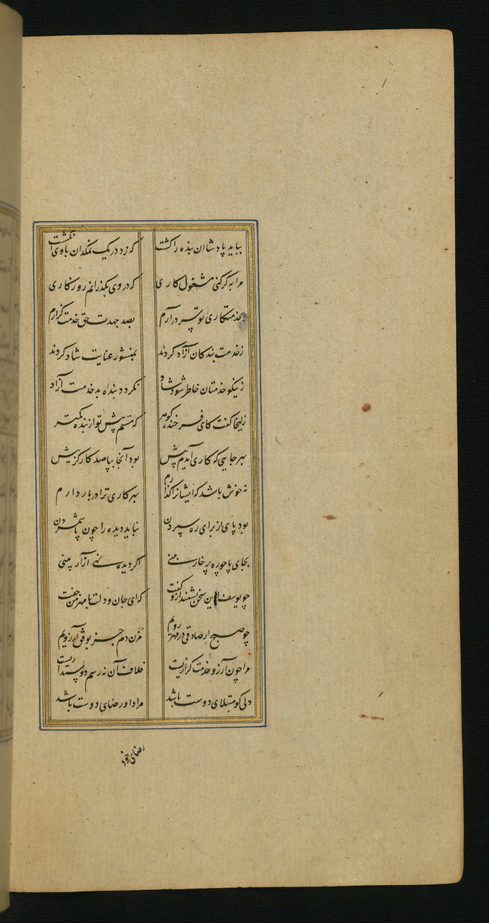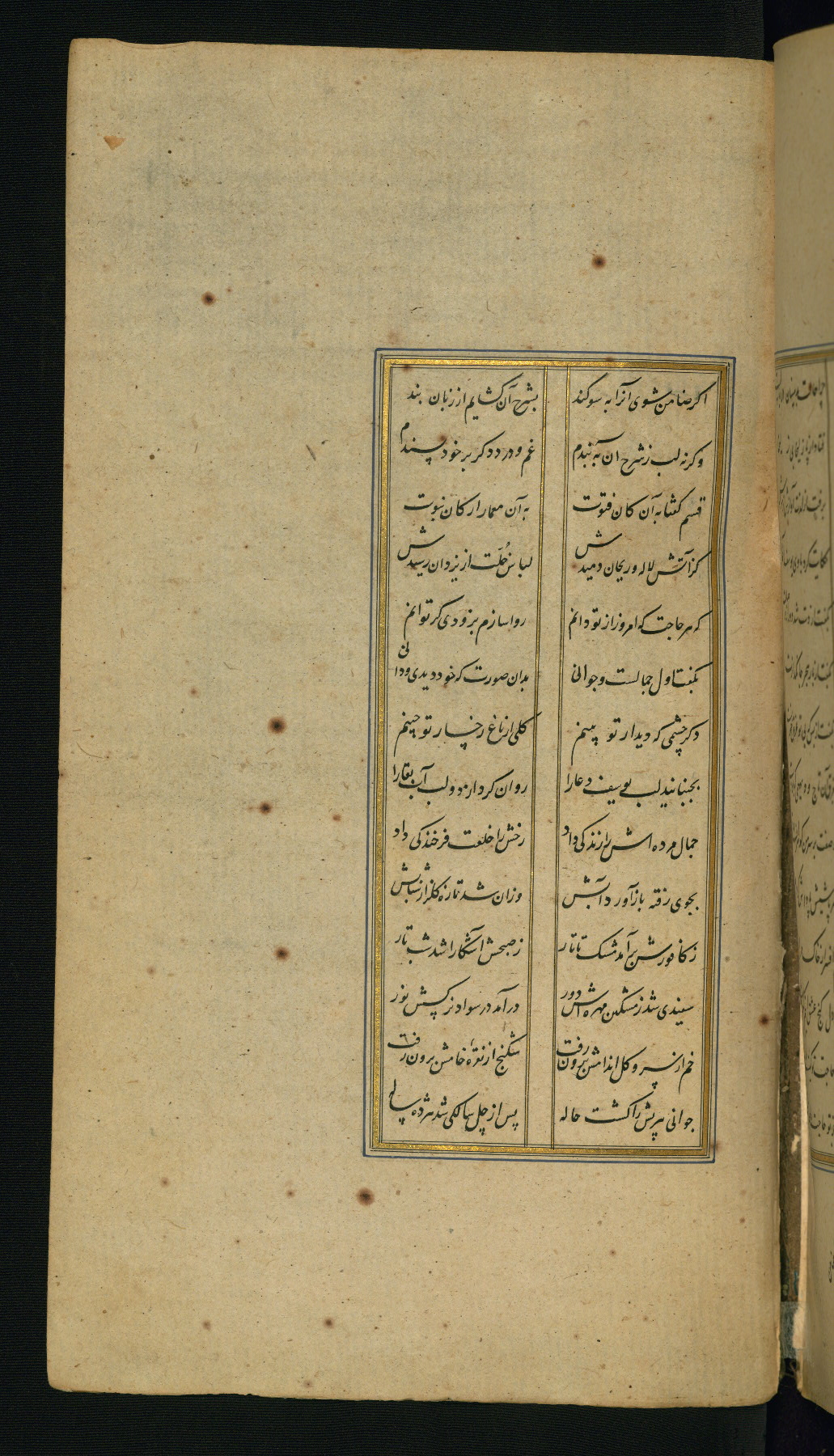 This is an illustrated and illuminated Safavid copy of Joseph (Yūsuf) and Zulaykhā by Nūr al-Dīn Jāmī (d. 898 AH / 1492 CE), executed in Iran in the early tenth century AH / sixteenth CE. The codex opens with a double-page illuminated incipit (fols. 1b-2a) containing the first verses of the work, the title, and the author's name. There are eight paintings illustrating the text. The binding is slightly later than the manuscript.