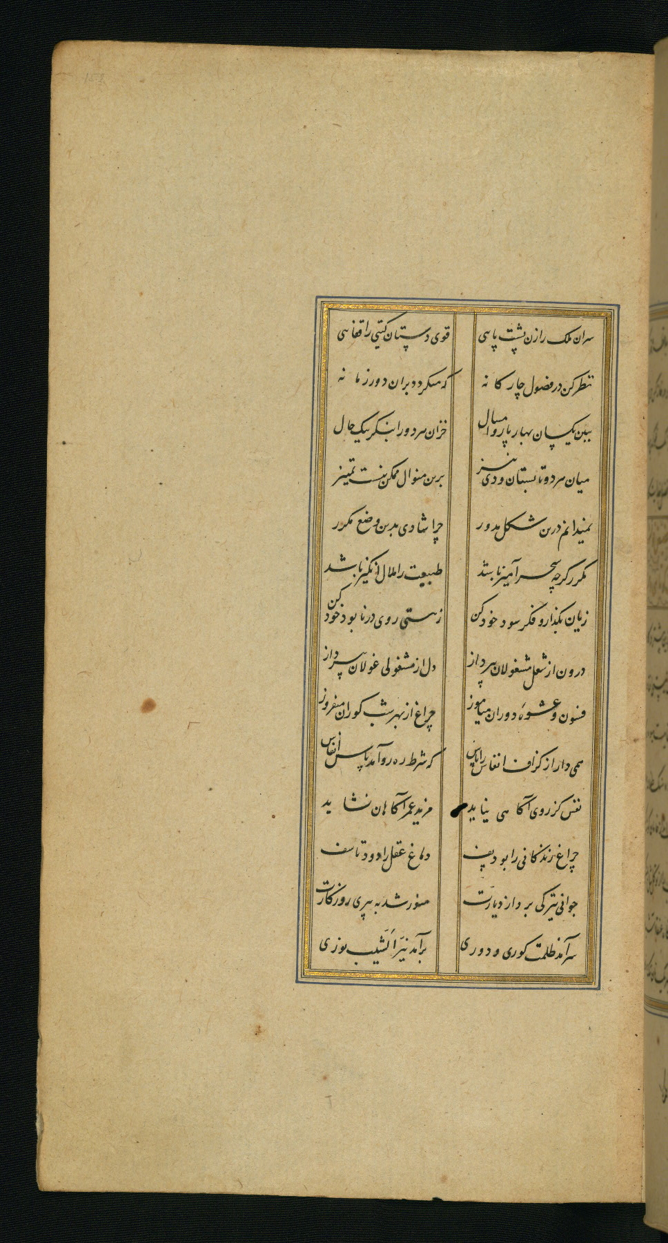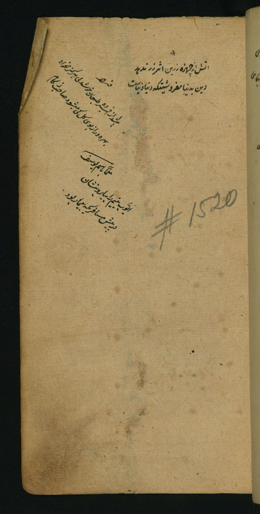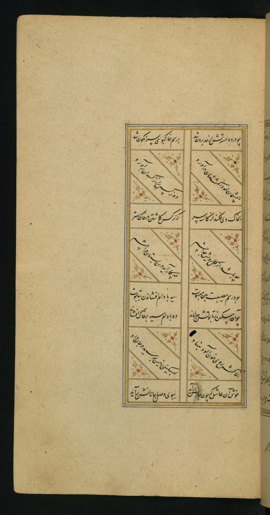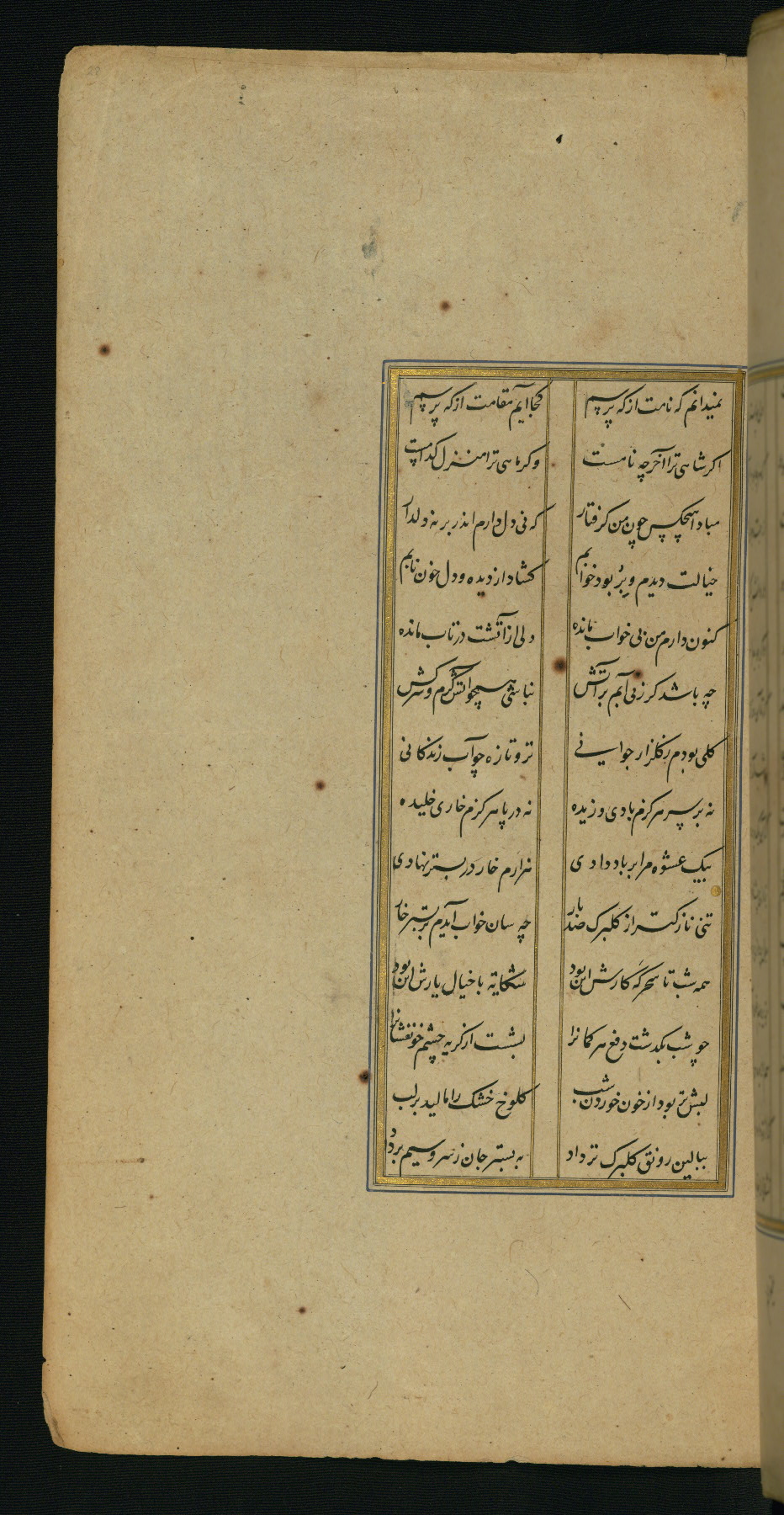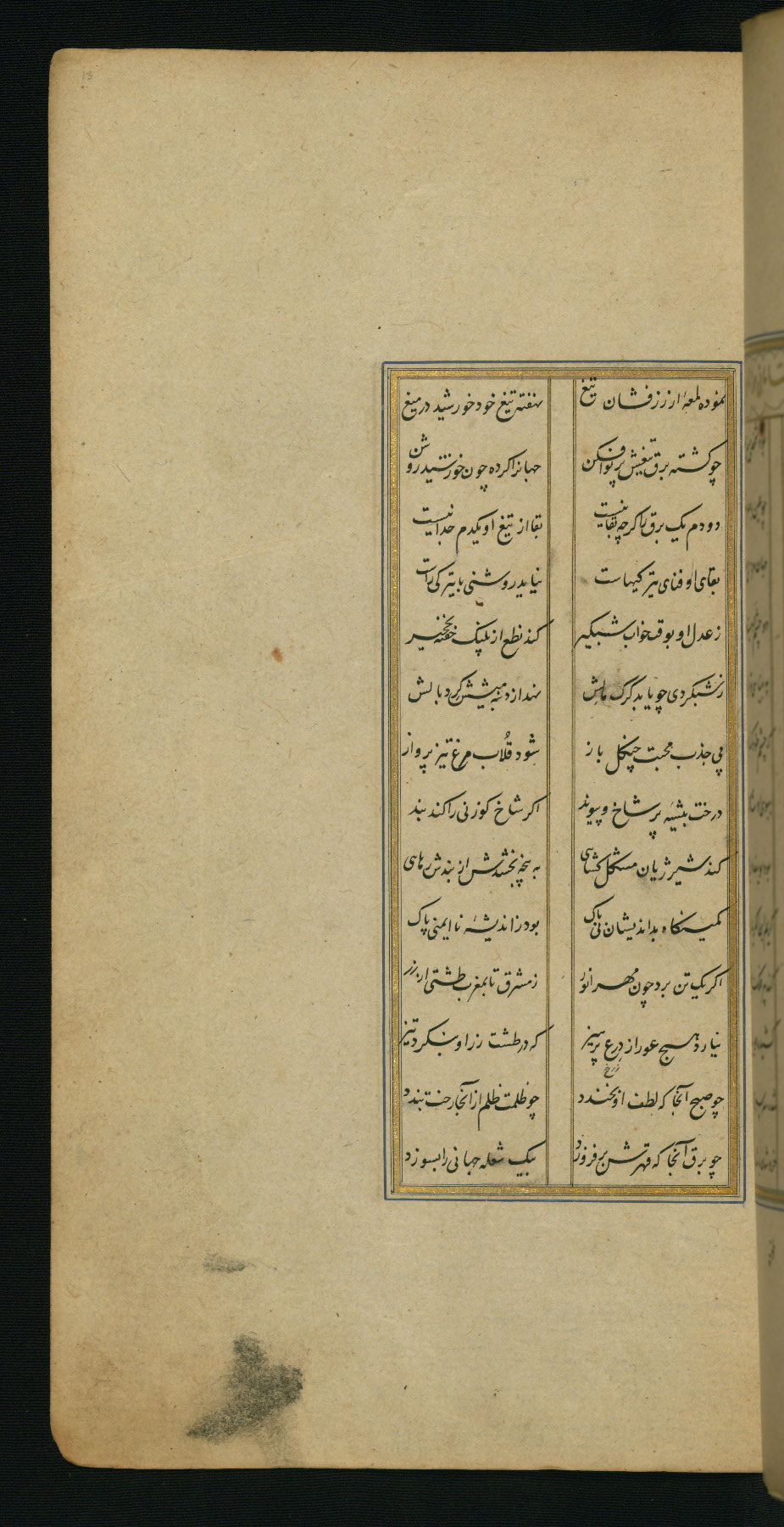 This is an illustrated and illuminated Safavid copy of Joseph (Yūsuf) and Zulaykhā by Nūr al-Dīn Jāmī (d. 898 AH / 1492 CE), executed in Iran in the early tenth century AH / sixteenth CE. The codex opens with a double-page illuminated incipit (fols. 1b-2a) containing the first verses of the work, the title, and the author's name. There are eight paintings illustrating the text. The binding is slightly later than the manuscript.