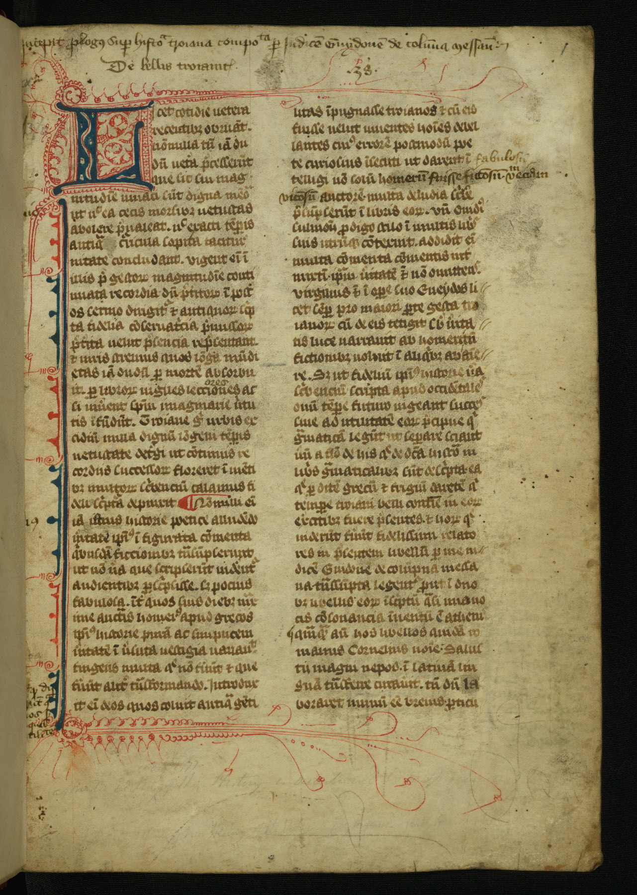 - Contents: Text divided into prologue and 34 books, concluding with two verse epitaphs and a colophon by Guido de Colonne