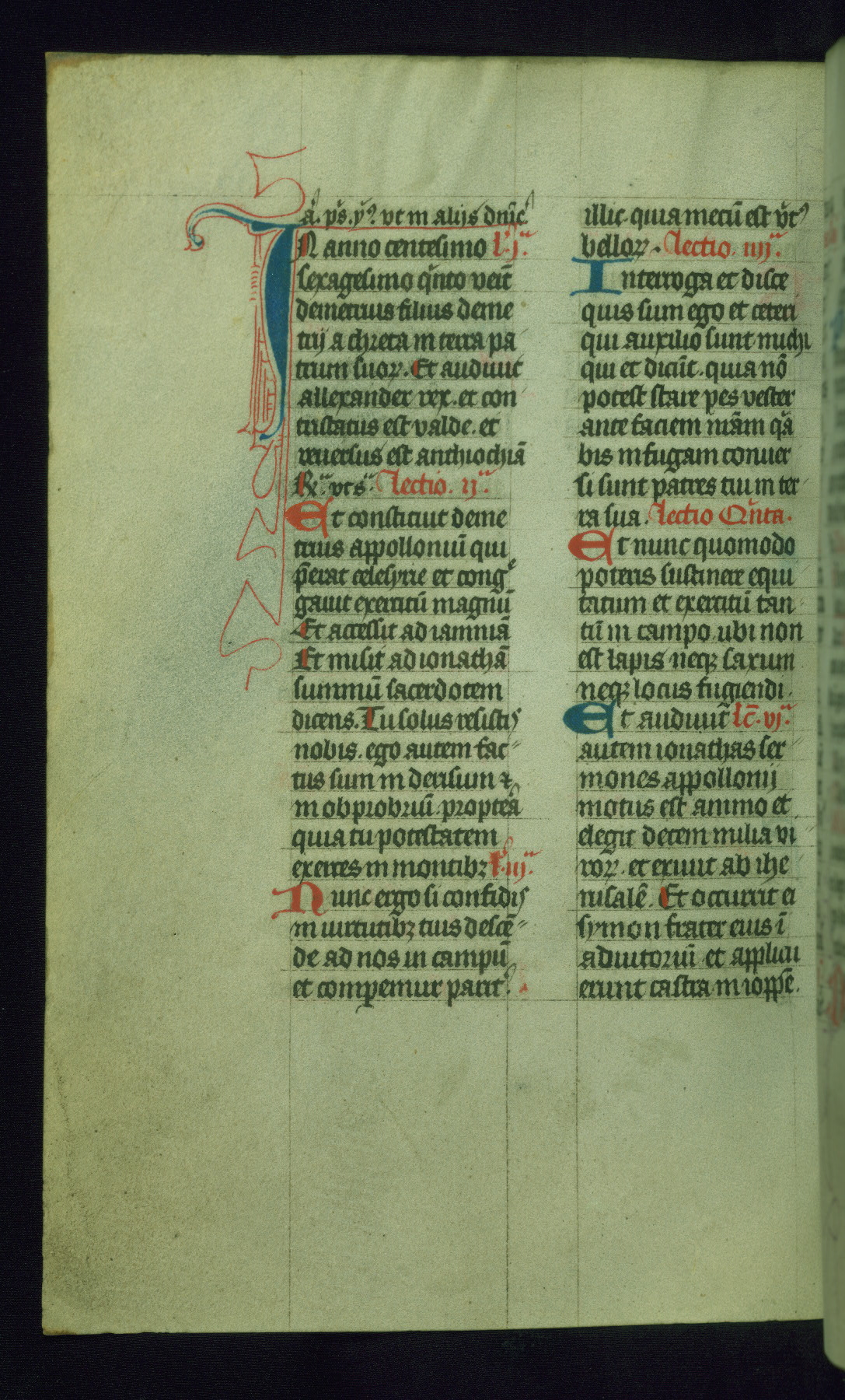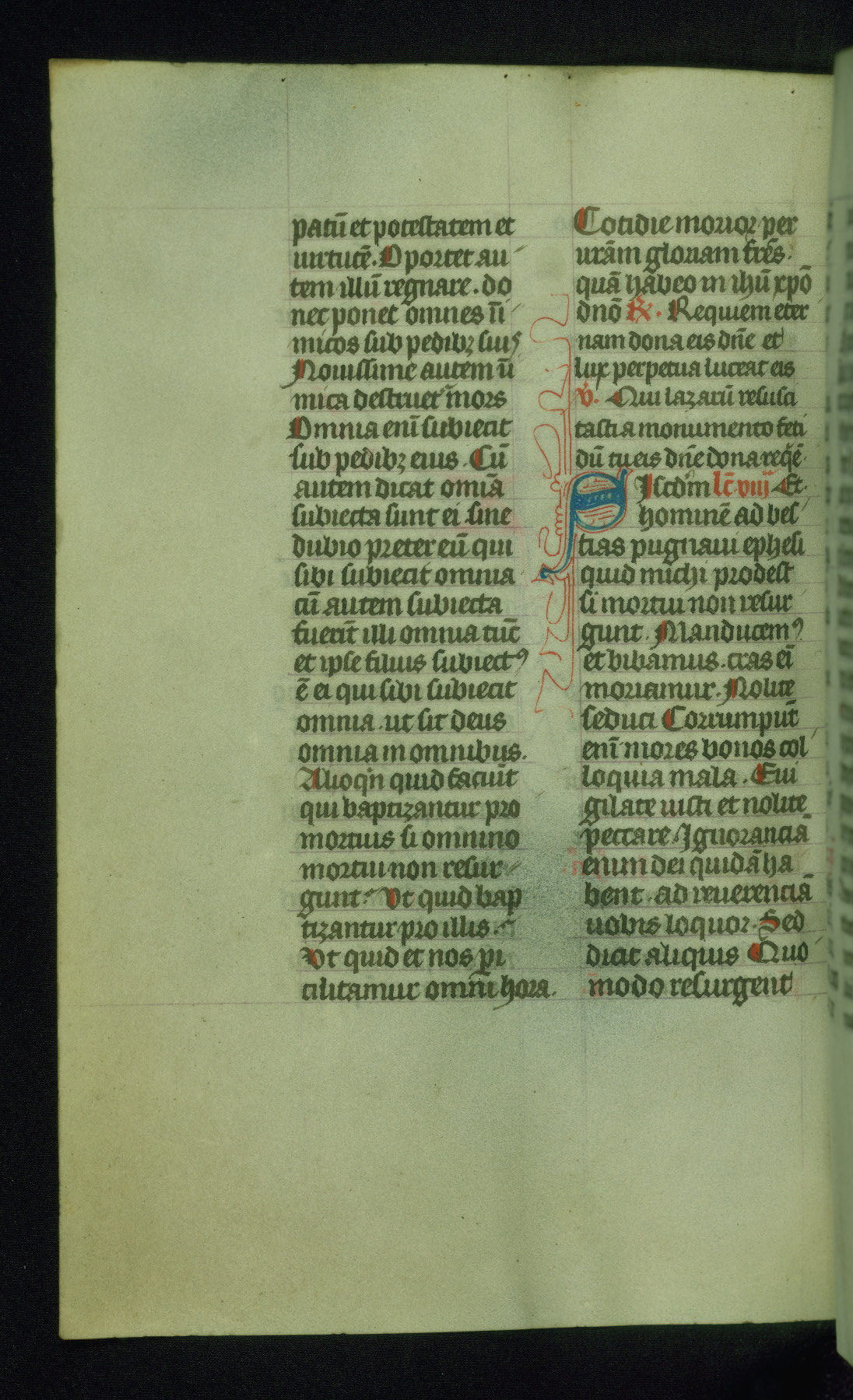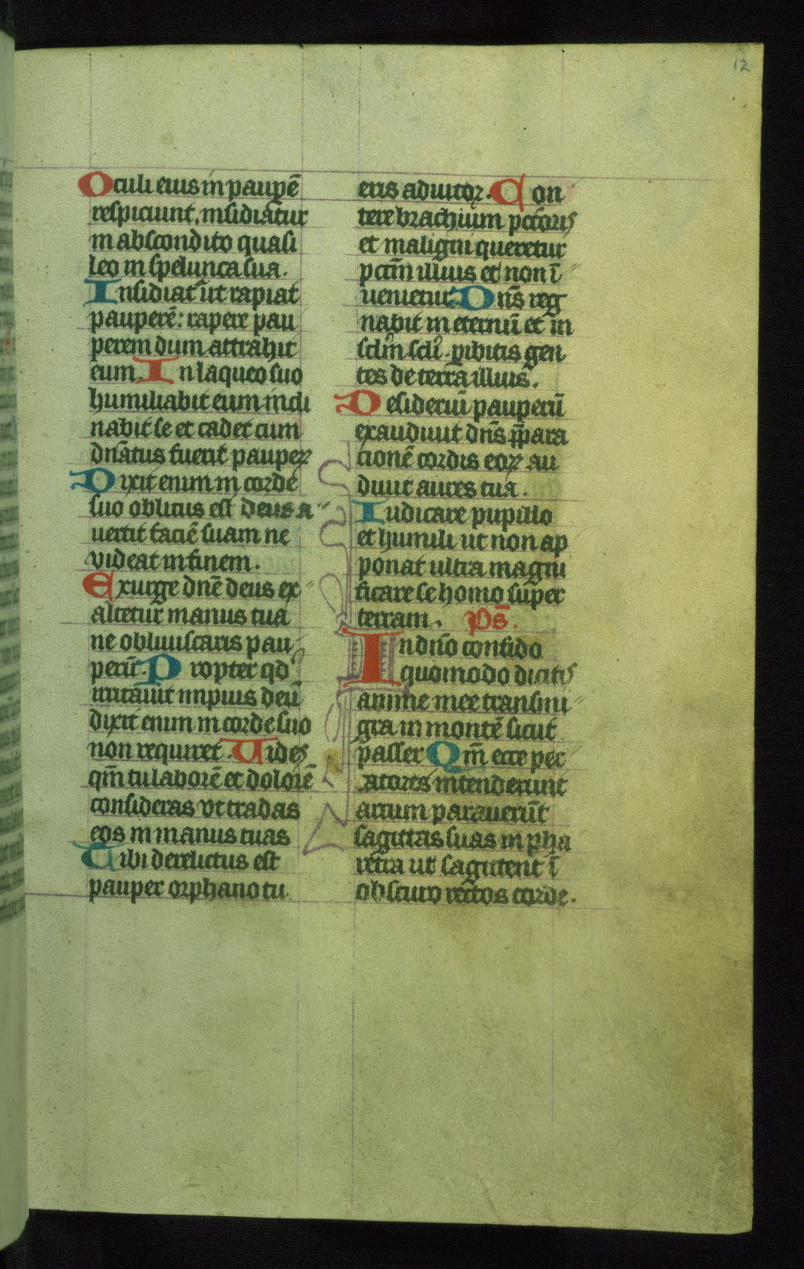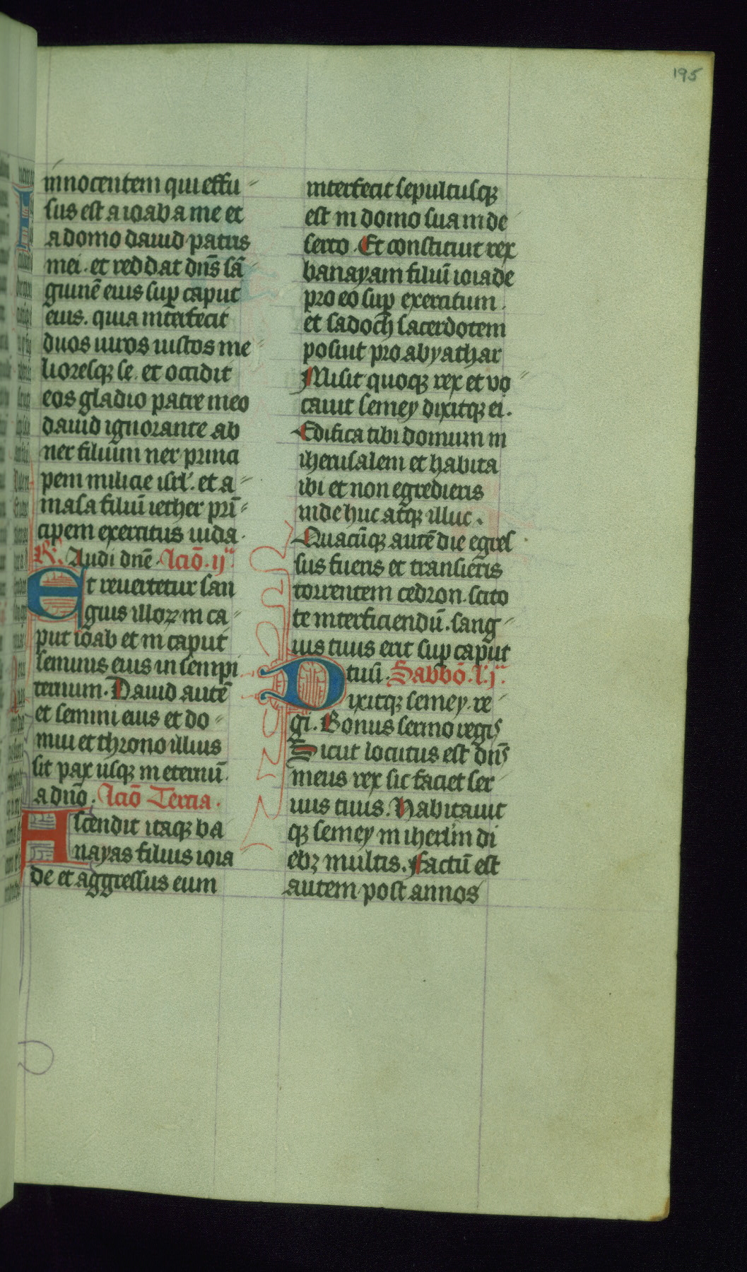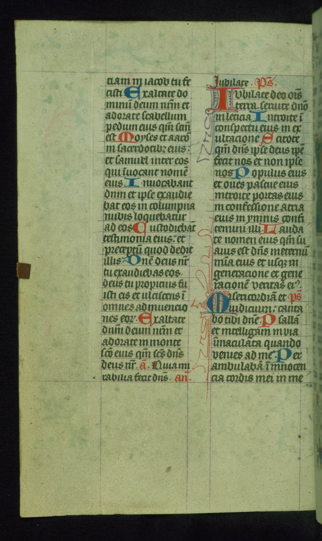 This small breviary, composed of more than 500 folios, is extraordinary for its length, considering it is the summer portion of a two-volume breviary for the use of Liège. The manuscript was completed for ecclesiastical use at the Cathedral of Notre-Dame and St.-Lambert in Liège ca. 1420. This attribution is suggested, for instance, by the petitions to the congregation of this cathedral (fols. 114v-117v), as well as the armorial shield of the family of Surlet de Chokier of Liège represented at the opening of the Psalms. The manuscript has modest, but interesting, decoration with historiated and decorated initials marking the liturgical texts, and occasional angels playing instruments in the margins. The most notable pictorial effect is found in the initials inhabited by transparent figures on rich blue ground. The technique is found, for instance, on fol. 156r with the gold monstrance held by translucent angels for the feast of the Corpus Christi.