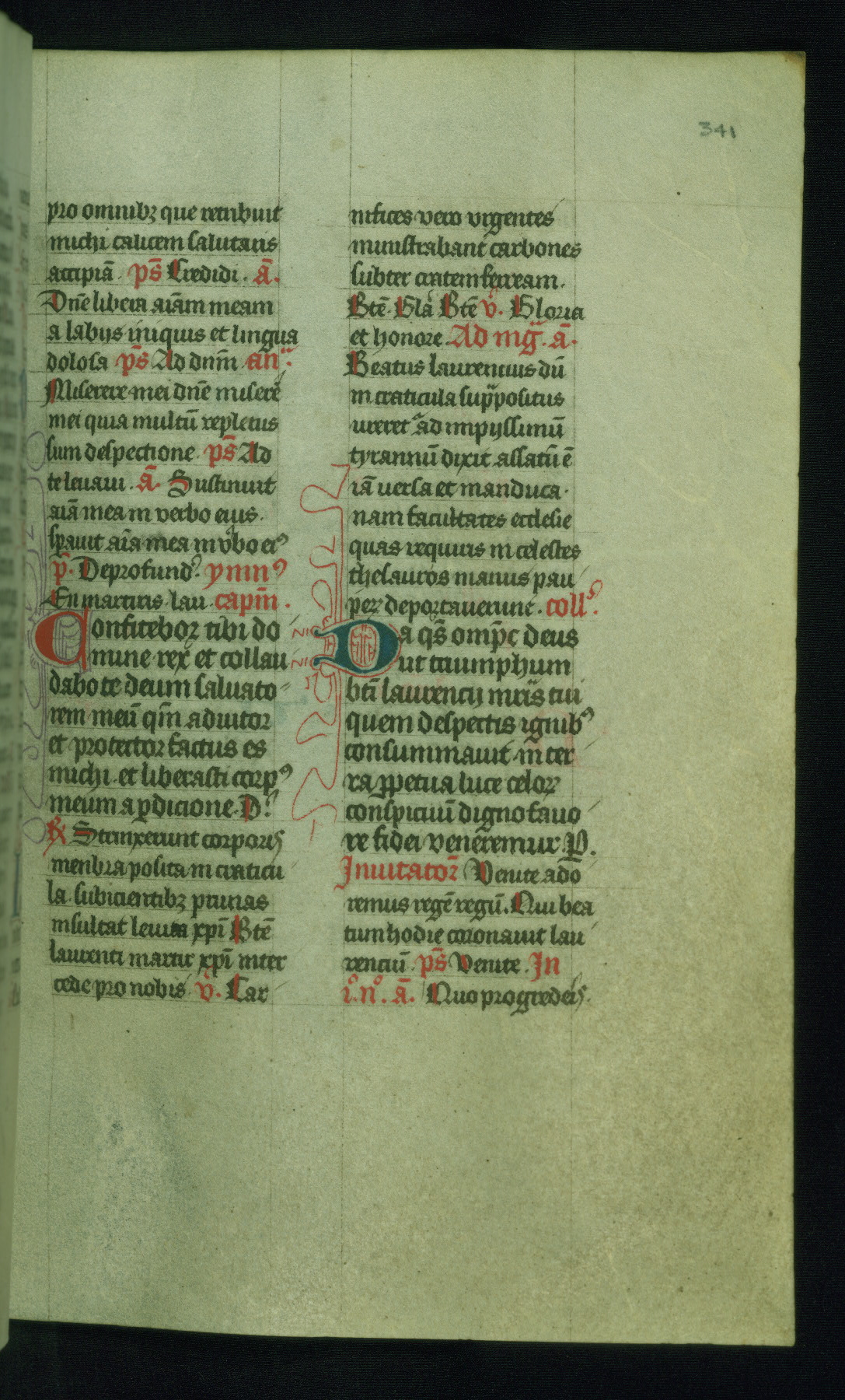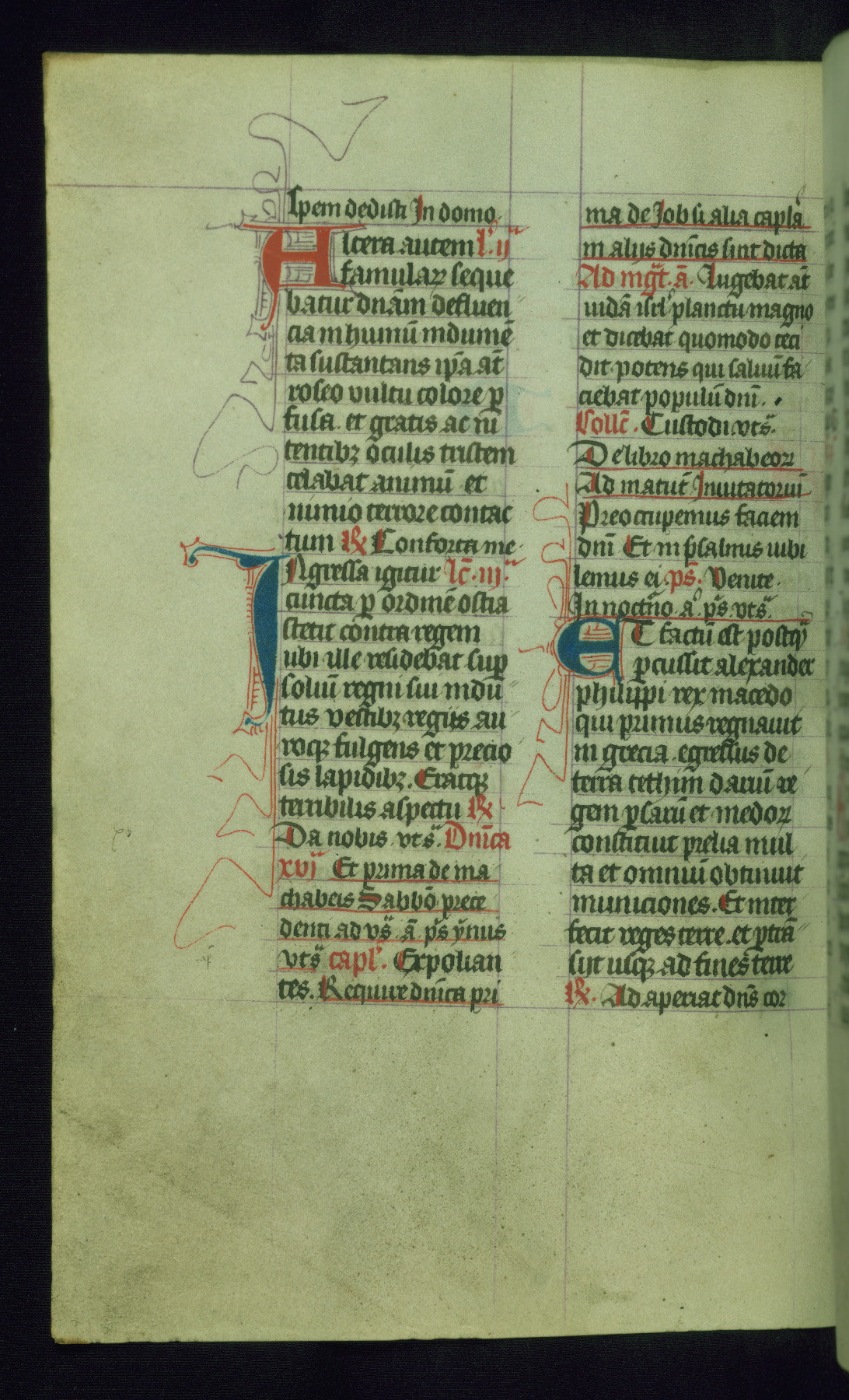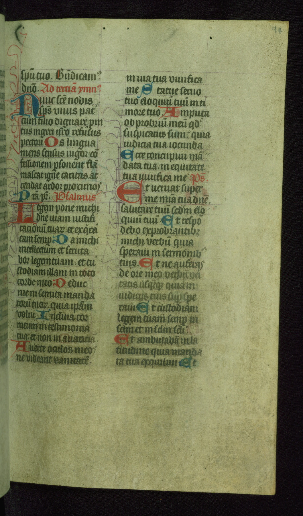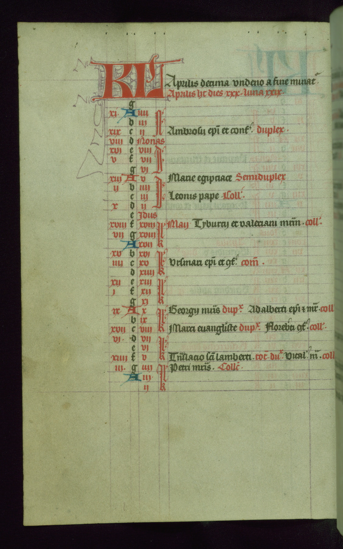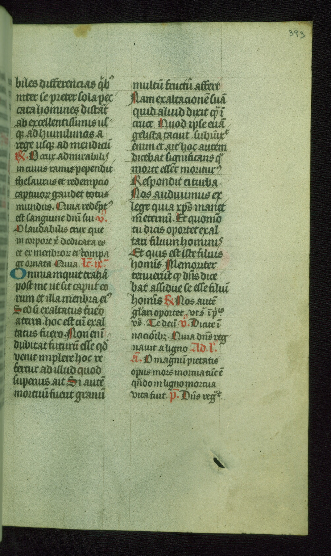 This small breviary, composed of more than 500 folios, is extraordinary for its length, considering it is the summer portion of a two-volume breviary for the use of Liège. The manuscript was completed for ecclesiastical use at the Cathedral of Notre-Dame and St.-Lambert in Liège ca. 1420. This attribution is suggested, for instance, by the petitions to the congregation of this cathedral (fols. 114v-117v), as well as the armorial shield of the family of Surlet de Chokier of Liège represented at the opening of the Psalms. The manuscript has modest, but interesting, decoration with historiated and decorated initials marking the liturgical texts, and occasional angels playing instruments in the margins. The most notable pictorial effect is found in the initials inhabited by transparent figures on rich blue ground. The technique is found, for instance, on fol. 156r with the gold monstrance held by translucent angels for the feast of the Corpus Christi.