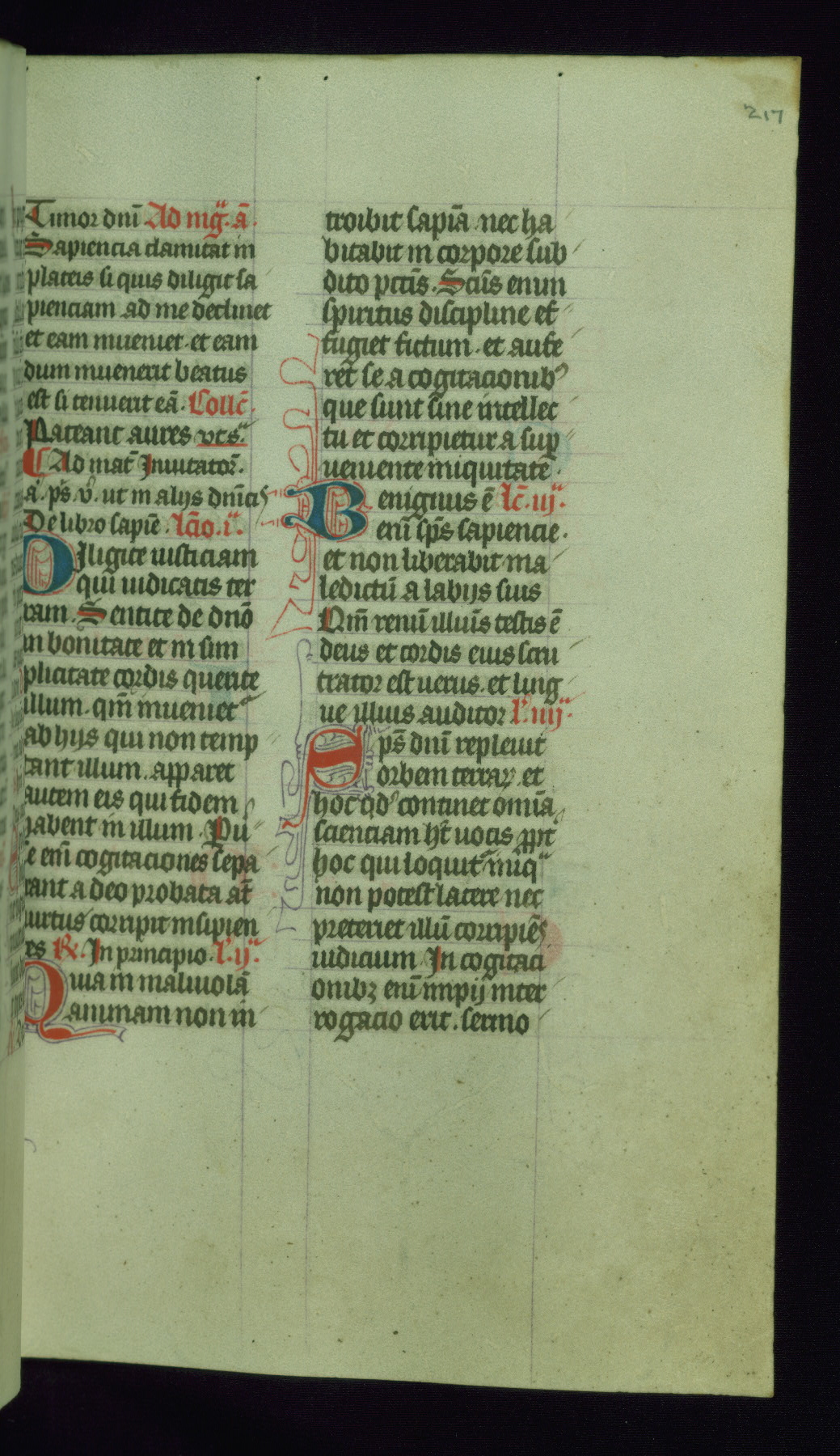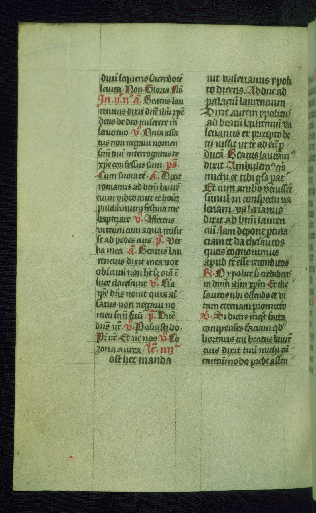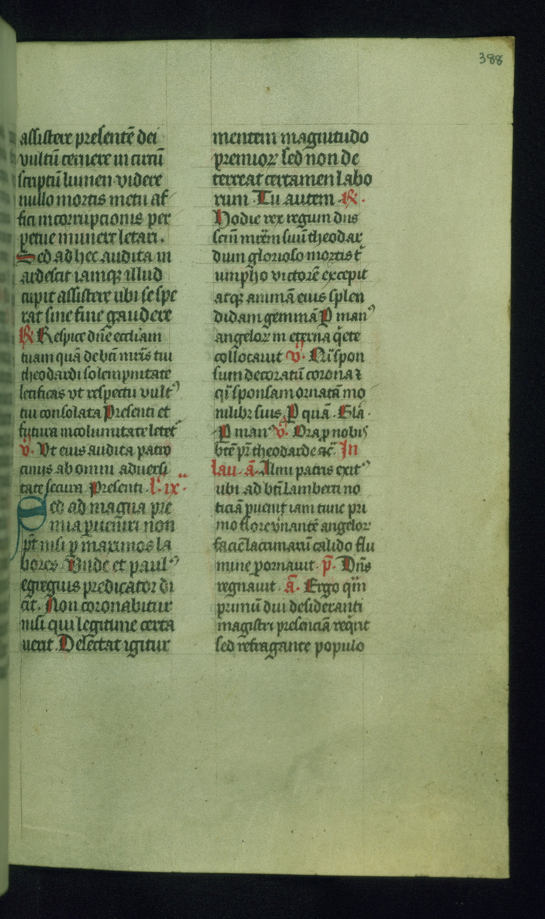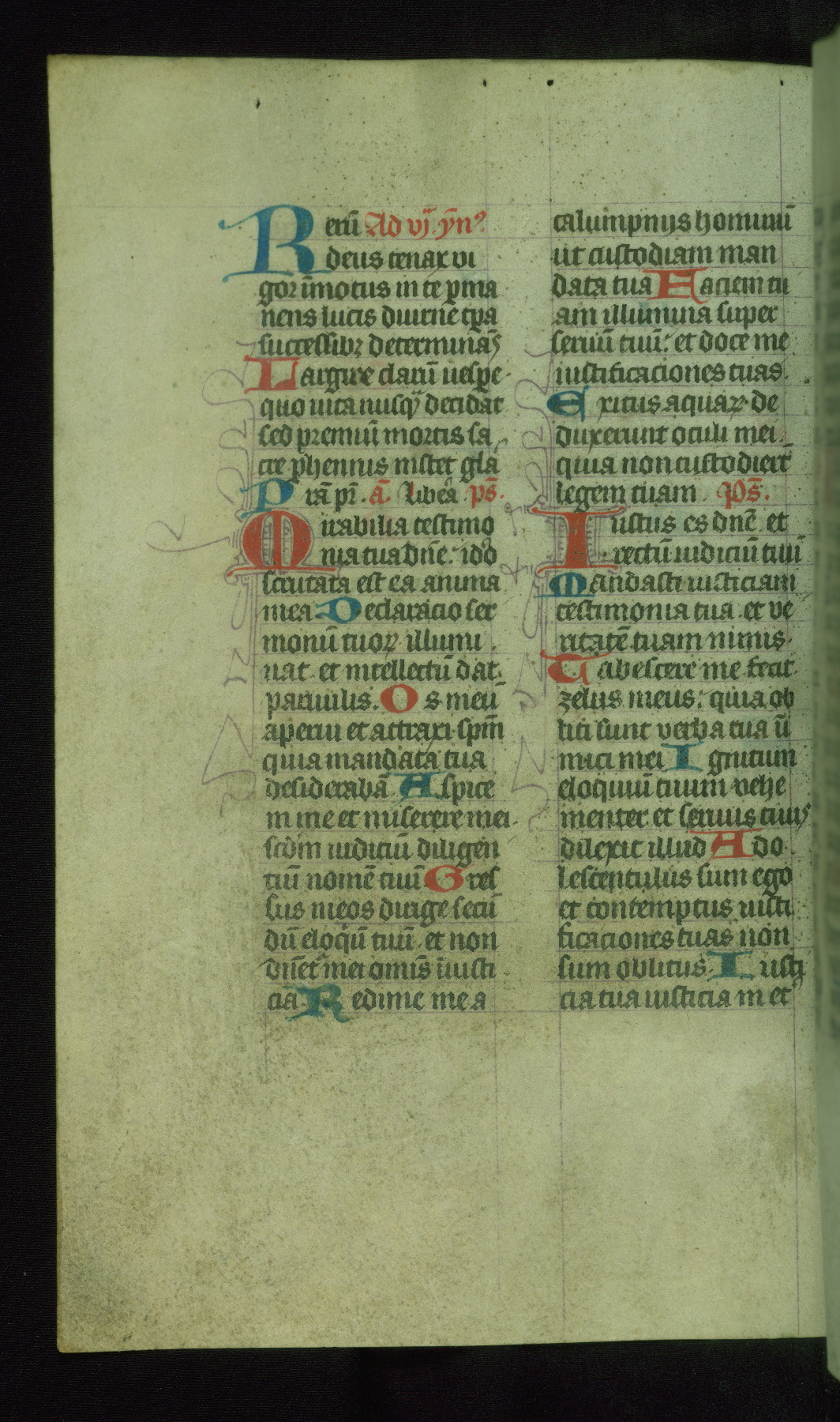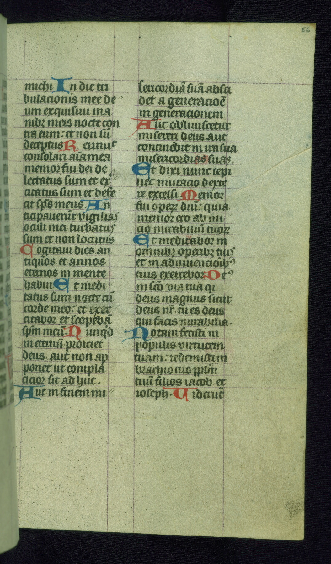 This small breviary, composed of more than 500 folios, is extraordinary for its length, considering it is the summer portion of a two-volume breviary for the use of Liège. The manuscript was completed for ecclesiastical use at the Cathedral of Notre-Dame and St.-Lambert in Liège ca. 1420. This attribution is suggested, for instance, by the petitions to the congregation of this cathedral (fols. 114v-117v), as well as the armorial shield of the family of Surlet de Chokier of Liège represented at the opening of the Psalms. The manuscript has modest, but interesting, decoration with historiated and decorated initials marking the liturgical texts, and occasional angels playing instruments in the margins. The most notable pictorial effect is found in the initials inhabited by transparent figures on rich blue ground. The technique is found, for instance, on fol. 156r with the gold monstrance held by translucent angels for the feast of the Corpus Christi.