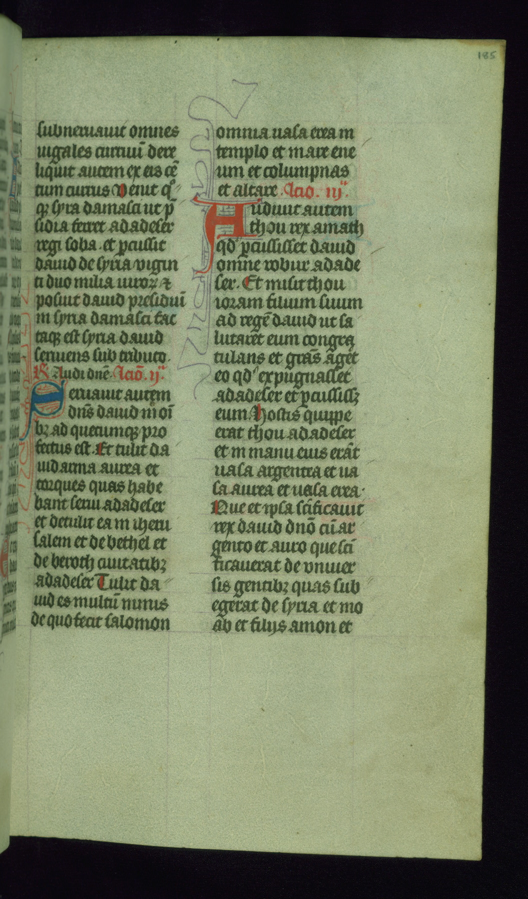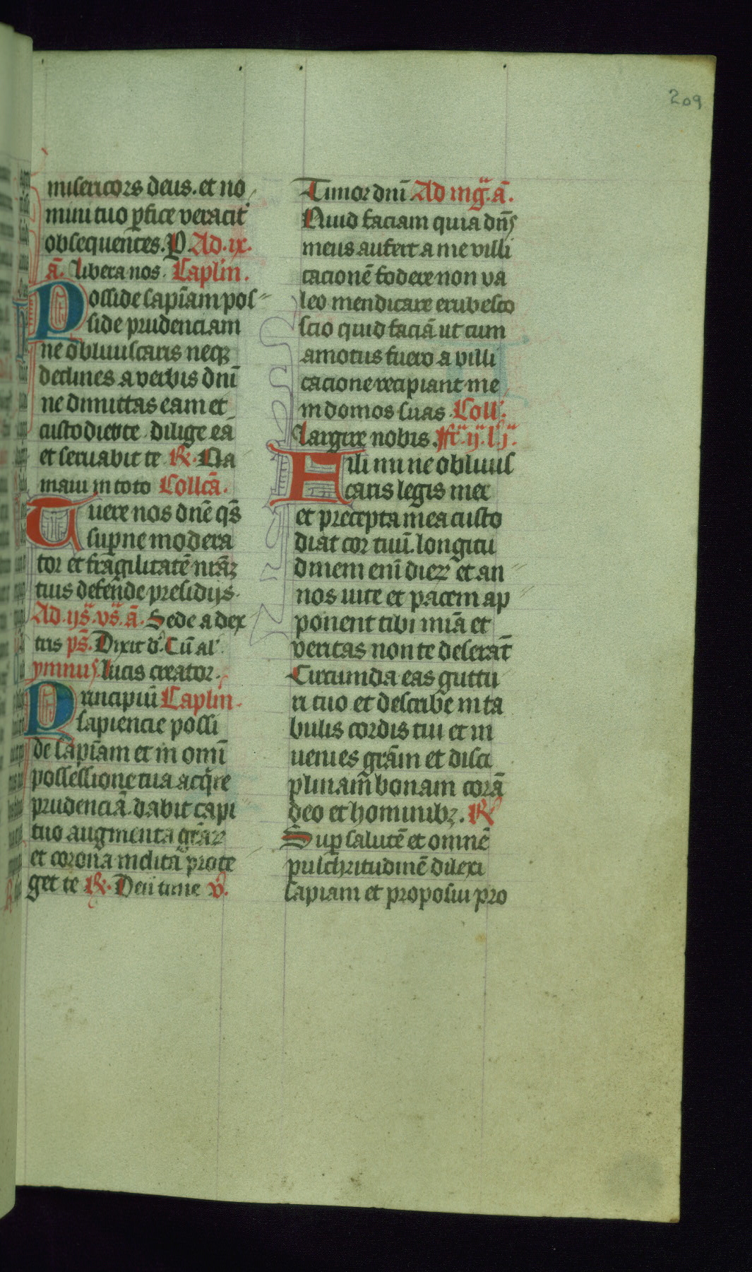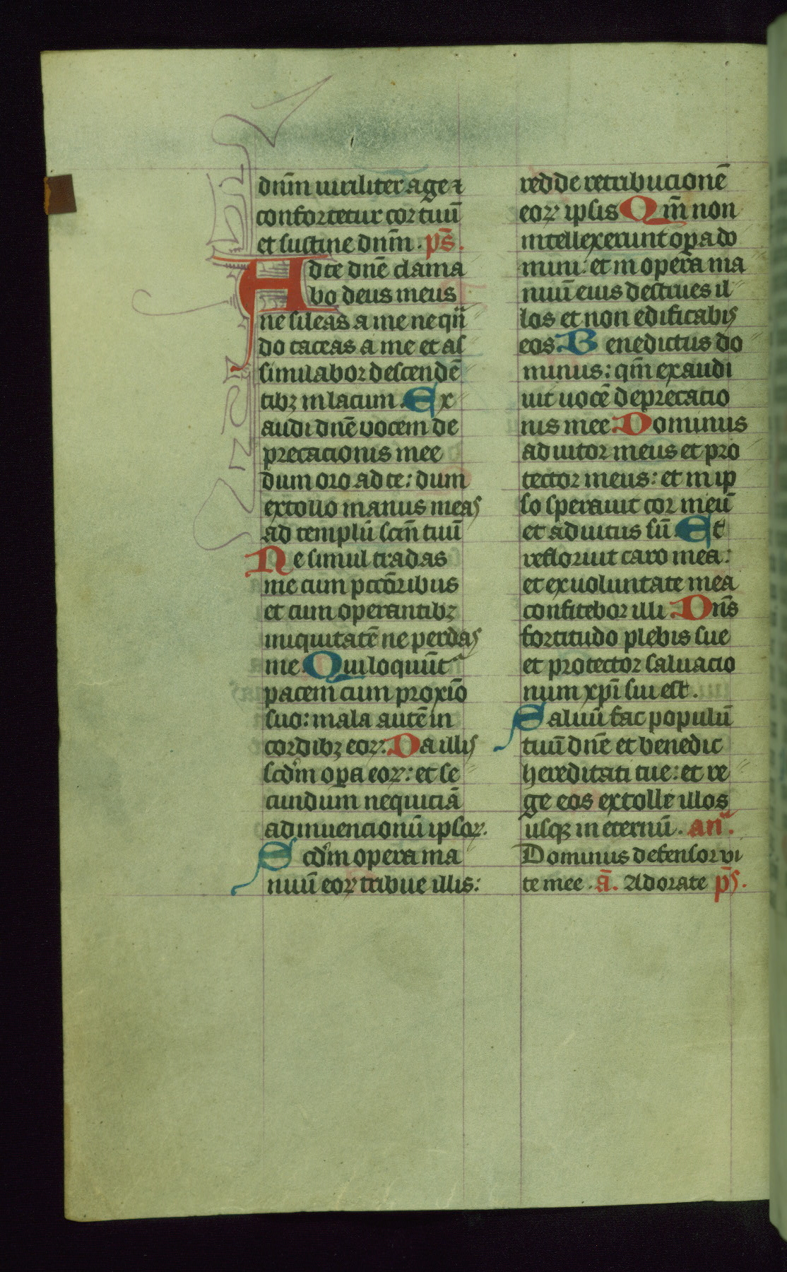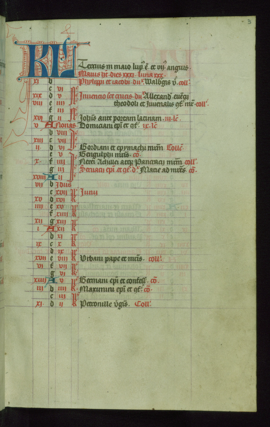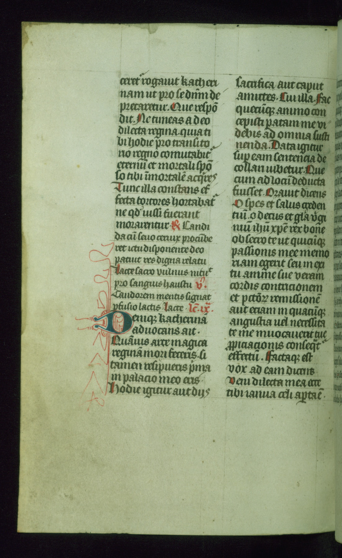 This small breviary, composed of more than 500 folios, is extraordinary for its length, considering it is the summer portion of a two-volume breviary for the use of Liège. The manuscript was completed for ecclesiastical use at the Cathedral of Notre-Dame and St.-Lambert in Liège ca. 1420. This attribution is suggested, for instance, by the petitions to the congregation of this cathedral (fols. 114v-117v), as well as the armorial shield of the family of Surlet de Chokier of Liège represented at the opening of the Psalms. The manuscript has modest, but interesting, decoration with historiated and decorated initials marking the liturgical texts, and occasional angels playing instruments in the margins. The most notable pictorial effect is found in the initials inhabited by transparent figures on rich blue ground. The technique is found, for instance, on fol. 156r with the gold monstrance held by translucent angels for the feast of the Corpus Christi.