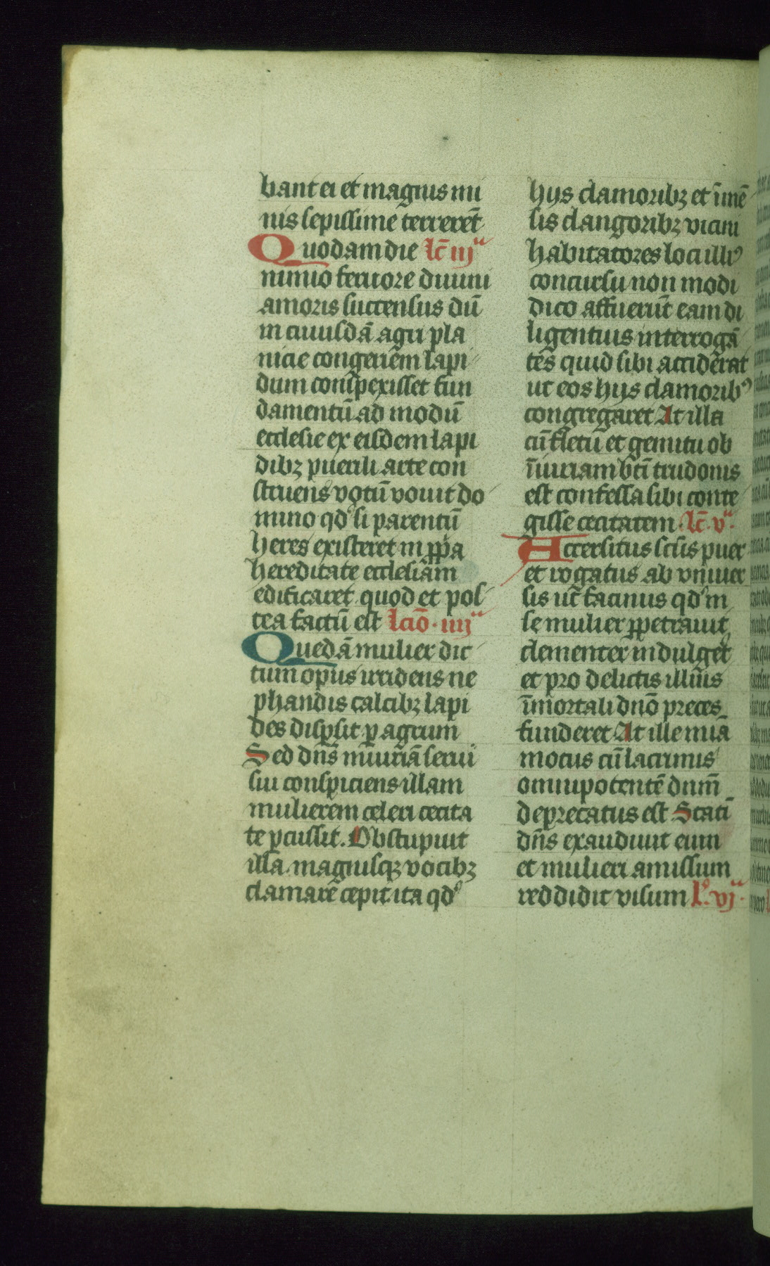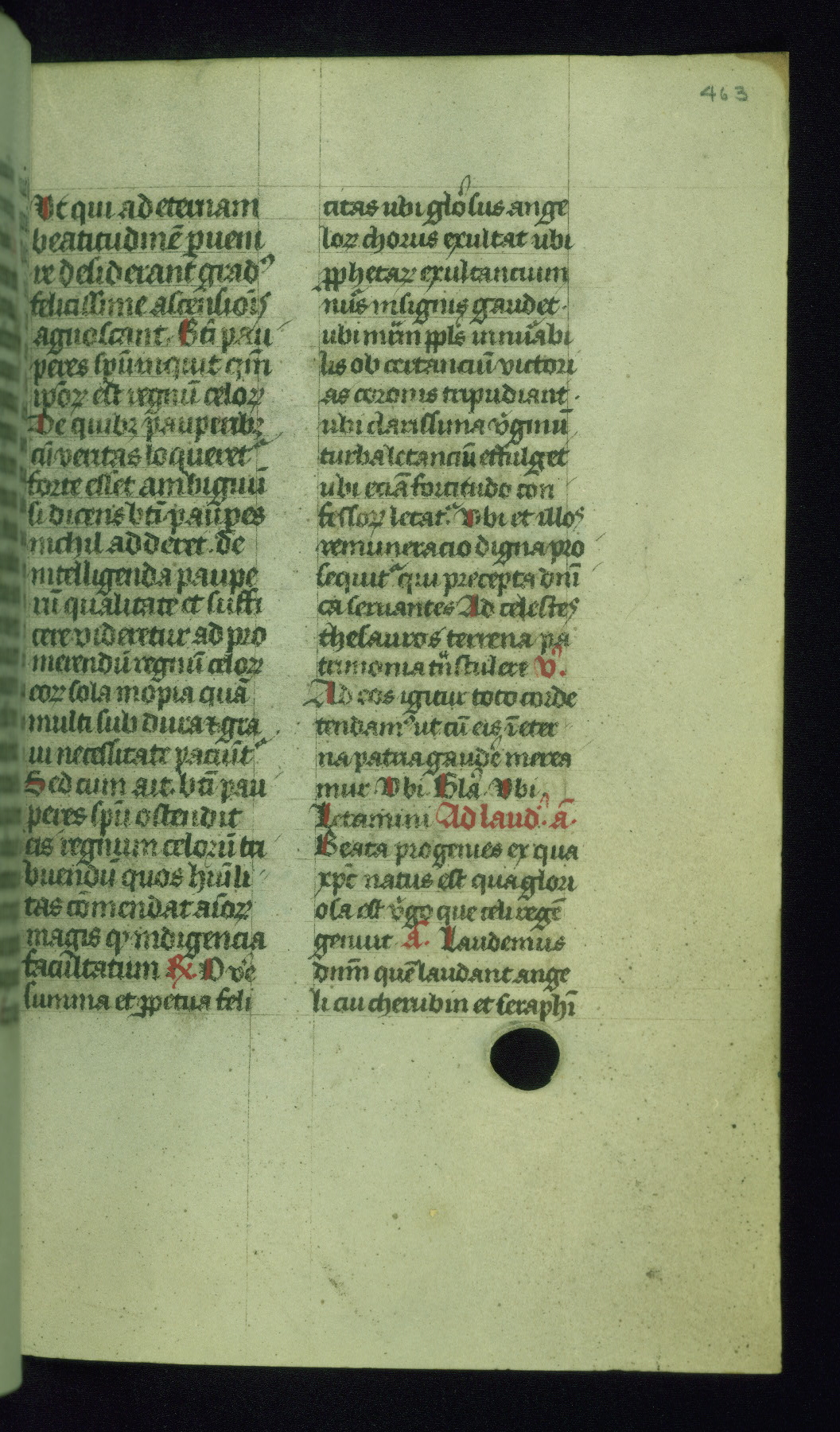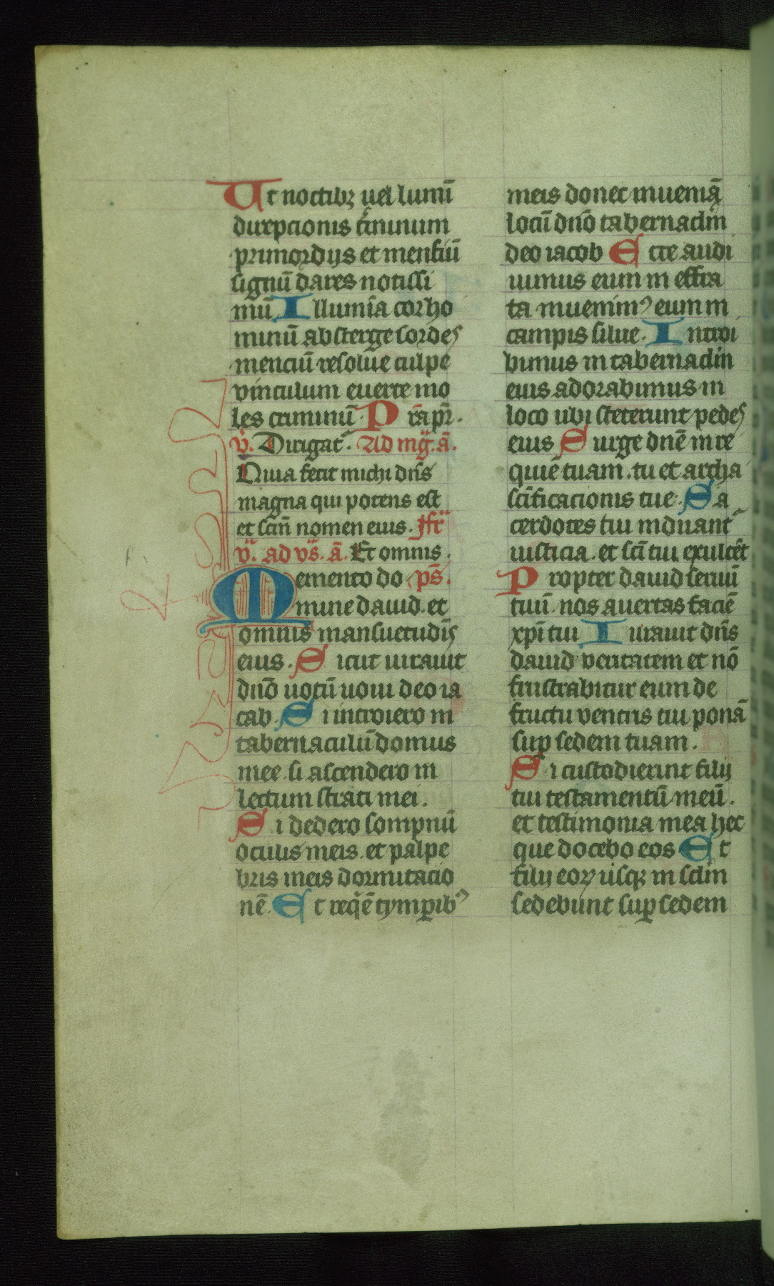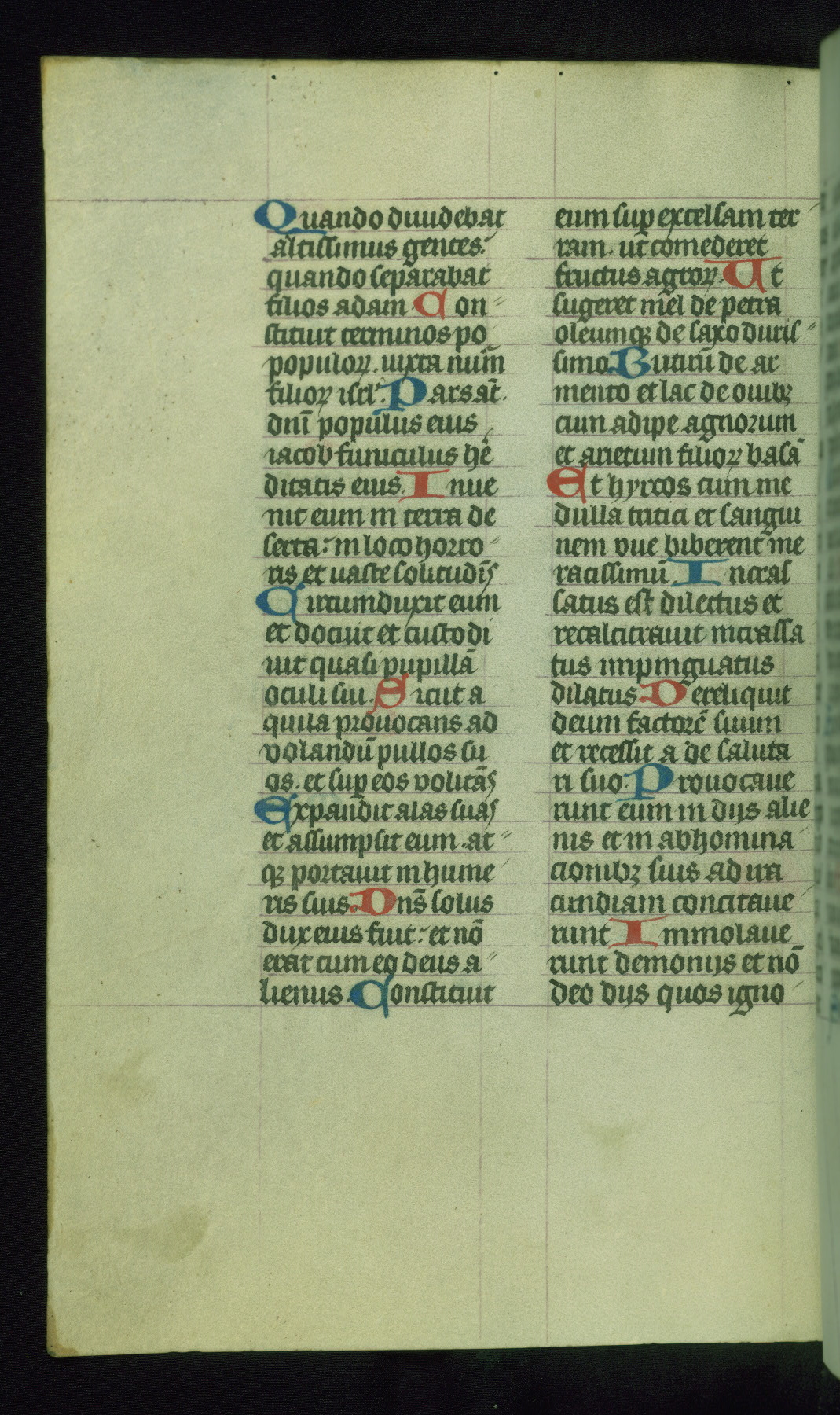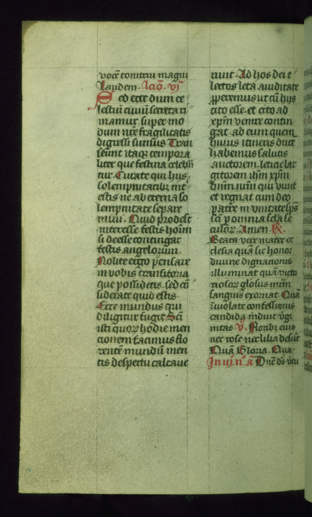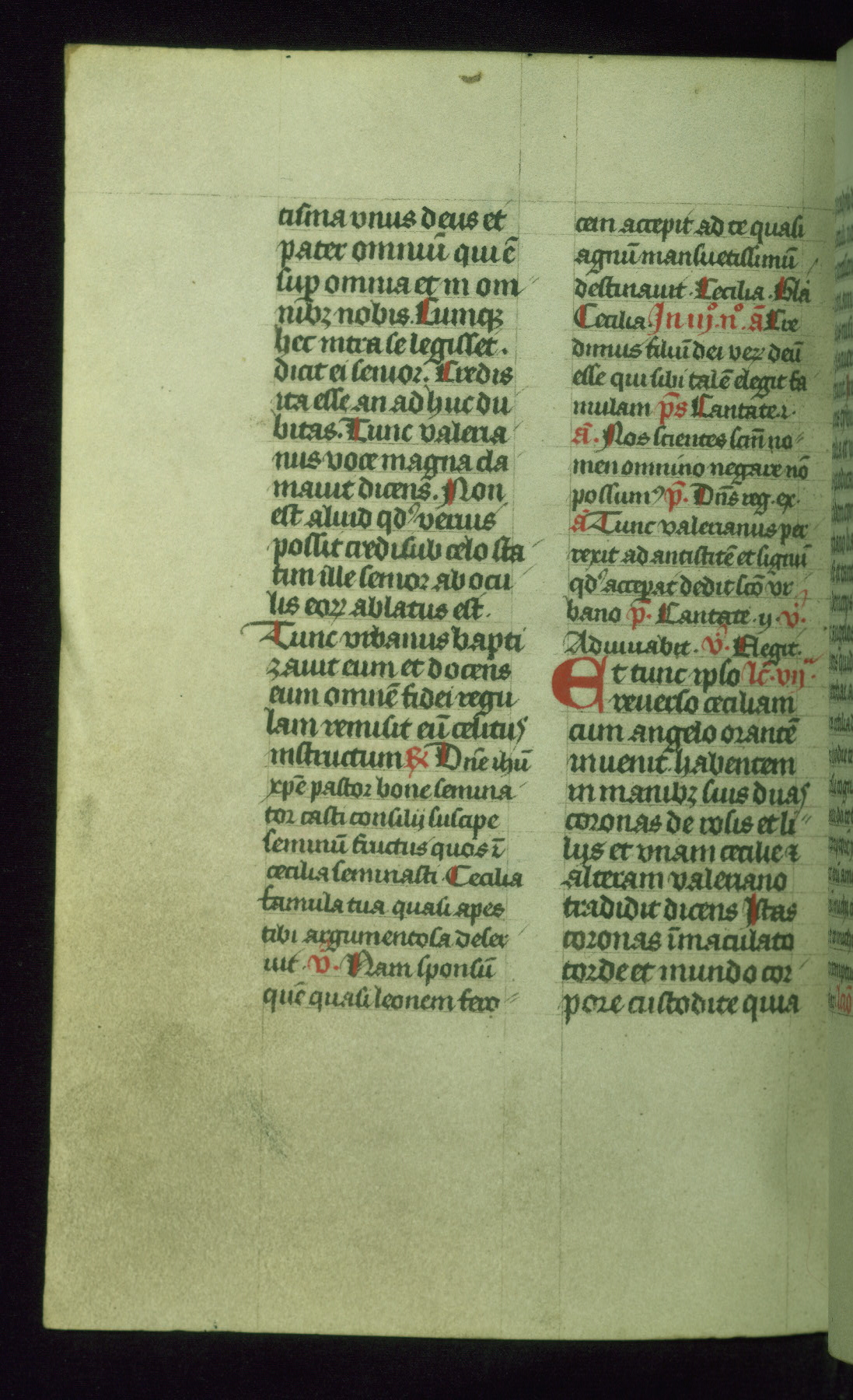 This small breviary, composed of more than 500 folios, is extraordinary for its length, considering it is the summer portion of a two-volume breviary for the use of Liège. The manuscript was completed for ecclesiastical use at the Cathedral of Notre-Dame and St.-Lambert in Liège ca. 1420. This attribution is suggested, for instance, by the petitions to the congregation of this cathedral (fols. 114v-117v), as well as the armorial shield of the family of Surlet de Chokier of Liège represented at the opening of the Psalms. The manuscript has modest, but interesting, decoration with historiated and decorated initials marking the liturgical texts, and occasional angels playing instruments in the margins. The most notable pictorial effect is found in the initials inhabited by transparent figures on rich blue ground. The technique is found, for instance, on fol. 156r with the gold monstrance held by translucent angels for the feast of the Corpus Christi.