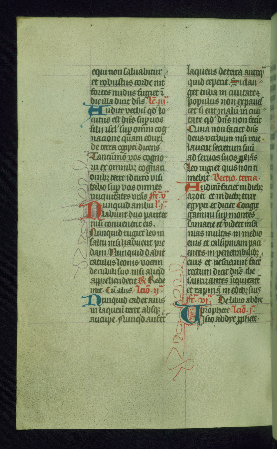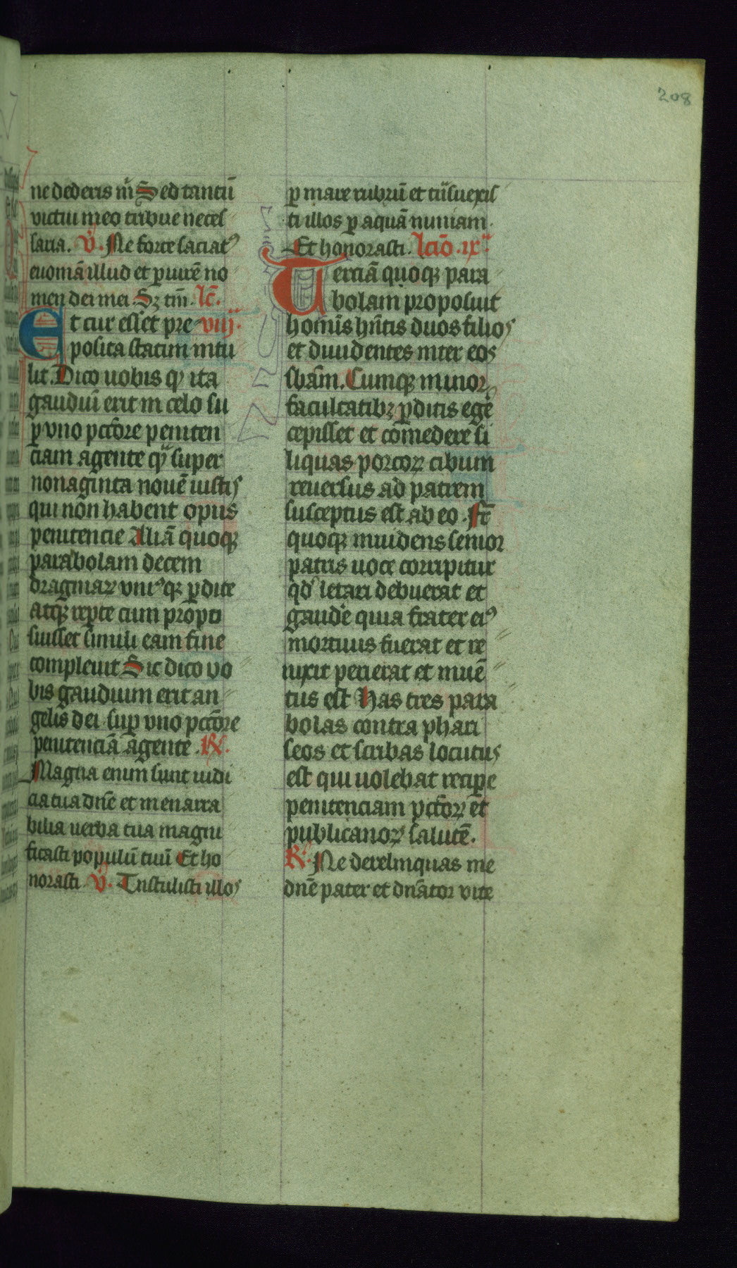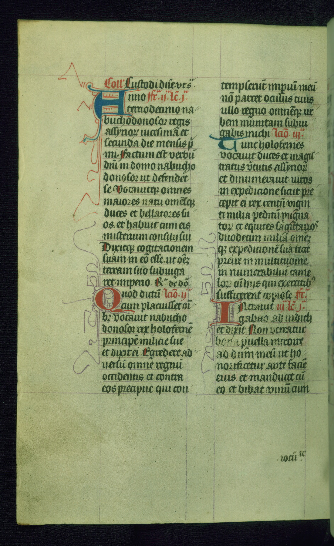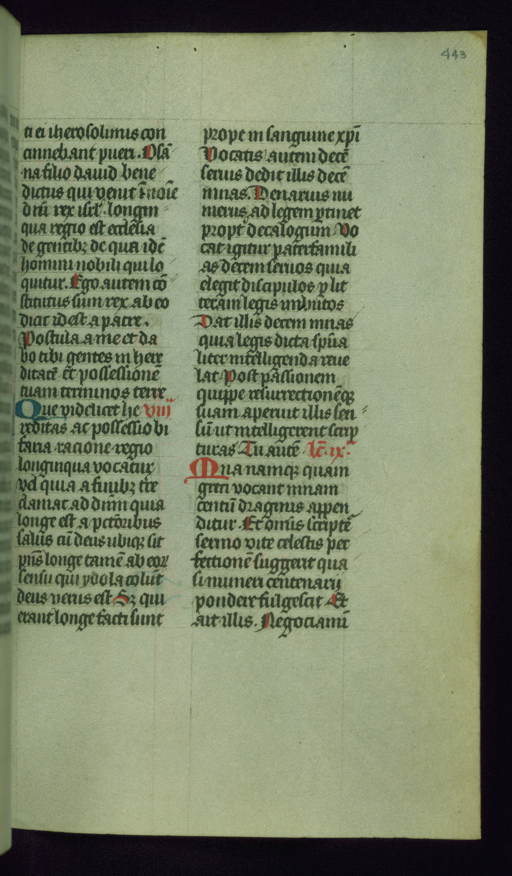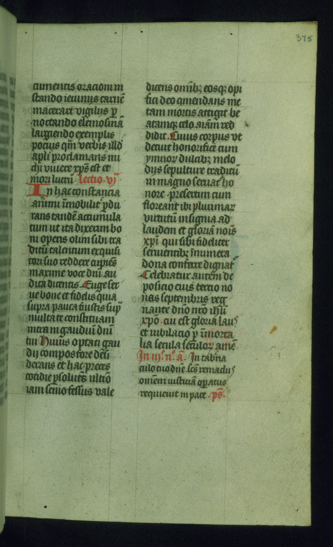 This small breviary, composed of more than 500 folios, is extraordinary for its length, considering it is the summer portion of a two-volume breviary for the use of Liège. The manuscript was completed for ecclesiastical use at the Cathedral of Notre-Dame and St.-Lambert in Liège ca. 1420. This attribution is suggested, for instance, by the petitions to the congregation of this cathedral (fols. 114v-117v), as well as the armorial shield of the family of Surlet de Chokier of Liège represented at the opening of the Psalms. The manuscript has modest, but interesting, decoration with historiated and decorated initials marking the liturgical texts, and occasional angels playing instruments in the margins. The most notable pictorial effect is found in the initials inhabited by transparent figures on rich blue ground. The technique is found, for instance, on fol. 156r with the gold monstrance held by translucent angels for the feast of the Corpus Christi.