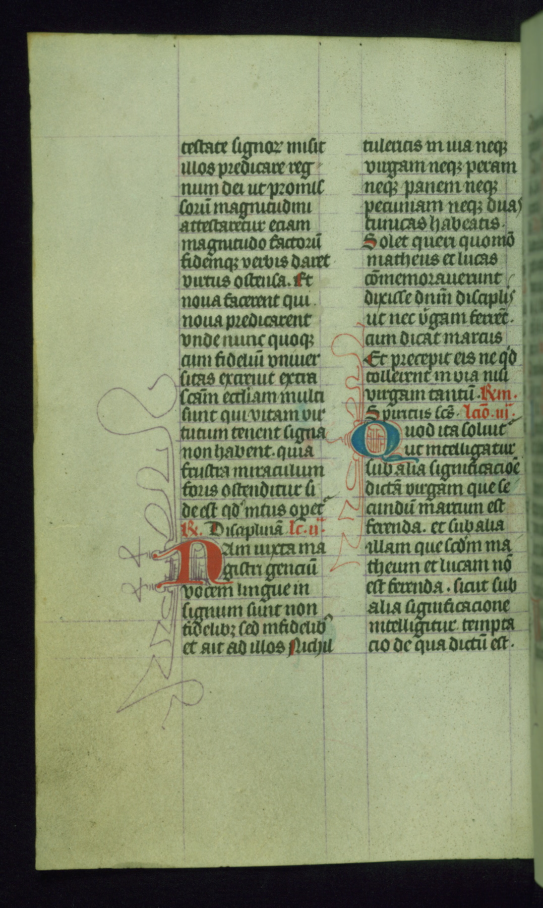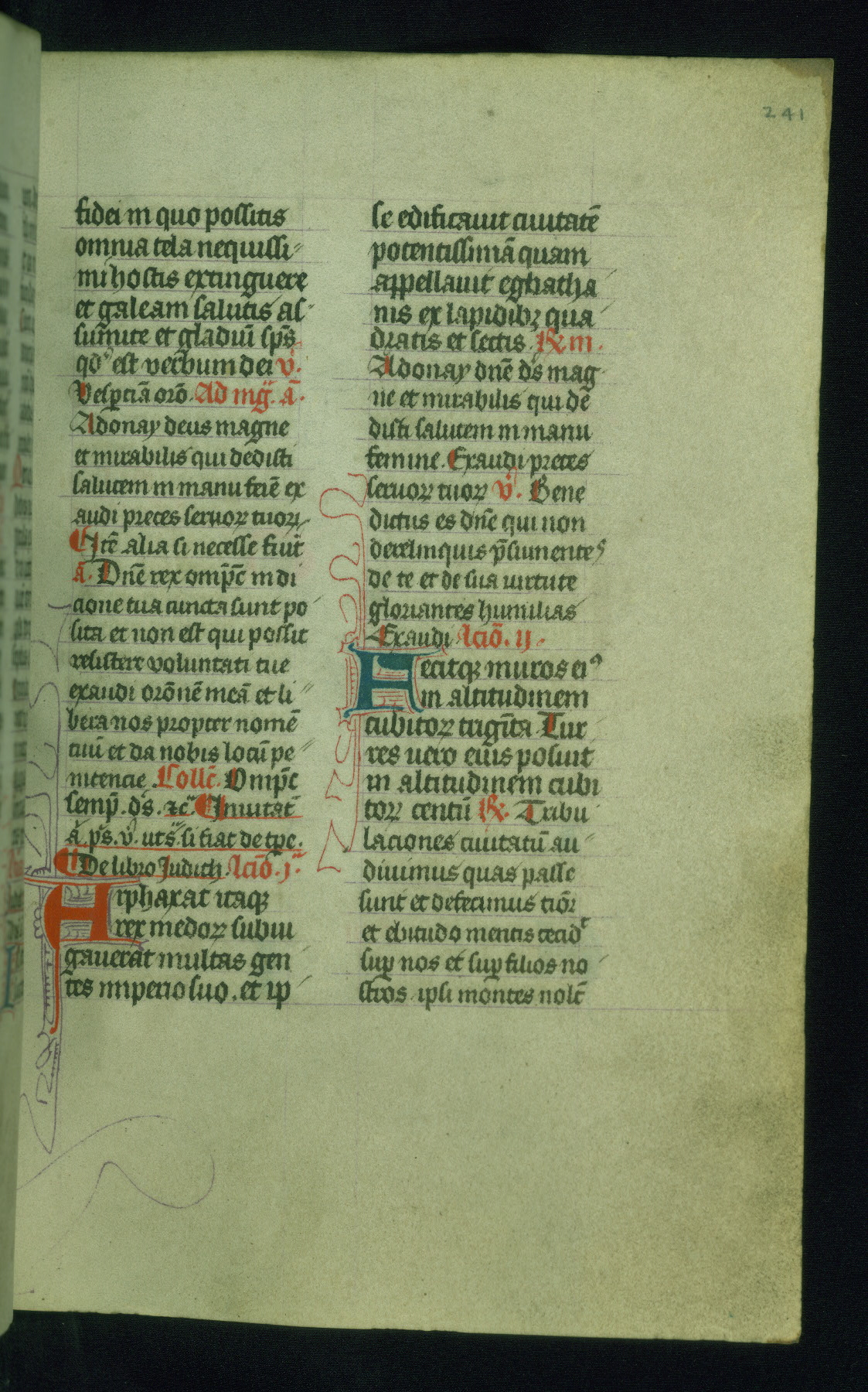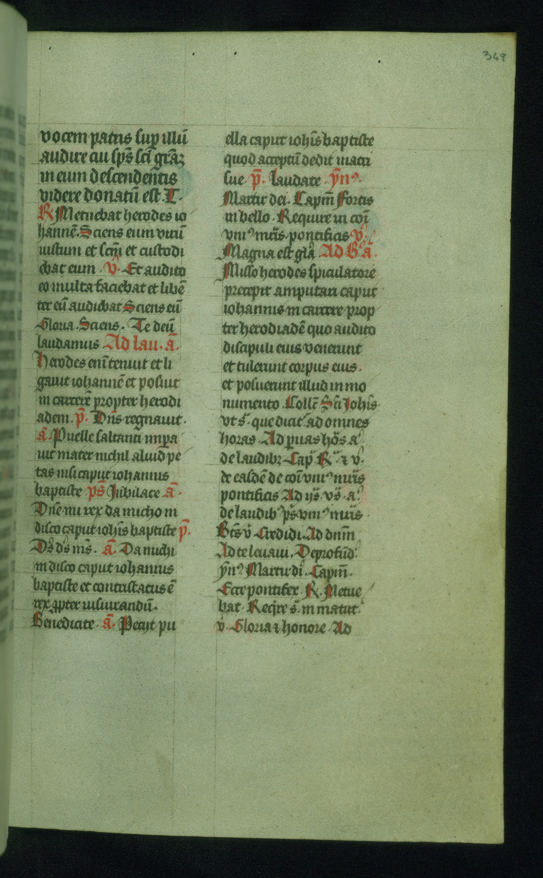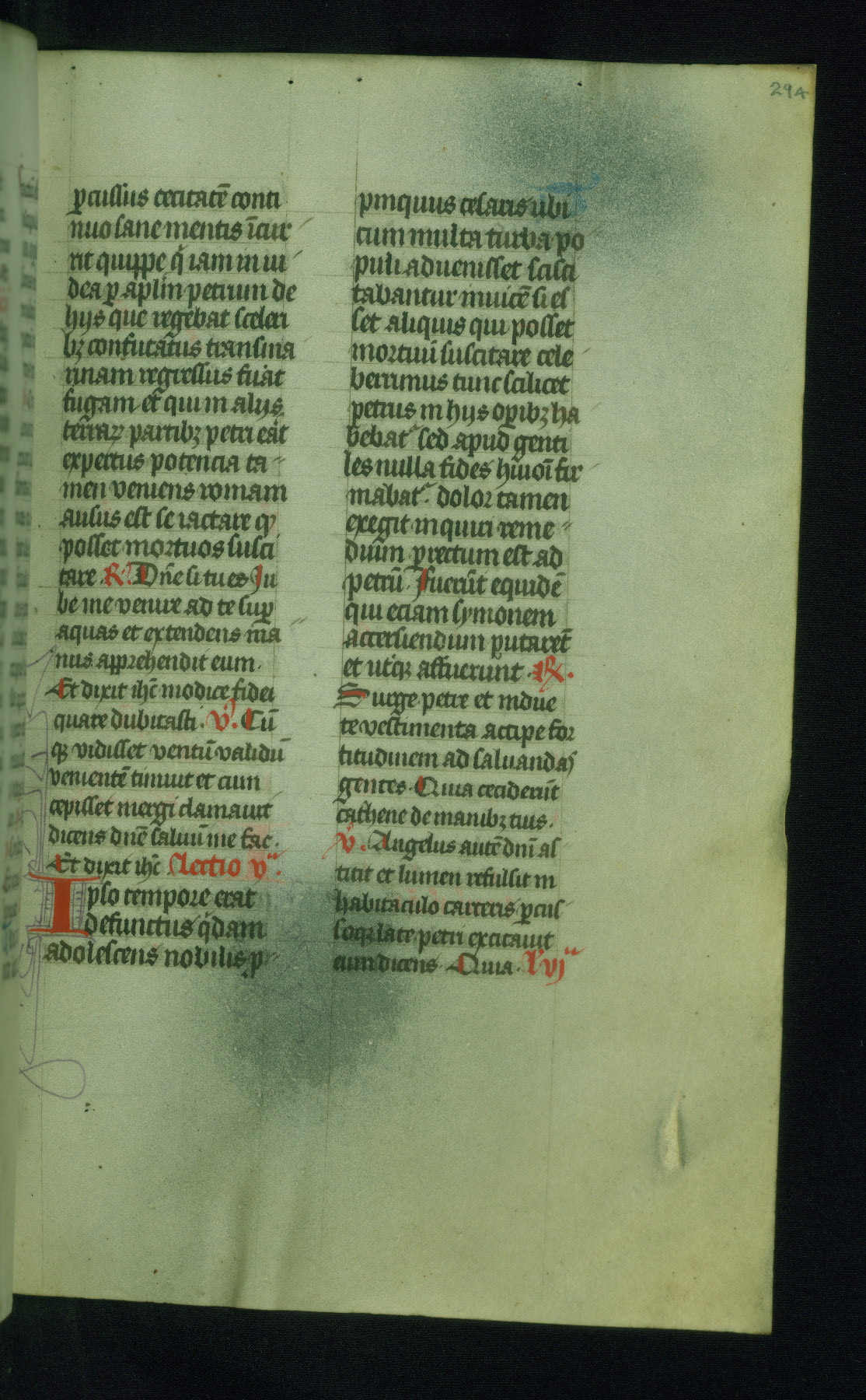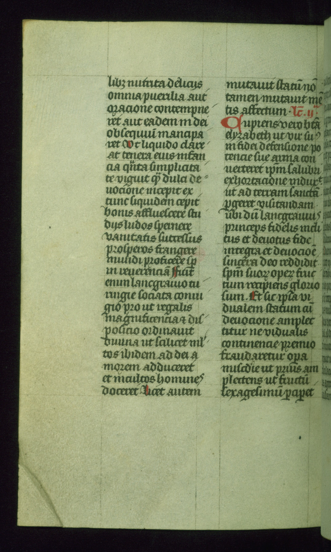 This small breviary, composed of more than 500 folios, is extraordinary for its length, considering it is the summer portion of a two-volume breviary for the use of Liège. The manuscript was completed for ecclesiastical use at the Cathedral of Notre-Dame and St.-Lambert in Liège ca. 1420. This attribution is suggested, for instance, by the petitions to the congregation of this cathedral (fols. 114v-117v), as well as the armorial shield of the family of Surlet de Chokier of Liège represented at the opening of the Psalms. The manuscript has modest, but interesting, decoration with historiated and decorated initials marking the liturgical texts, and occasional angels playing instruments in the margins. The most notable pictorial effect is found in the initials inhabited by transparent figures on rich blue ground. The technique is found, for instance, on fol. 156r with the gold monstrance held by translucent angels for the feast of the Corpus Christi.