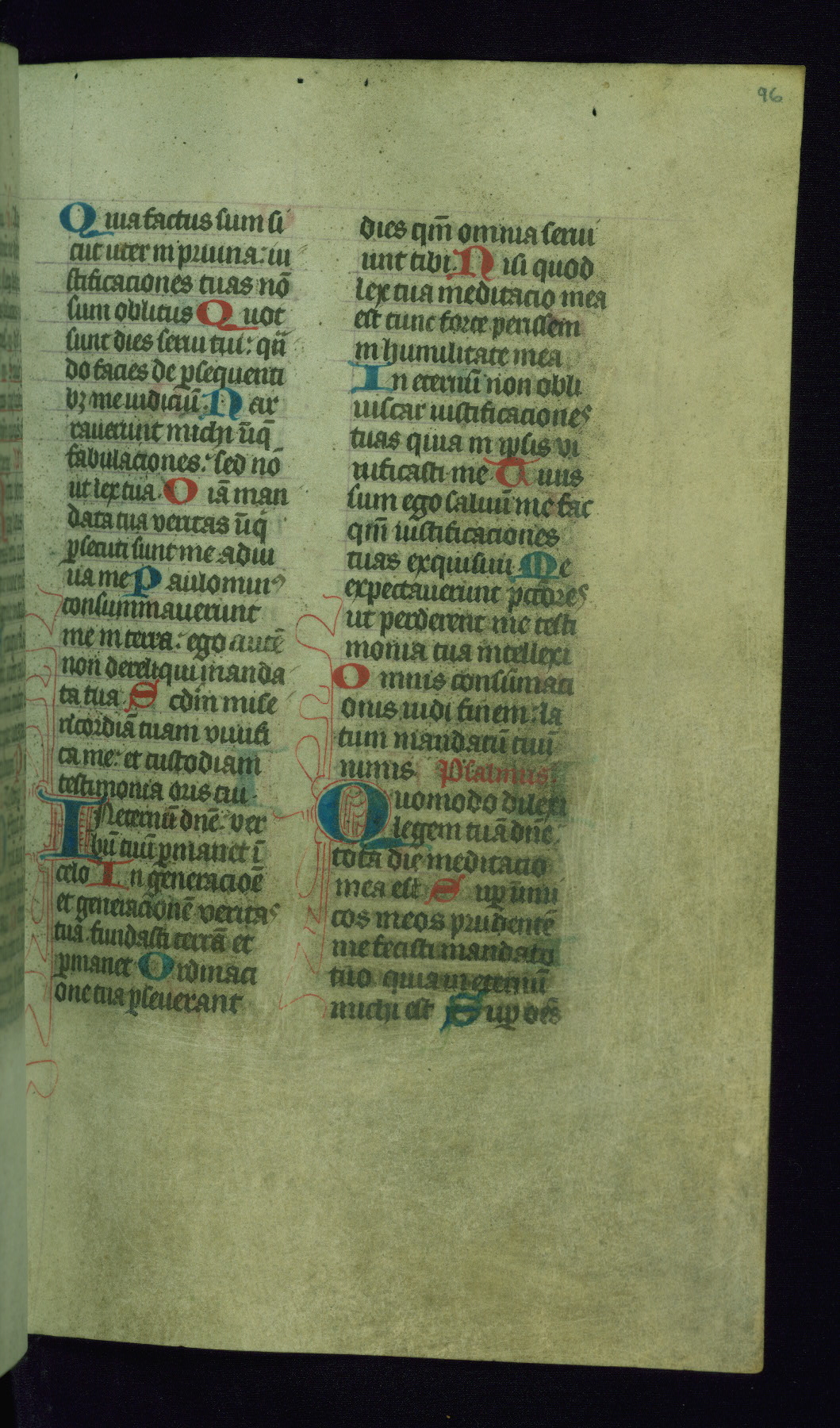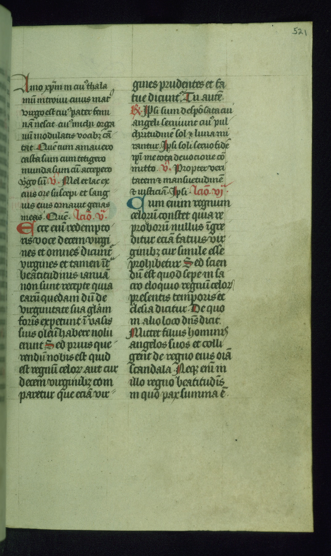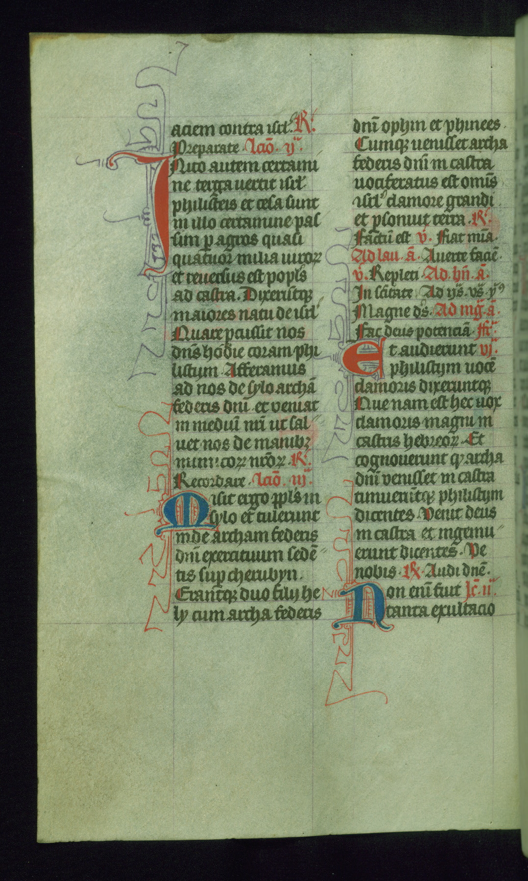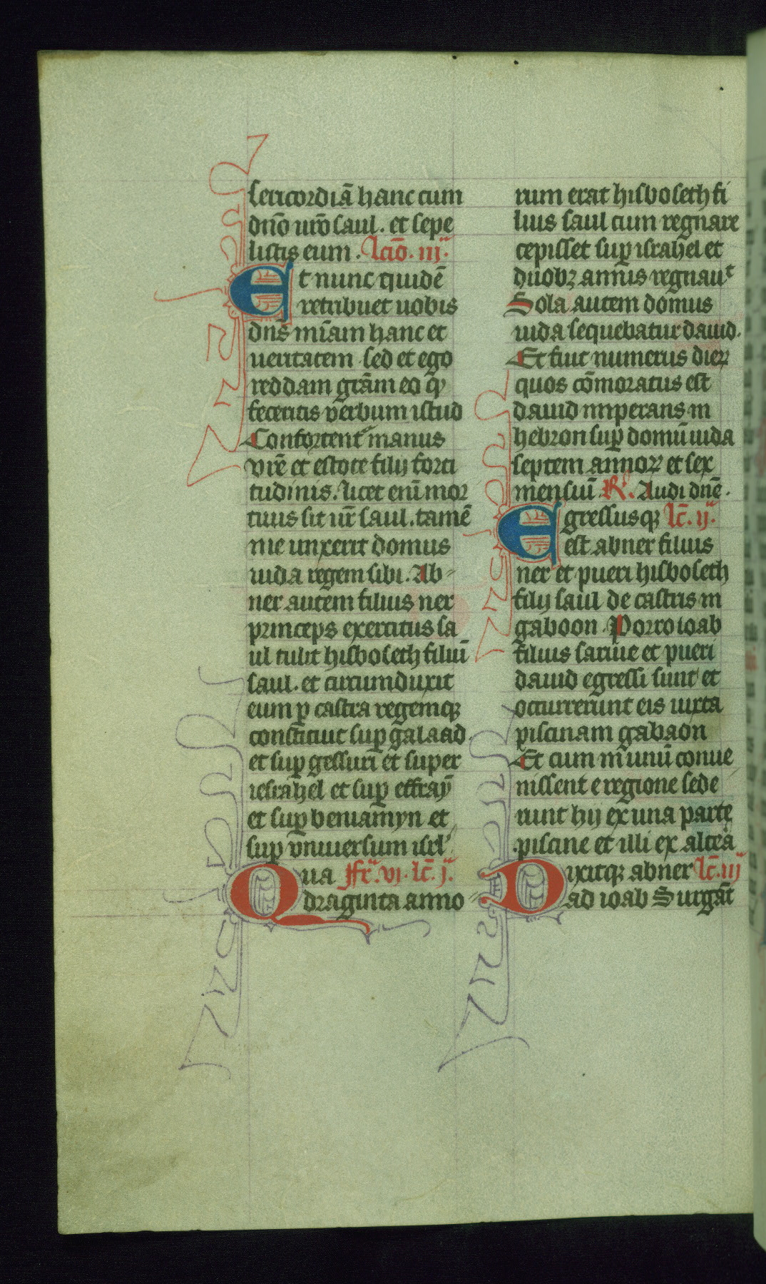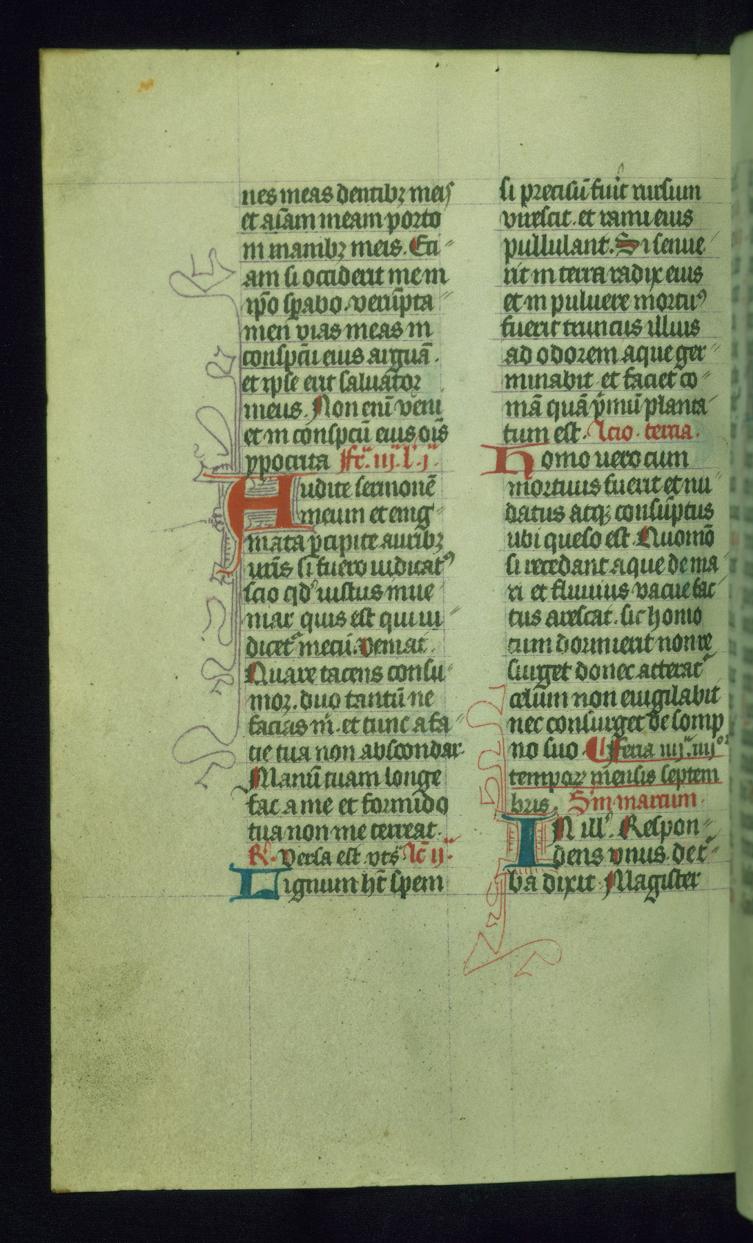 This small breviary, composed of more than 500 folios, is extraordinary for its length, considering it is the summer portion of a two-volume breviary for the use of Liège. The manuscript was completed for ecclesiastical use at the Cathedral of Notre-Dame and St.-Lambert in Liège ca. 1420. This attribution is suggested, for instance, by the petitions to the congregation of this cathedral (fols. 114v-117v), as well as the armorial shield of the family of Surlet de Chokier of Liège represented at the opening of the Psalms. The manuscript has modest, but interesting, decoration with historiated and decorated initials marking the liturgical texts, and occasional angels playing instruments in the margins. The most notable pictorial effect is found in the initials inhabited by transparent figures on rich blue ground. The technique is found, for instance, on fol. 156r with the gold monstrance held by translucent angels for the feast of the Corpus Christi.
