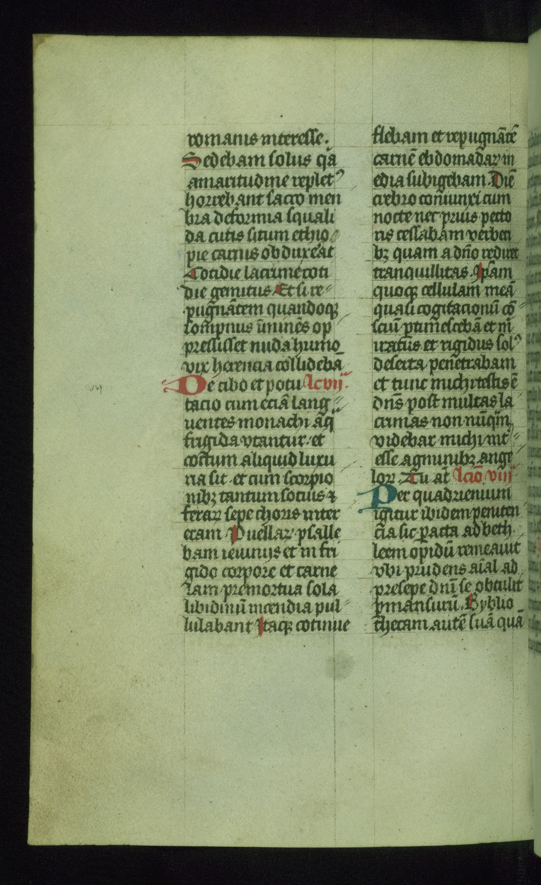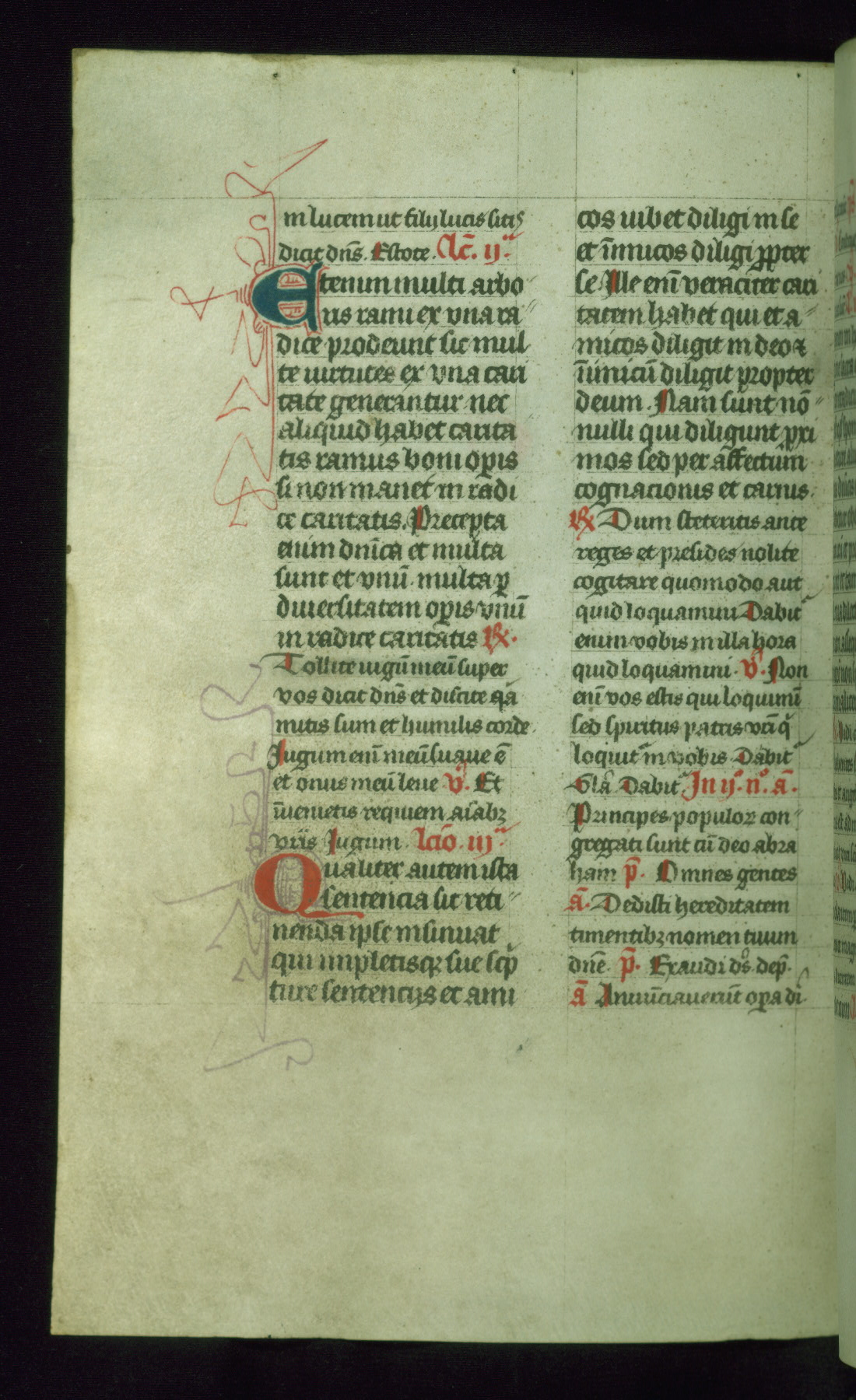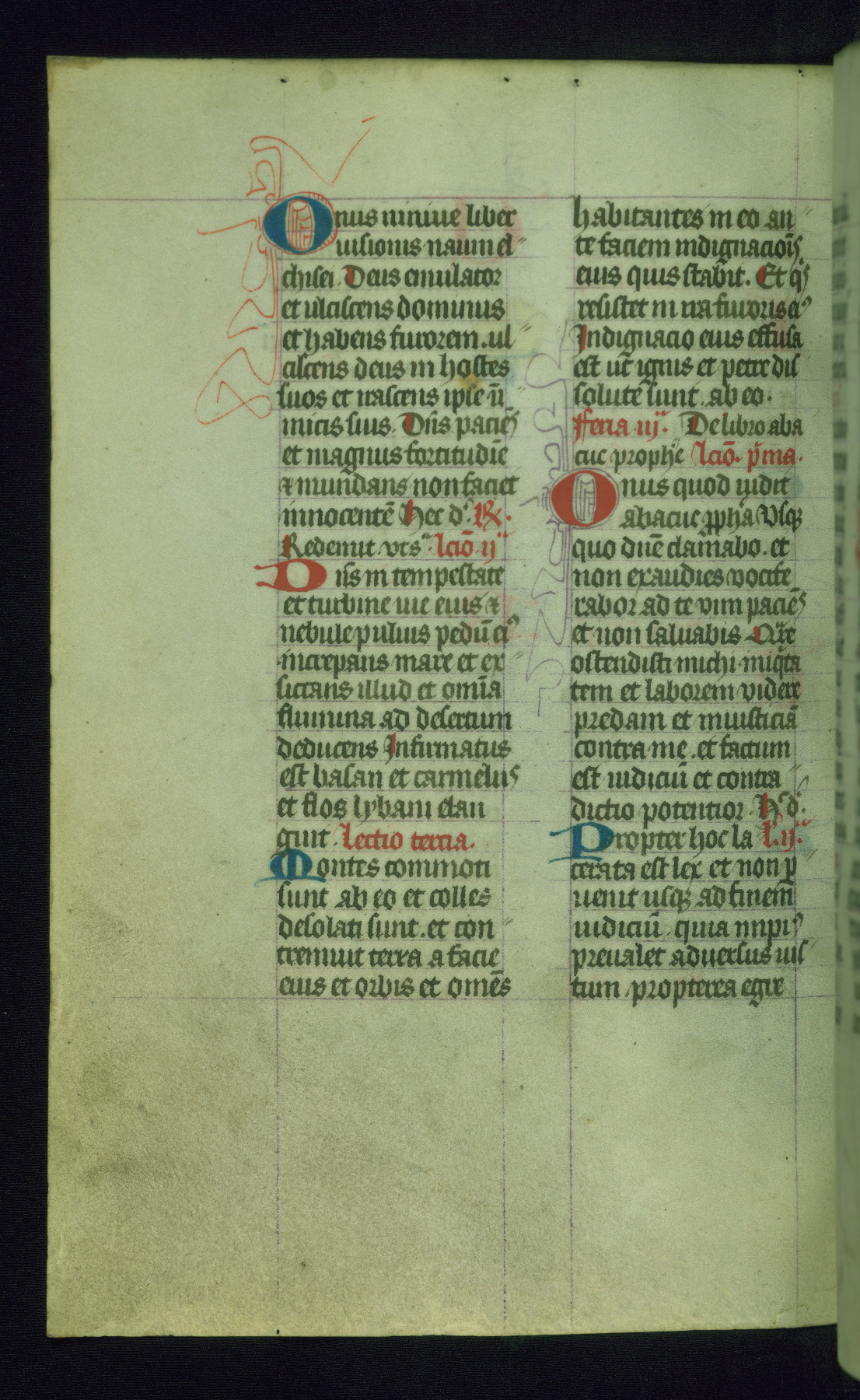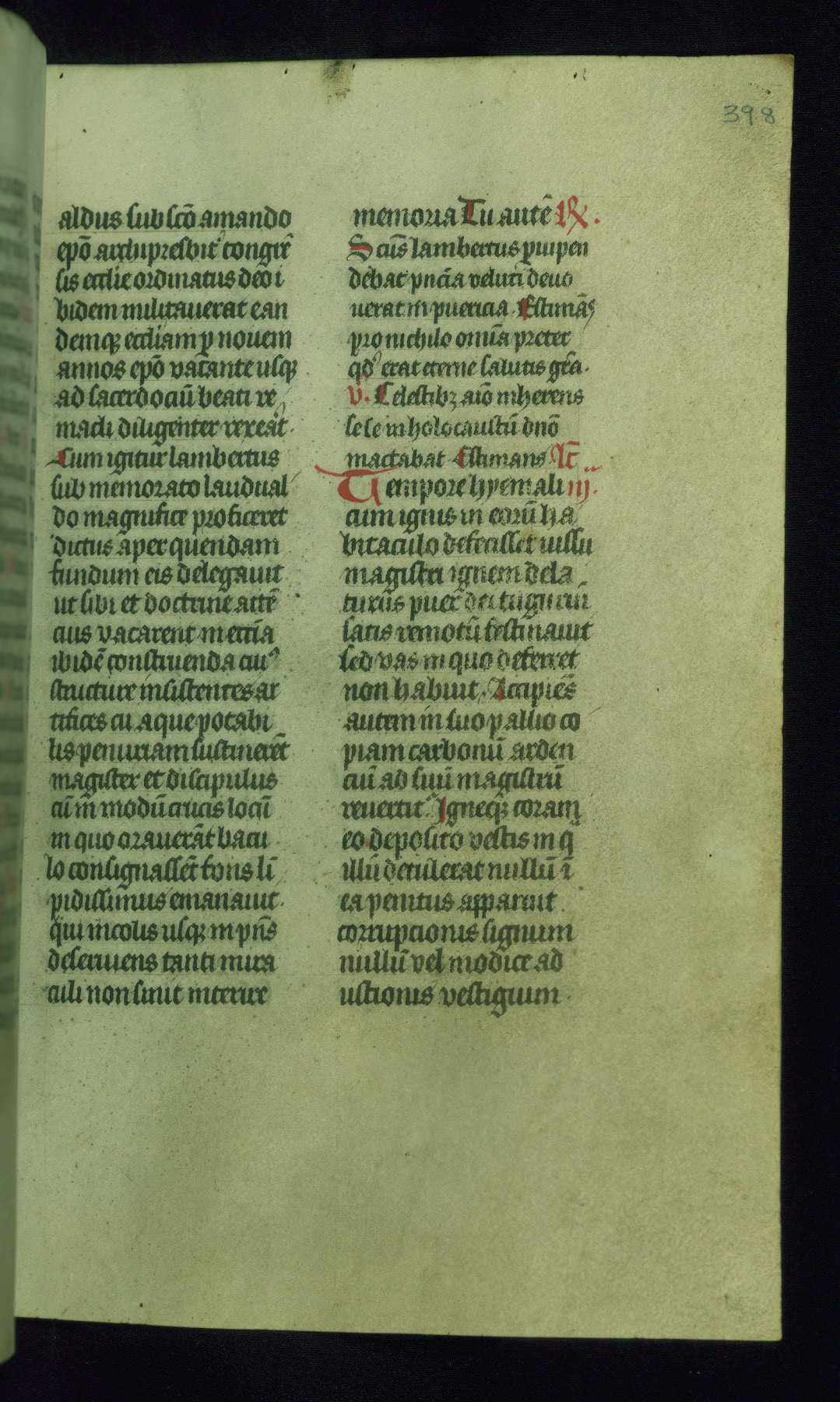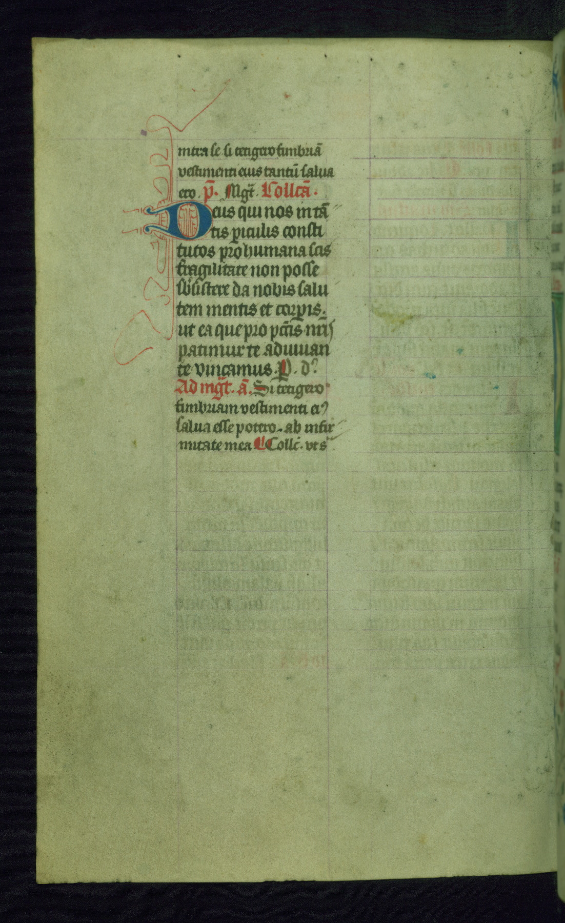 This small breviary, composed of more than 500 folios, is extraordinary for its length, considering it is the summer portion of a two-volume breviary for the use of Liège. The manuscript was completed for ecclesiastical use at the Cathedral of Notre-Dame and St.-Lambert in Liège ca. 1420. This attribution is suggested, for instance, by the petitions to the congregation of this cathedral (fols. 114v-117v), as well as the armorial shield of the family of Surlet de Chokier of Liège represented at the opening of the Psalms. The manuscript has modest, but interesting, decoration with historiated and decorated initials marking the liturgical texts, and occasional angels playing instruments in the margins. The most notable pictorial effect is found in the initials inhabited by transparent figures on rich blue ground. The technique is found, for instance, on fol. 156r with the gold monstrance held by translucent angels for the feast of the Corpus Christi.
