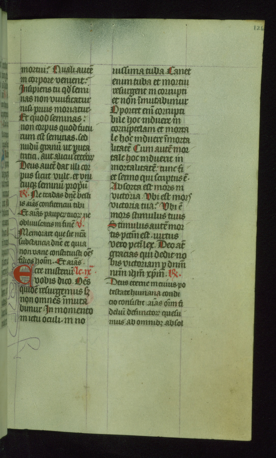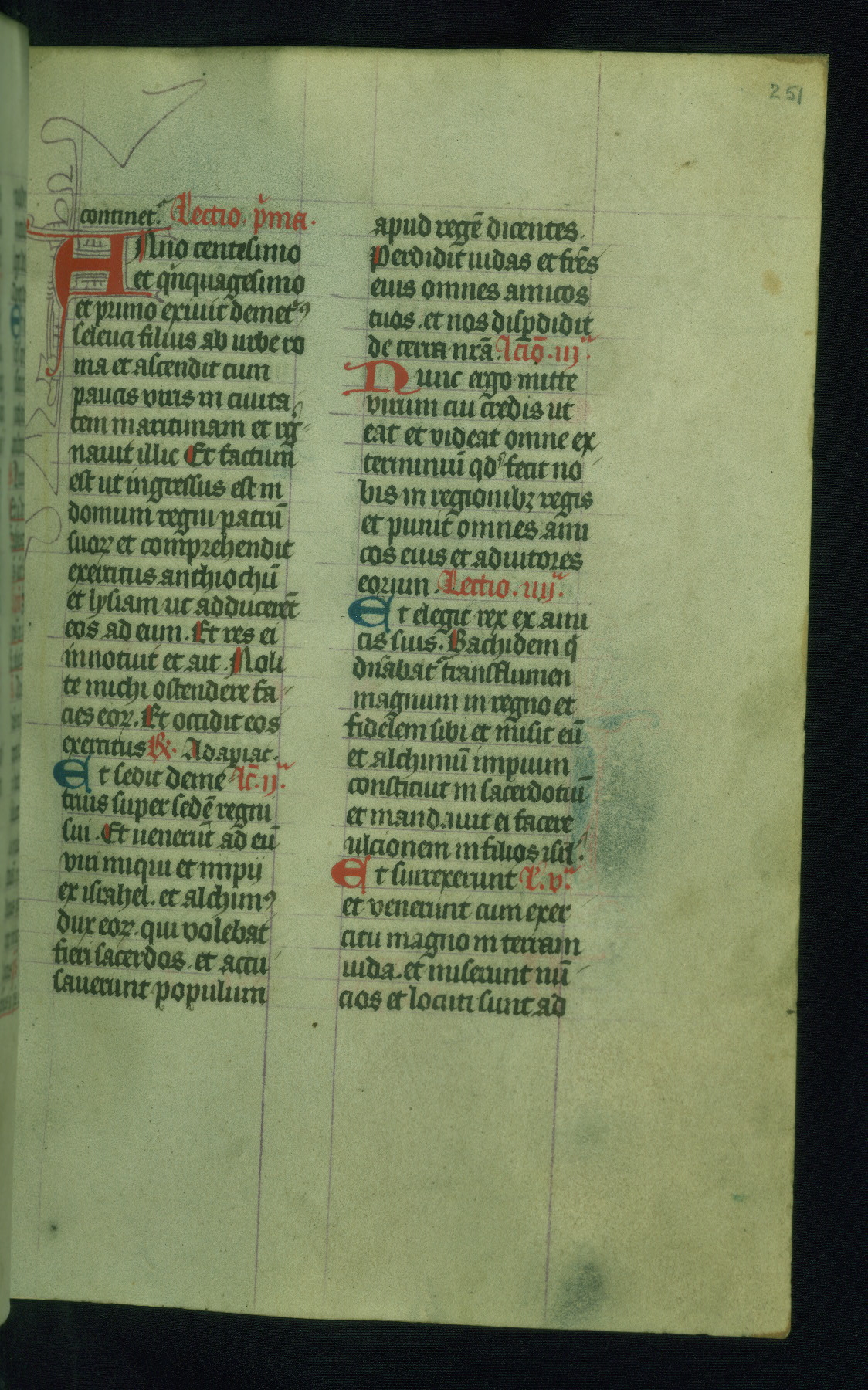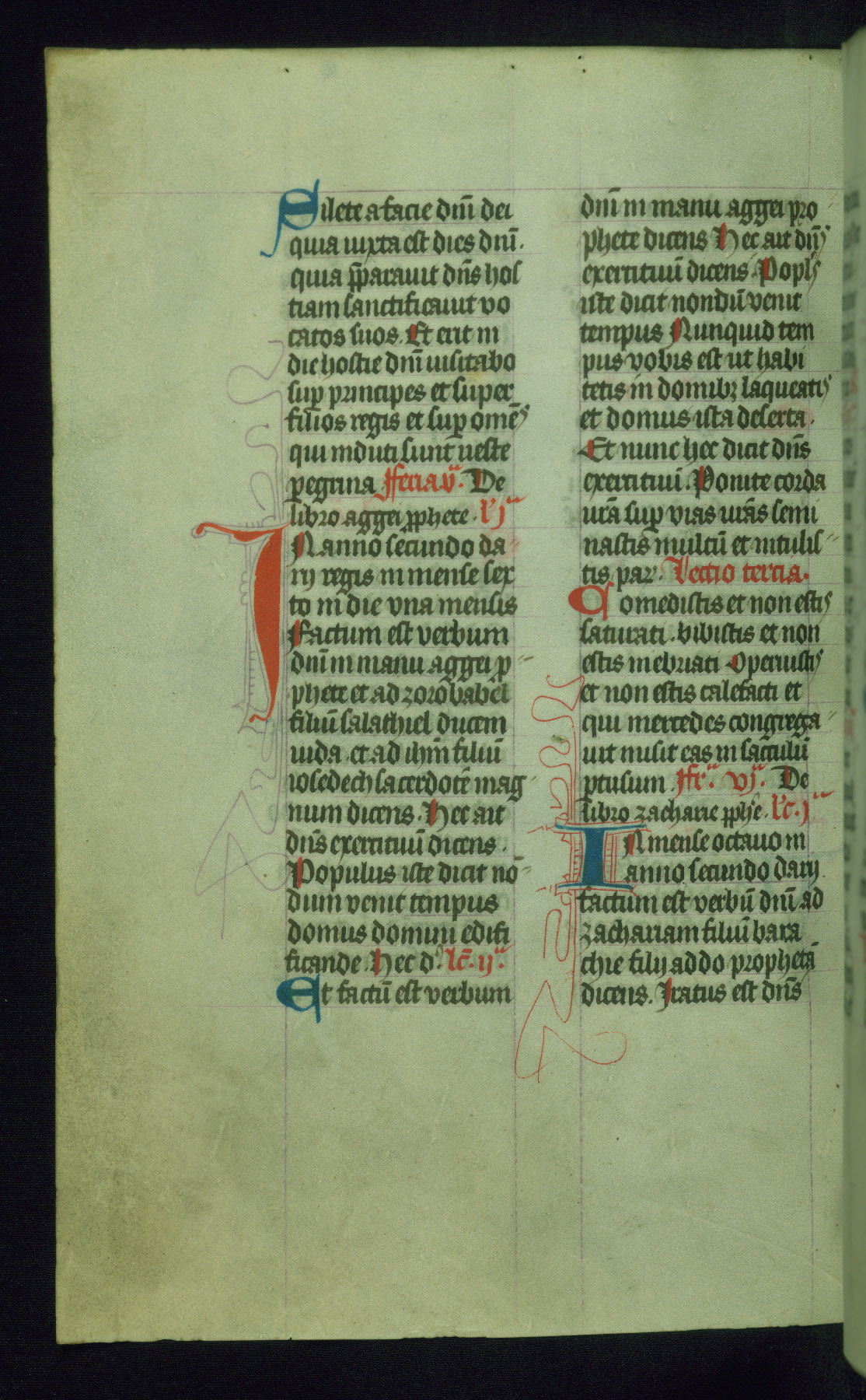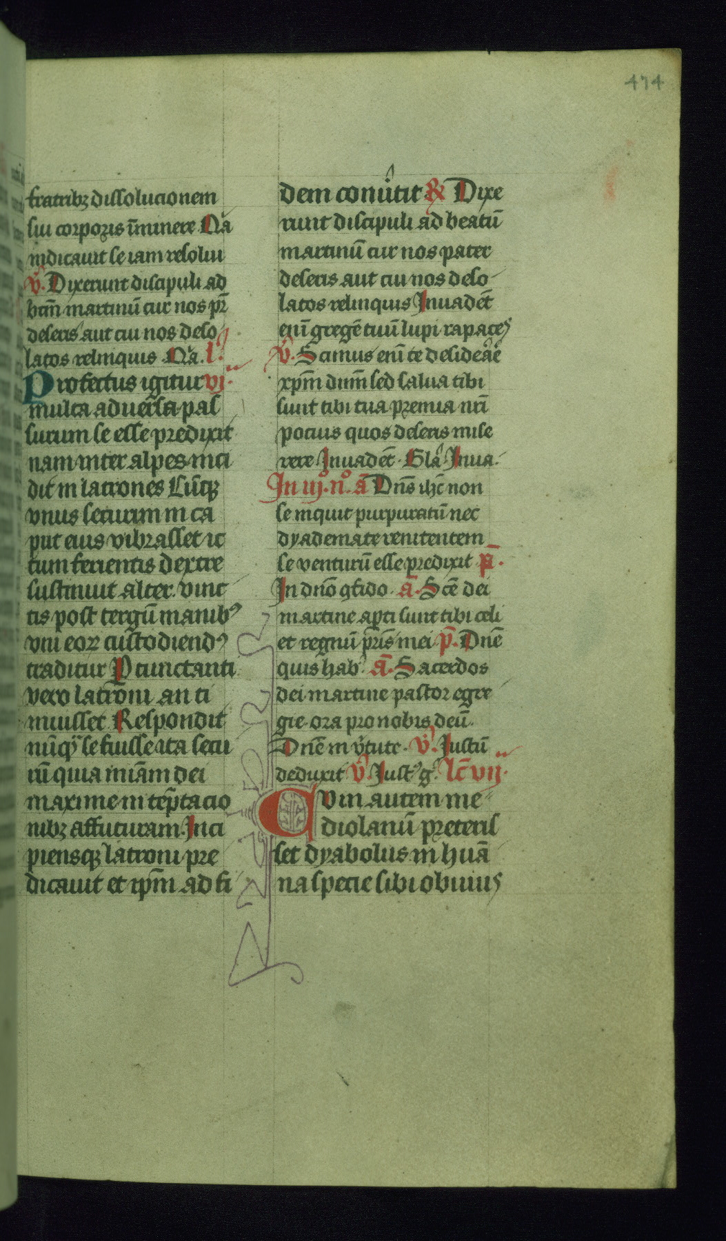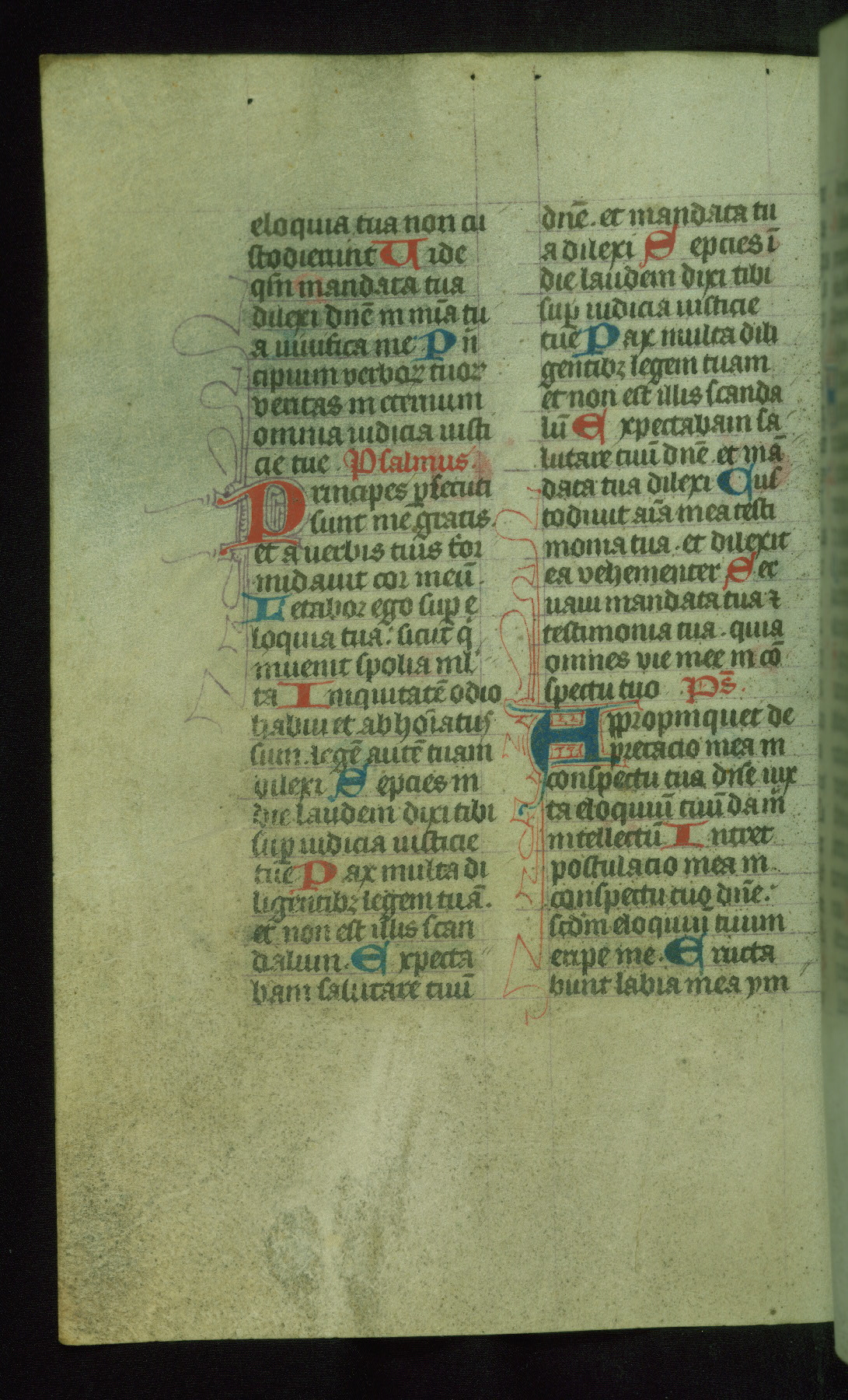 This small breviary, composed of more than 500 folios, is extraordinary for its length, considering it is the summer portion of a two-volume breviary for the use of Liège. The manuscript was completed for ecclesiastical use at the Cathedral of Notre-Dame and St.-Lambert in Liège ca. 1420. This attribution is suggested, for instance, by the petitions to the congregation of this cathedral (fols. 114v-117v), as well as the armorial shield of the family of Surlet de Chokier of Liège represented at the opening of the Psalms. The manuscript has modest, but interesting, decoration with historiated and decorated initials marking the liturgical texts, and occasional angels playing instruments in the margins. The most notable pictorial effect is found in the initials inhabited by transparent figures on rich blue ground. The technique is found, for instance, on fol. 156r with the gold monstrance held by translucent angels for the feast of the Corpus Christi.