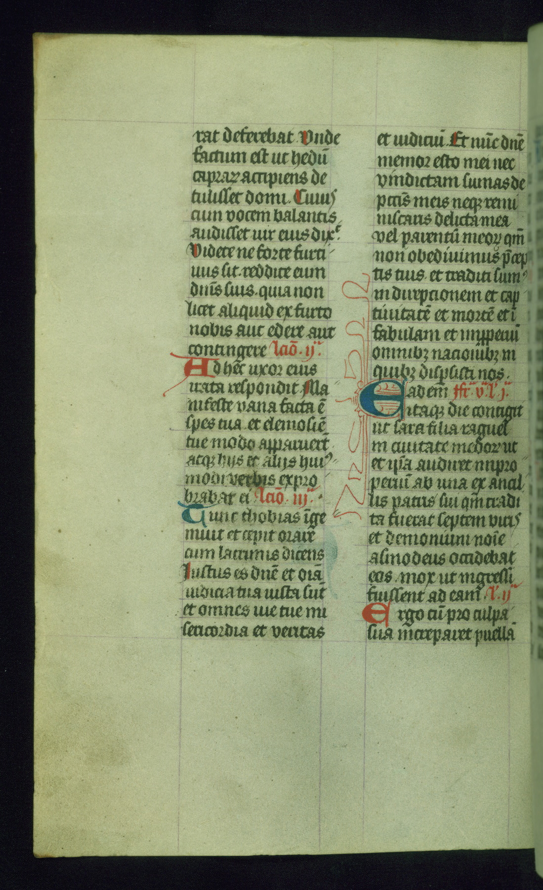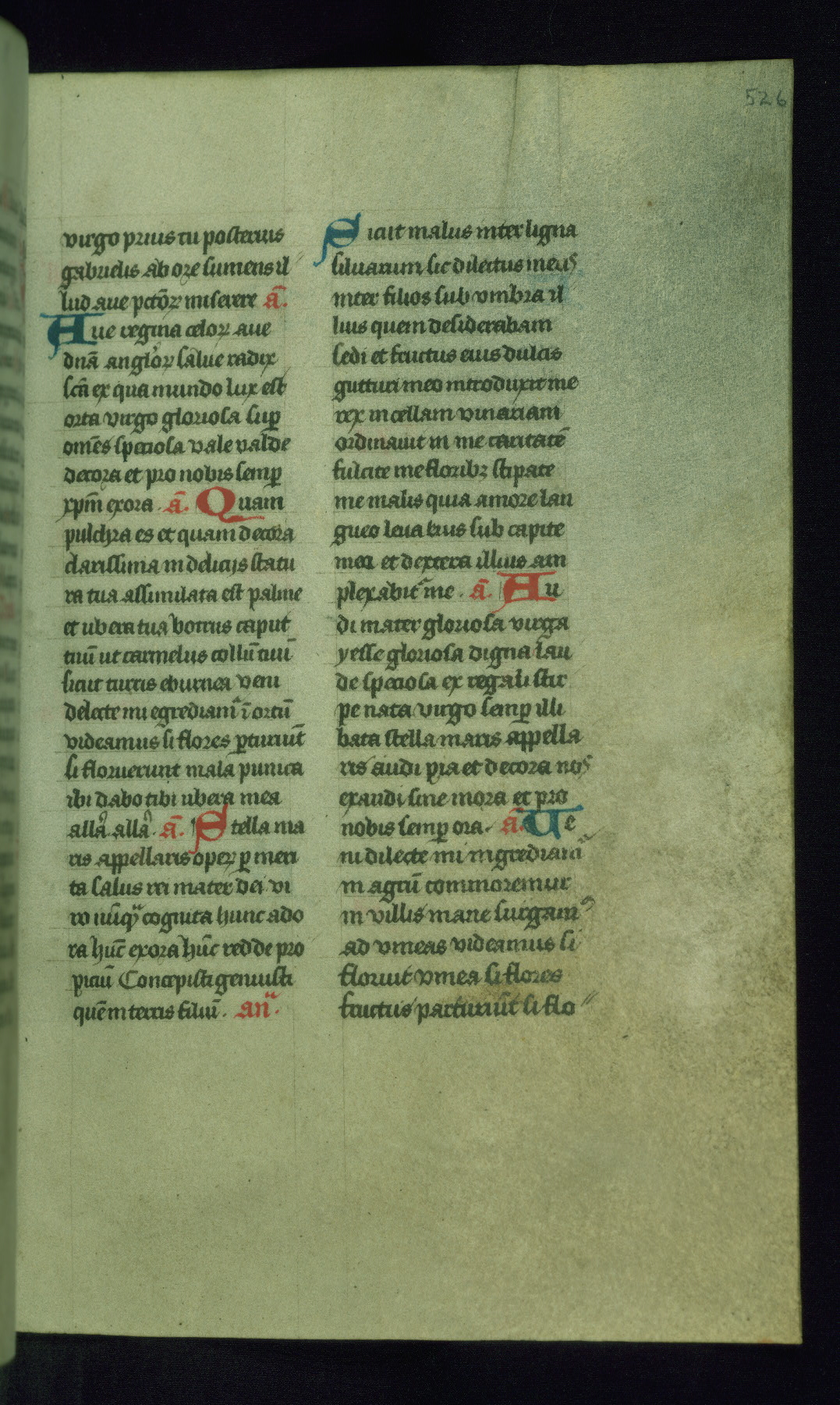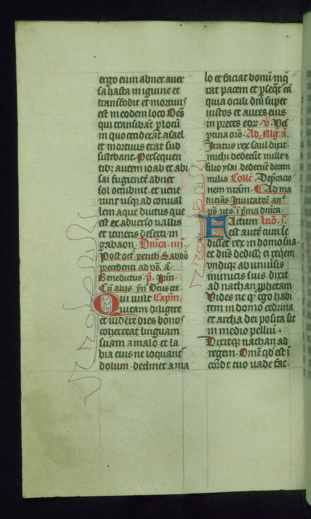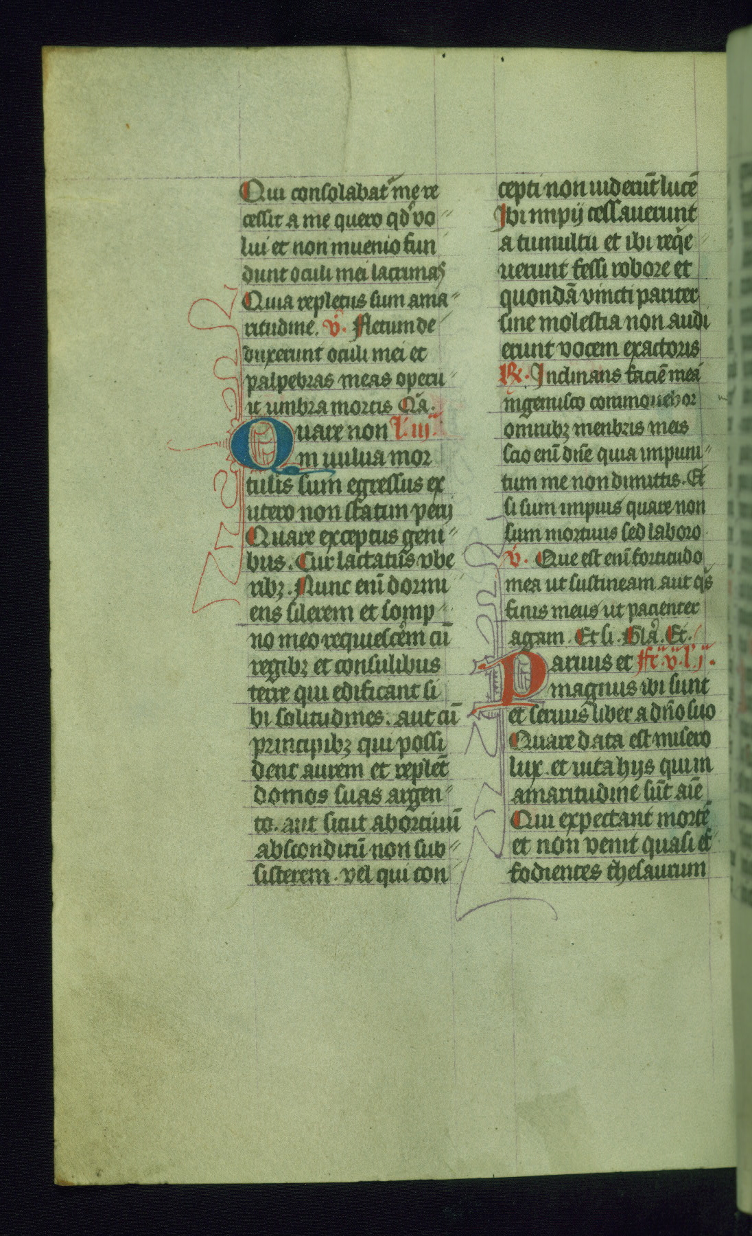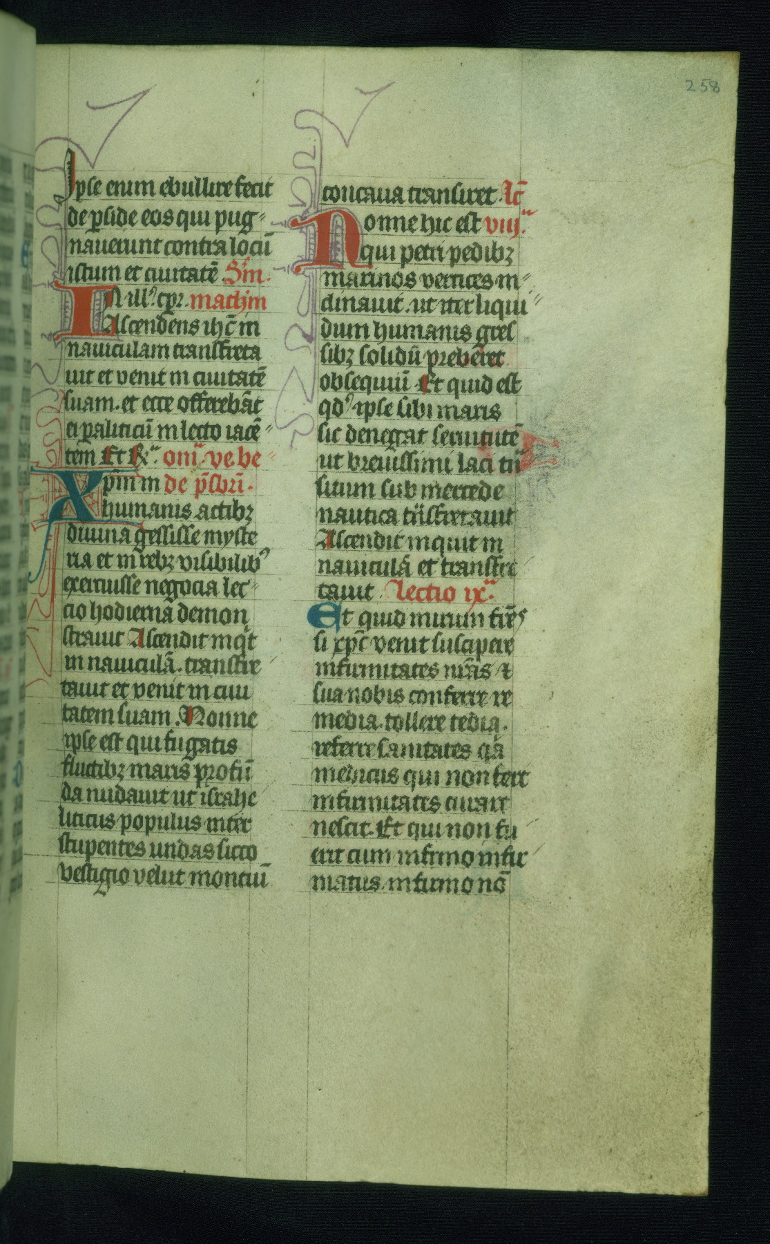 This small breviary, composed of more than 500 folios, is extraordinary for its length, considering it is the summer portion of a two-volume breviary for the use of Liège. The manuscript was completed for ecclesiastical use at the Cathedral of Notre-Dame and St.-Lambert in Liège ca. 1420. This attribution is suggested, for instance, by the petitions to the congregation of this cathedral (fols. 114v-117v), as well as the armorial shield of the family of Surlet de Chokier of Liège represented at the opening of the Psalms. The manuscript has modest, but interesting, decoration with historiated and decorated initials marking the liturgical texts, and occasional angels playing instruments in the margins. The most notable pictorial effect is found in the initials inhabited by transparent figures on rich blue ground. The technique is found, for instance, on fol. 156r with the gold monstrance held by translucent angels for the feast of the Corpus Christi.