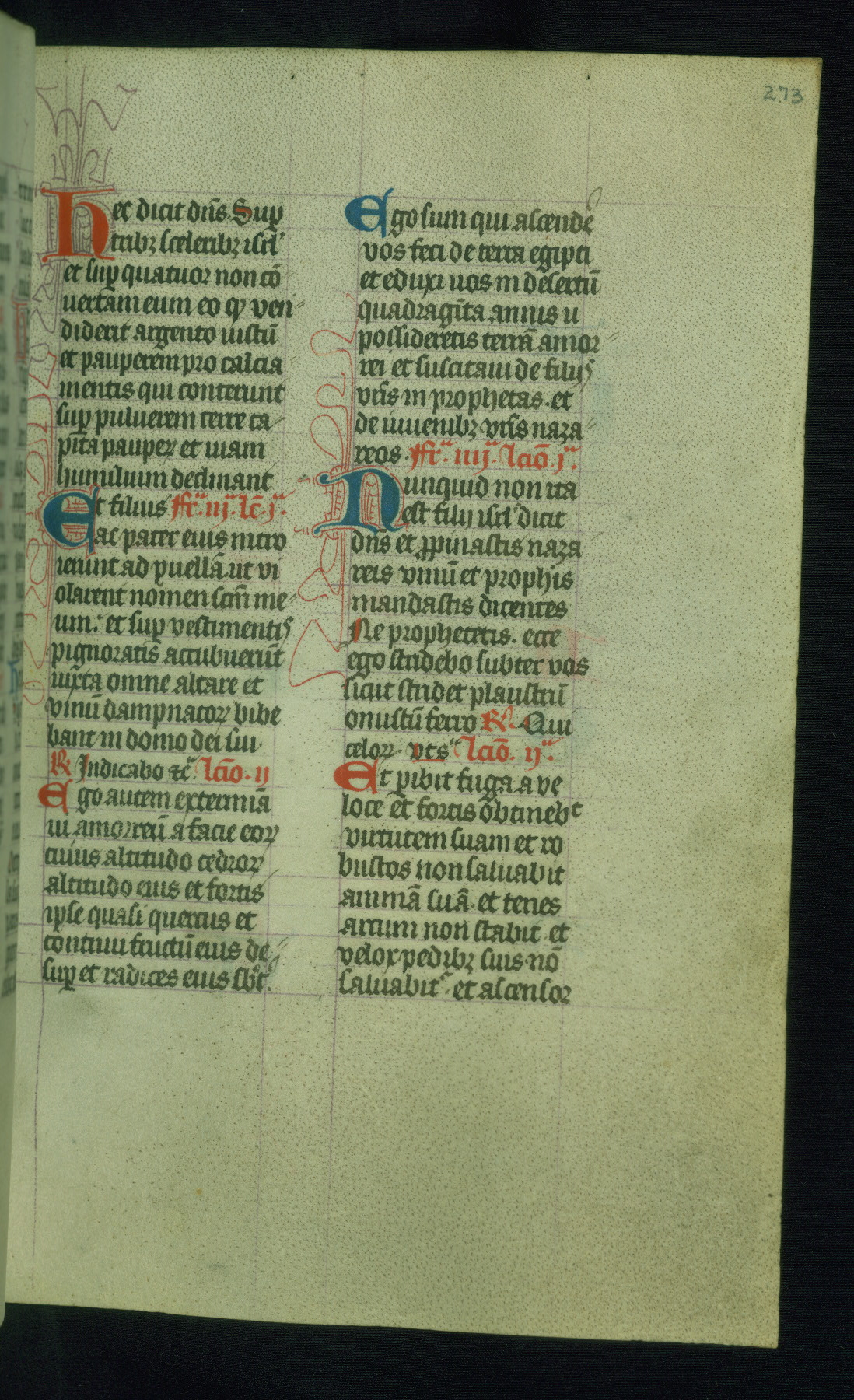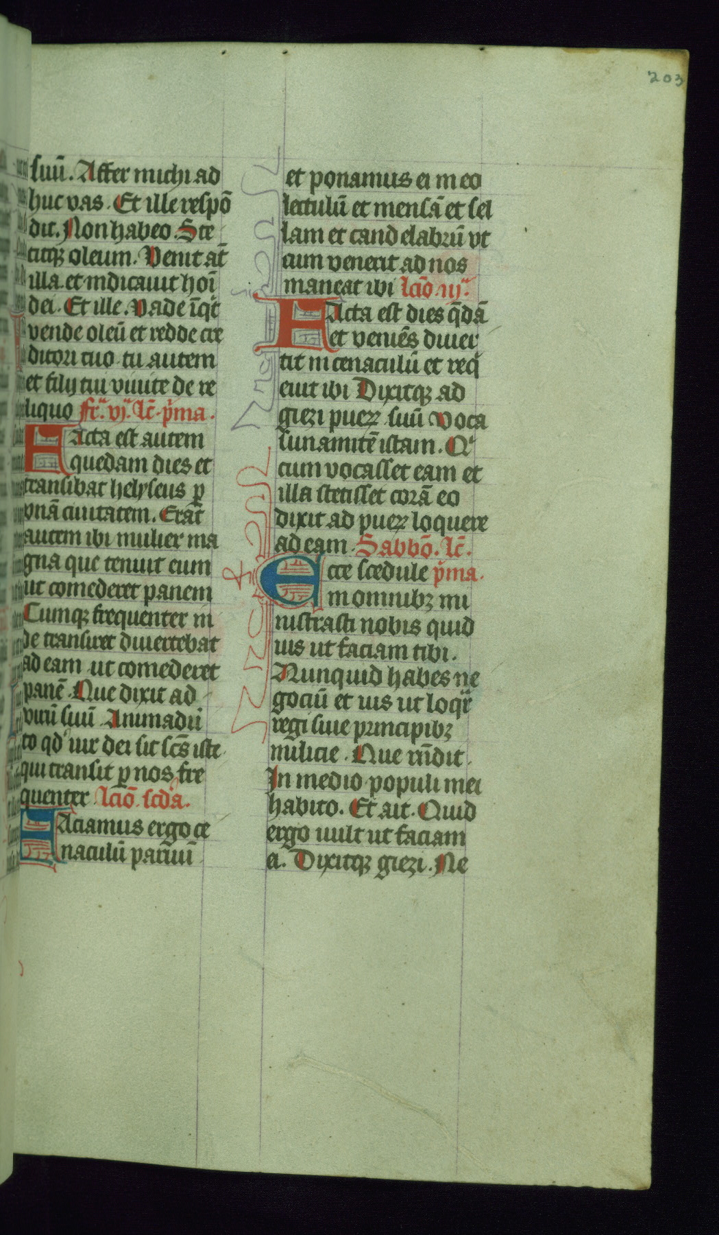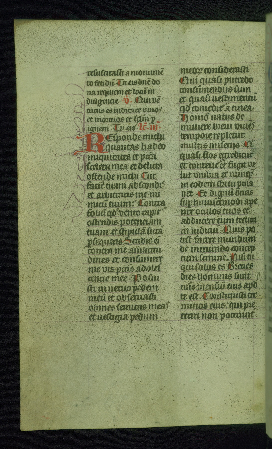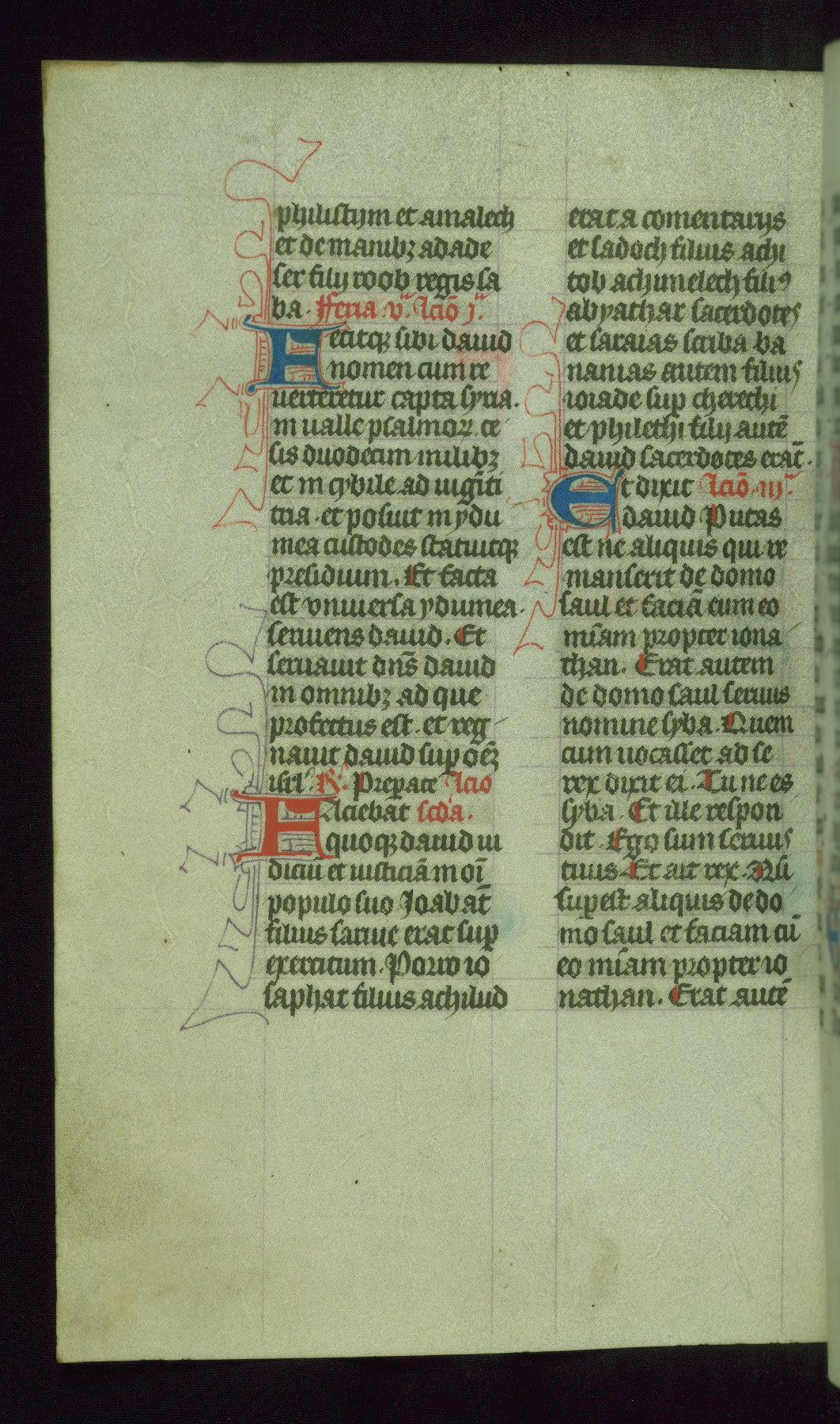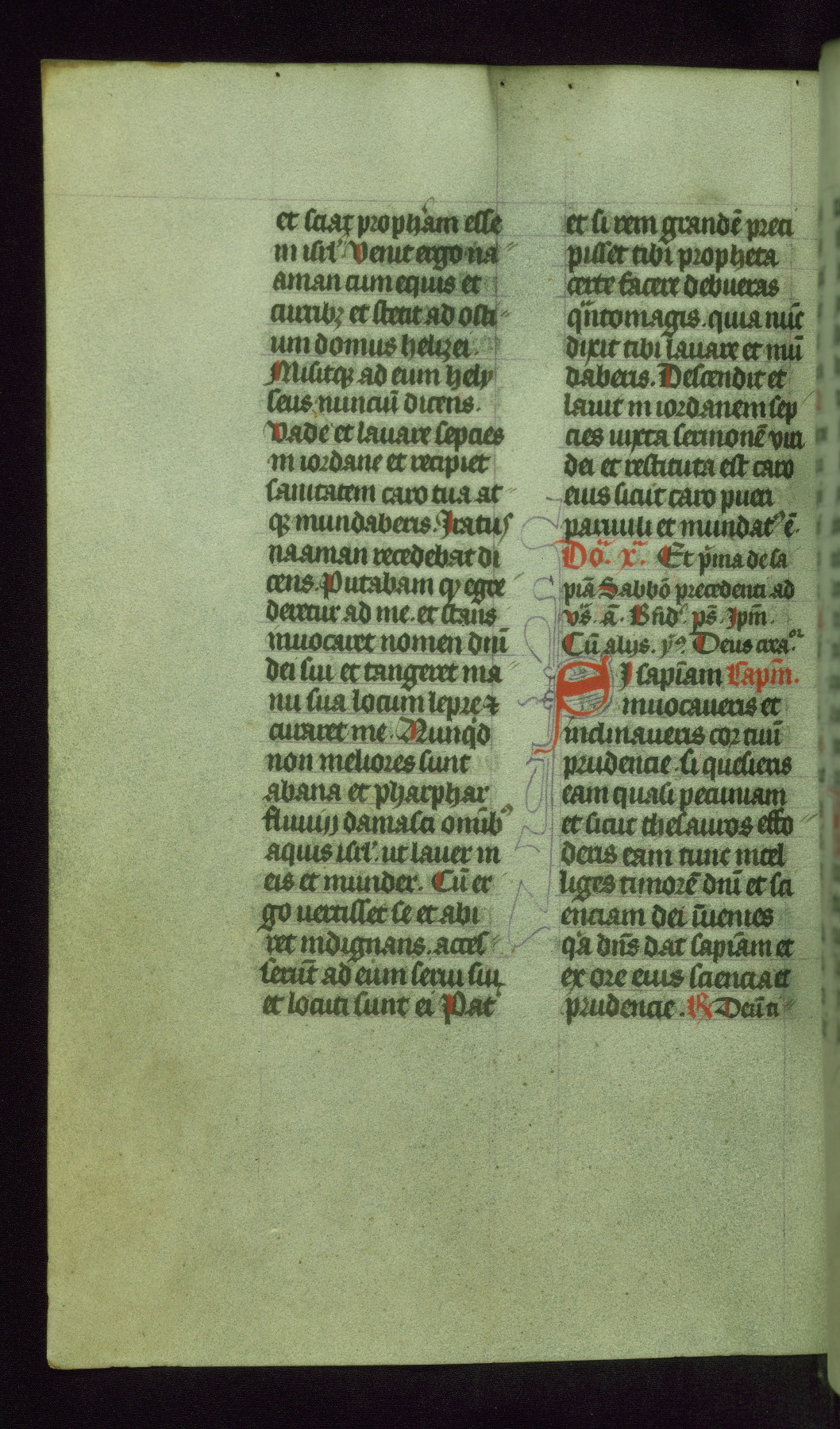 This small breviary, composed of more than 500 folios, is extraordinary for its length, considering it is the summer portion of a two-volume breviary for the use of Liège. The manuscript was completed for ecclesiastical use at the Cathedral of Notre-Dame and St.-Lambert in Liège ca. 1420. This attribution is suggested, for instance, by the petitions to the congregation of this cathedral (fols. 114v-117v), as well as the armorial shield of the family of Surlet de Chokier of Liège represented at the opening of the Psalms. The manuscript has modest, but interesting, decoration with historiated and decorated initials marking the liturgical texts, and occasional angels playing instruments in the margins. The most notable pictorial effect is found in the initials inhabited by transparent figures on rich blue ground. The technique is found, for instance, on fol. 156r with the gold monstrance held by translucent angels for the feast of the Corpus Christi.