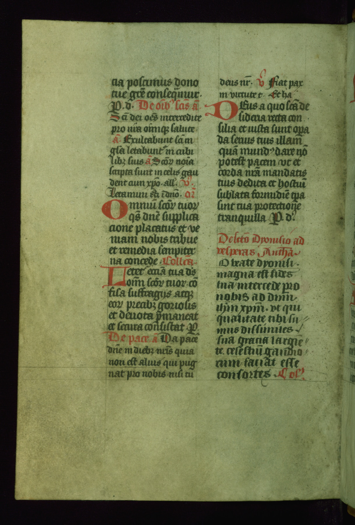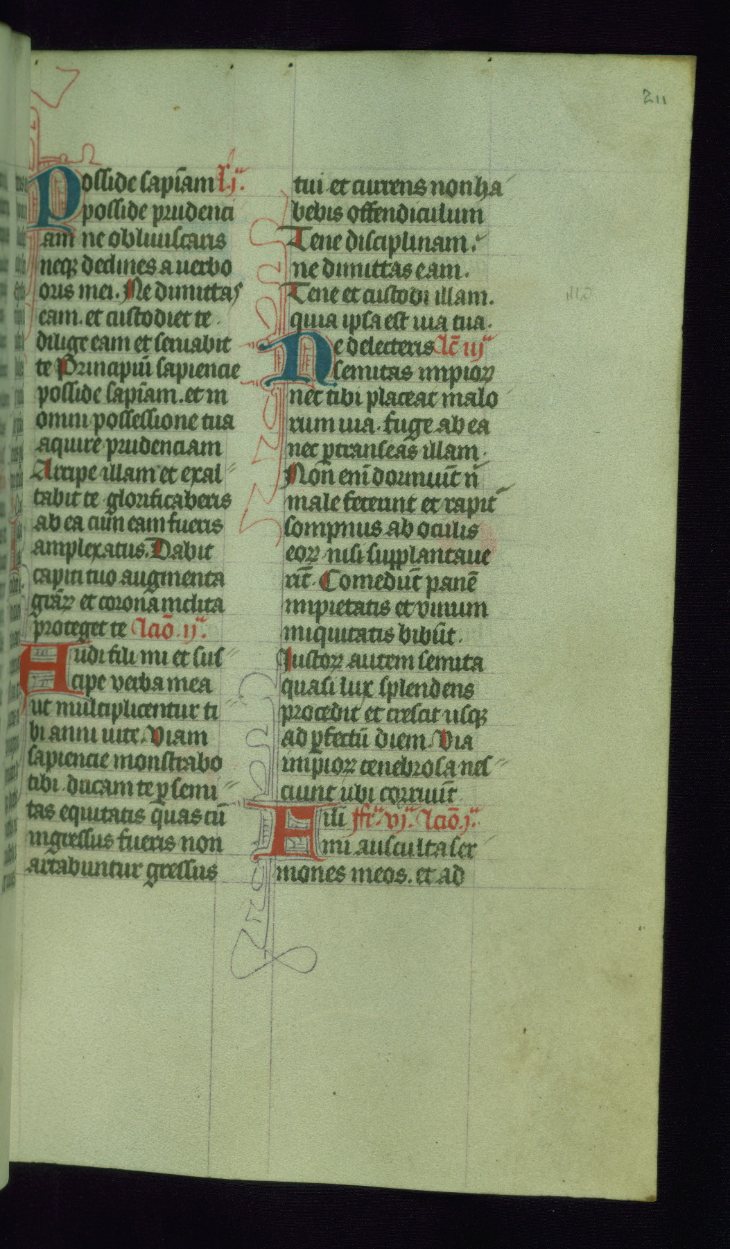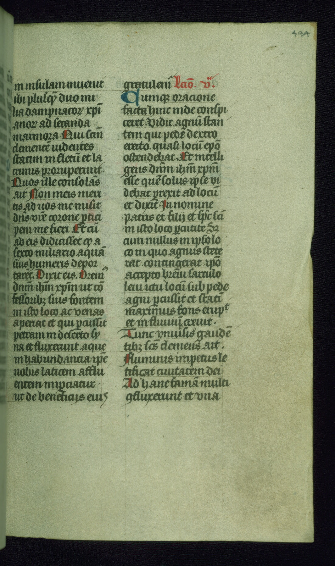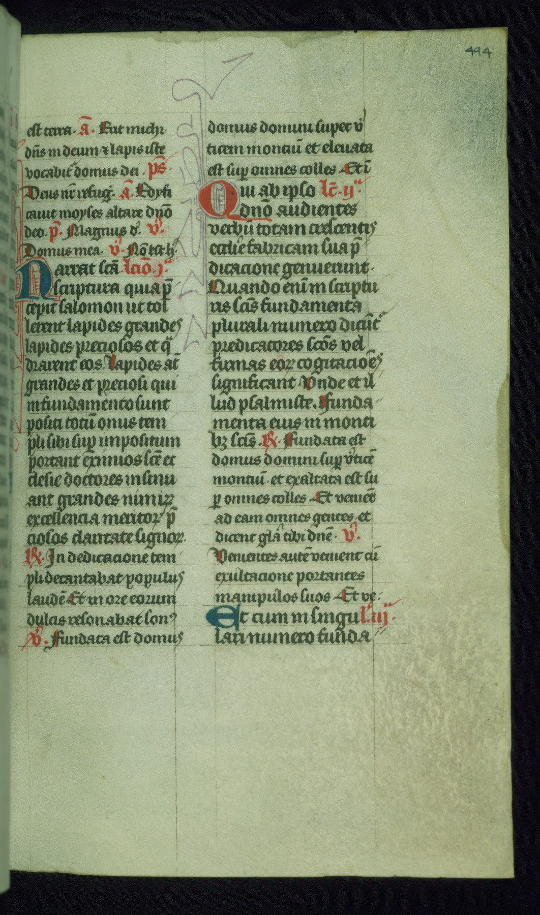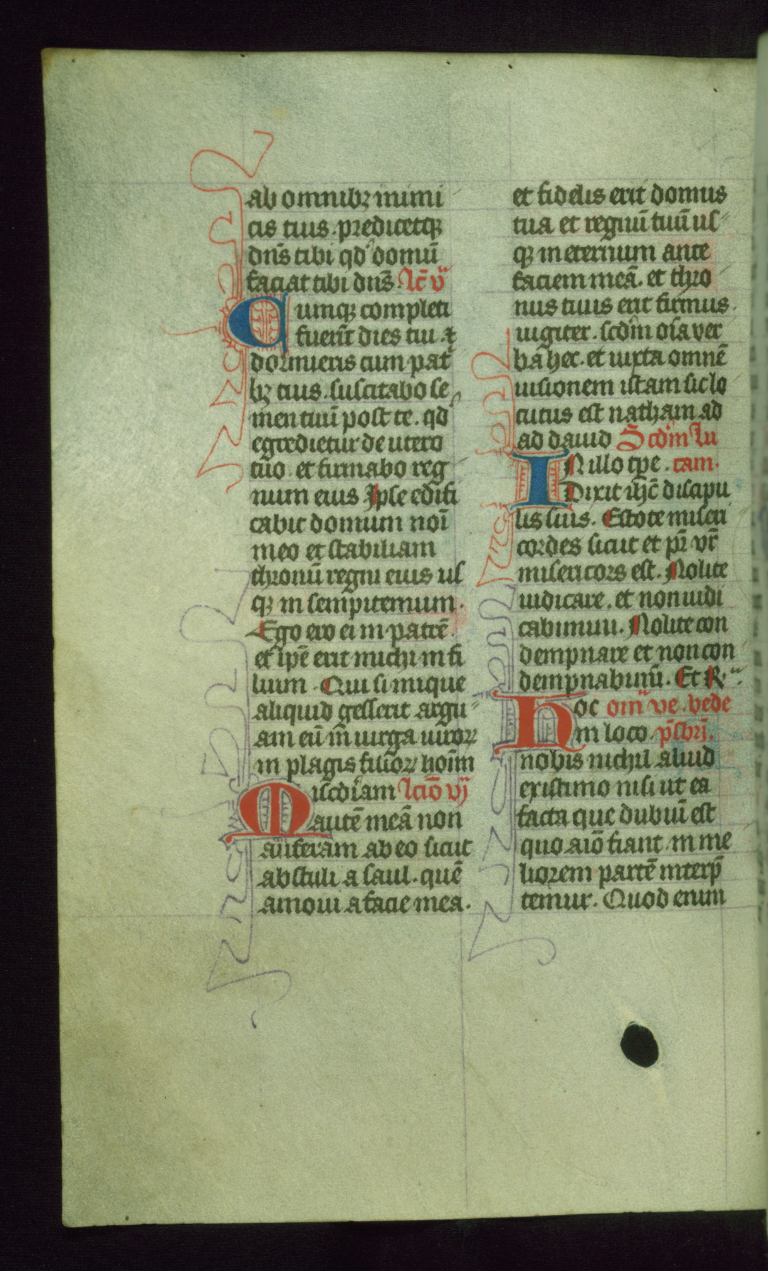 This small breviary, composed of more than 500 folios, is extraordinary for its length, considering it is the summer portion of a two-volume breviary for the use of Liège. The manuscript was completed for ecclesiastical use at the Cathedral of Notre-Dame and St.-Lambert in Liège ca. 1420. This attribution is suggested, for instance, by the petitions to the congregation of this cathedral (fols. 114v-117v), as well as the armorial shield of the family of Surlet de Chokier of Liège represented at the opening of the Psalms. The manuscript has modest, but interesting, decoration with historiated and decorated initials marking the liturgical texts, and occasional angels playing instruments in the margins. The most notable pictorial effect is found in the initials inhabited by transparent figures on rich blue ground. The technique is found, for instance, on fol. 156r with the gold monstrance held by translucent angels for the feast of the Corpus Christi.