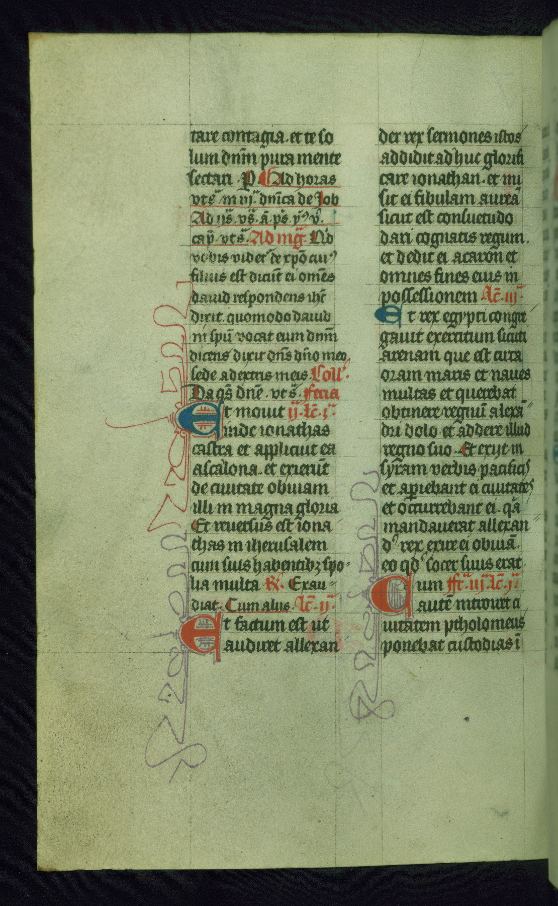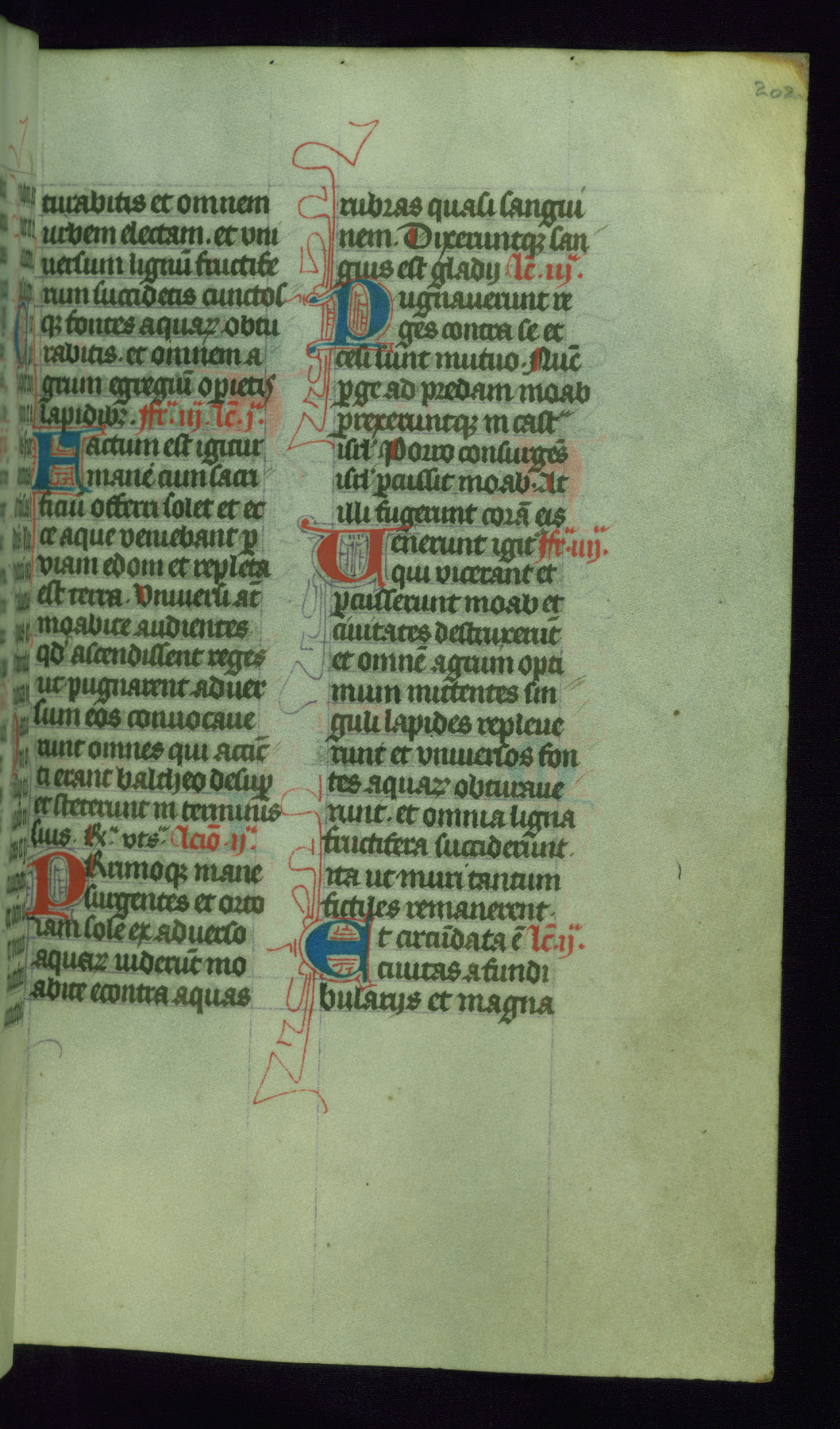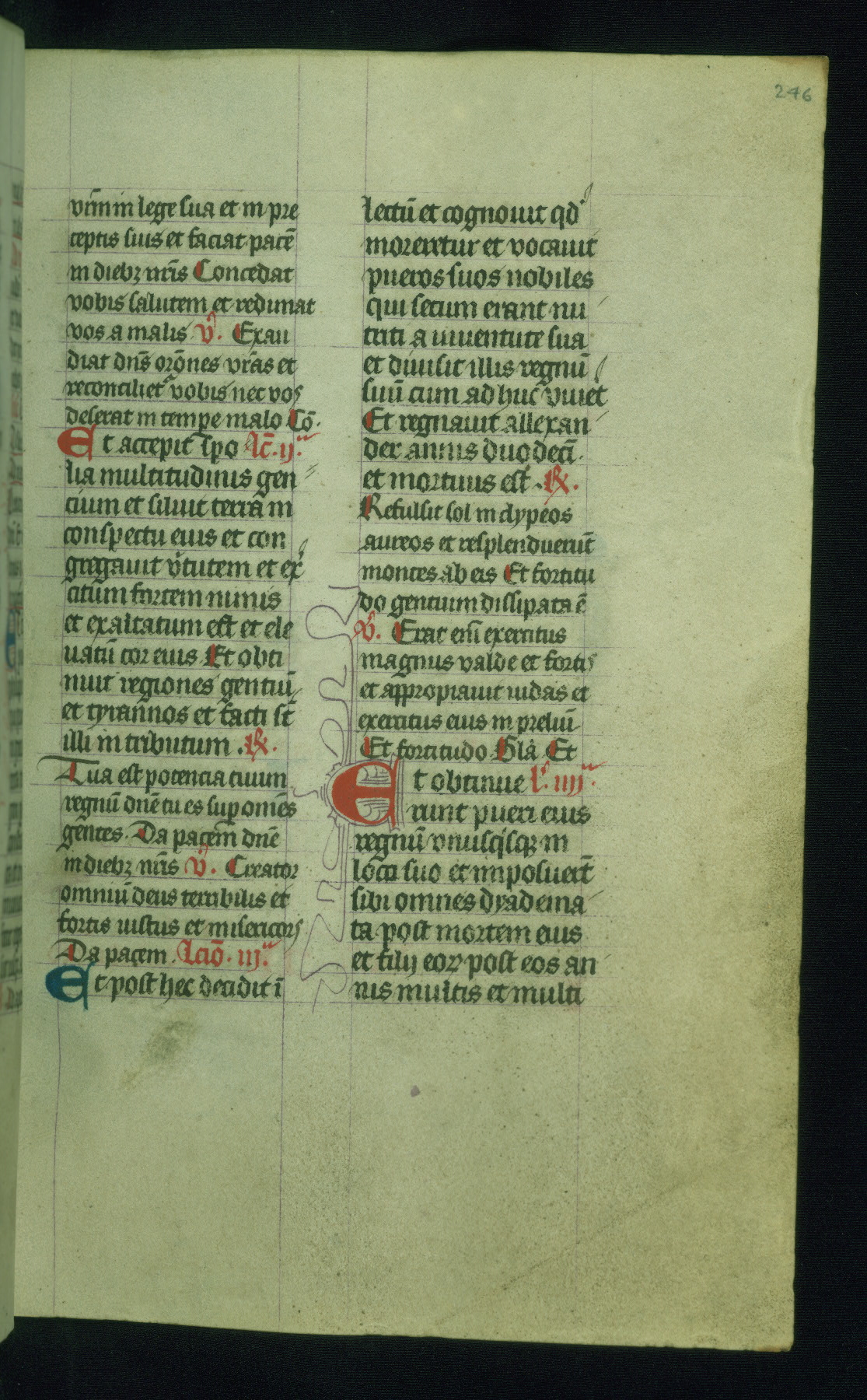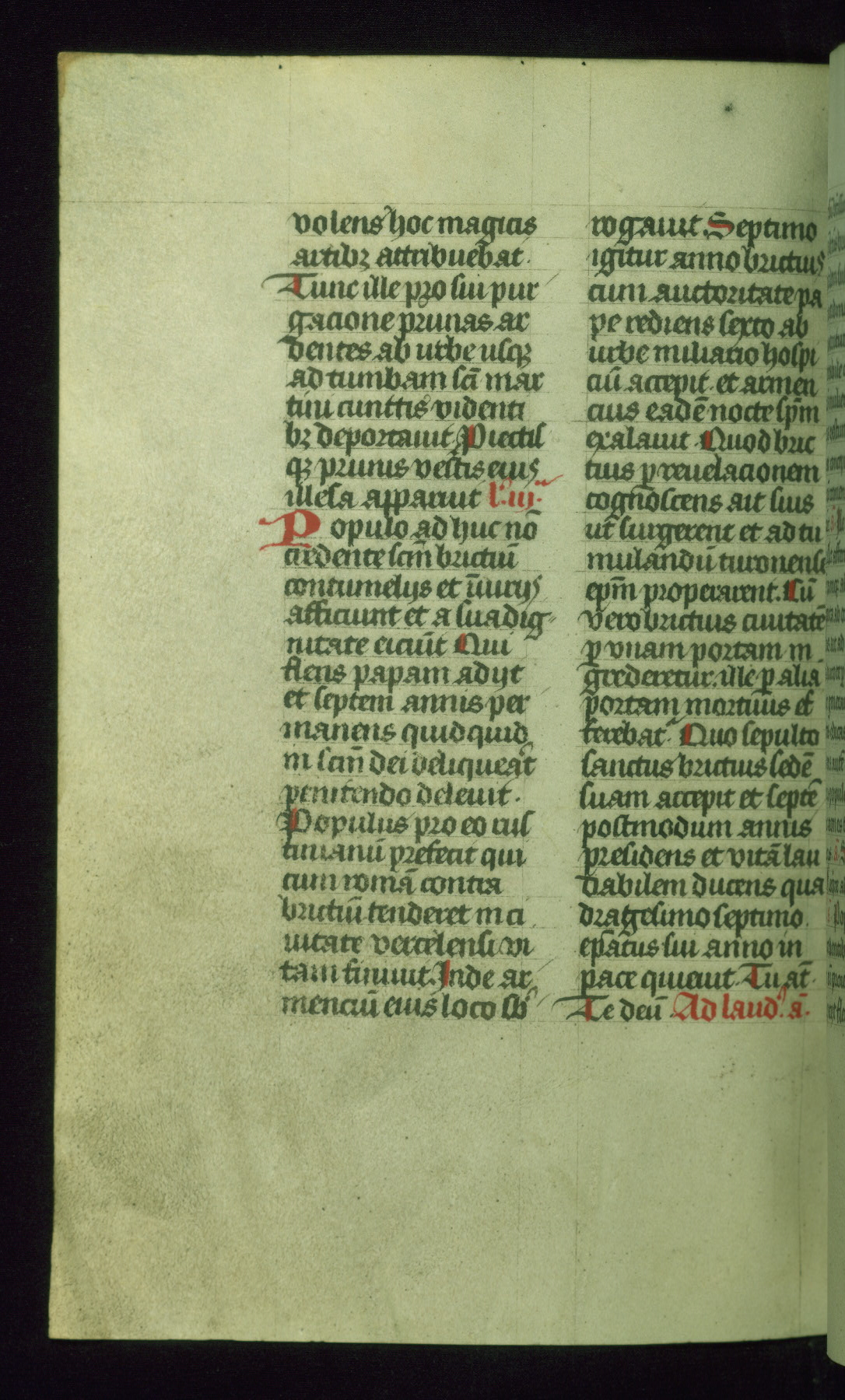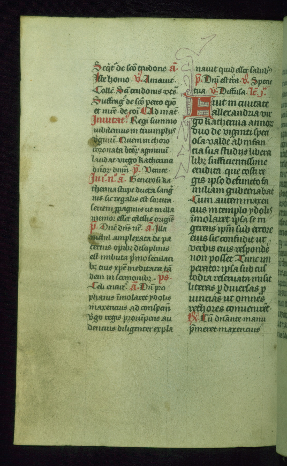 This small breviary, composed of more than 500 folios, is extraordinary for its length, considering it is the summer portion of a two-volume breviary for the use of Liège. The manuscript was completed for ecclesiastical use at the Cathedral of Notre-Dame and St.-Lambert in Liège ca. 1420. This attribution is suggested, for instance, by the petitions to the congregation of this cathedral (fols. 114v-117v), as well as the armorial shield of the family of Surlet de Chokier of Liège represented at the opening of the Psalms. The manuscript has modest, but interesting, decoration with historiated and decorated initials marking the liturgical texts, and occasional angels playing instruments in the margins. The most notable pictorial effect is found in the initials inhabited by transparent figures on rich blue ground. The technique is found, for instance, on fol. 156r with the gold monstrance held by translucent angels for the feast of the Corpus Christi.
