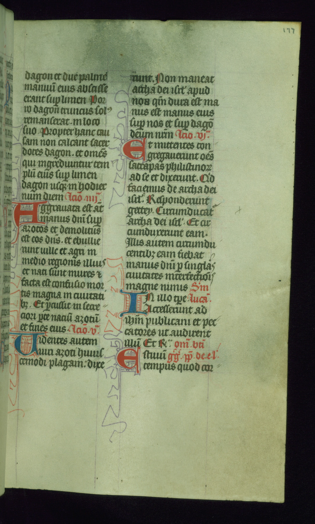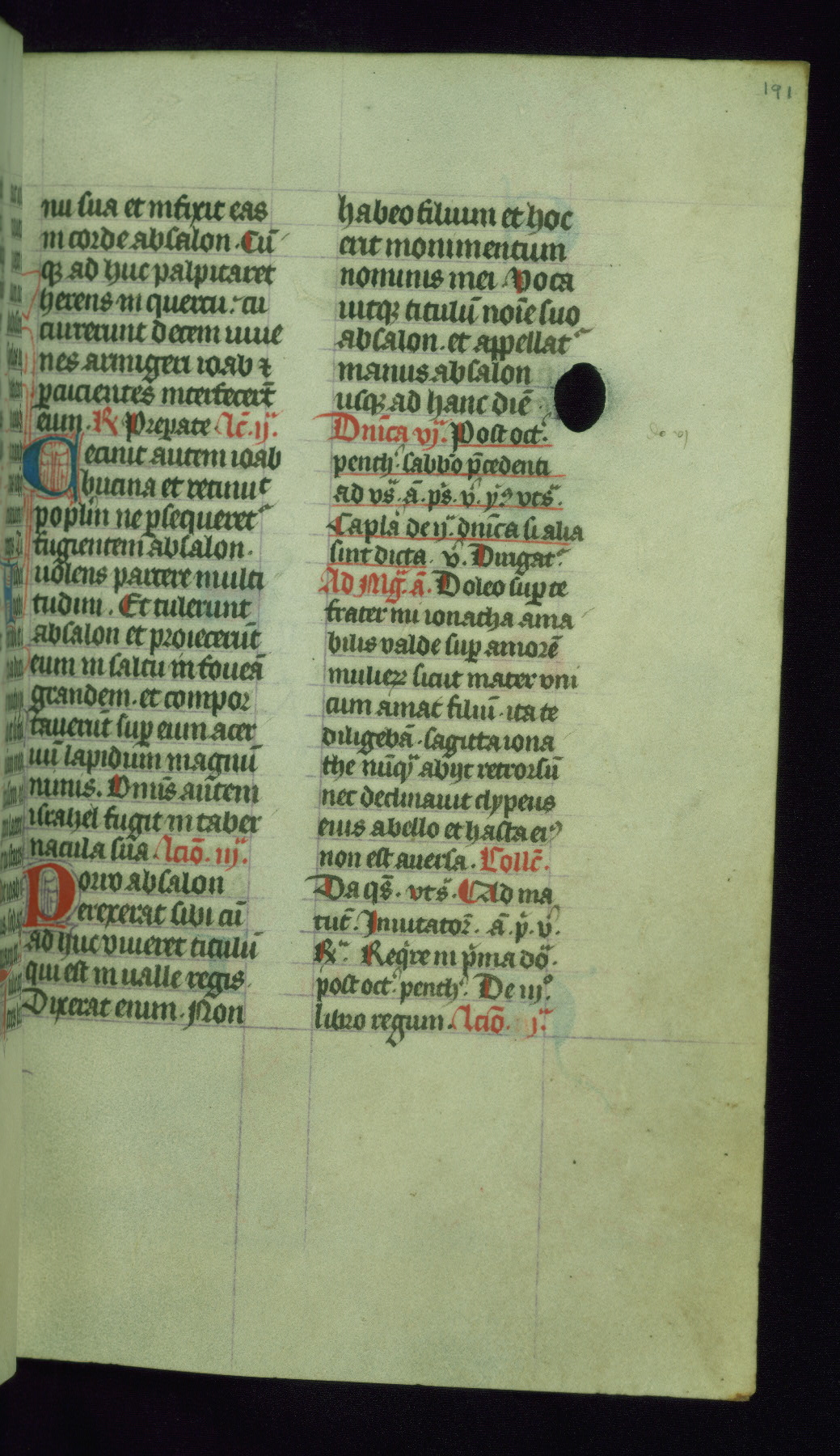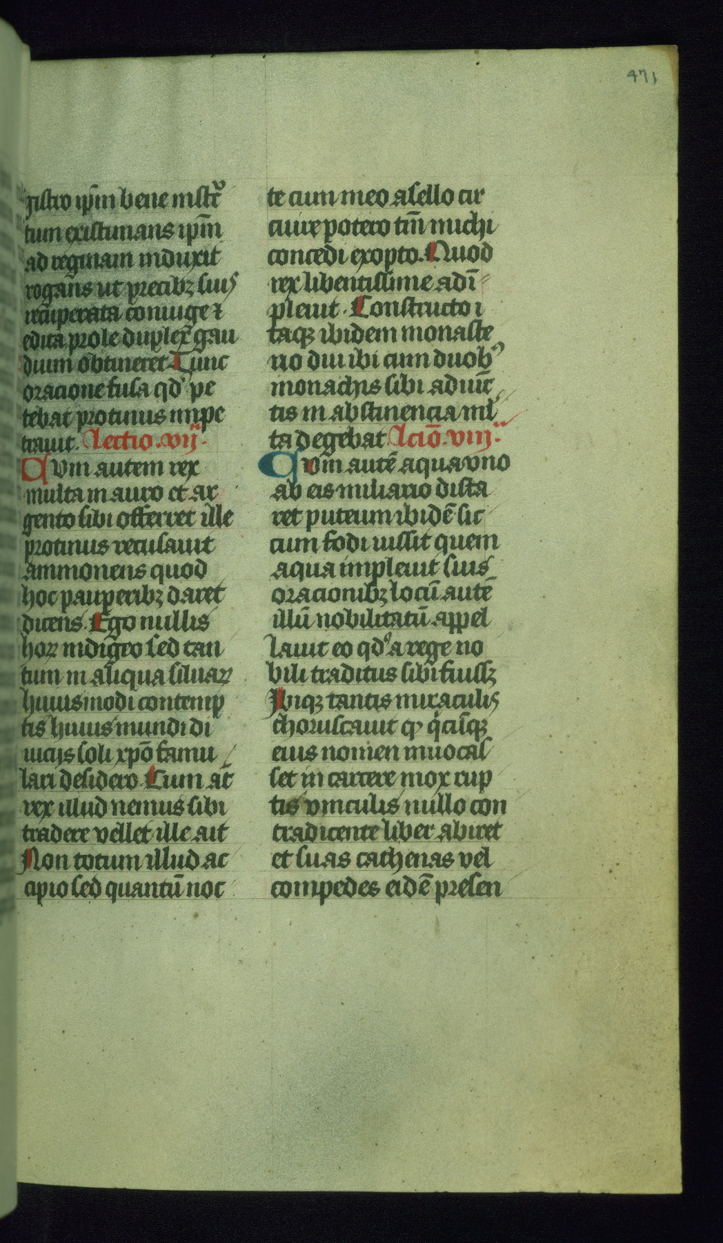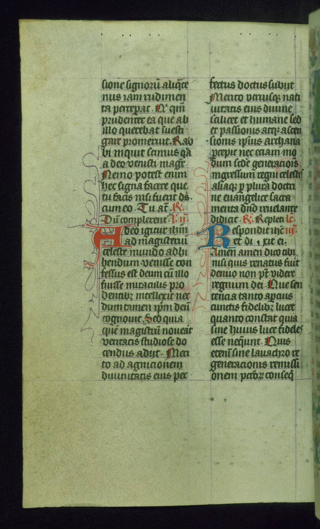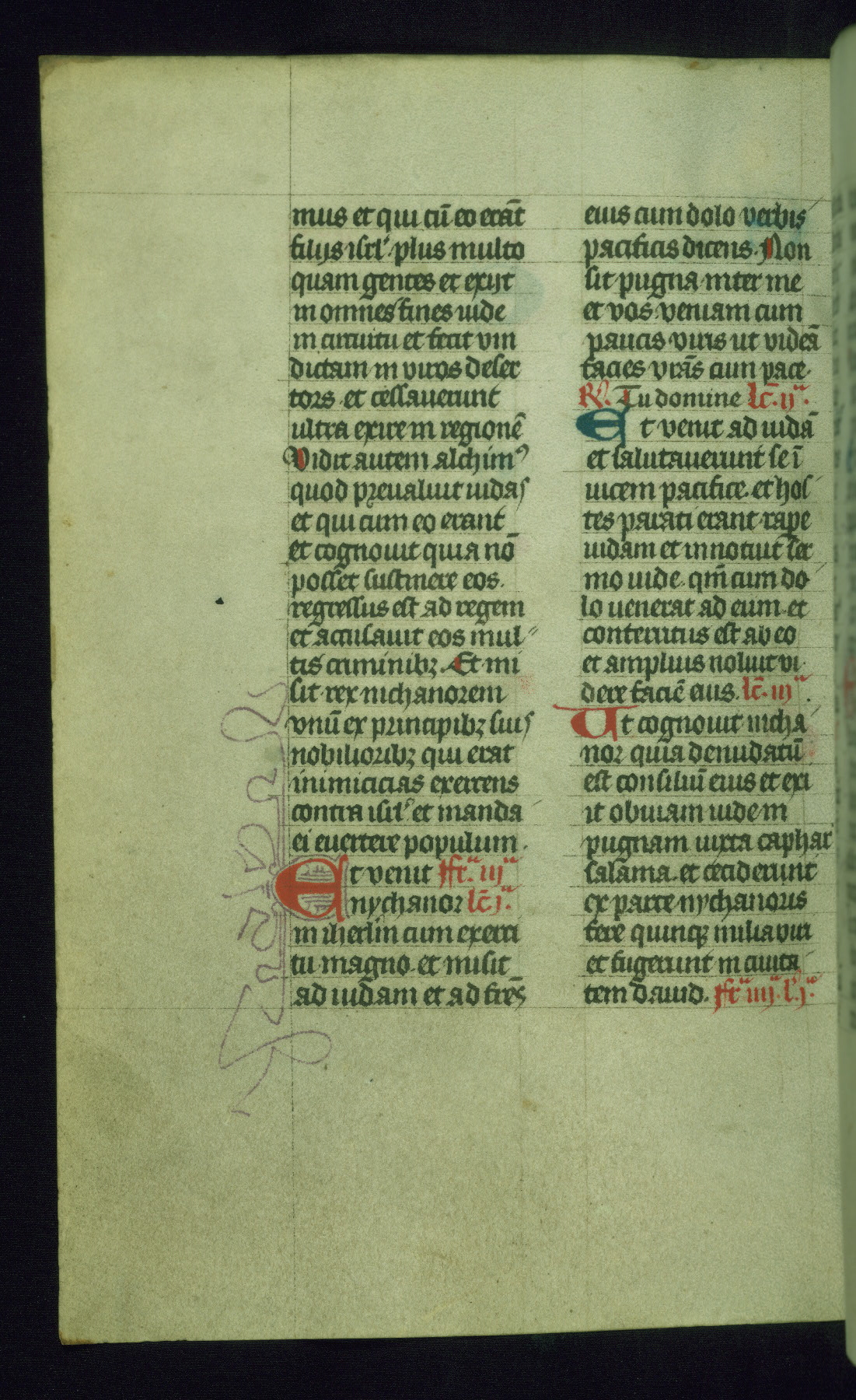 This small breviary, composed of more than 500 folios, is extraordinary for its length, considering it is the summer portion of a two-volume breviary for the use of Liège. The manuscript was completed for ecclesiastical use at the Cathedral of Notre-Dame and St.-Lambert in Liège ca. 1420. This attribution is suggested, for instance, by the petitions to the congregation of this cathedral (fols. 114v-117v), as well as the armorial shield of the family of Surlet de Chokier of Liège represented at the opening of the Psalms. The manuscript has modest, but interesting, decoration with historiated and decorated initials marking the liturgical texts, and occasional angels playing instruments in the margins. The most notable pictorial effect is found in the initials inhabited by transparent figures on rich blue ground. The technique is found, for instance, on fol. 156r with the gold monstrance held by translucent angels for the feast of the Corpus Christi.
