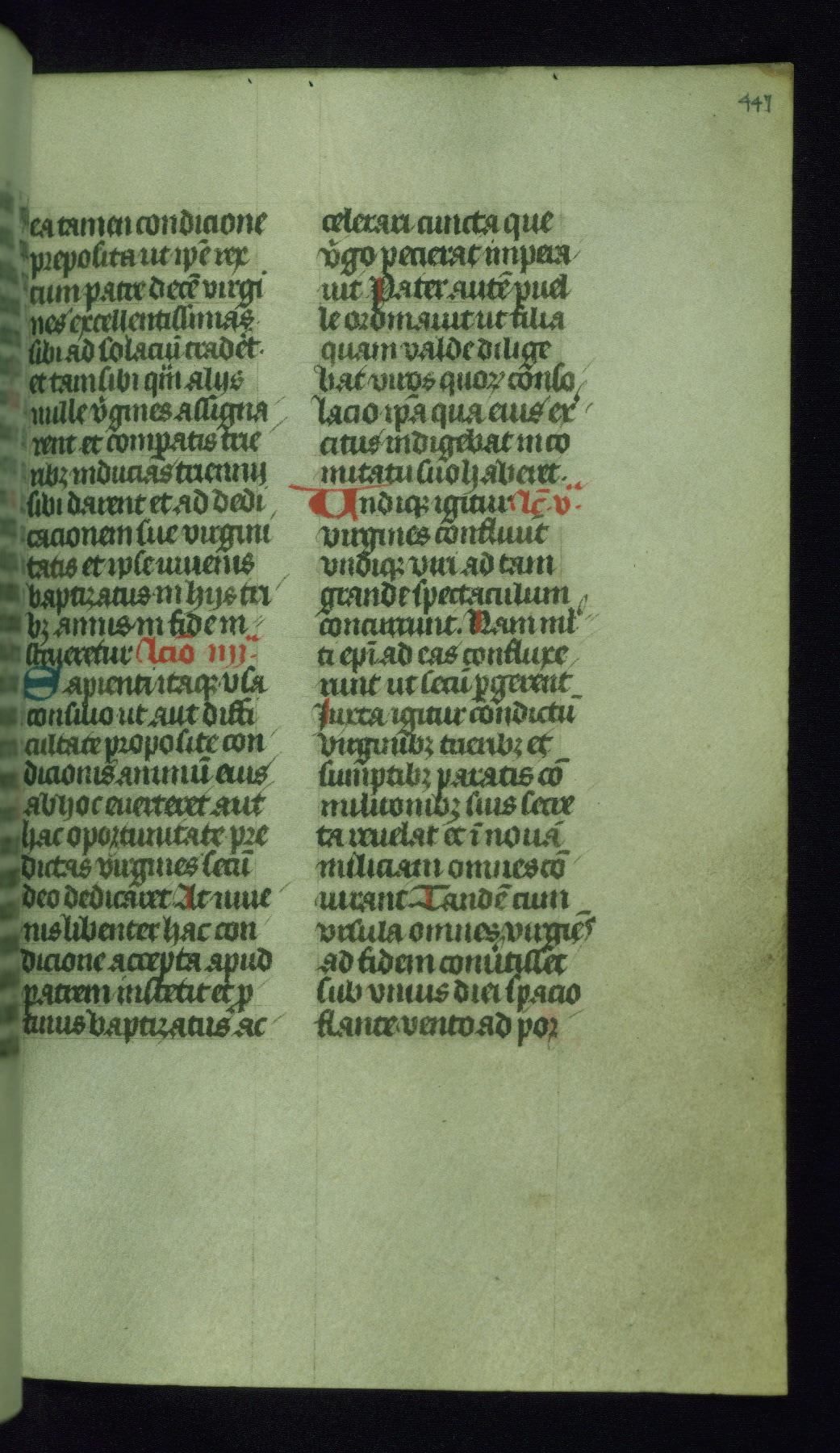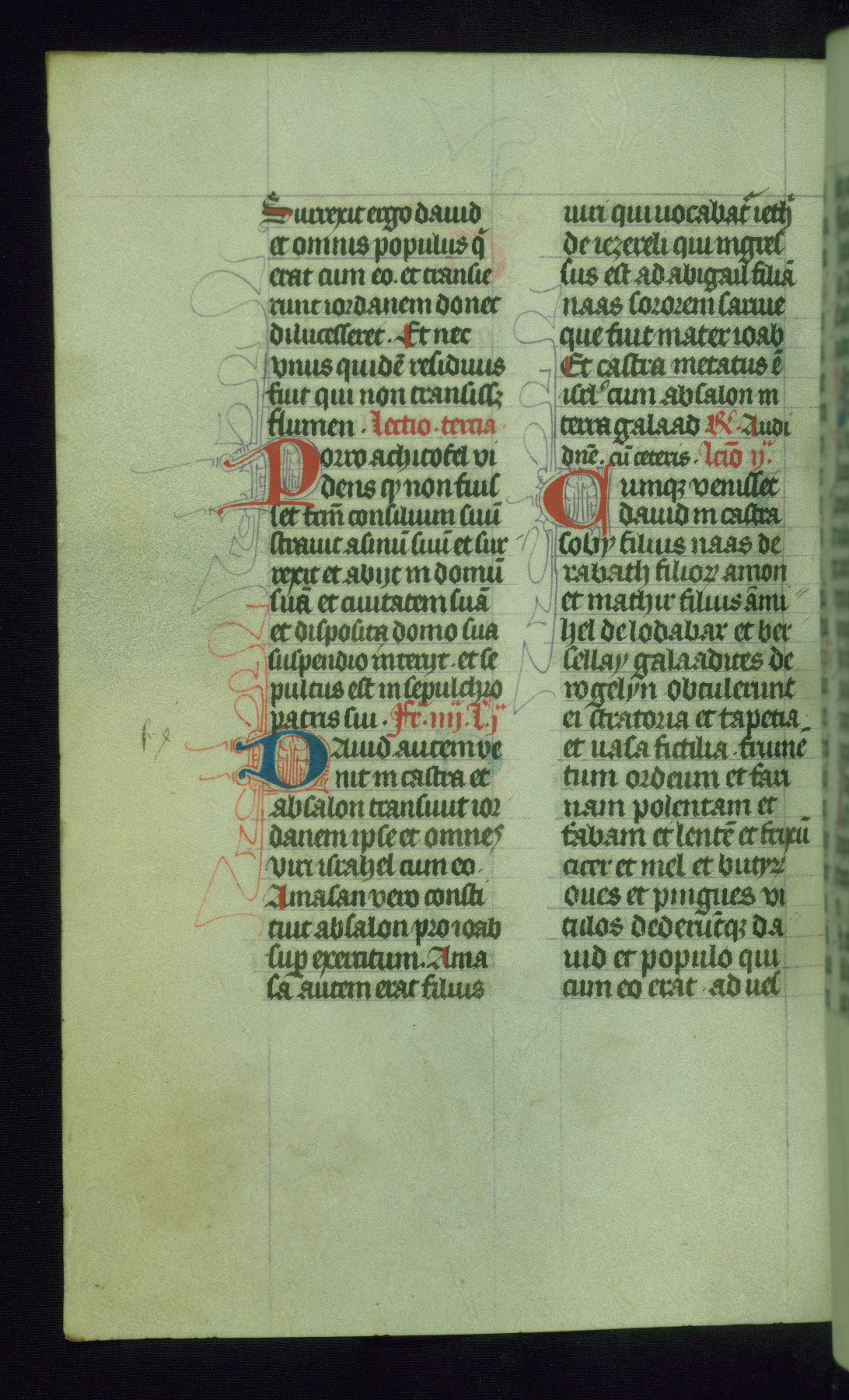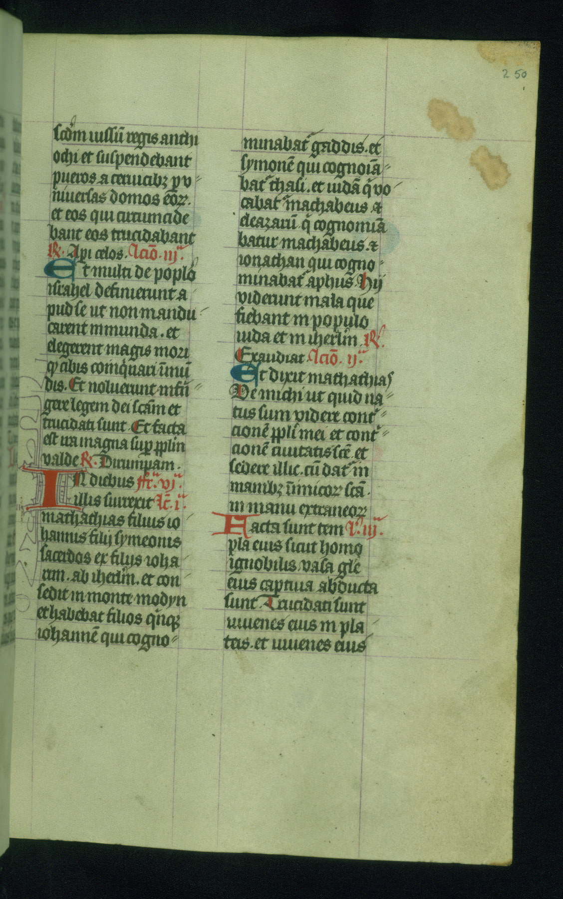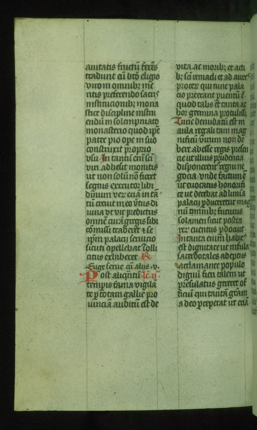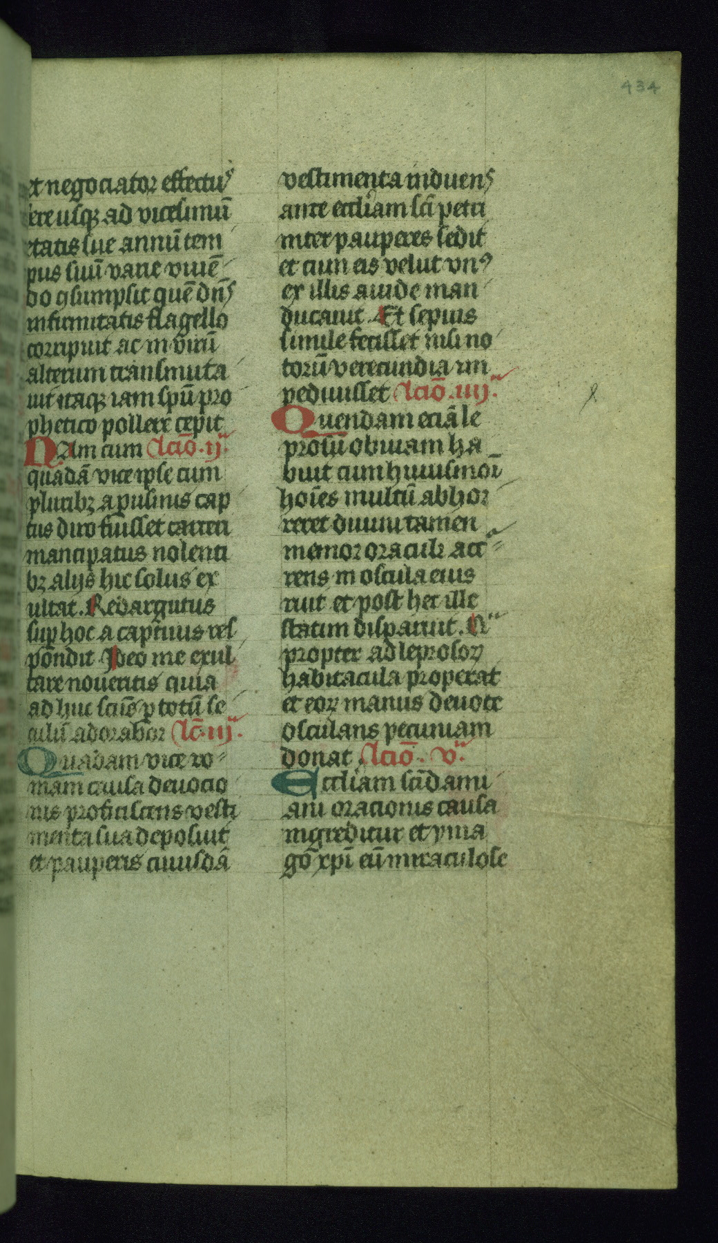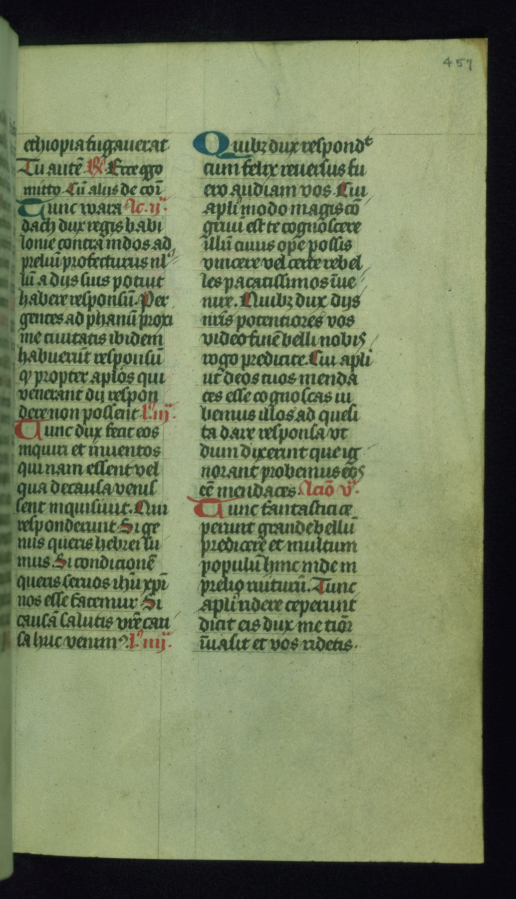 This small breviary, composed of more than 500 folios, is extraordinary for its length, considering it is the summer portion of a two-volume breviary for the use of Liège. The manuscript was completed for ecclesiastical use at the Cathedral of Notre-Dame and St.-Lambert in Liège ca. 1420. This attribution is suggested, for instance, by the petitions to the congregation of this cathedral (fols. 114v-117v), as well as the armorial shield of the family of Surlet de Chokier of Liège represented at the opening of the Psalms. The manuscript has modest, but interesting, decoration with historiated and decorated initials marking the liturgical texts, and occasional angels playing instruments in the margins. The most notable pictorial effect is found in the initials inhabited by transparent figures on rich blue ground. The technique is found, for instance, on fol. 156r with the gold monstrance held by translucent angels for the feast of the Corpus Christi.