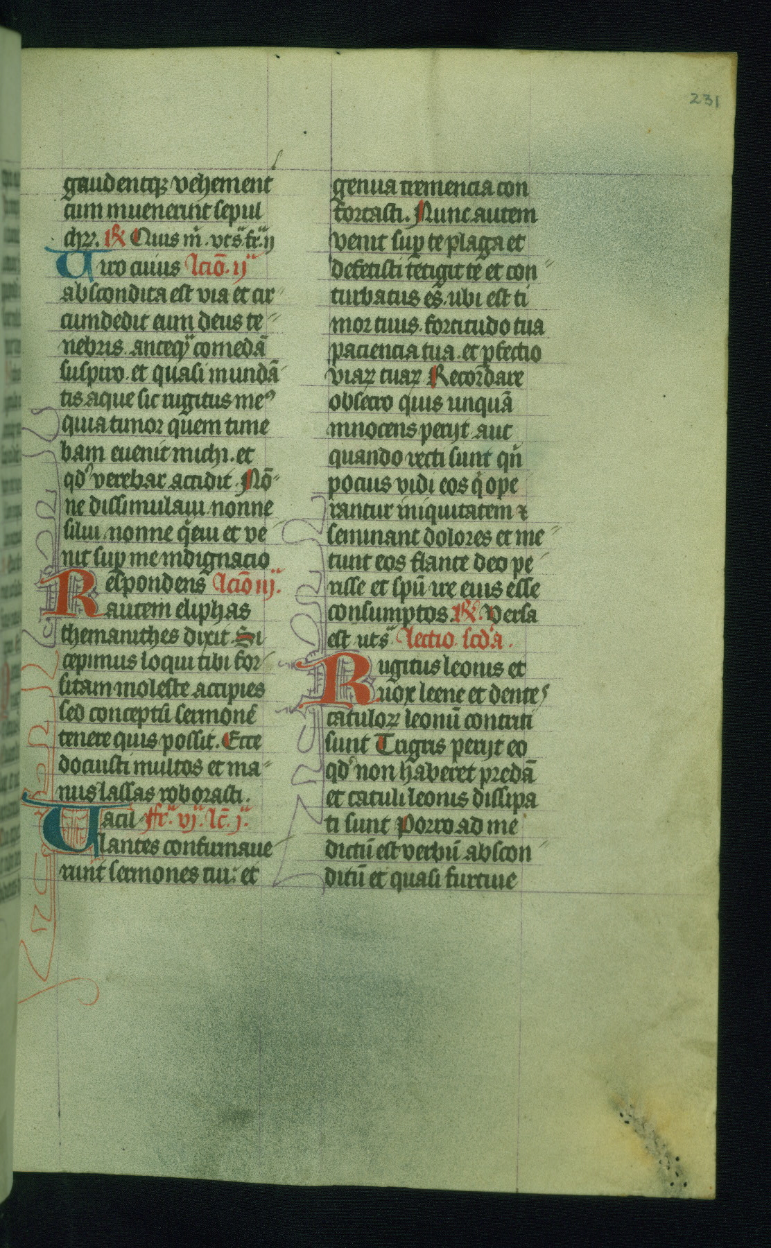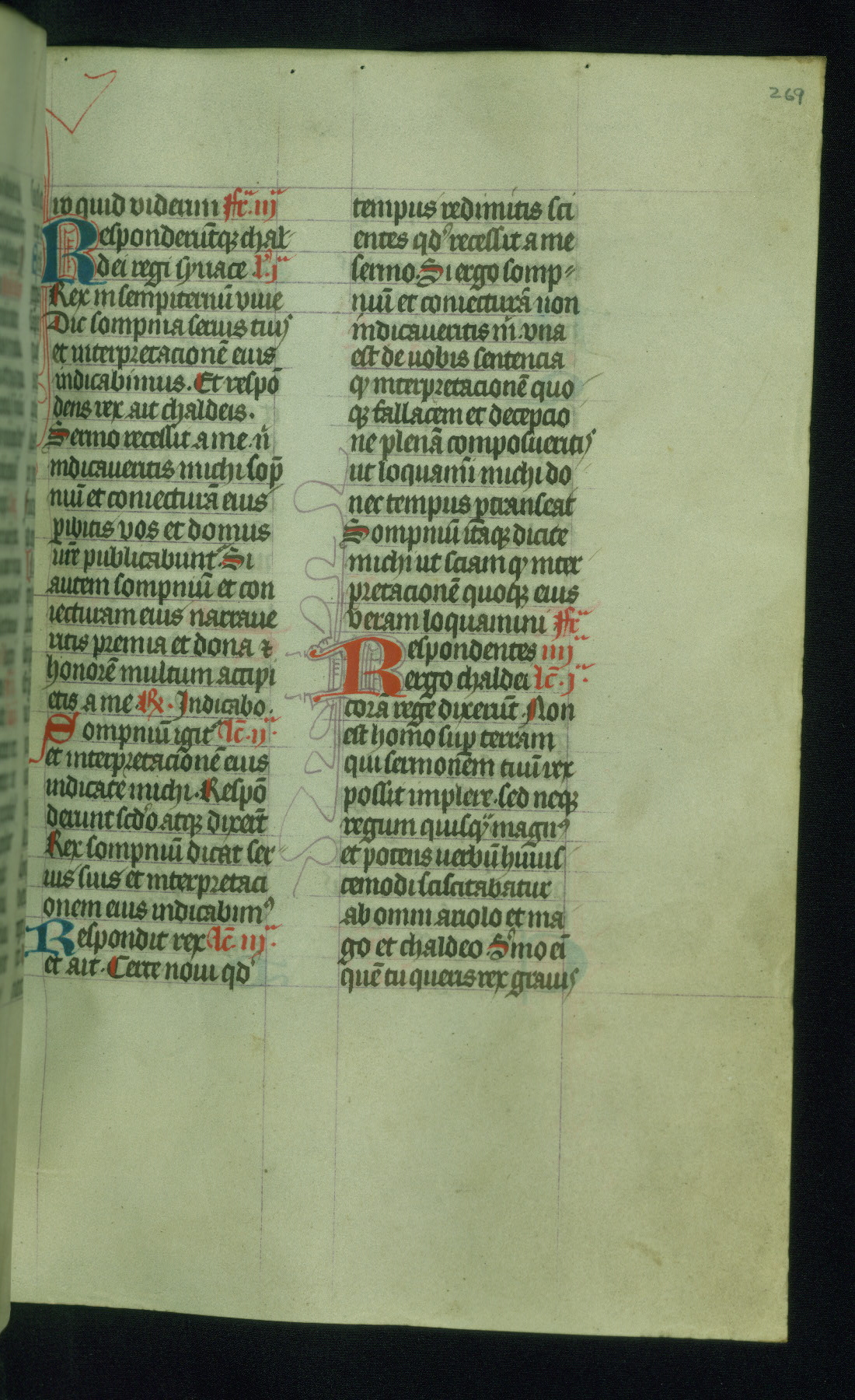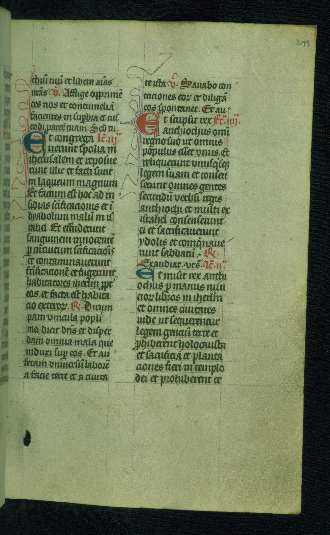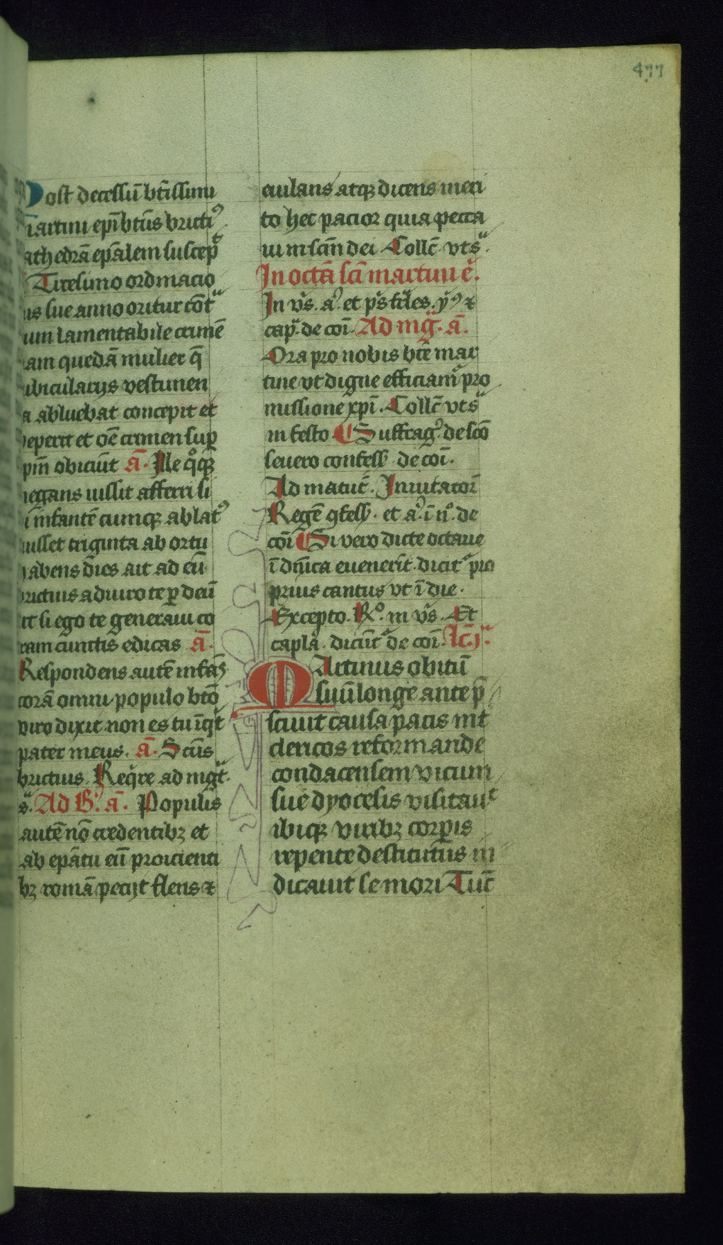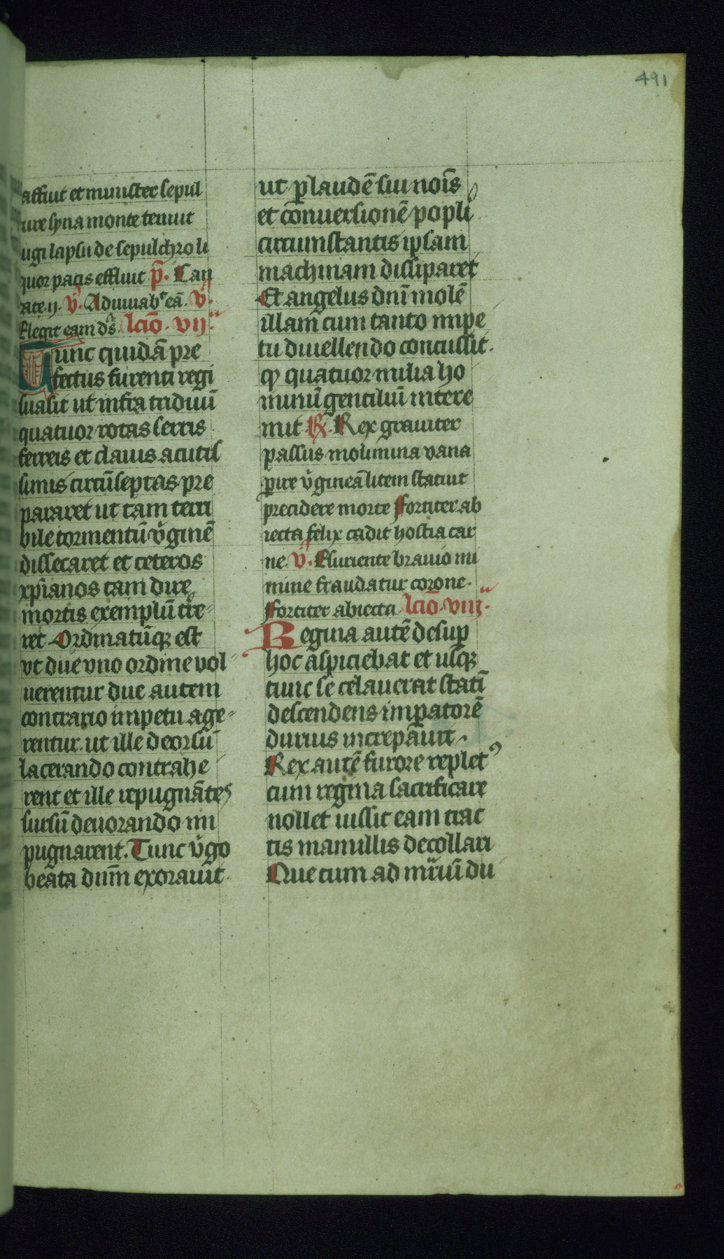 This small breviary, composed of more than 500 folios, is extraordinary for its length, considering it is the summer portion of a two-volume breviary for the use of Liège. The manuscript was completed for ecclesiastical use at the Cathedral of Notre-Dame and St.-Lambert in Liège ca. 1420. This attribution is suggested, for instance, by the petitions to the congregation of this cathedral (fols. 114v-117v), as well as the armorial shield of the family of Surlet de Chokier of Liège represented at the opening of the Psalms. The manuscript has modest, but interesting, decoration with historiated and decorated initials marking the liturgical texts, and occasional angels playing instruments in the margins. The most notable pictorial effect is found in the initials inhabited by transparent figures on rich blue ground. The technique is found, for instance, on fol. 156r with the gold monstrance held by translucent angels for the feast of the Corpus Christi.