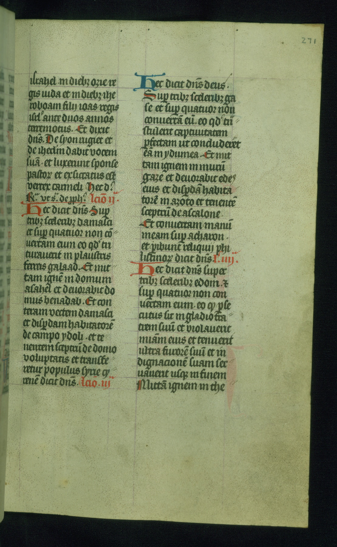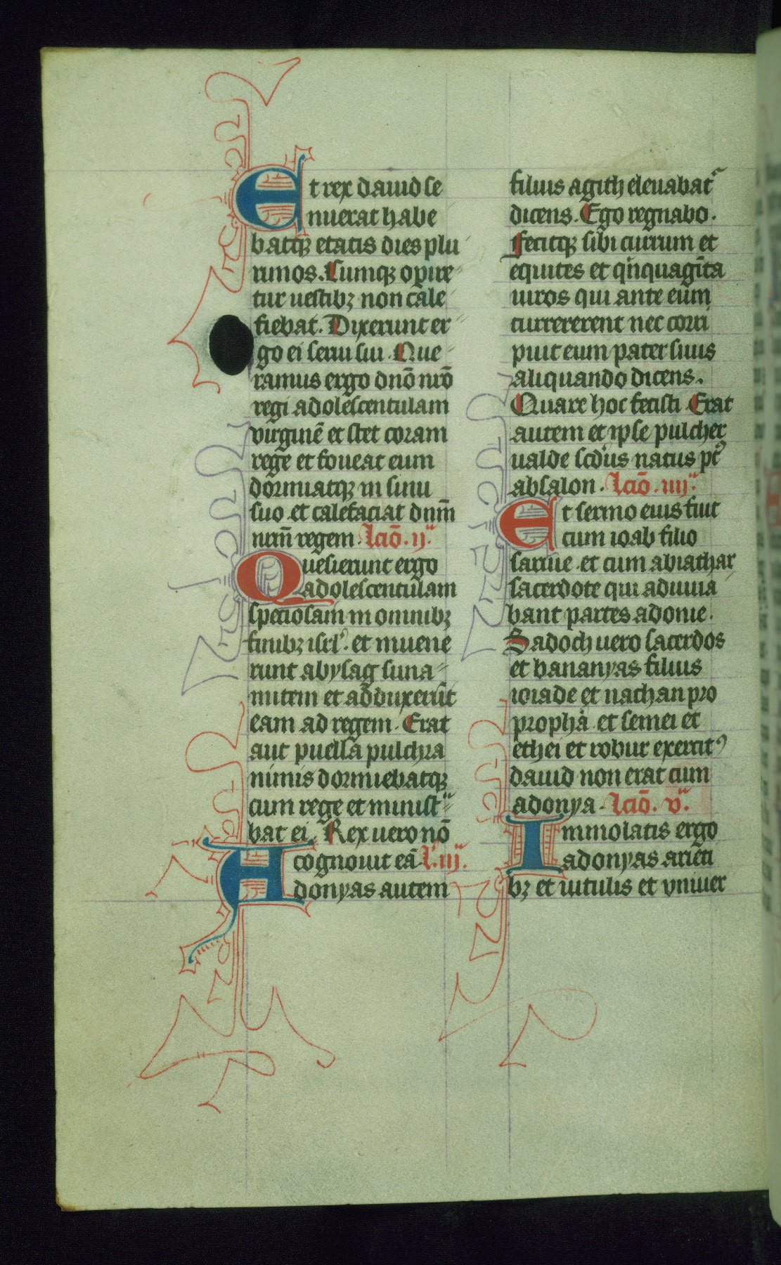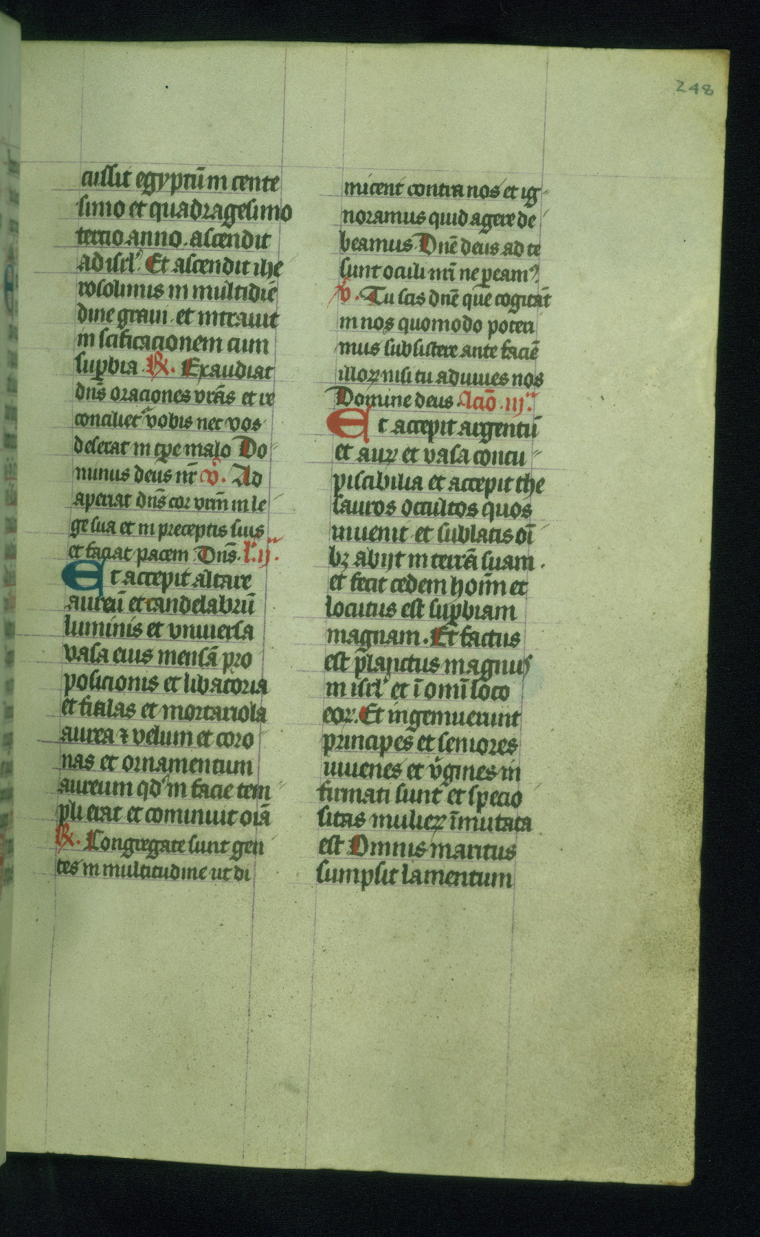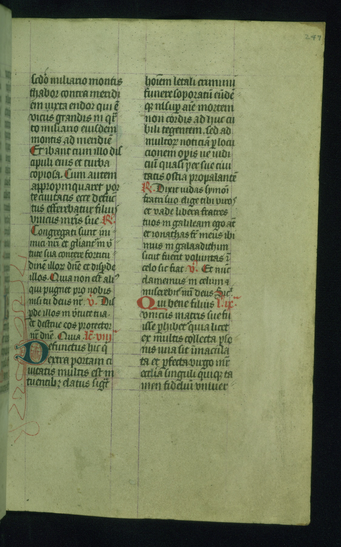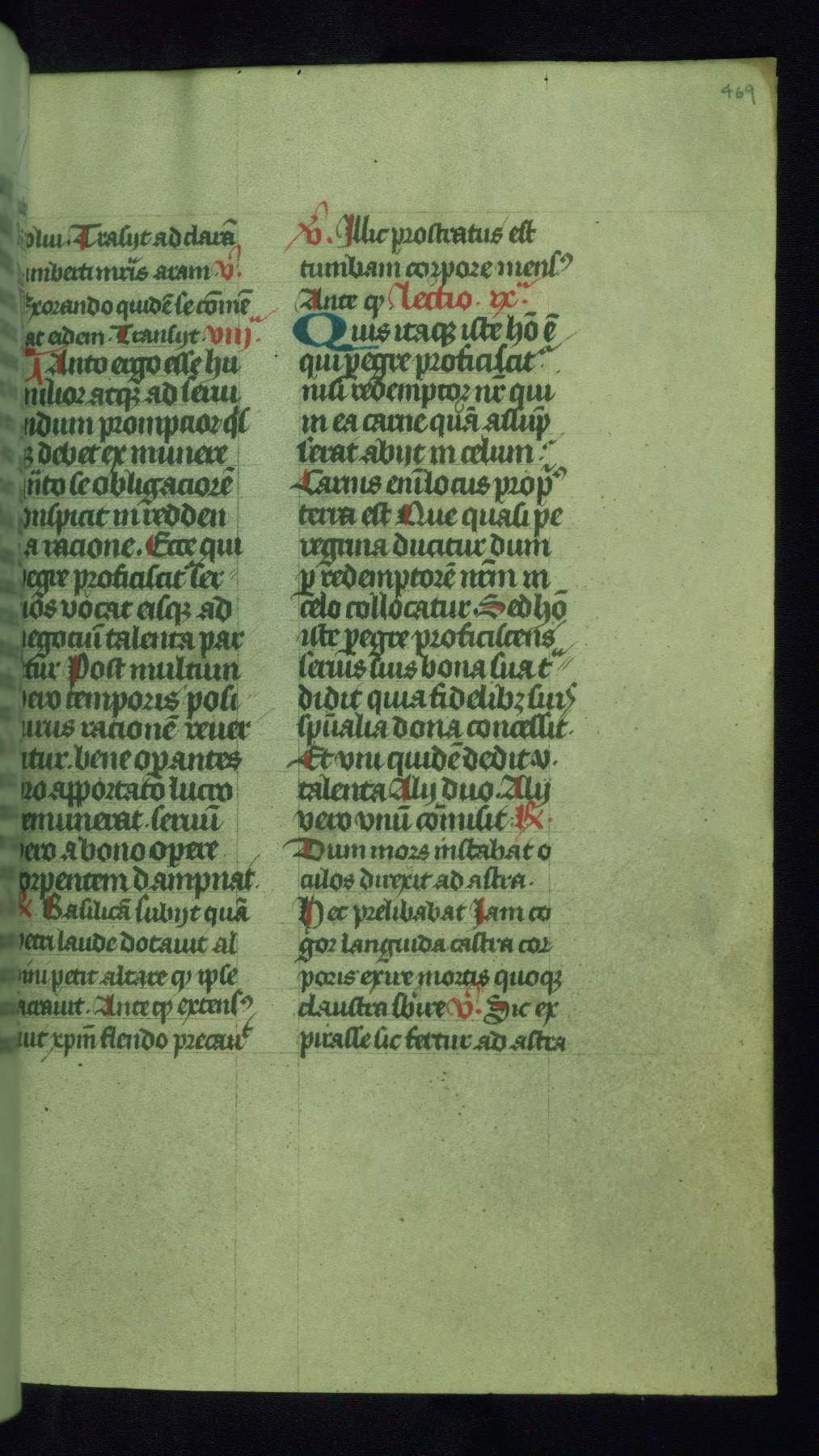 This small breviary, composed of more than 500 folios, is extraordinary for its length, considering it is the summer portion of a two-volume breviary for the use of Liège. The manuscript was completed for ecclesiastical use at the Cathedral of Notre-Dame and St.-Lambert in Liège ca. 1420. This attribution is suggested, for instance, by the petitions to the congregation of this cathedral (fols. 114v-117v), as well as the armorial shield of the family of Surlet de Chokier of Liège represented at the opening of the Psalms. The manuscript has modest, but interesting, decoration with historiated and decorated initials marking the liturgical texts, and occasional angels playing instruments in the margins. The most notable pictorial effect is found in the initials inhabited by transparent figures on rich blue ground. The technique is found, for instance, on fol. 156r with the gold monstrance held by translucent angels for the feast of the Corpus Christi.