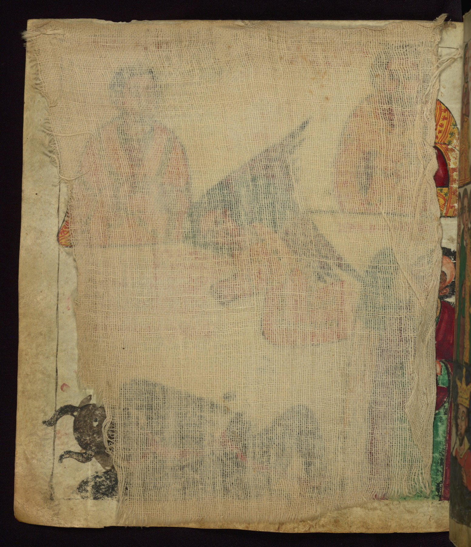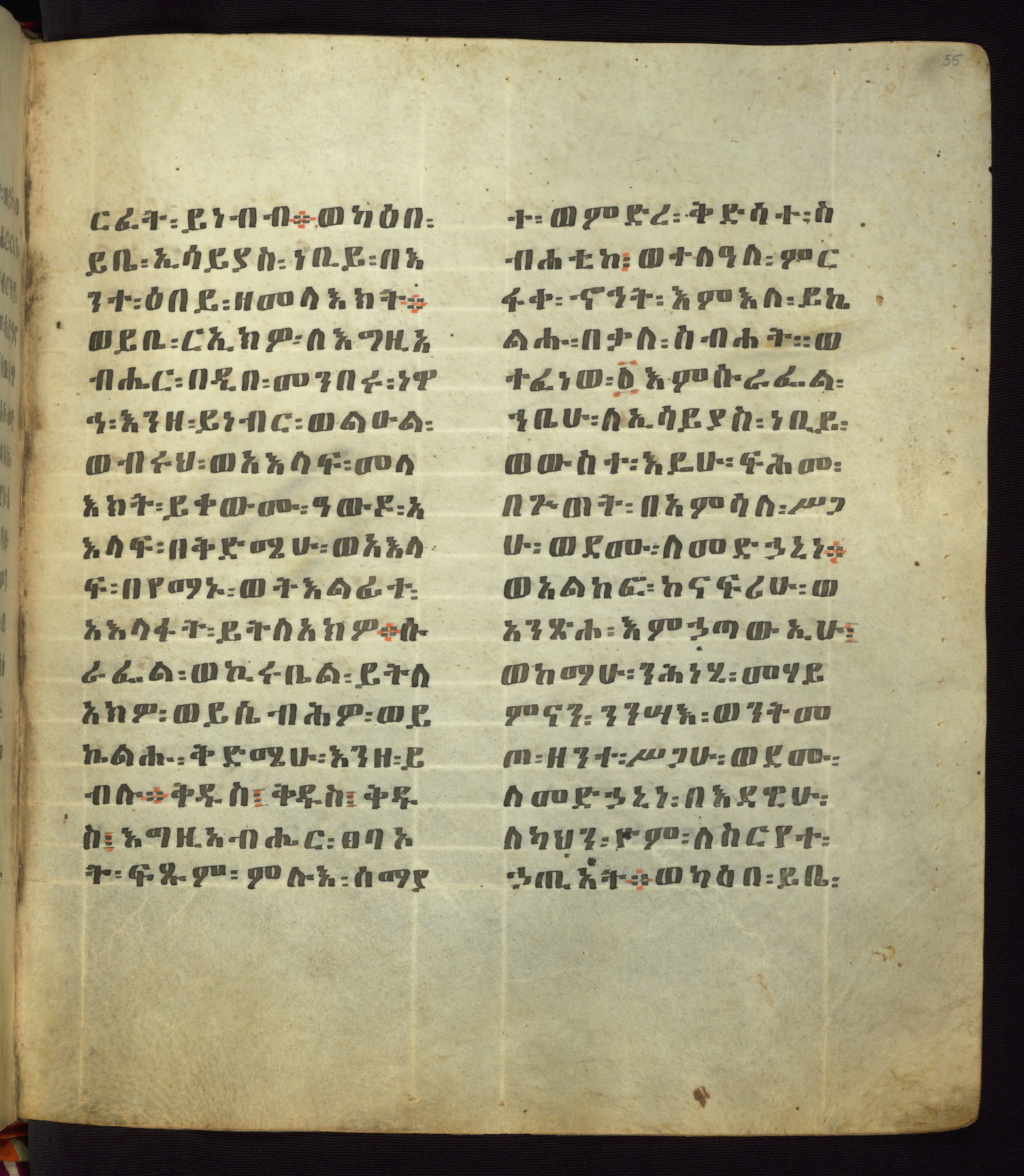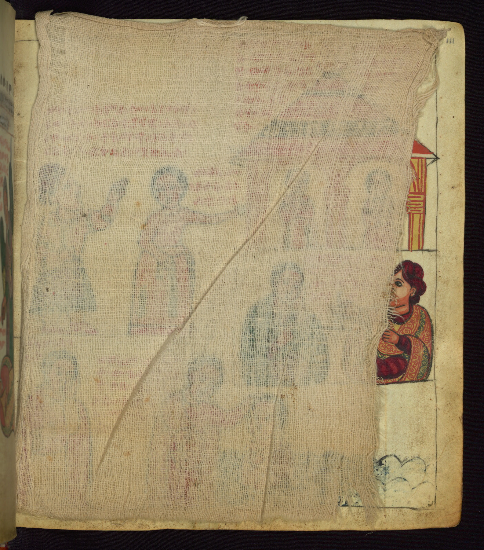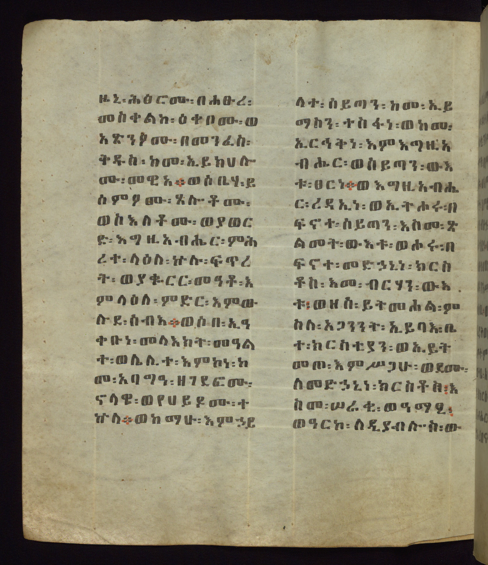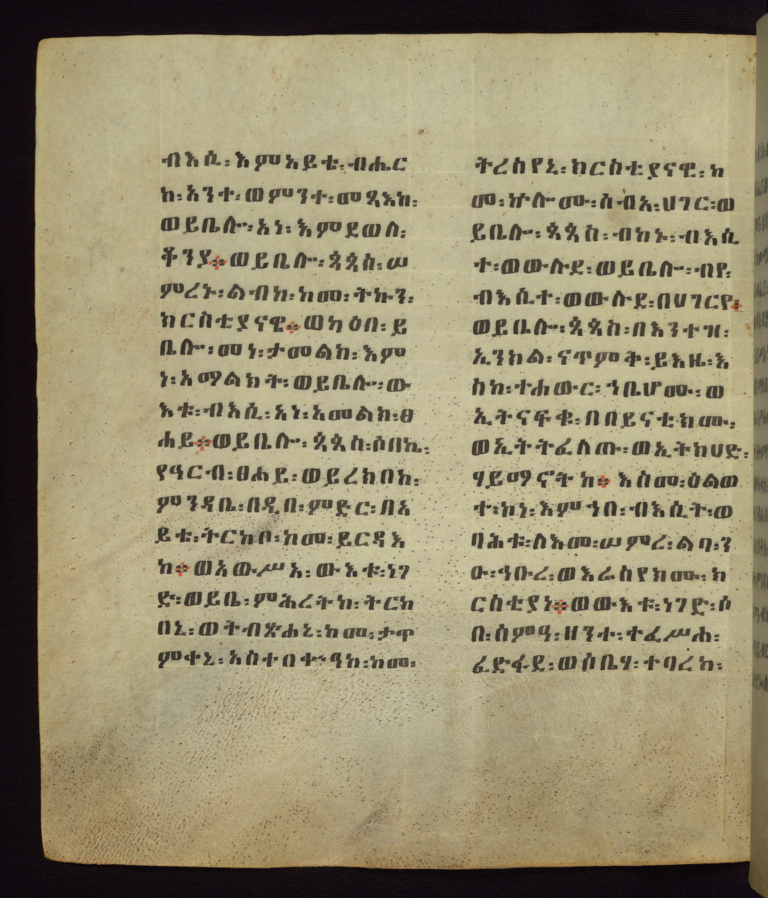 This Homiliary was created in Gondar, Ethiopia, during a period of artistic flowering in the late seventeenth century. The Imperial court and its accompanying aristocracy took up permanent residence in Gondar at this time, and the taste of these wealthy patrons for paintings and extensive image cycles is exemplified by this richly illuminated manuscript. The text, a Homiliary focused on the Miracles of the Archangel Michael, combines liturgical readings with forty-nine brightly colored renderings of God, St. Michael, and the miracles related in the text. Sections of the manuscript would have been read aloud on monthly feast days of the Archangel, and the images would have punctuated the readings. The artists were likely trained as painters, rather than solely as manuscript illuminators, and their art can therefore be linked stylistically to contemporary mural painting.
