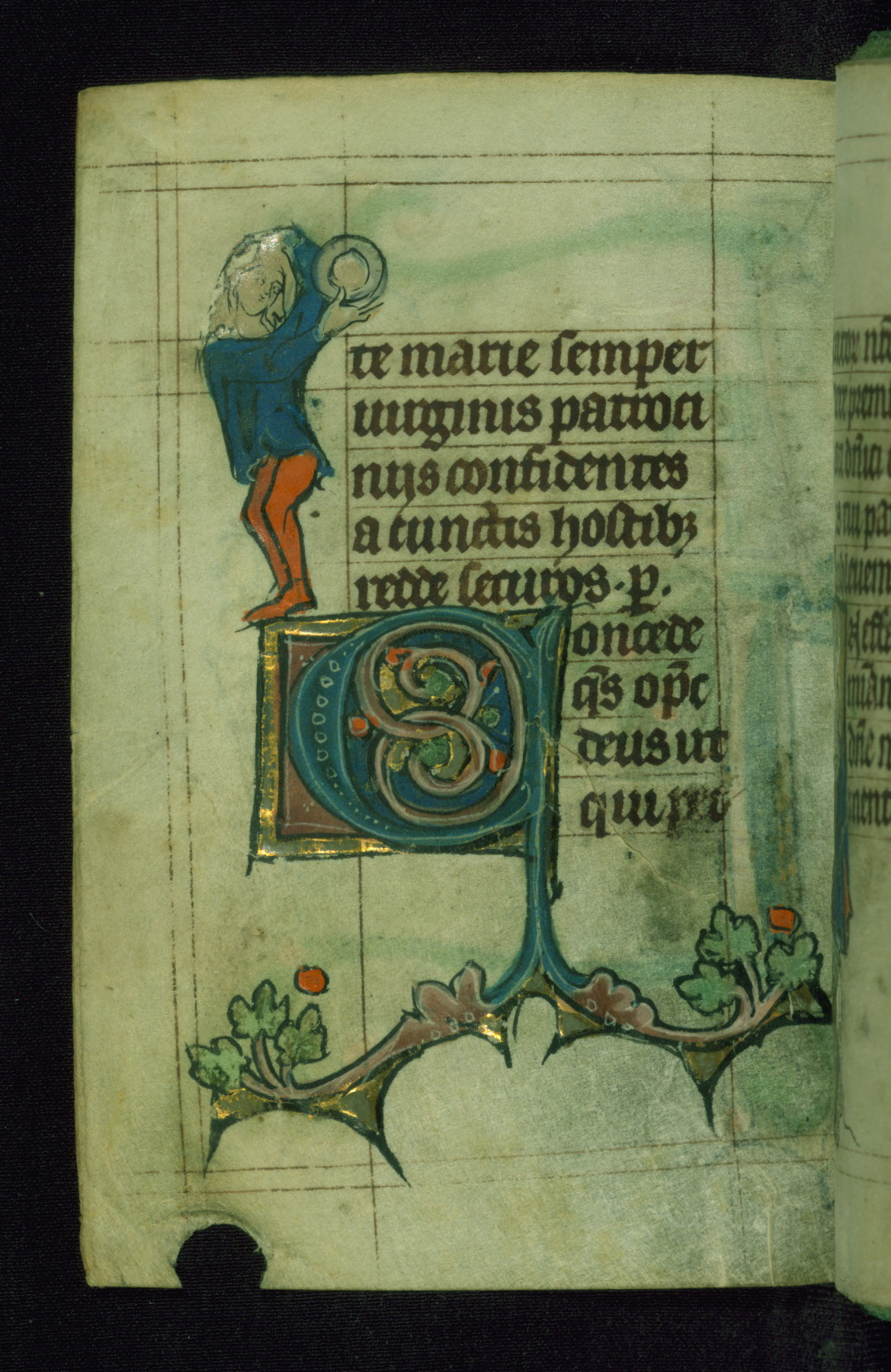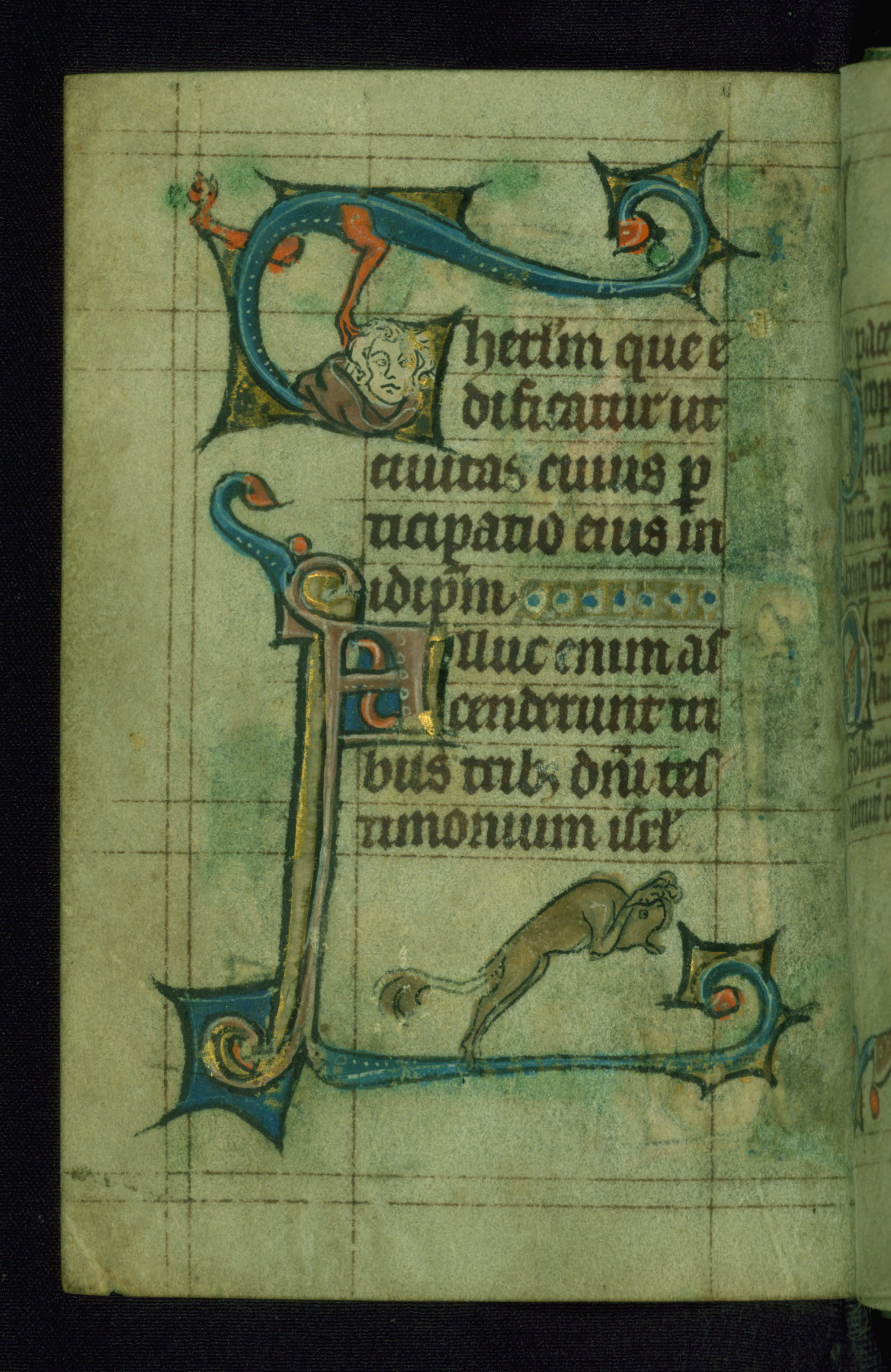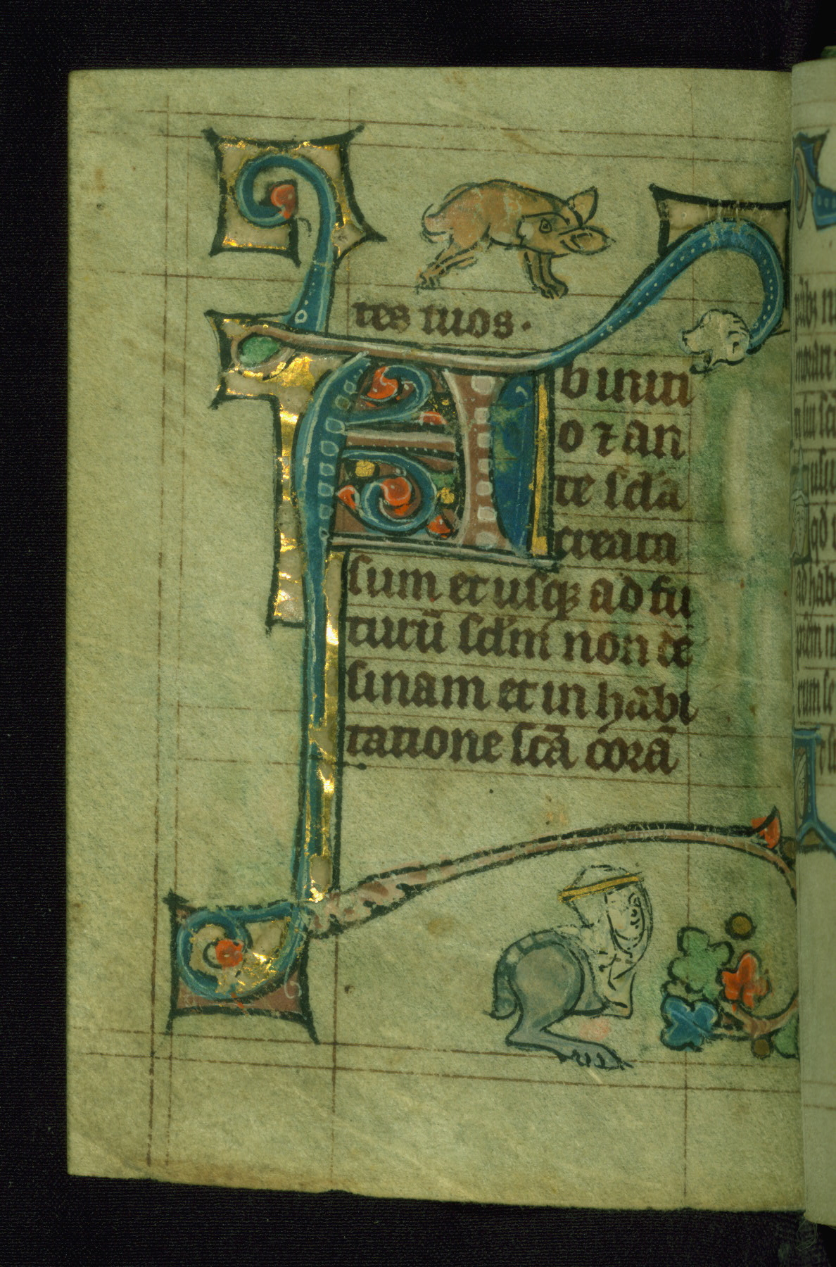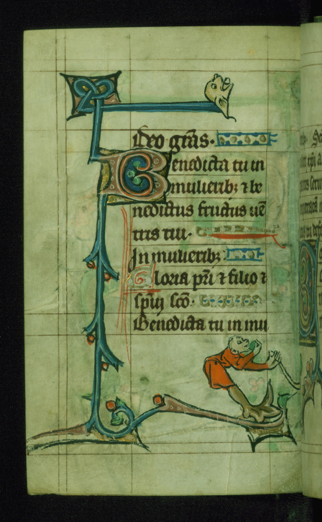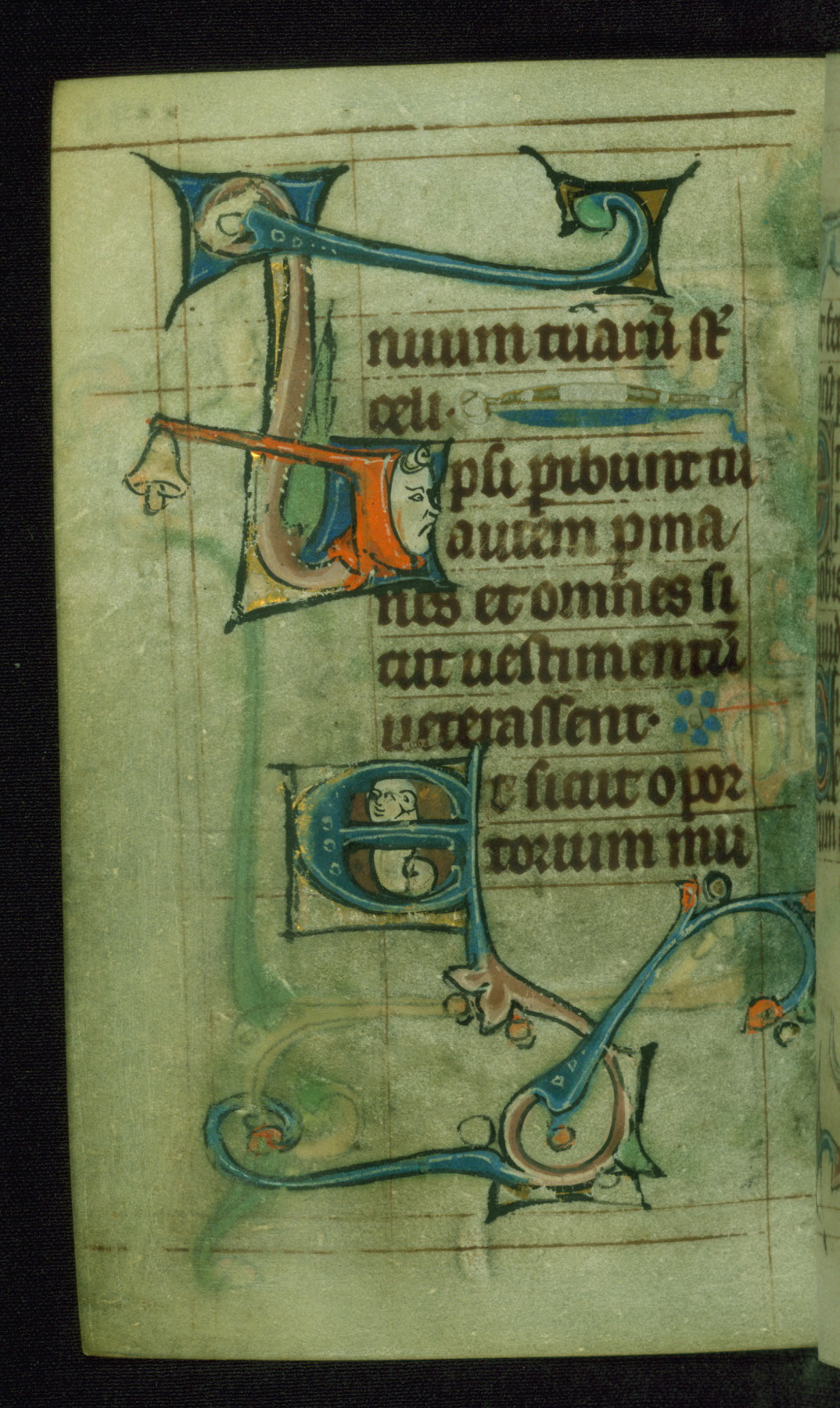This fragmentary Book of Hours was created in Ghent ca. 1300 for the use of a woman with Dominican ties. Although quite a bit of text and imagery is missing, including the calendar and Office of the Dead, this tiny manuscript is lavishly decorated on nearly every page with marginal drolleries and grotesques, making it a rich and charming book even in its fragmentary state.