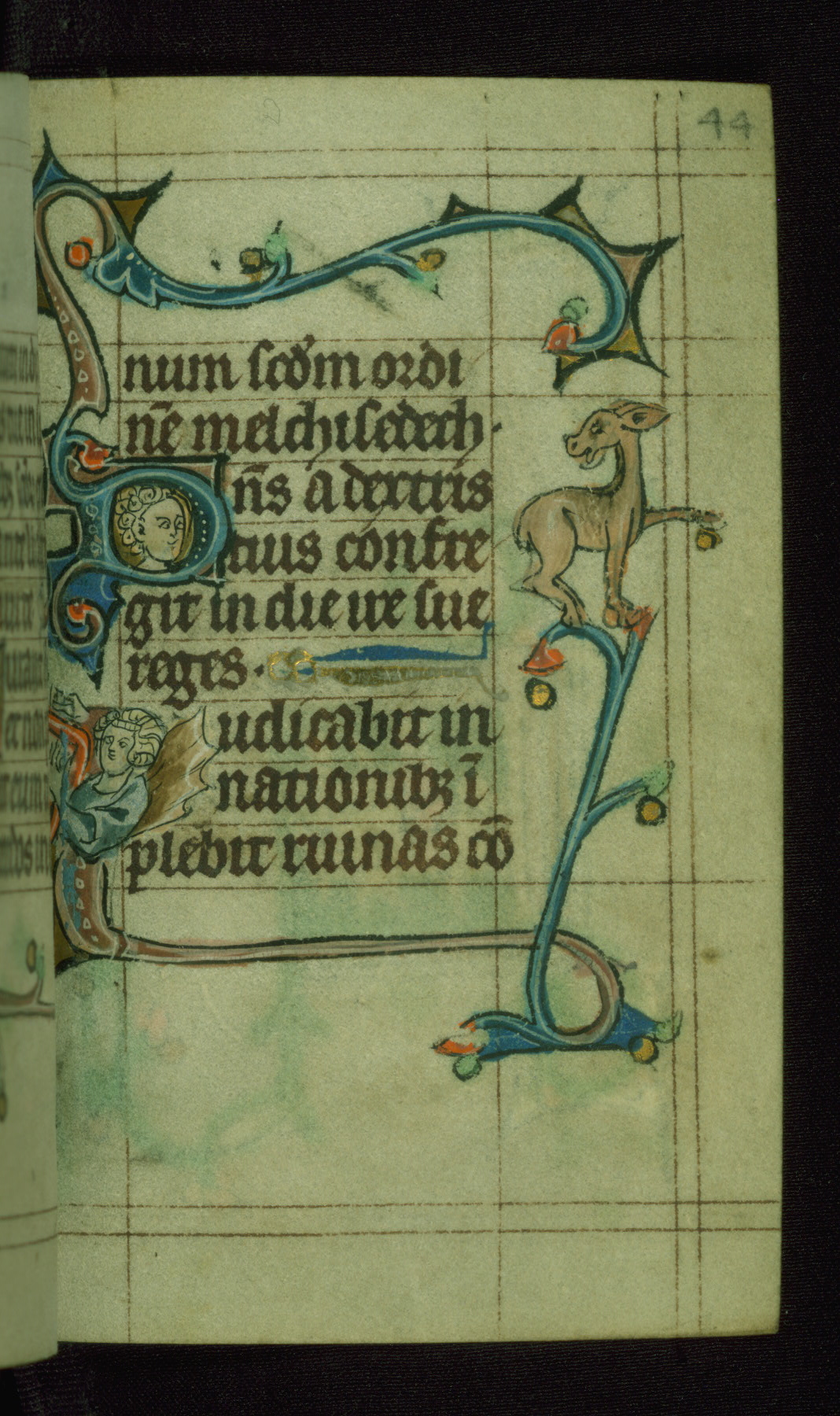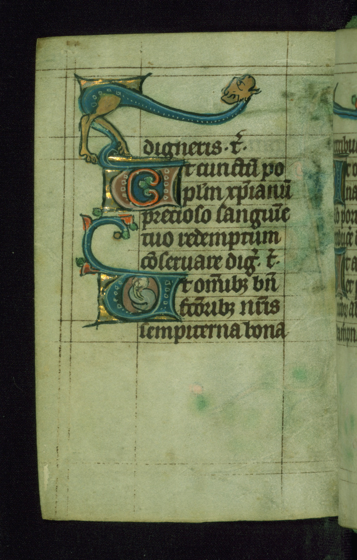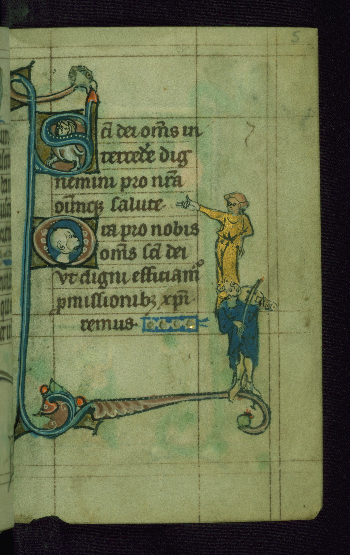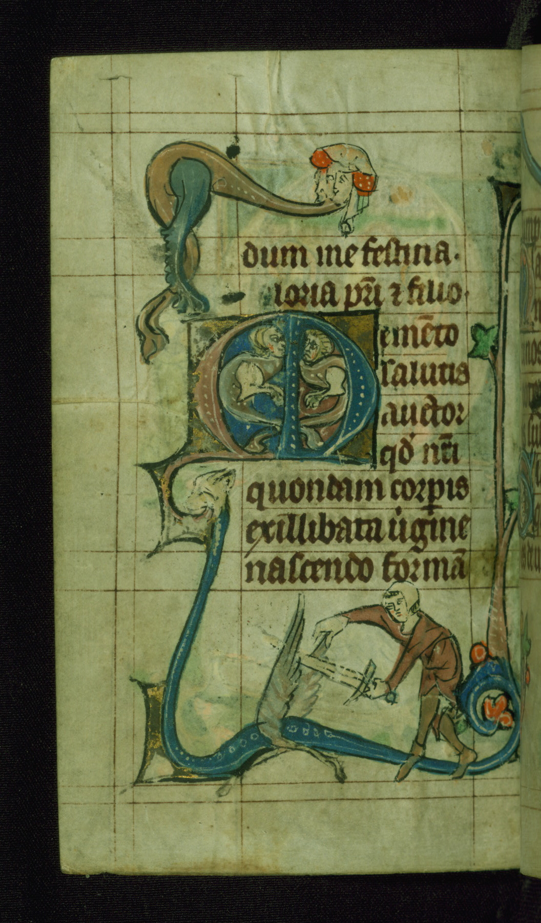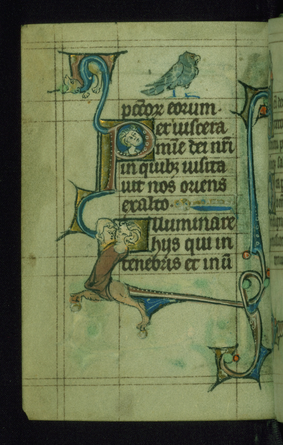 This fragmentary Book of Hours was created in Ghent ca. 1300 for the use of a woman with Dominican ties. Although quite a bit of text and imagery is missing, including the calendar and Office of the Dead, this tiny manuscript is lavishly decorated on nearly every page with marginal drolleries and grotesques, making it a rich and charming book even in its fragmentary state.