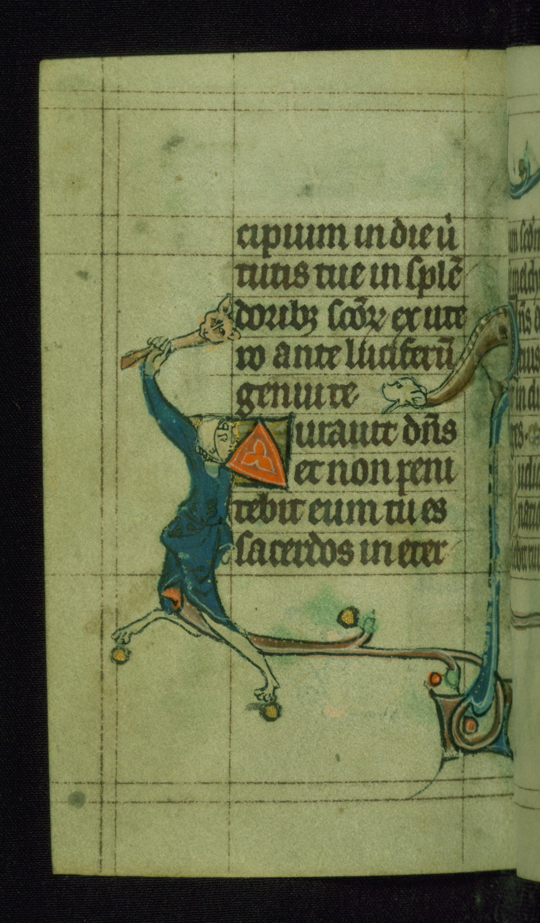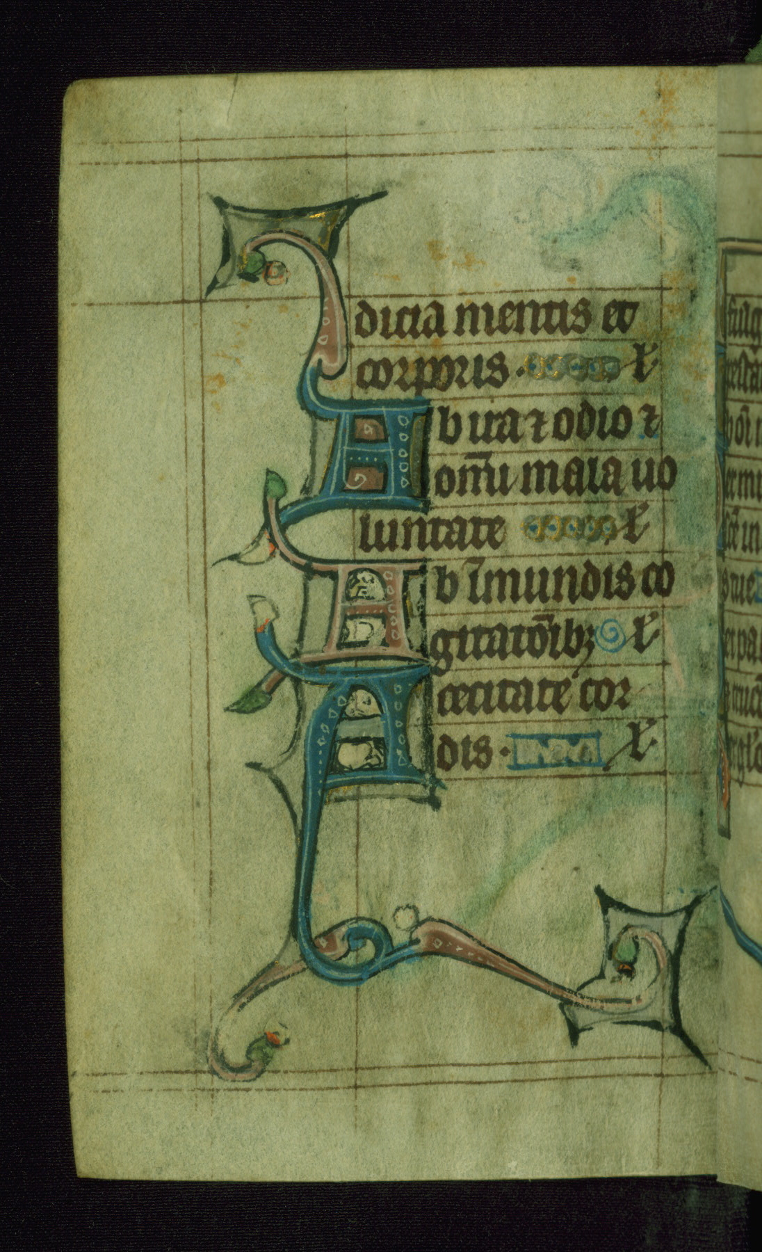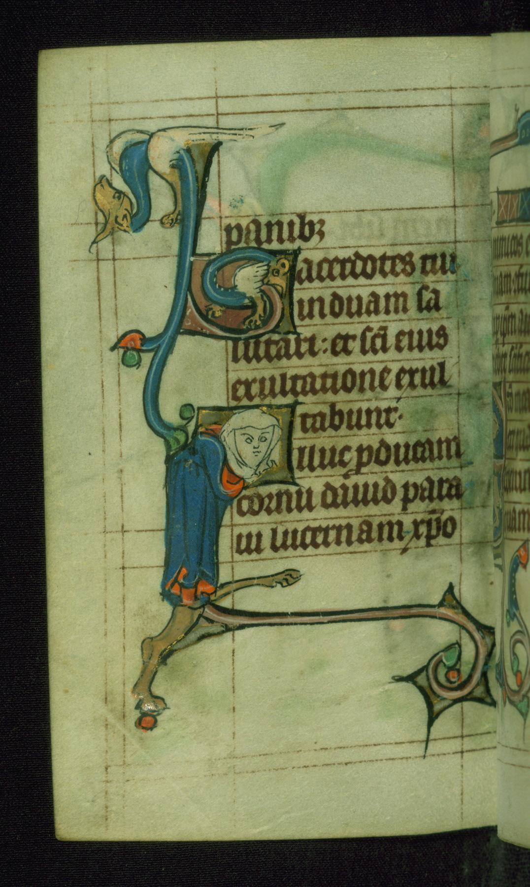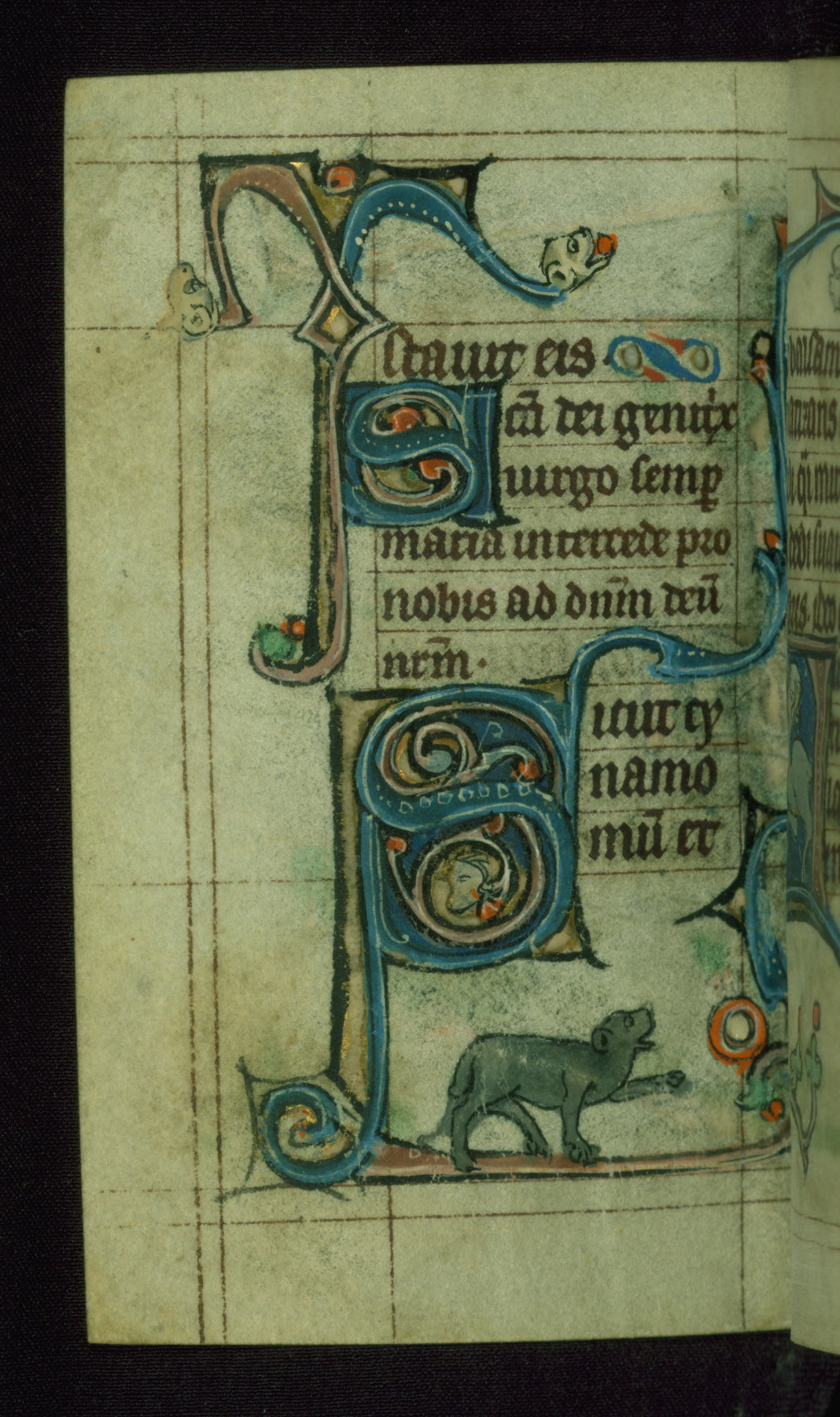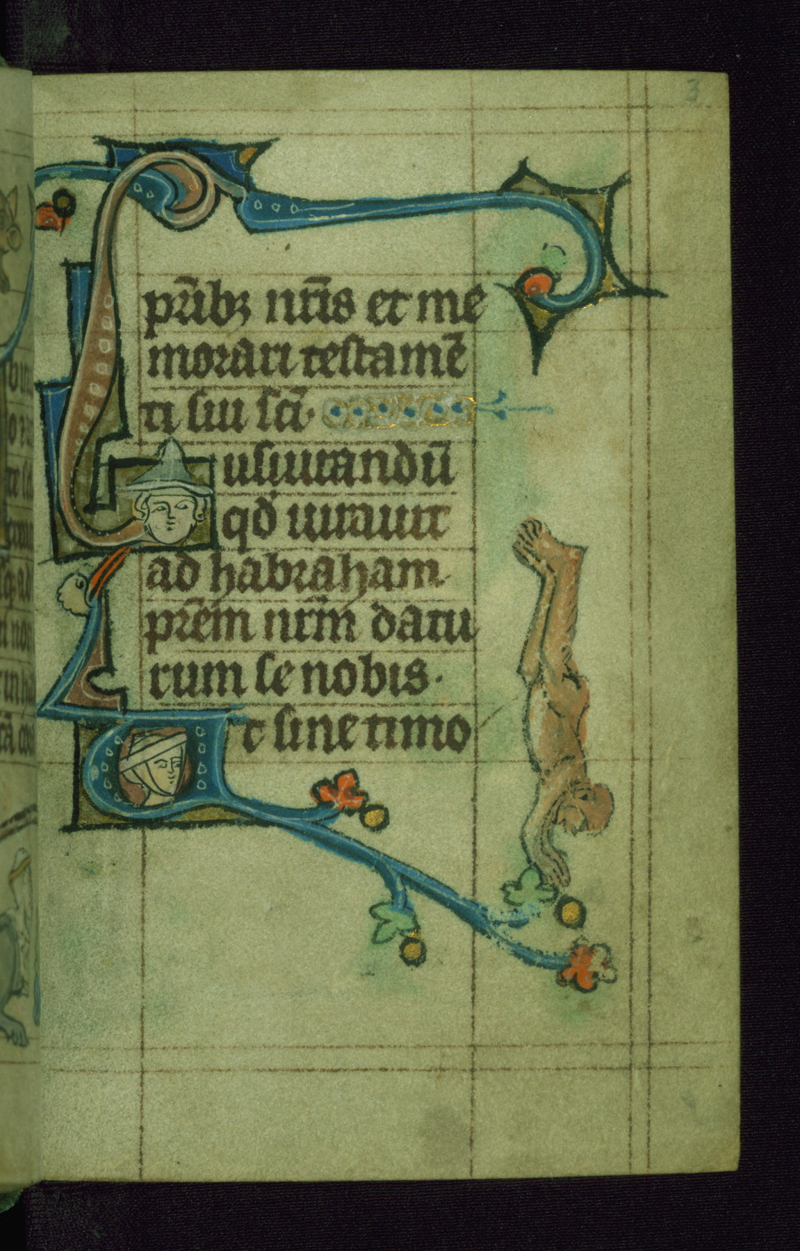 This fragmentary Book of Hours was created in Ghent ca. 1300 for the use of a woman with Dominican ties. Although quite a bit of text and imagery is missing, including the calendar and Office of the Dead, this tiny manuscript is lavishly decorated on nearly every page with marginal drolleries and grotesques, making it a rich and charming book even in its fragmentary state.