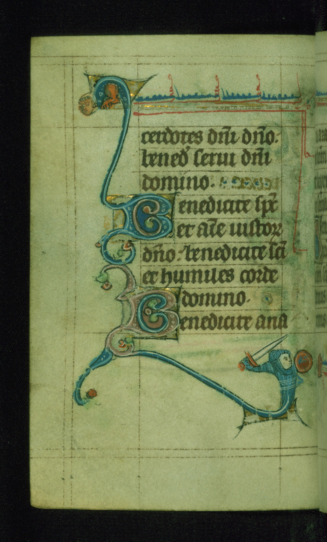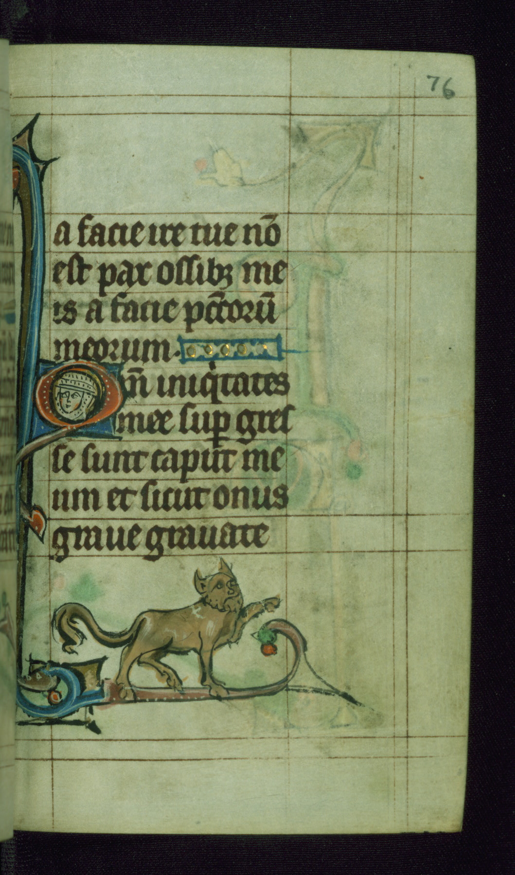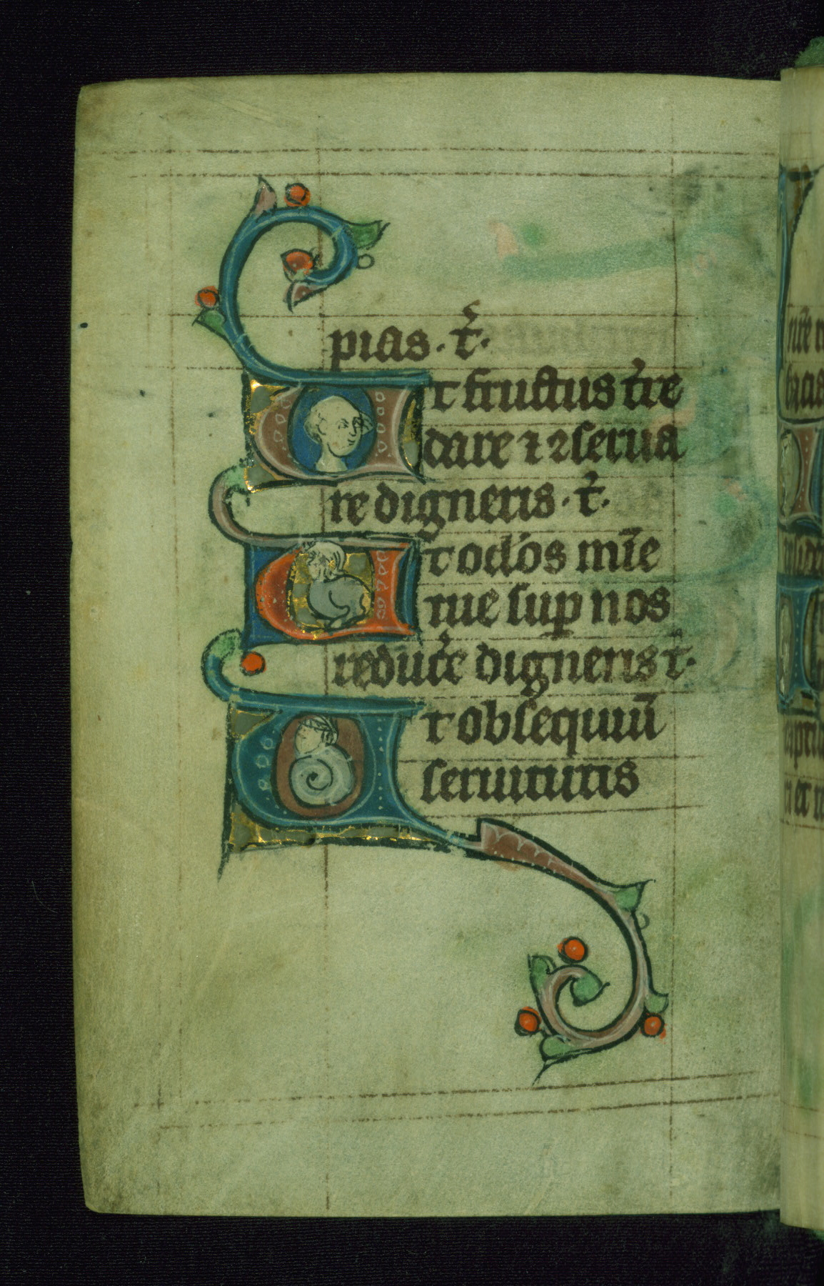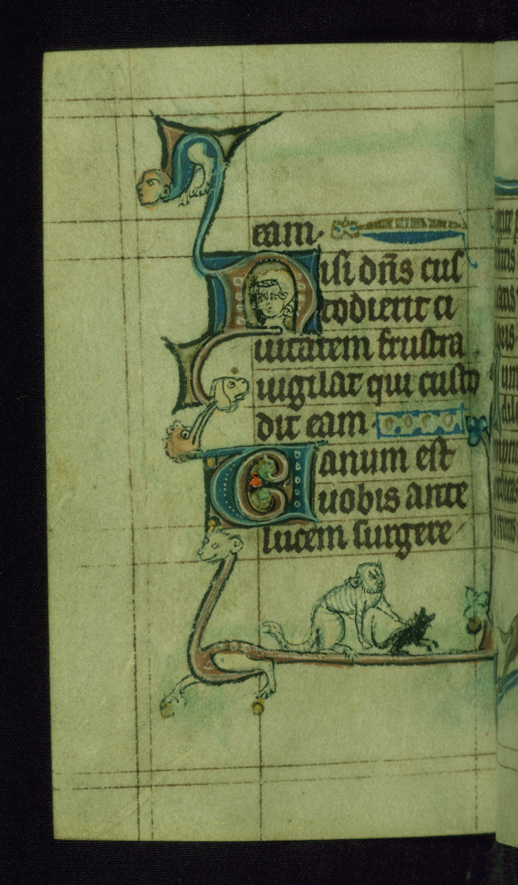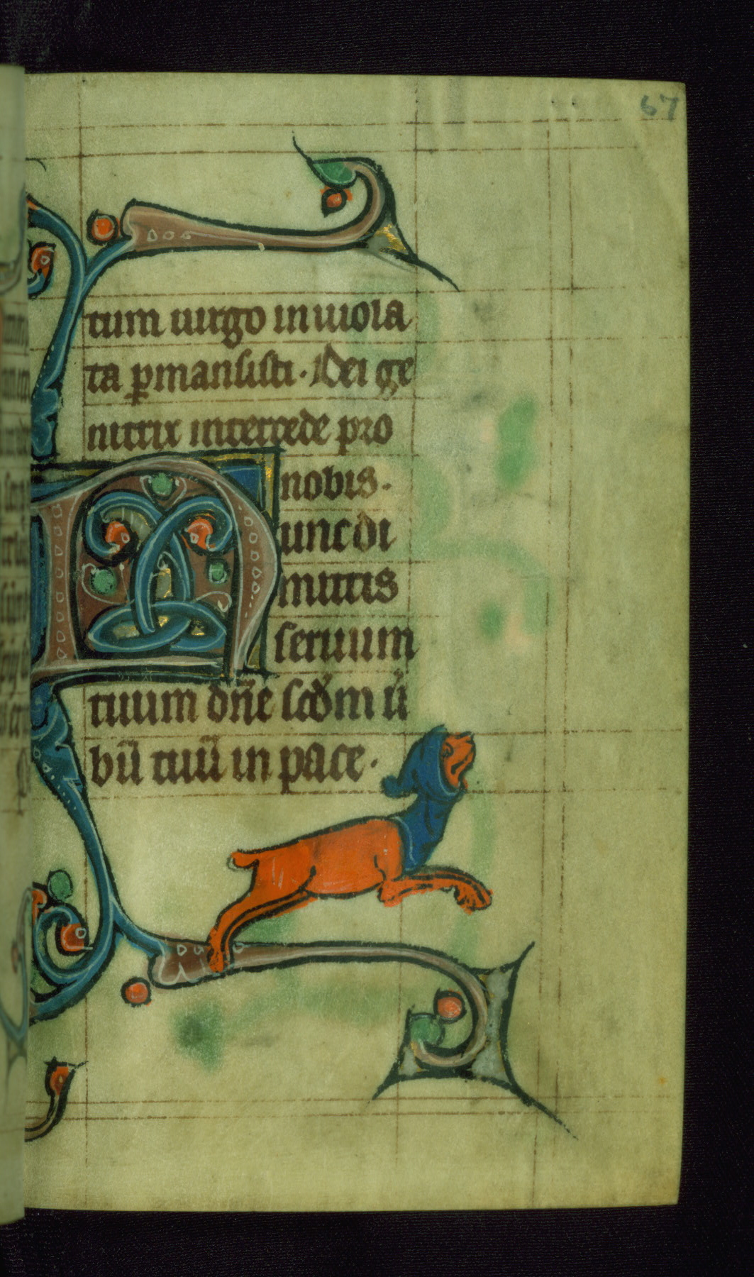 This fragmentary Book of Hours was created in Ghent ca. 1300 for the use of a woman with Dominican ties. Although quite a bit of text and imagery is missing, including the calendar and Office of the Dead, this tiny manuscript is lavishly decorated on nearly every page with marginal drolleries and grotesques, making it a rich and charming book even in its fragmentary state.