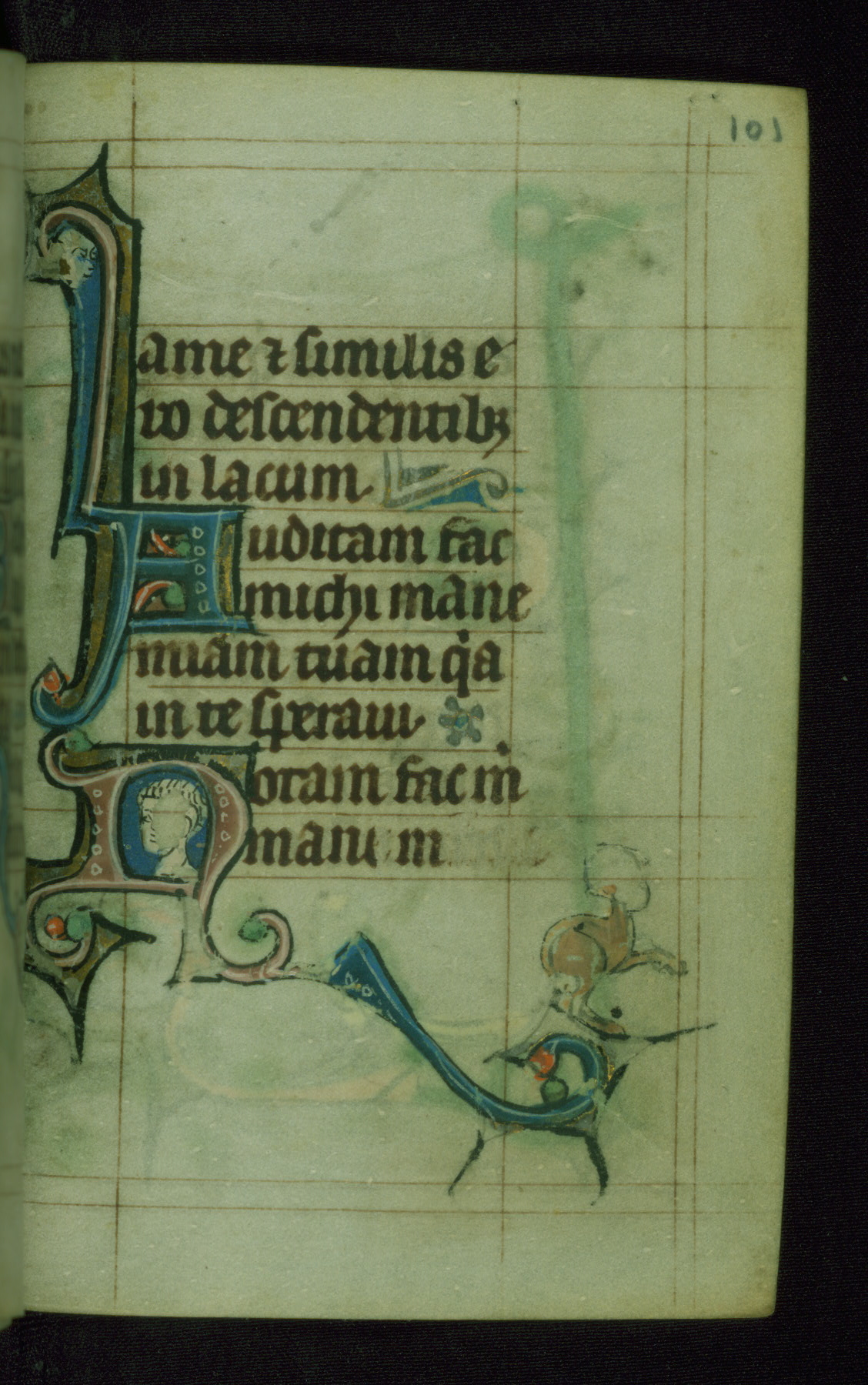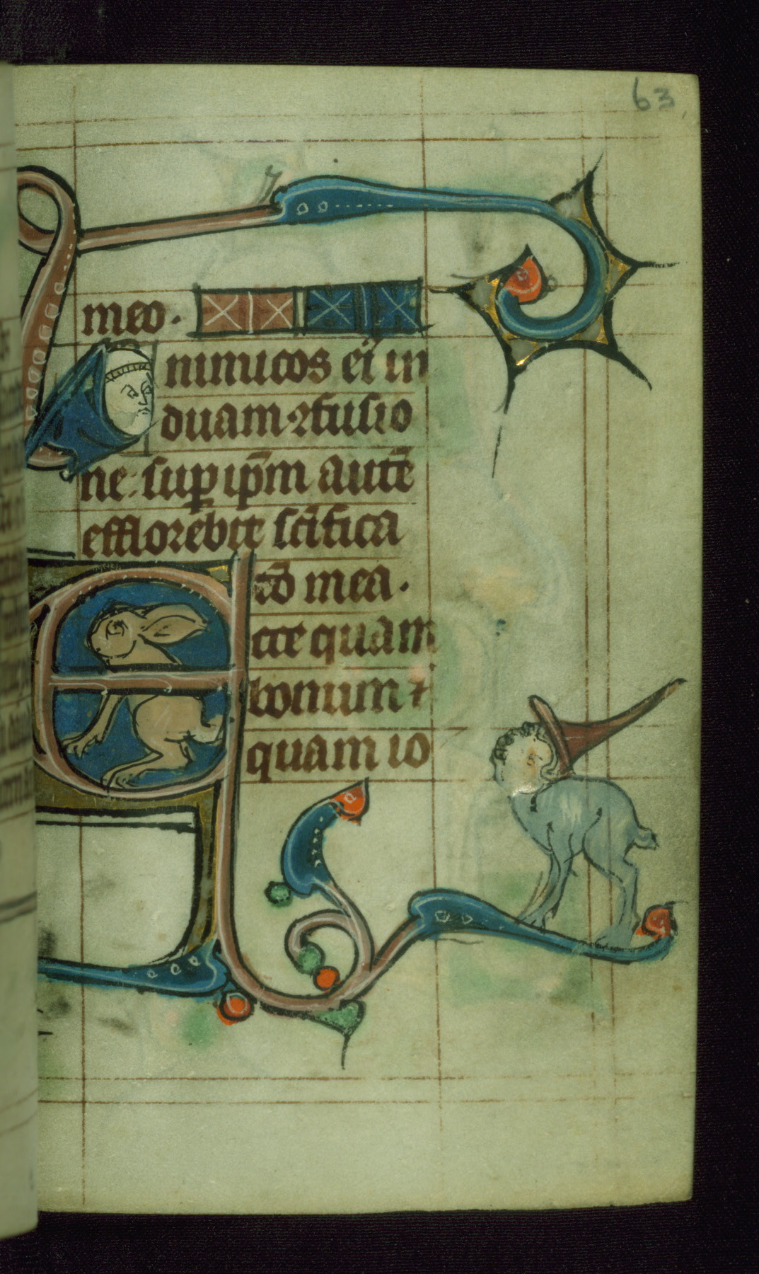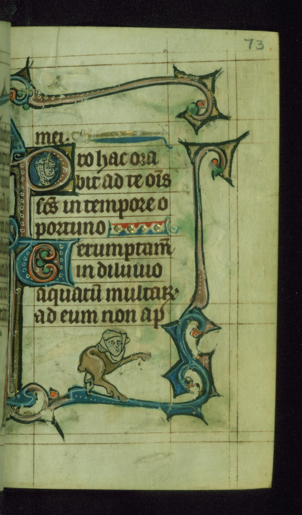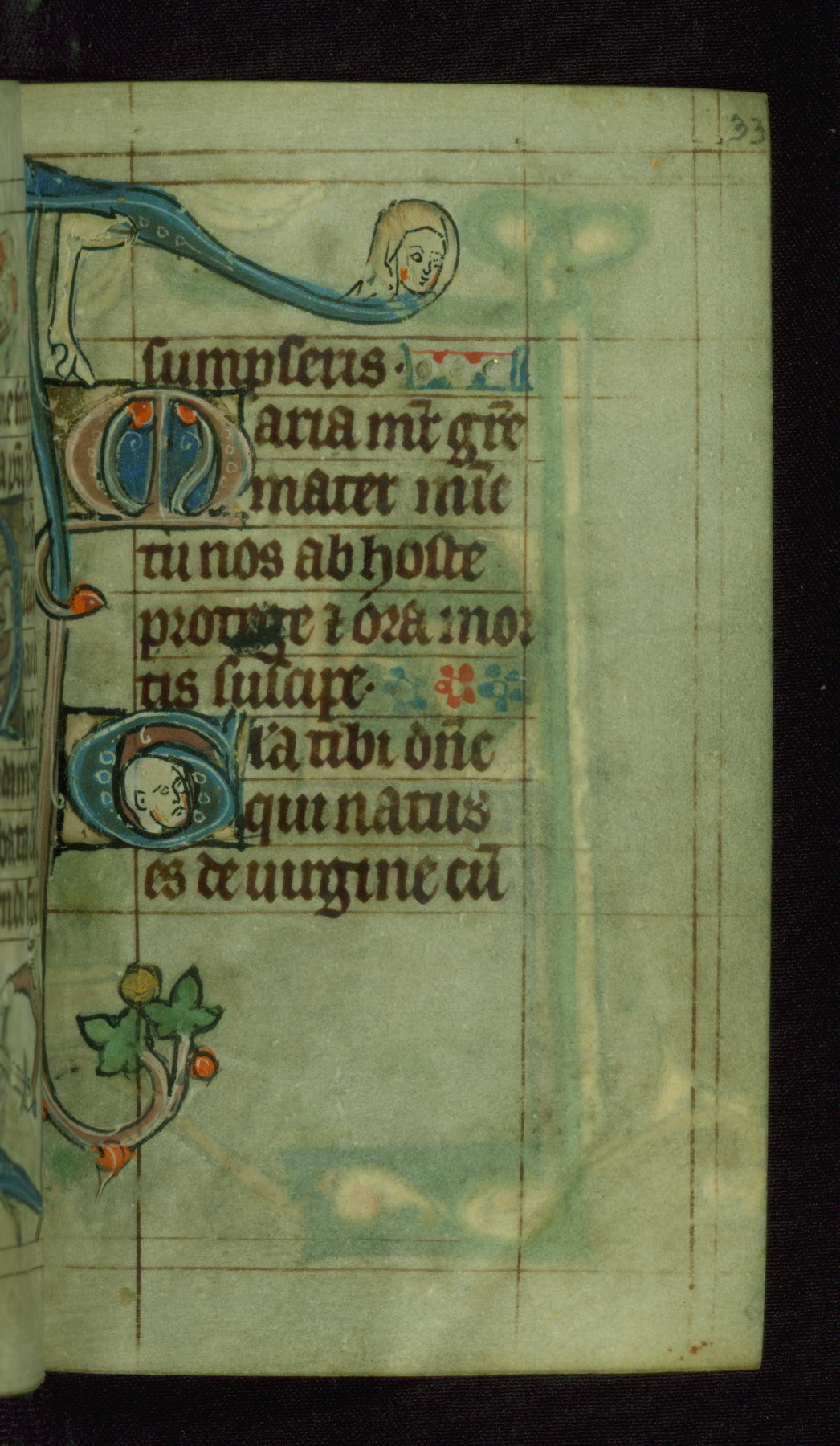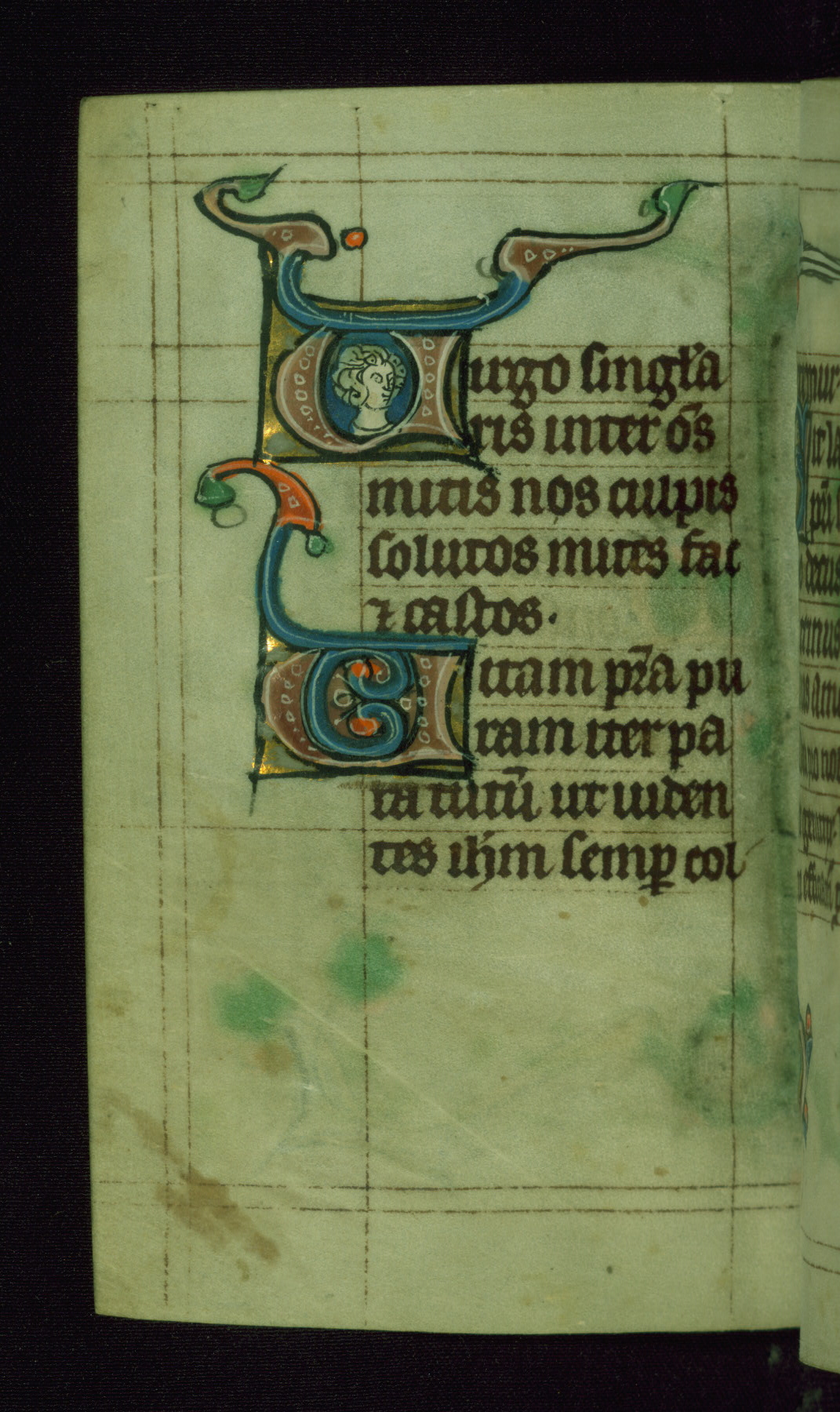 This fragmentary Book of Hours was created in Ghent ca. 1300 for the use of a woman with Dominican ties. Although quite a bit of text and imagery is missing, including the calendar and Office of the Dead, this tiny manuscript is lavishly decorated on nearly every page with marginal drolleries and grotesques, making it a rich and charming book even in its fragmentary state.