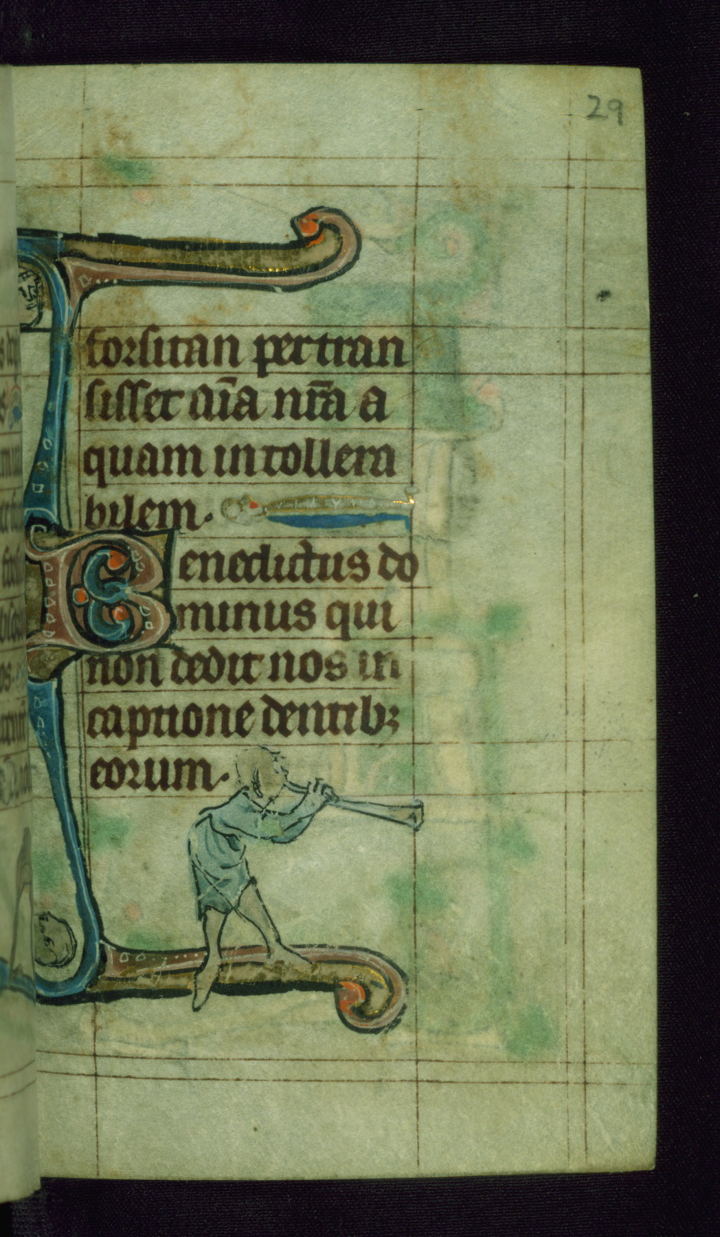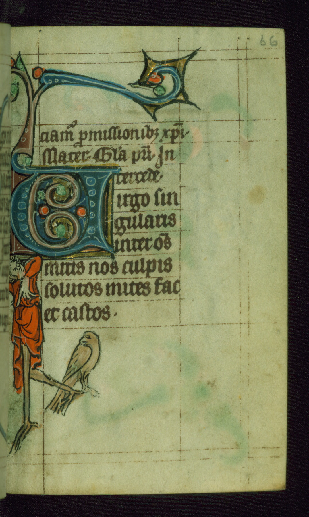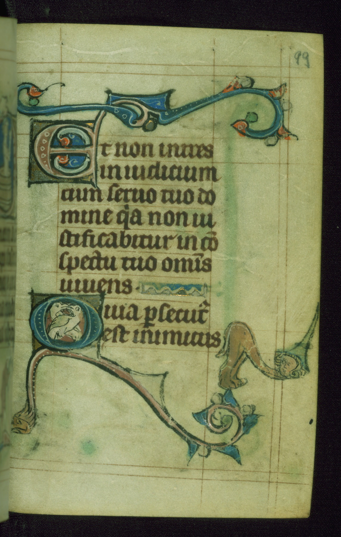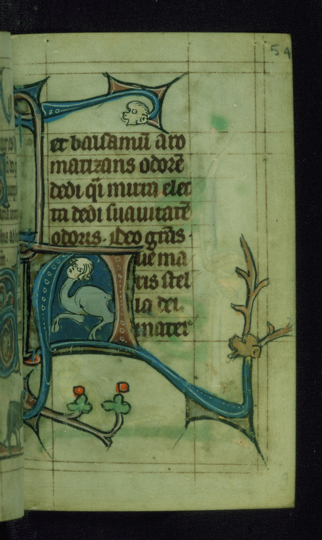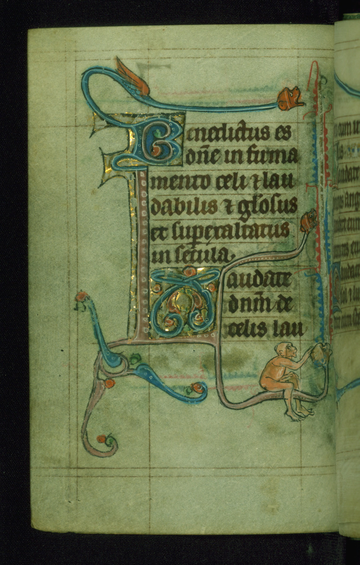 This fragmentary Book of Hours was created in Ghent ca. 1300 for the use of a woman with Dominican ties. Although quite a bit of text and imagery is missing, including the calendar and Office of the Dead, this tiny manuscript is lavishly decorated on nearly every page with marginal drolleries and grotesques, making it a rich and charming book even in its fragmentary state.