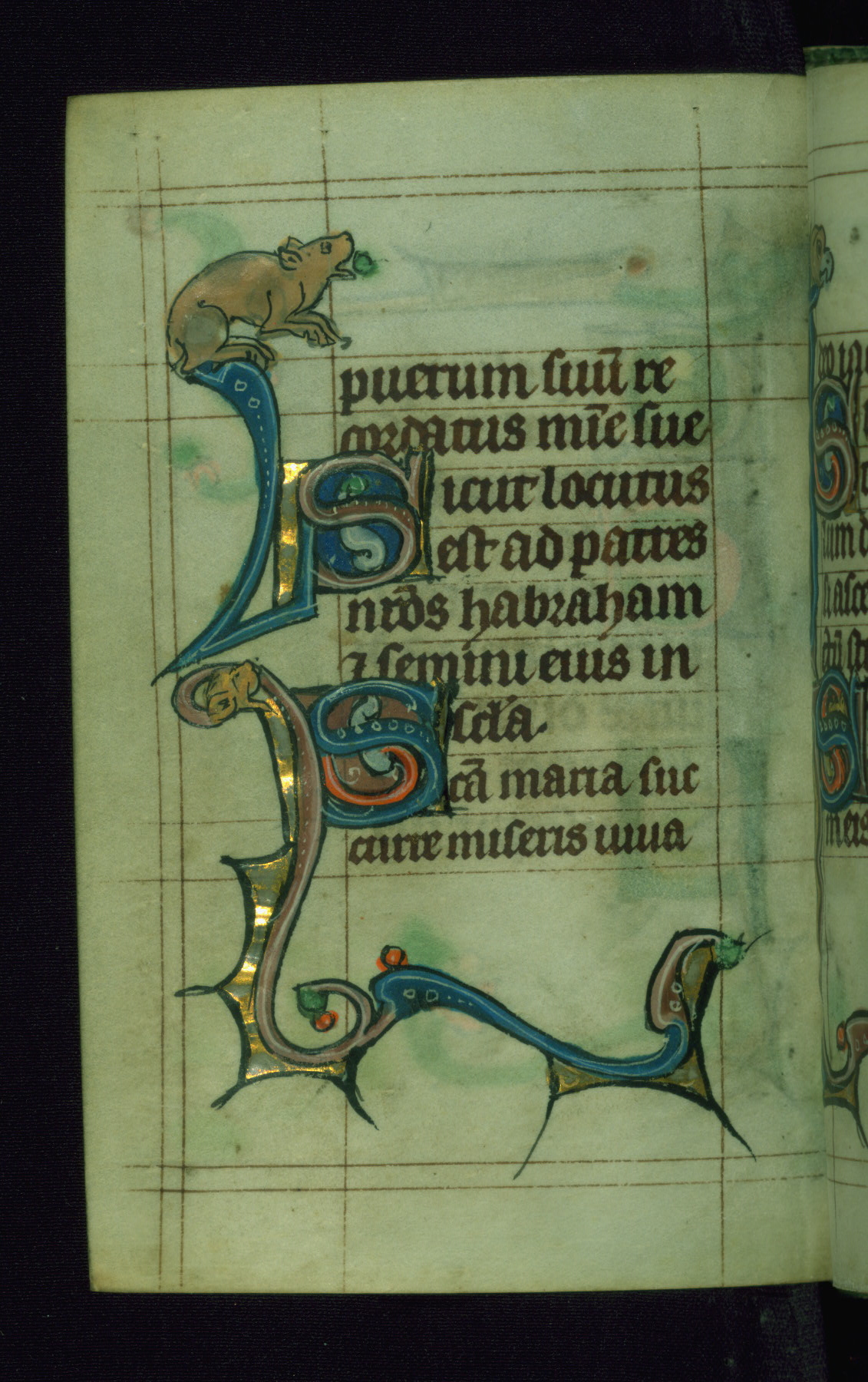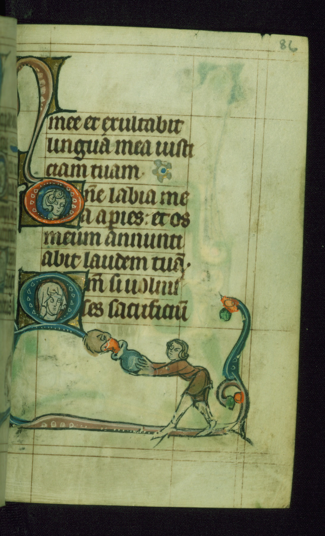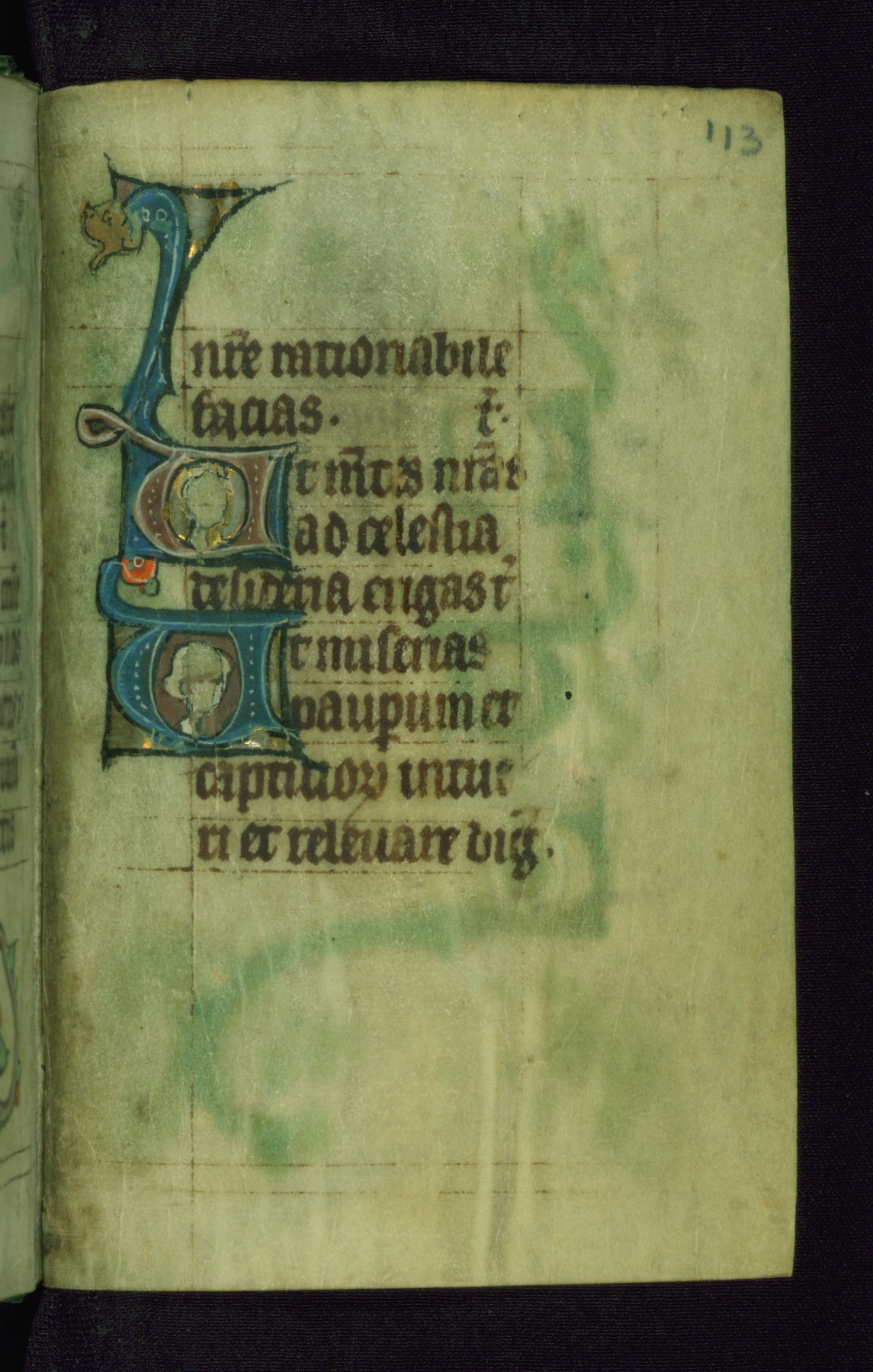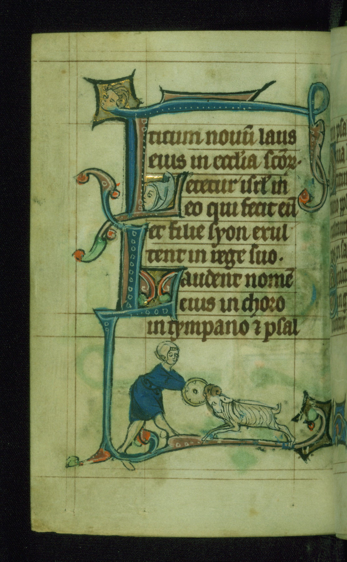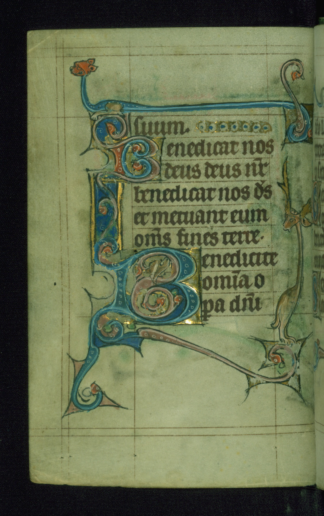 This fragmentary Book of Hours was created in Ghent ca. 1300 for the use of a woman with Dominican ties. Although quite a bit of text and imagery is missing, including the calendar and Office of the Dead, this tiny manuscript is lavishly decorated on nearly every page with marginal drolleries and grotesques, making it a rich and charming book even in its fragmentary state.