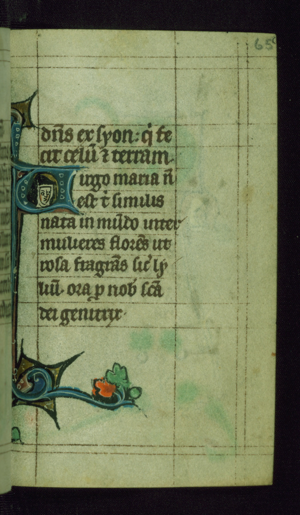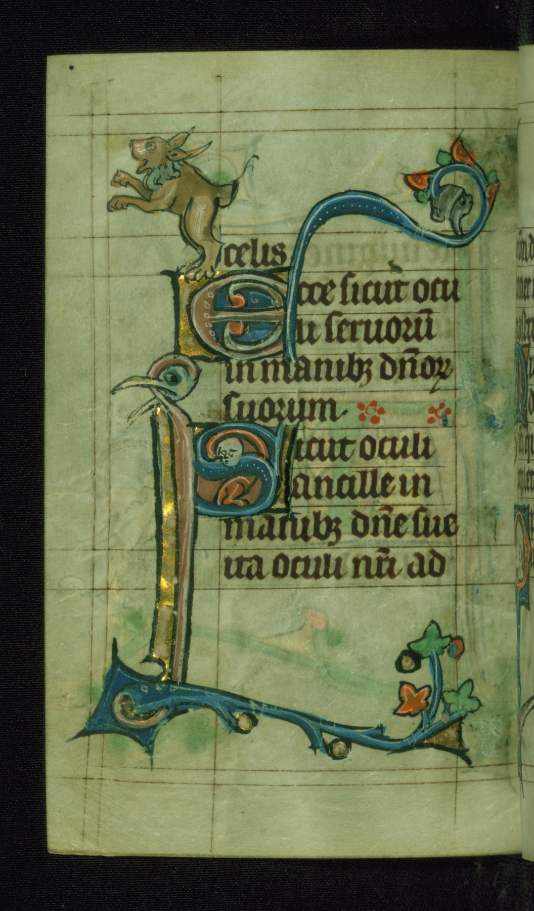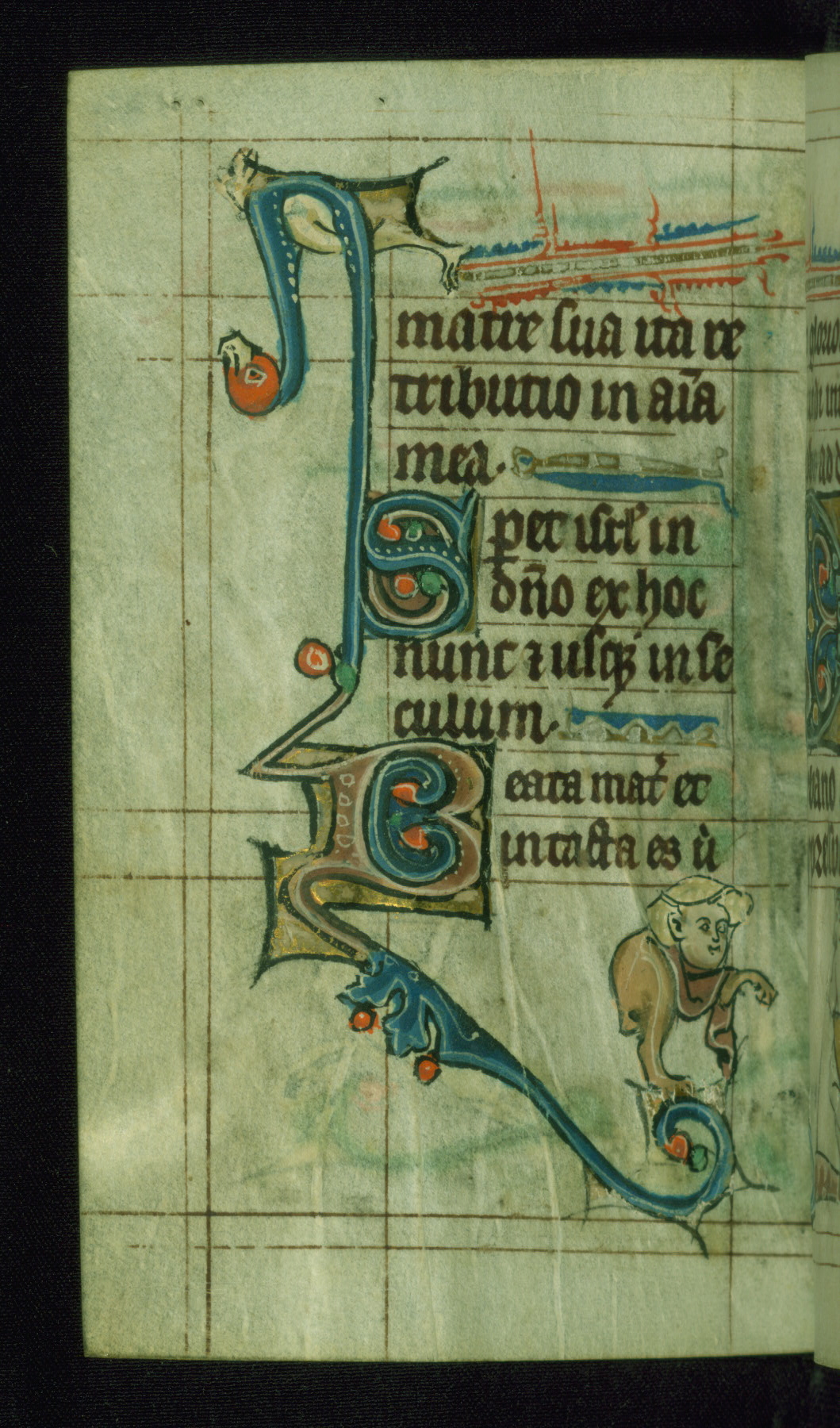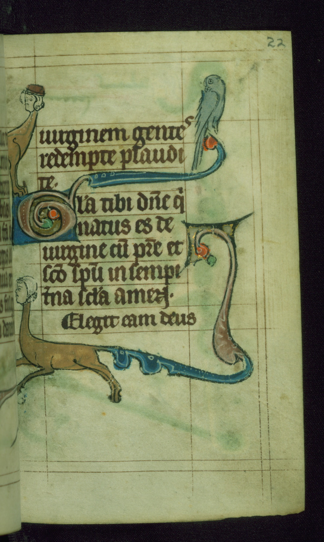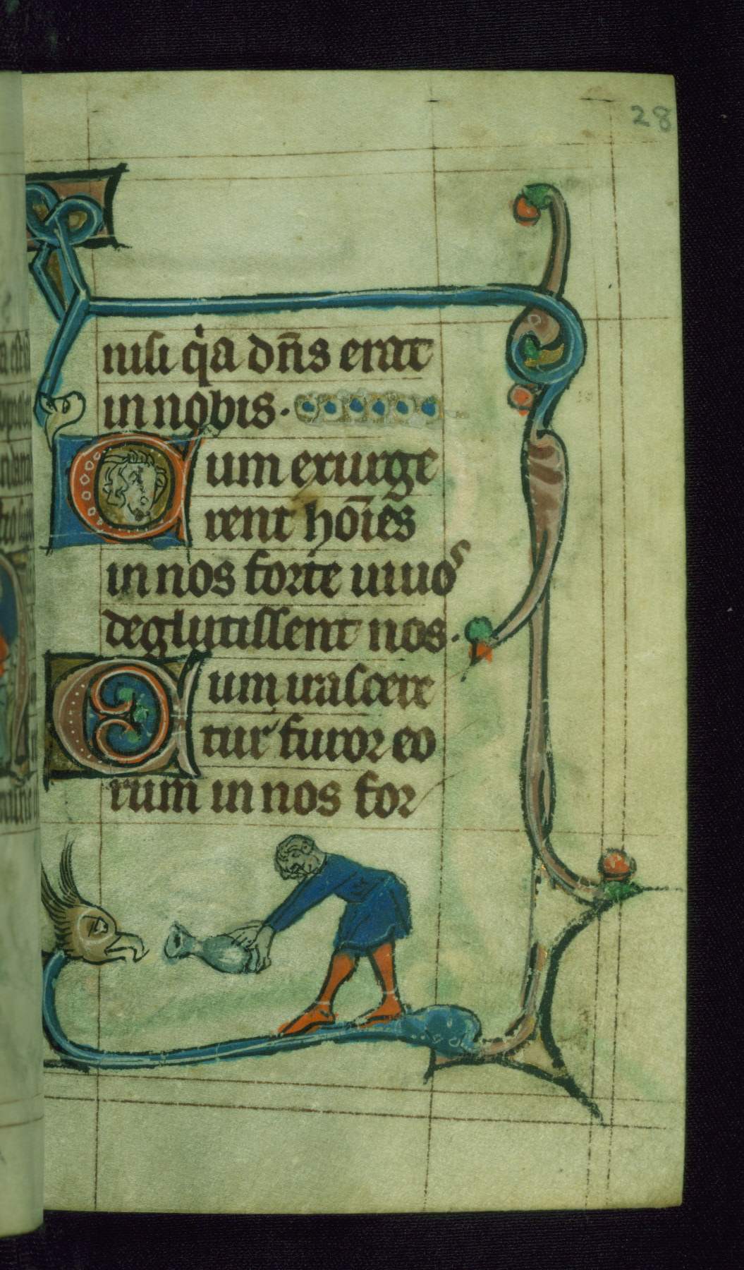 This fragmentary Book of Hours was created in Ghent ca. 1300 for the use of a woman with Dominican ties. Although quite a bit of text and imagery is missing, including the calendar and Office of the Dead, this tiny manuscript is lavishly decorated on nearly every page with marginal drolleries and grotesques, making it a rich and charming book even in its fragmentary state.