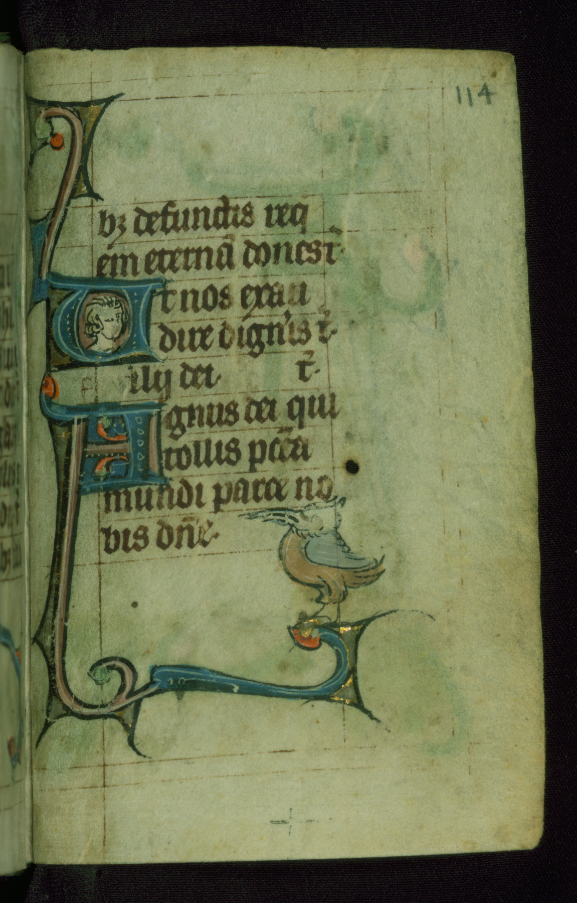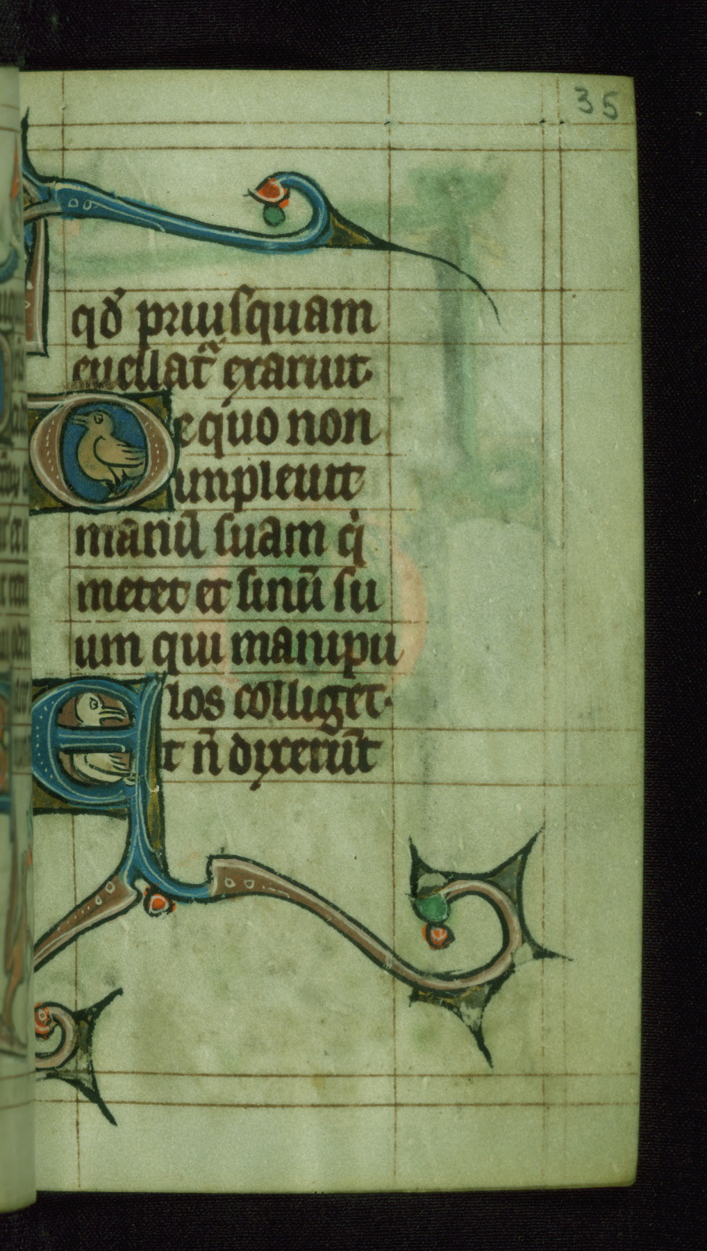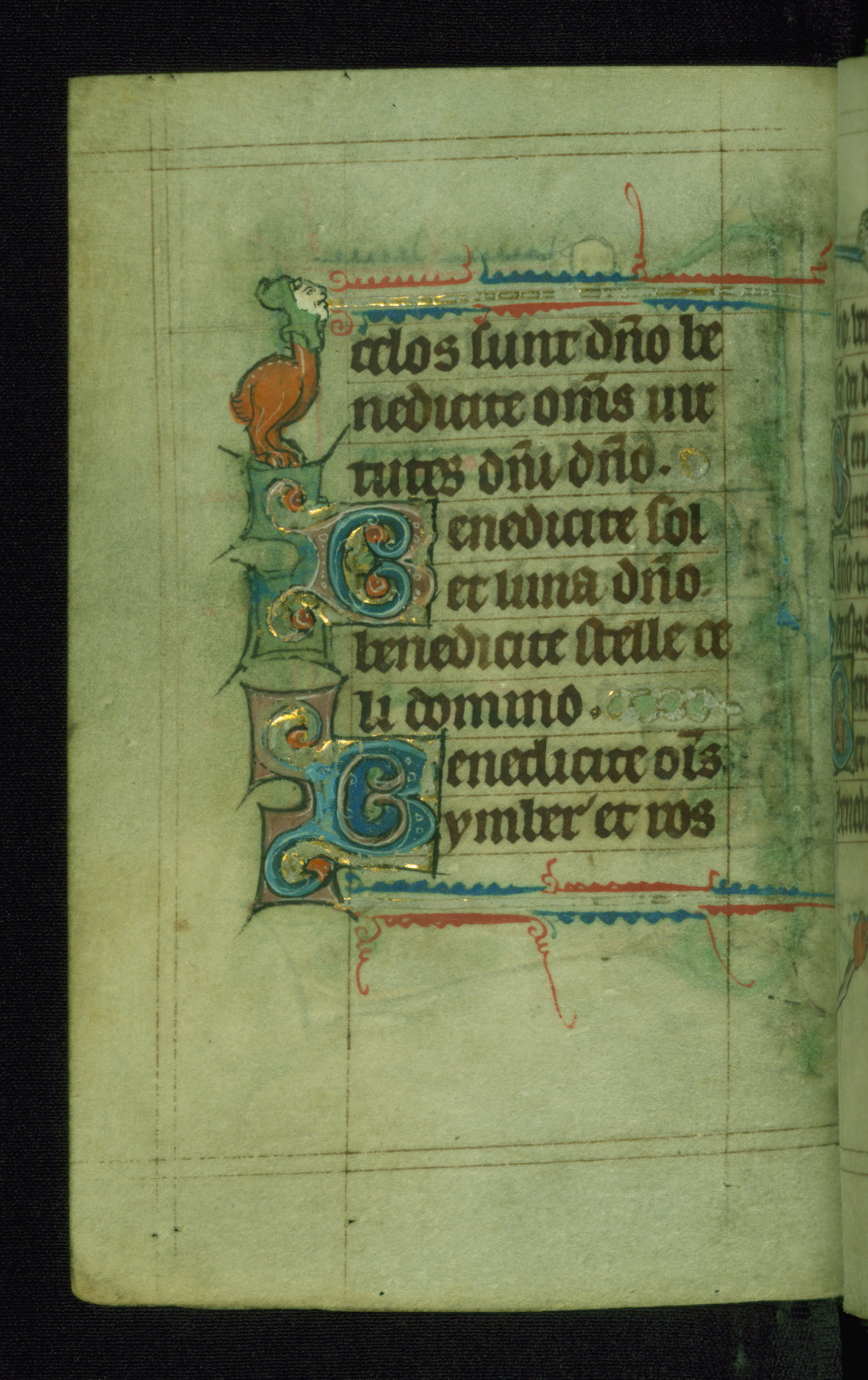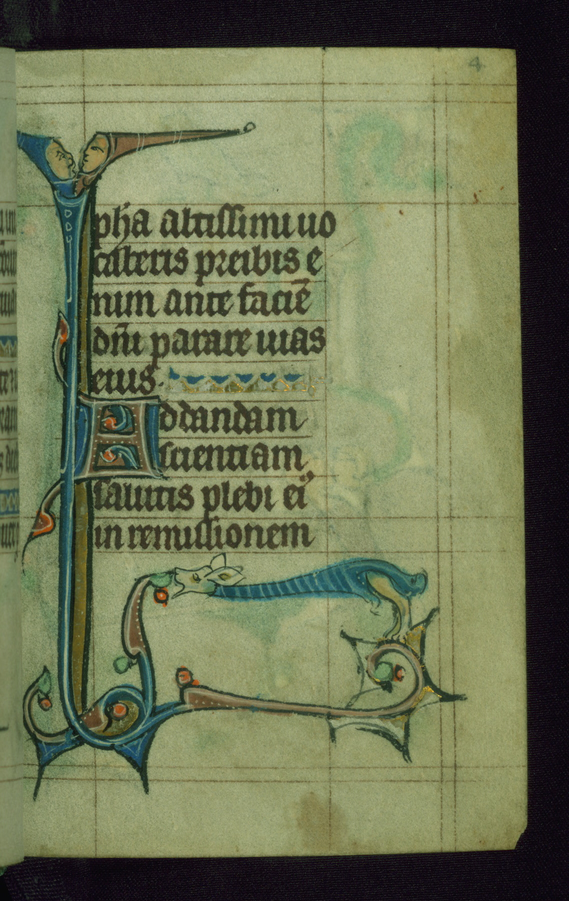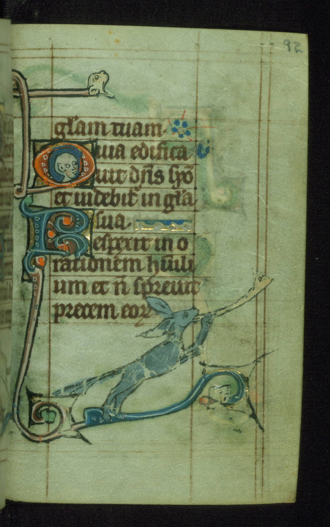 This fragmentary Book of Hours was created in Ghent ca. 1300 for the use of a woman with Dominican ties. Although quite a bit of text and imagery is missing, including the calendar and Office of the Dead, this tiny manuscript is lavishly decorated on nearly every page with marginal drolleries and grotesques, making it a rich and charming book even in its fragmentary state.