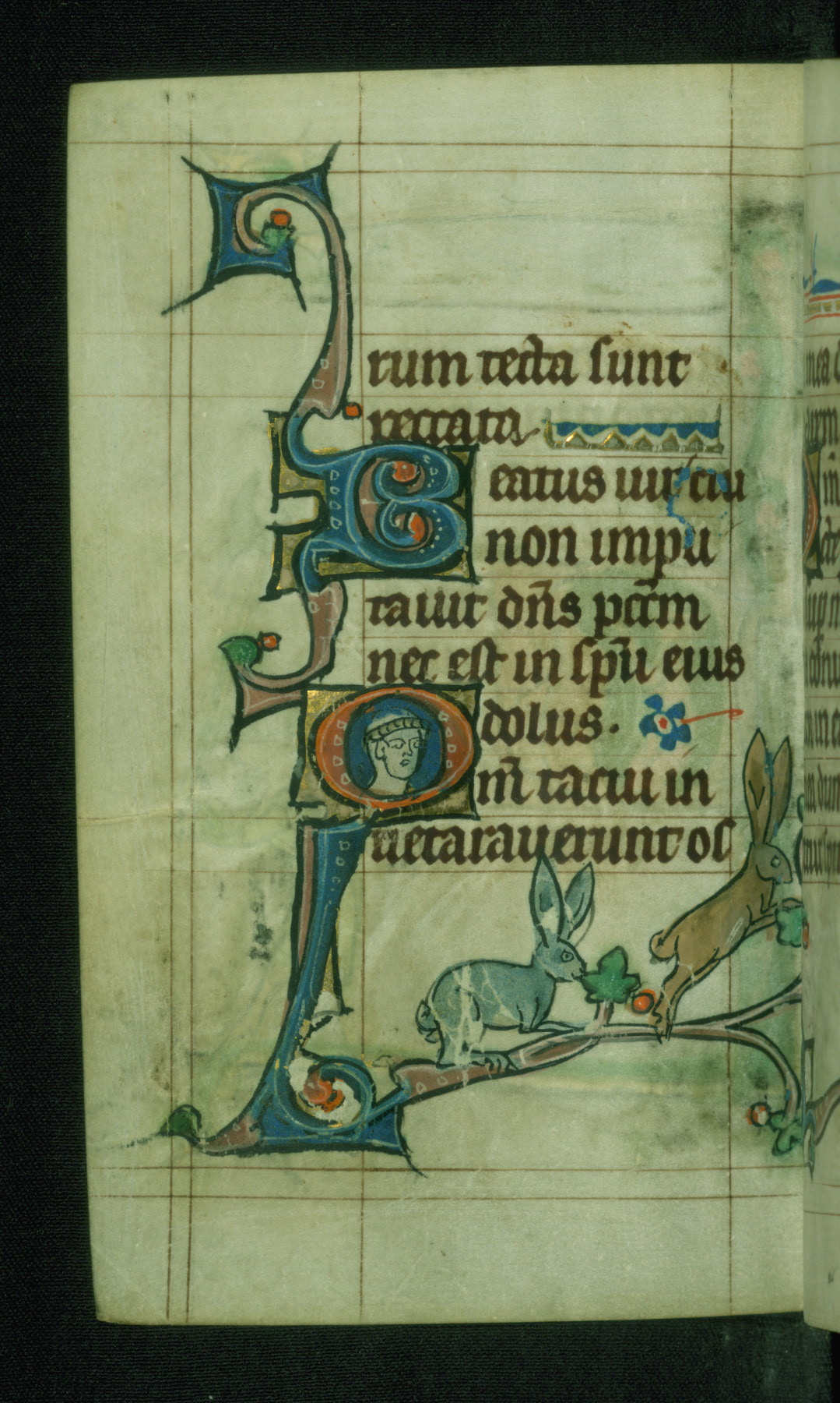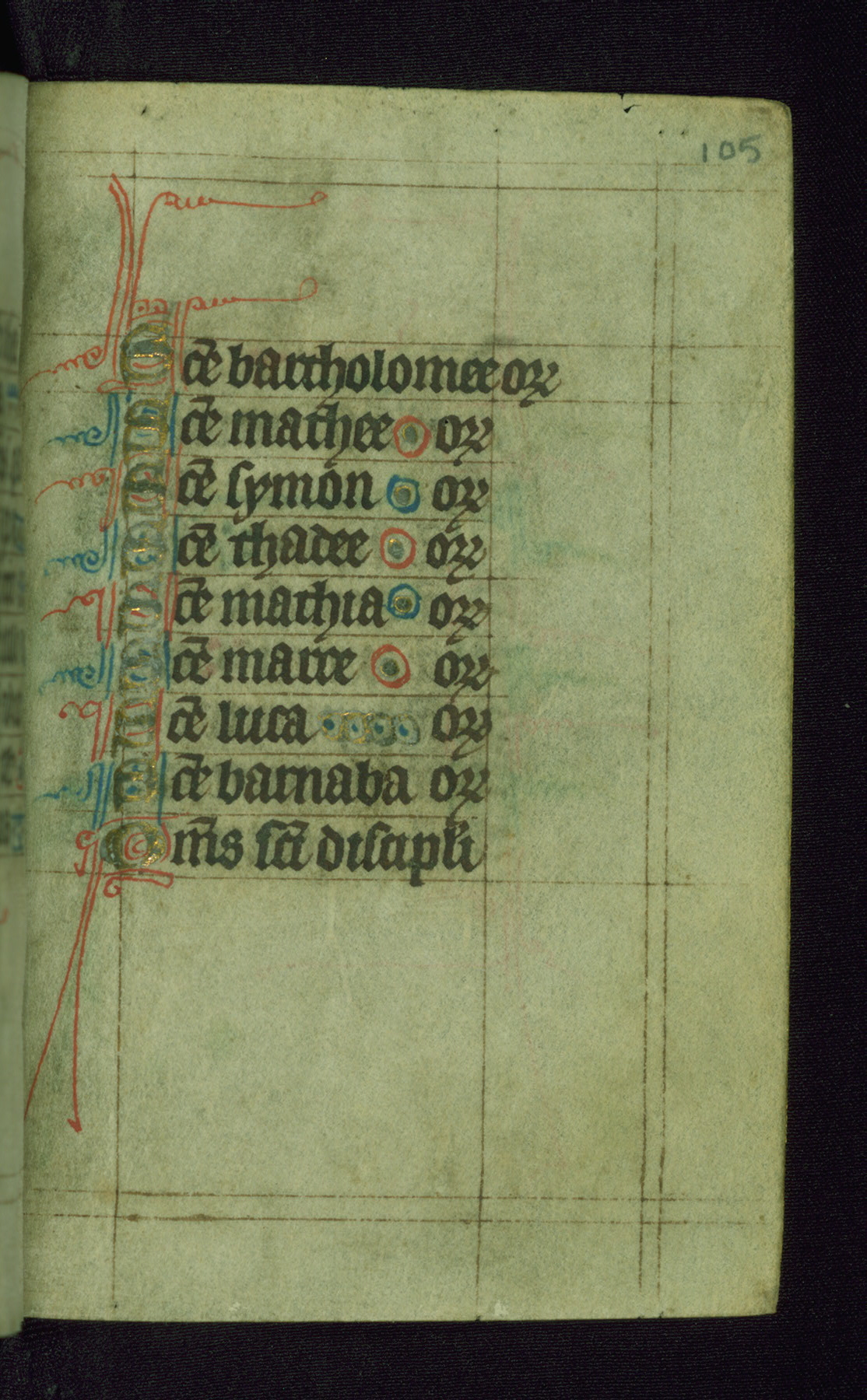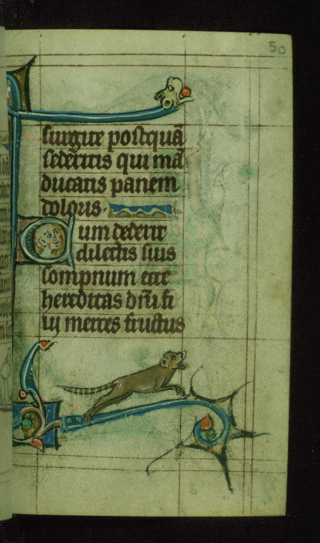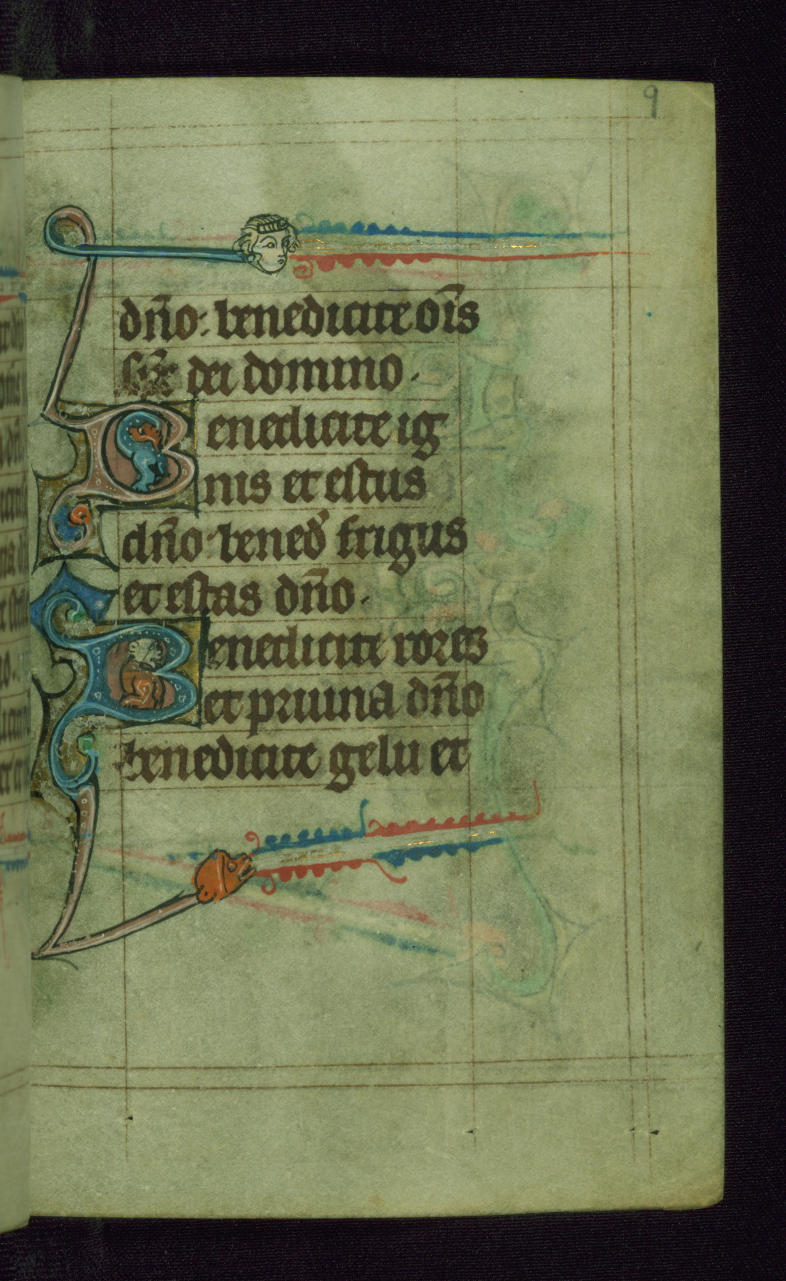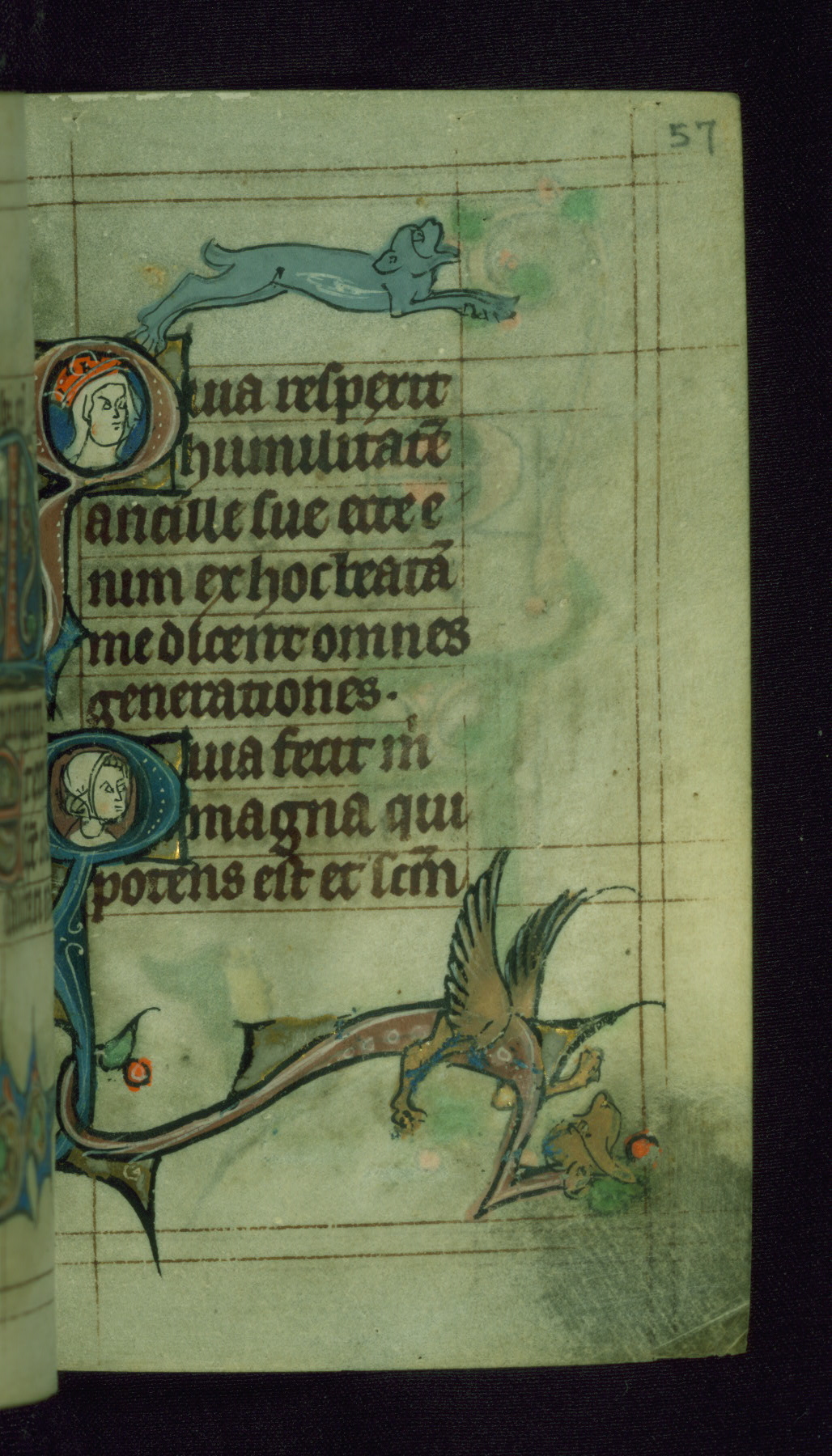 This fragmentary Book of Hours was created in Ghent ca. 1300 for the use of a woman with Dominican ties. Although quite a bit of text and imagery is missing, including the calendar and Office of the Dead, this tiny manuscript is lavishly decorated on nearly every page with marginal drolleries and grotesques, making it a rich and charming book even in its fragmentary state.