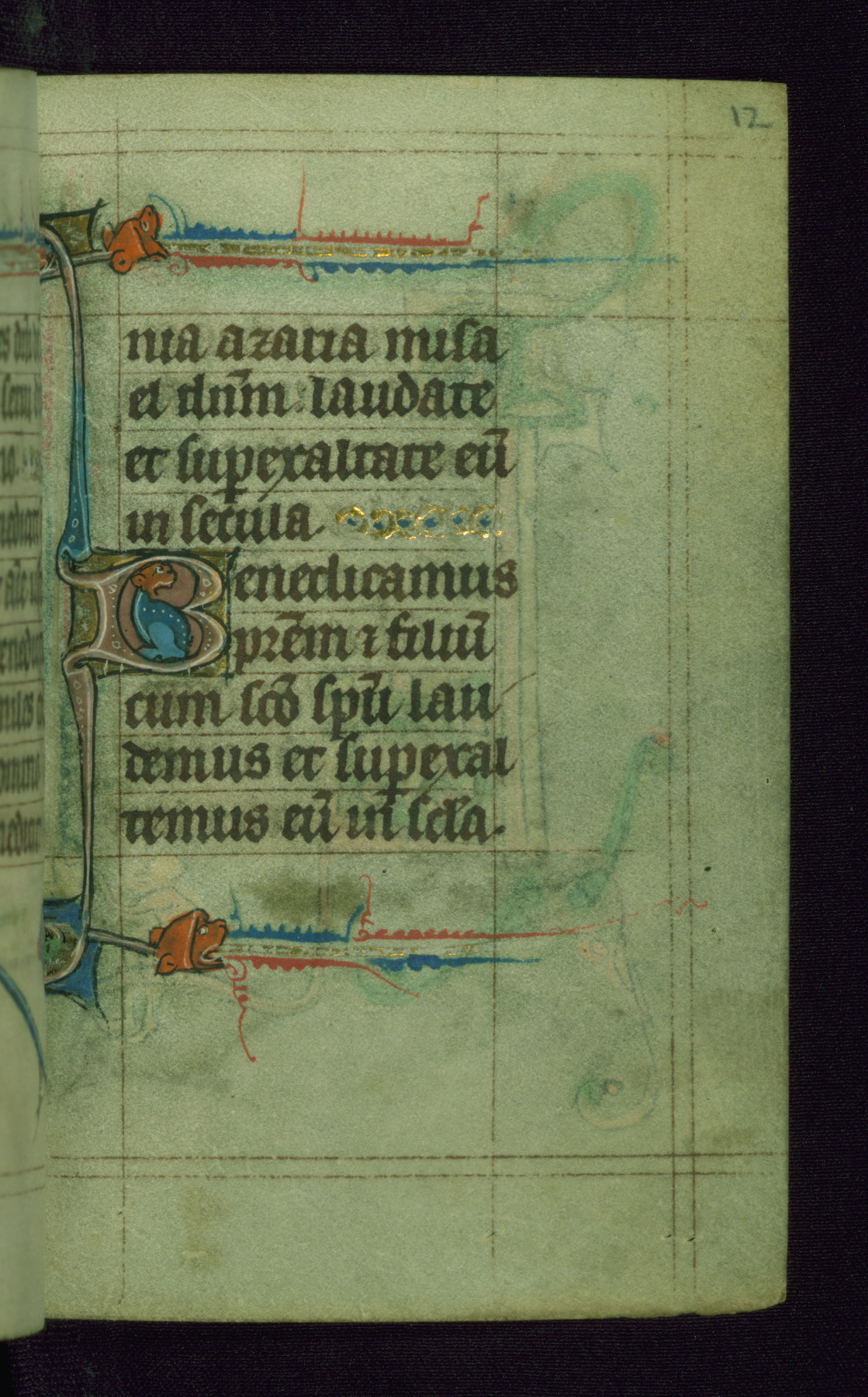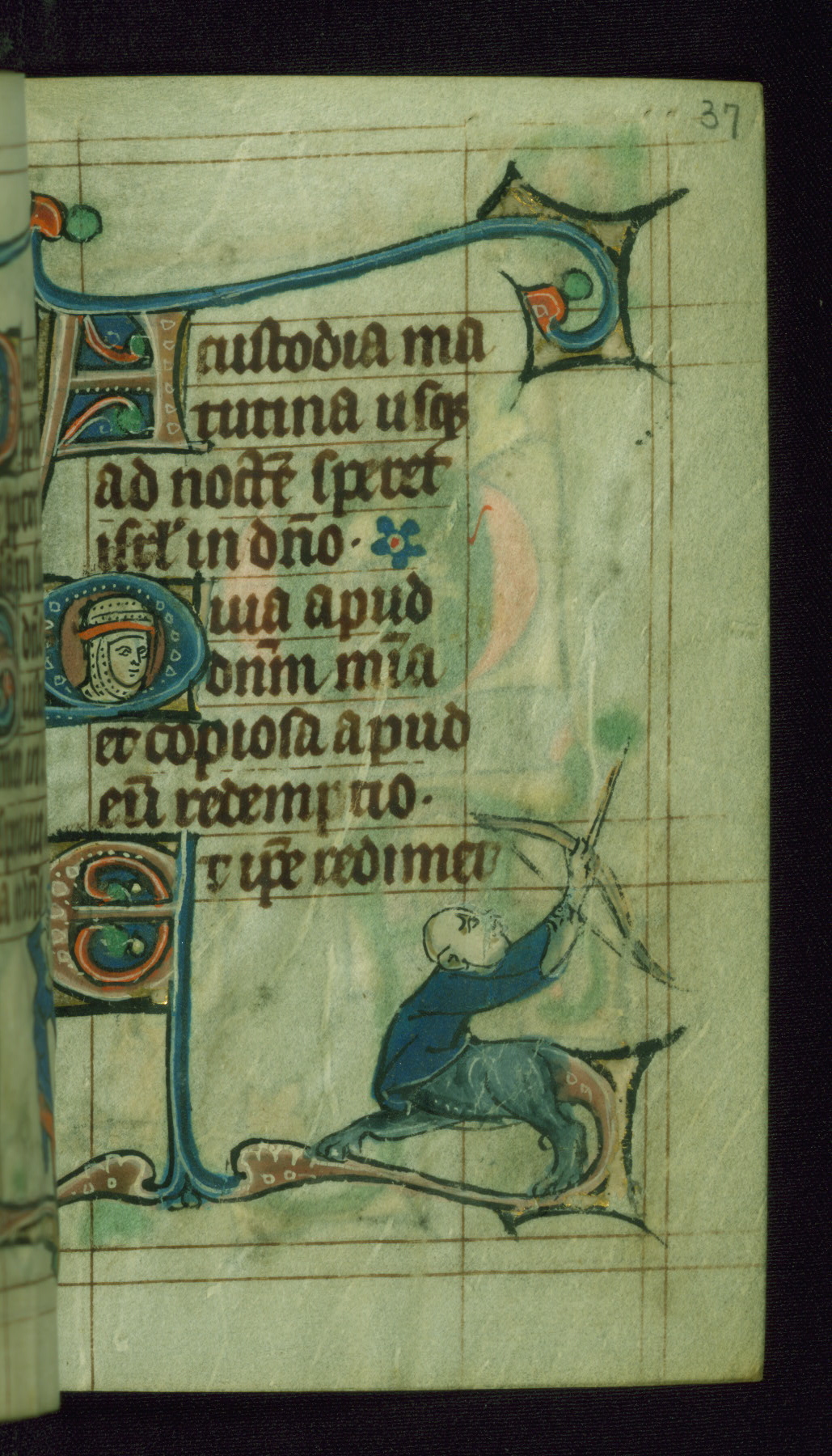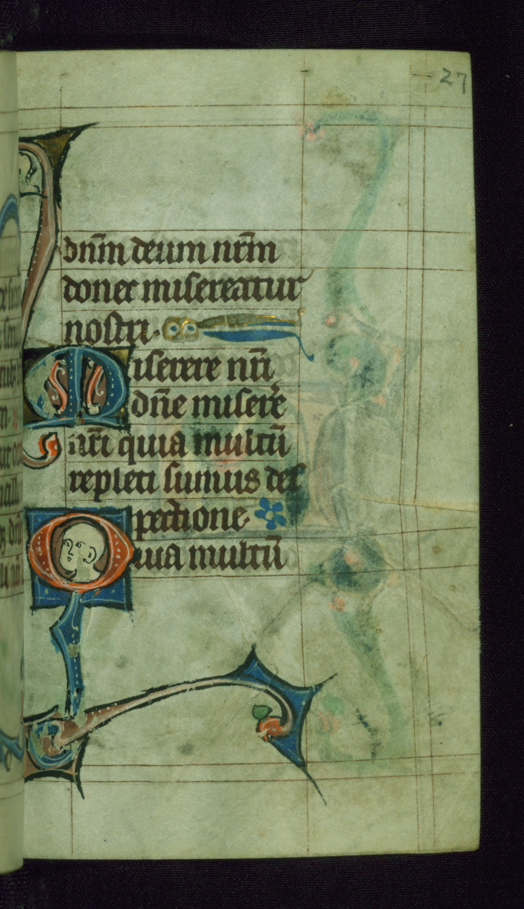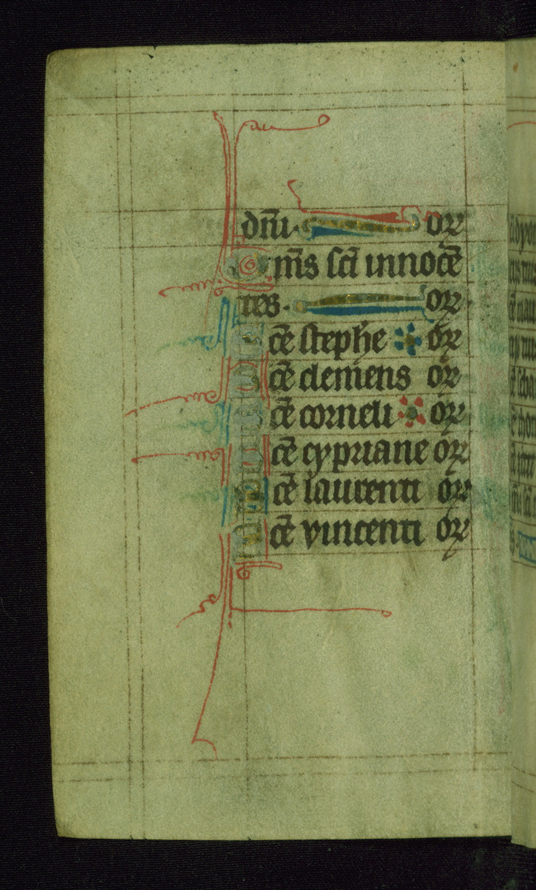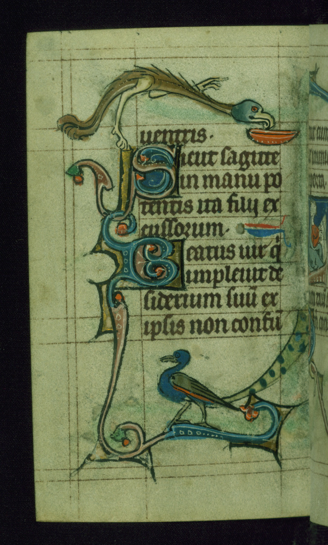 This fragmentary Book of Hours was created in Ghent ca. 1300 for the use of a woman with Dominican ties. Although quite a bit of text and imagery is missing, including the calendar and Office of the Dead, this tiny manuscript is lavishly decorated on nearly every page with marginal drolleries and grotesques, making it a rich and charming book even in its fragmentary state.
