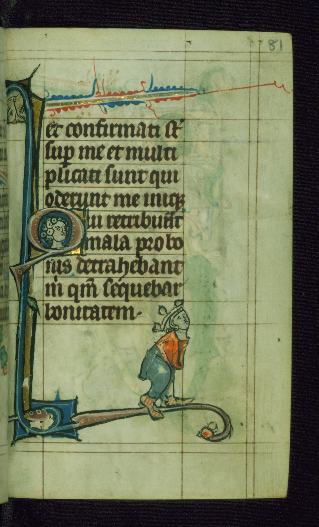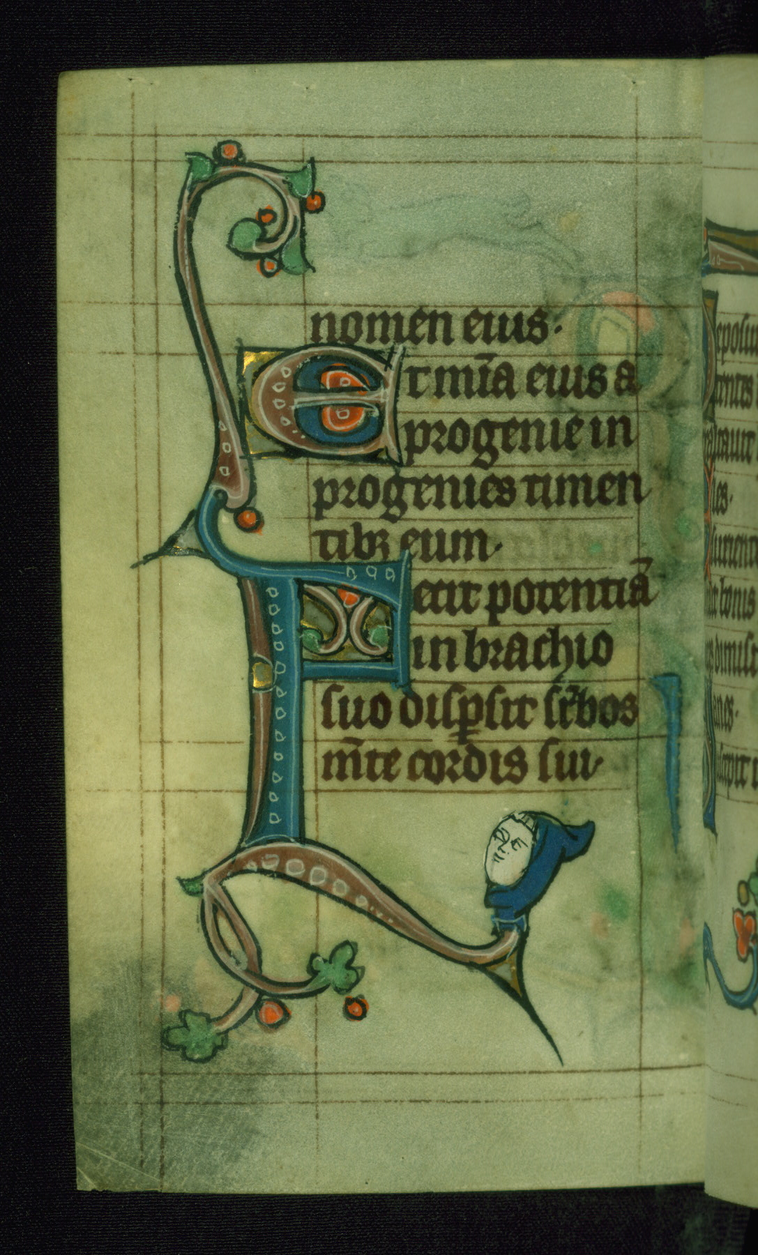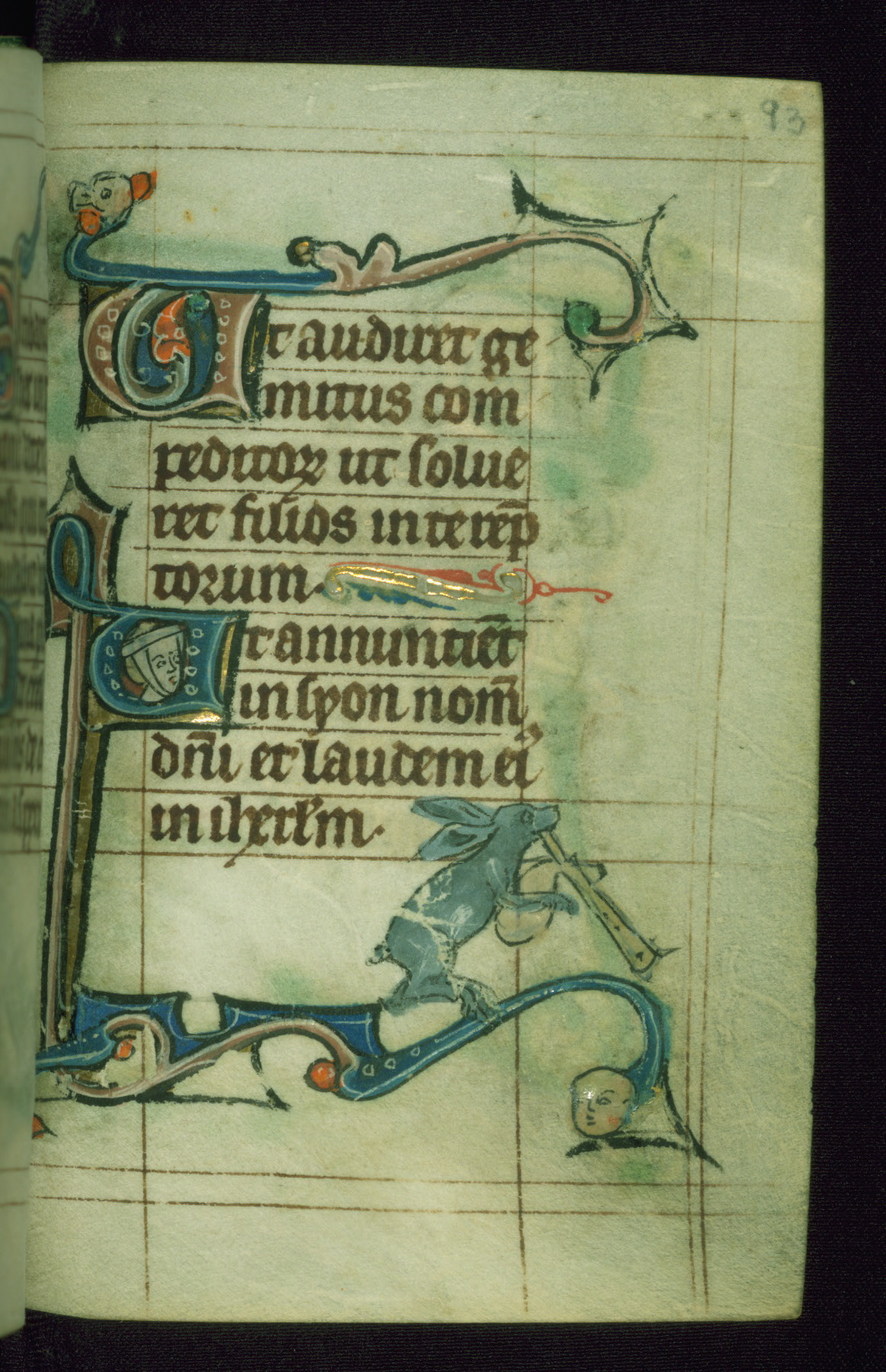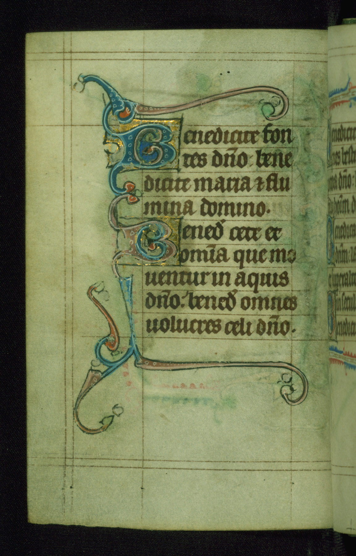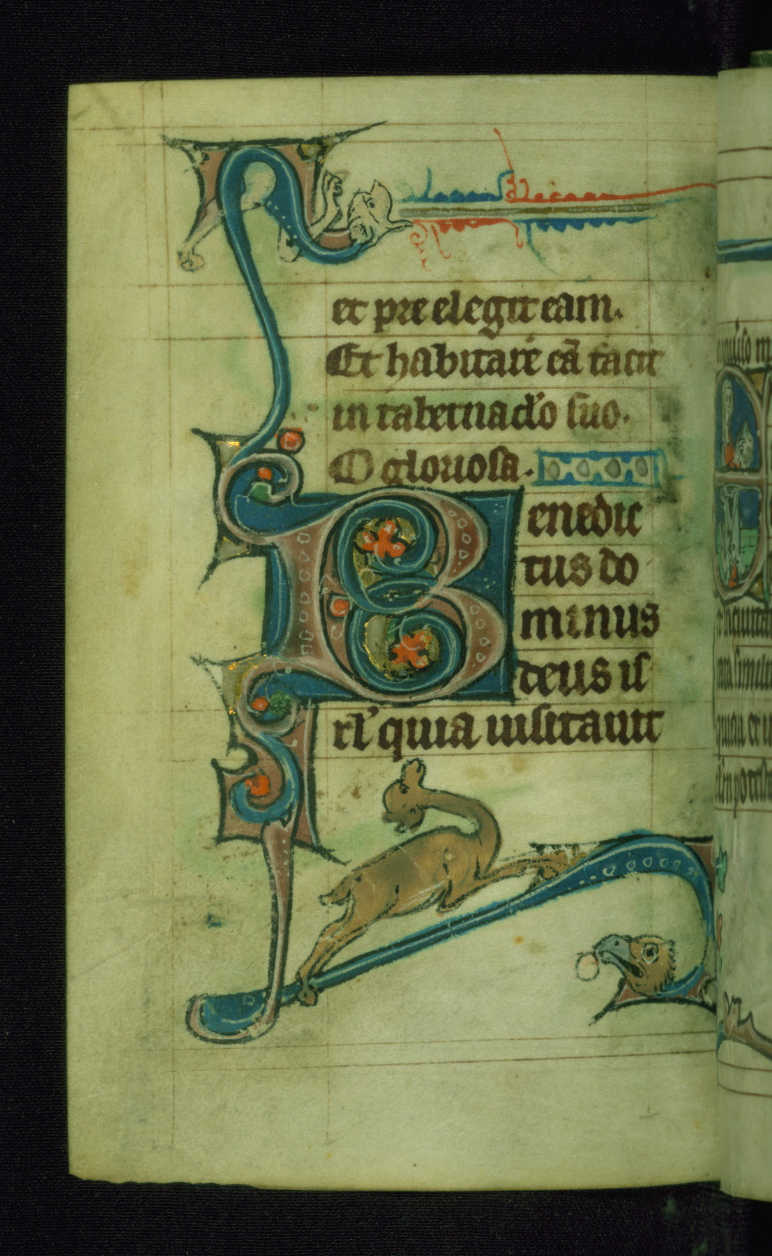This fragmentary Book of Hours was created in Ghent ca. 1300 for the use of a woman with Dominican ties. Although quite a bit of text and imagery is missing, including the calendar and Office of the Dead, this tiny manuscript is lavishly decorated on nearly every page with marginal drolleries and grotesques, making it a rich and charming book even in its fragmentary state.
