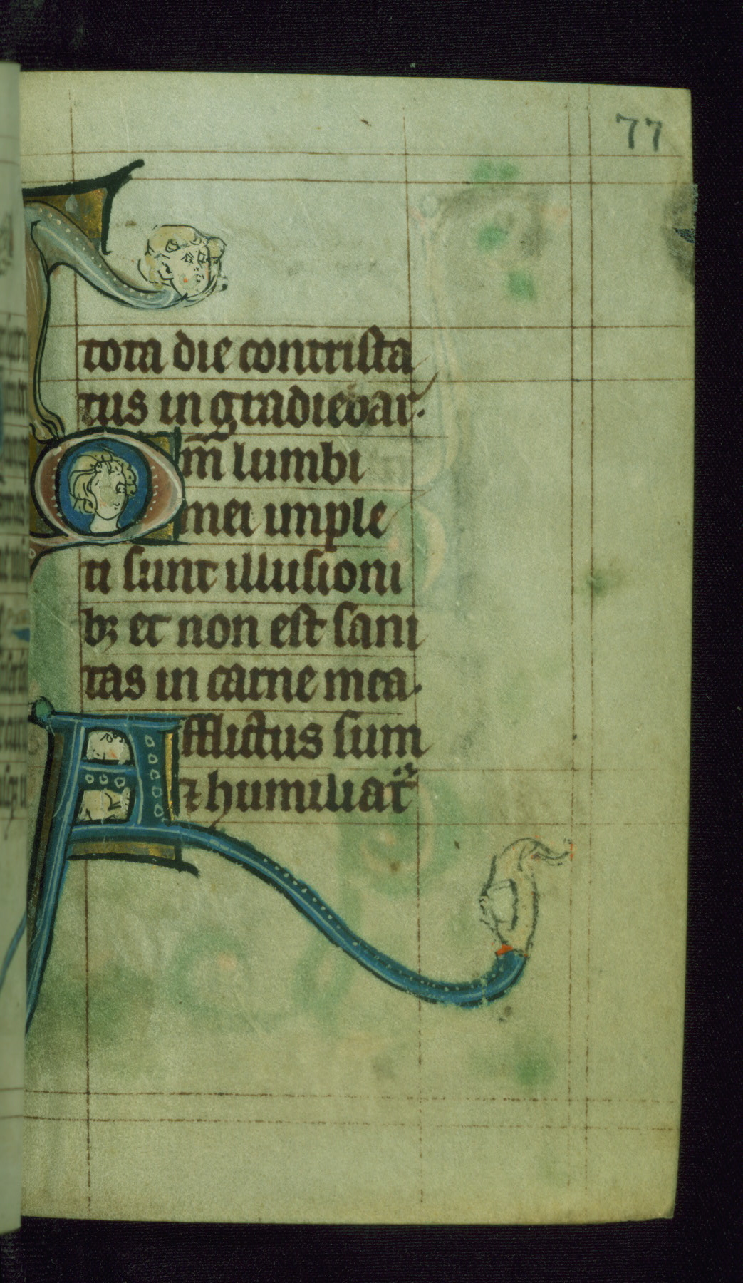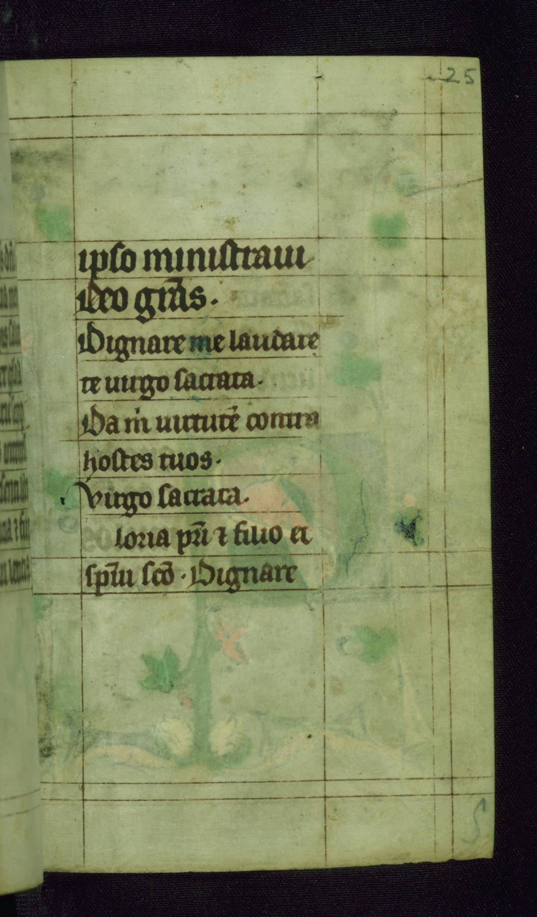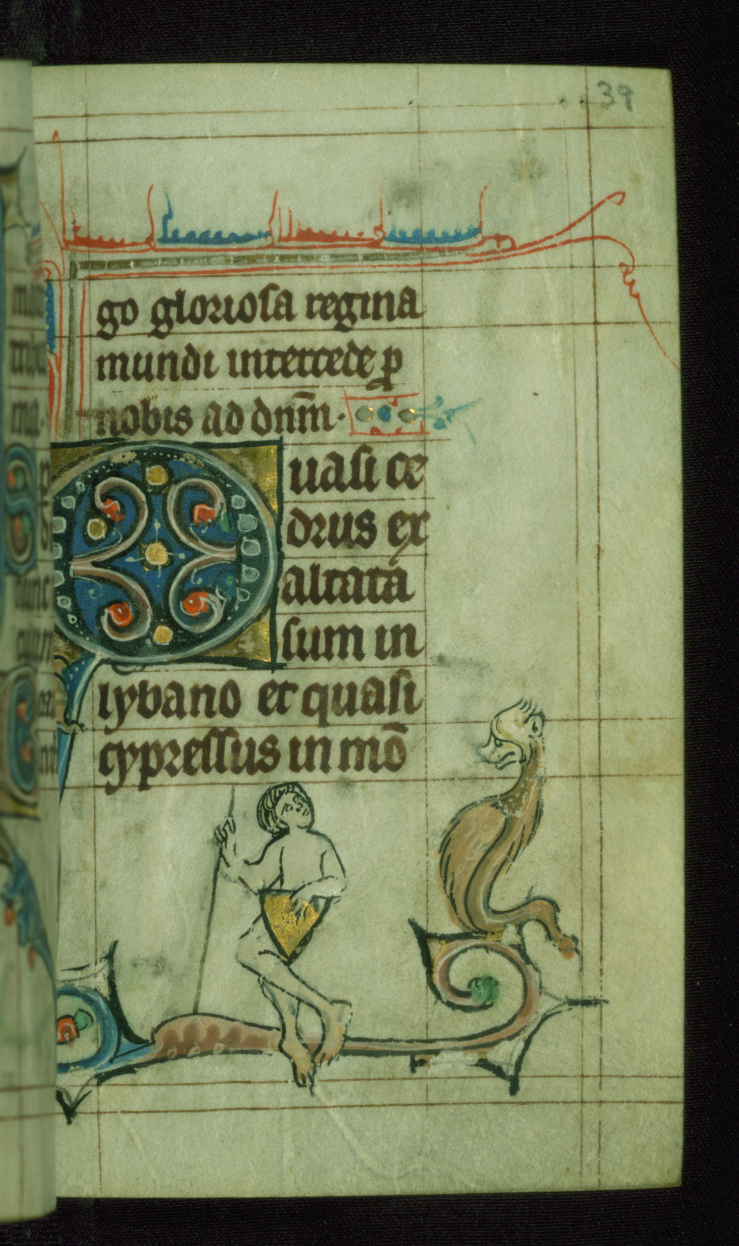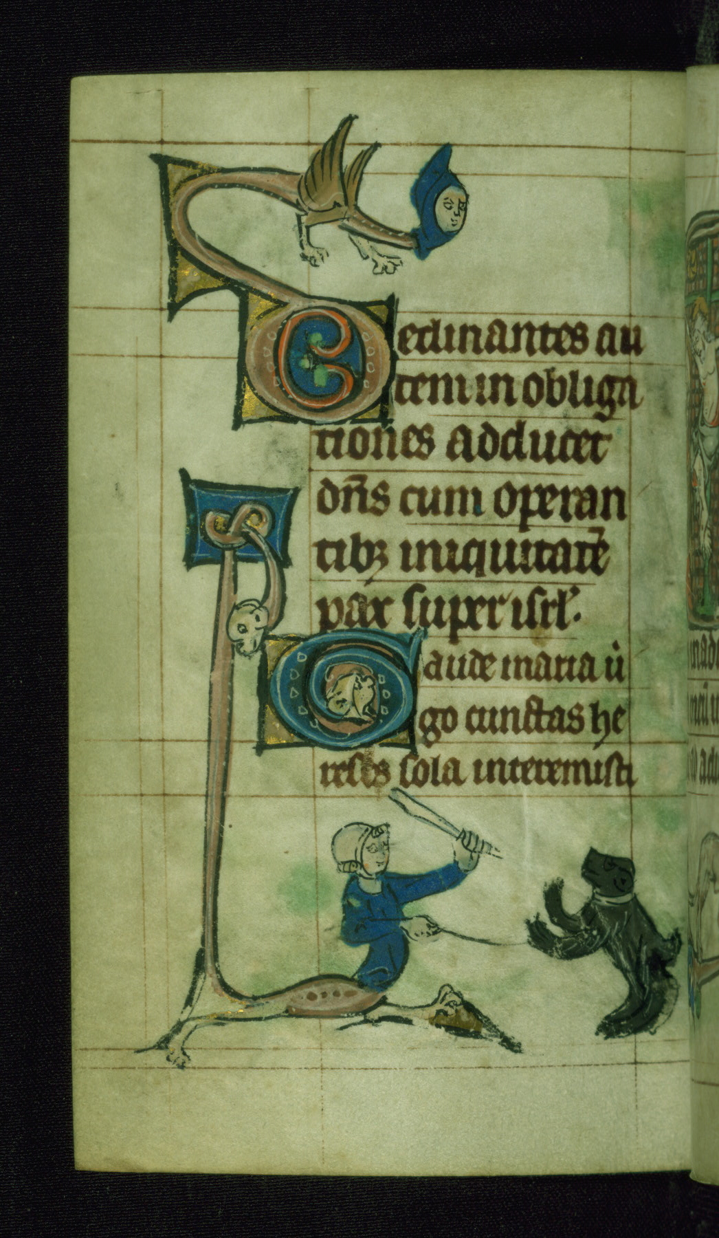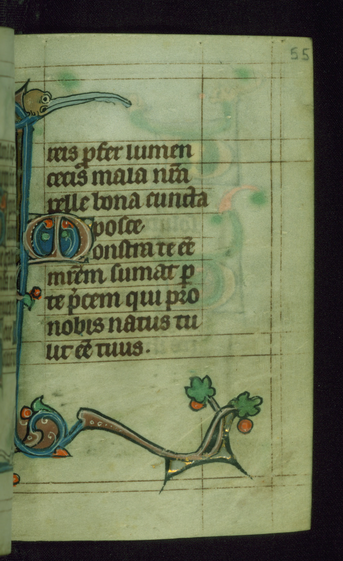 This fragmentary Book of Hours was created in Ghent ca. 1300 for the use of a woman with Dominican ties. Although quite a bit of text and imagery is missing, including the calendar and Office of the Dead, this tiny manuscript is lavishly decorated on nearly every page with marginal drolleries and grotesques, making it a rich and charming book even in its fragmentary state.