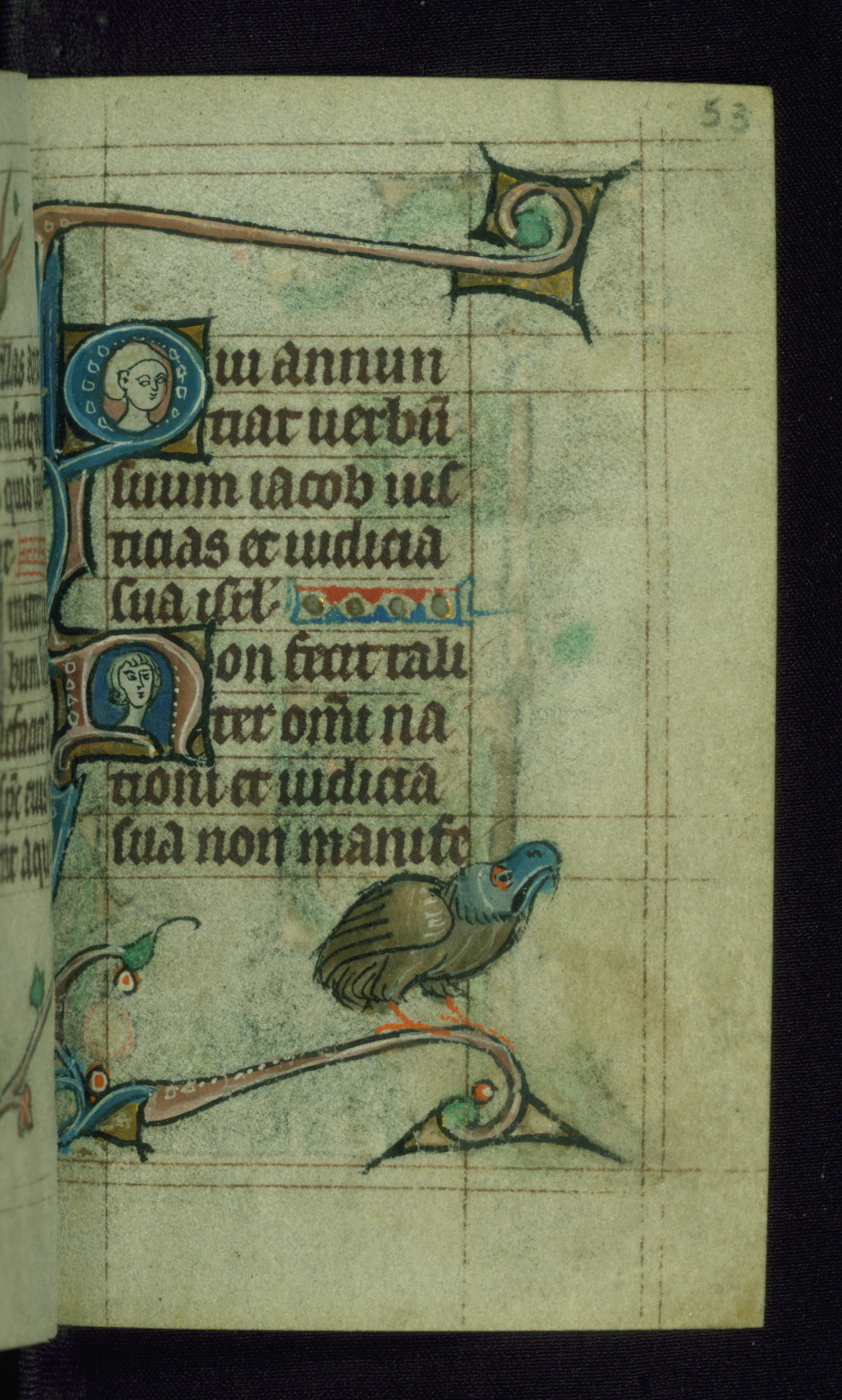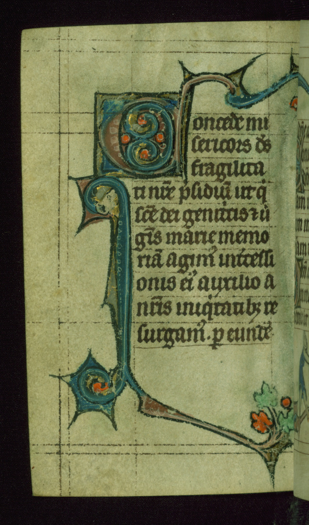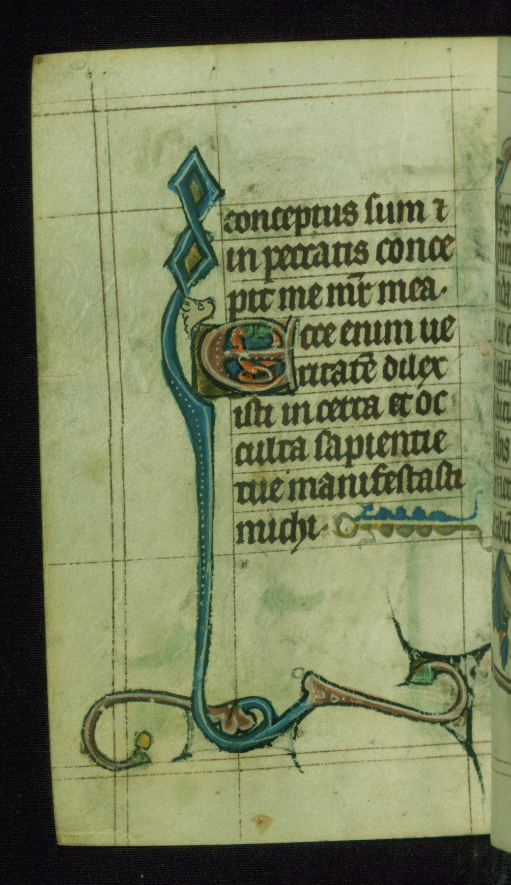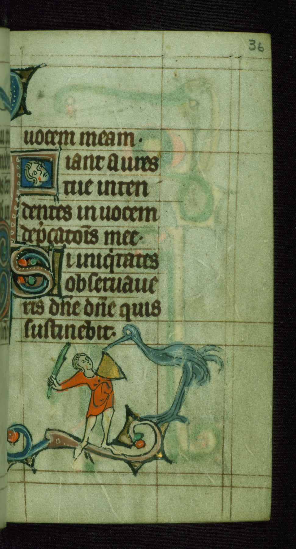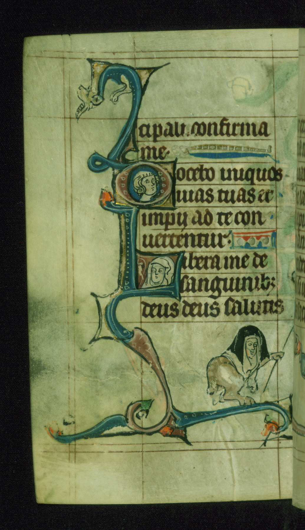This fragmentary Book of Hours was created in Ghent ca. 1300 for the use of a woman with Dominican ties. Although quite a bit of text and imagery is missing, including the calendar and Office of the Dead, this tiny manuscript is lavishly decorated on nearly every page with marginal drolleries and grotesques, making it a rich and charming book even in its fragmentary state.