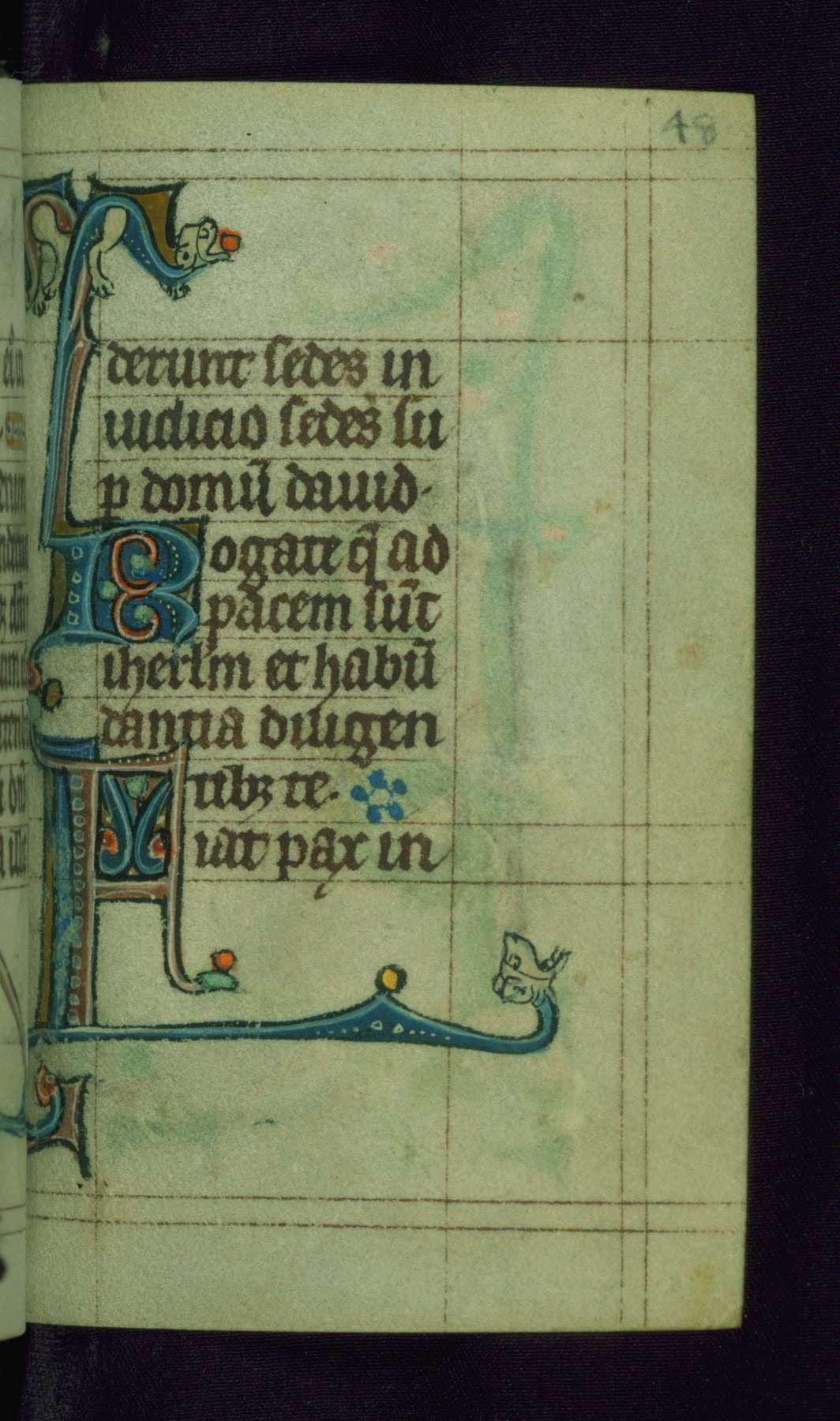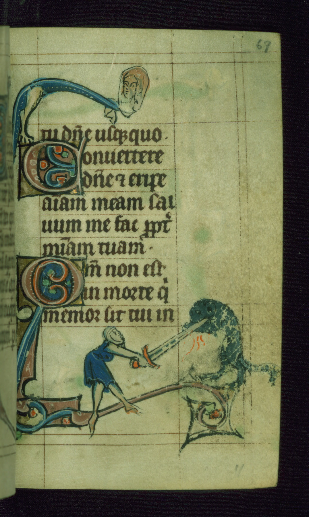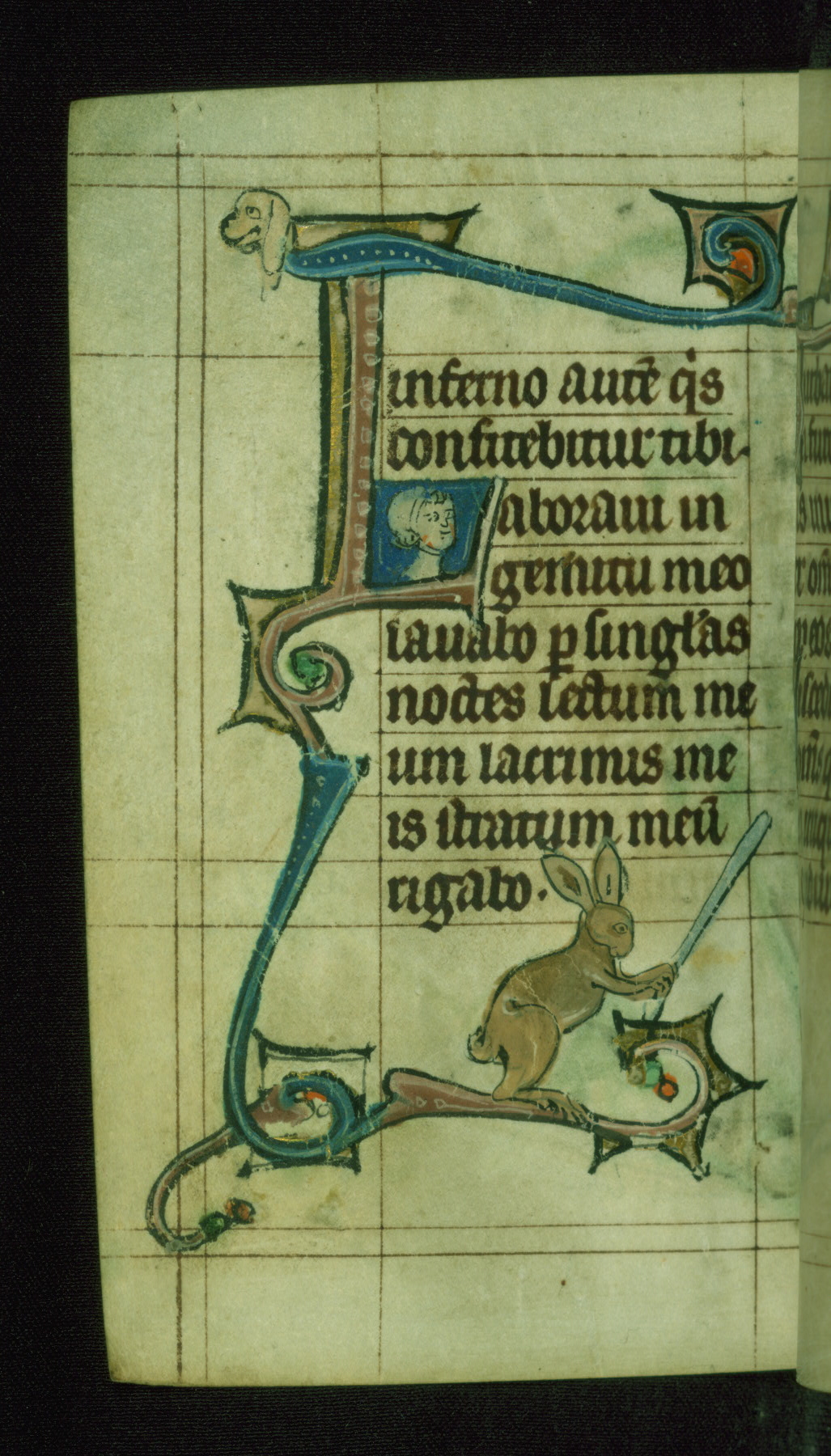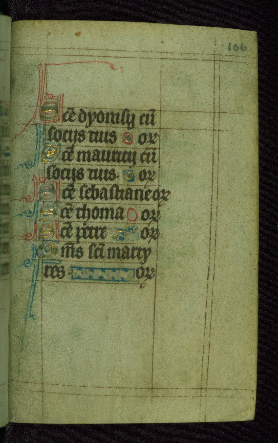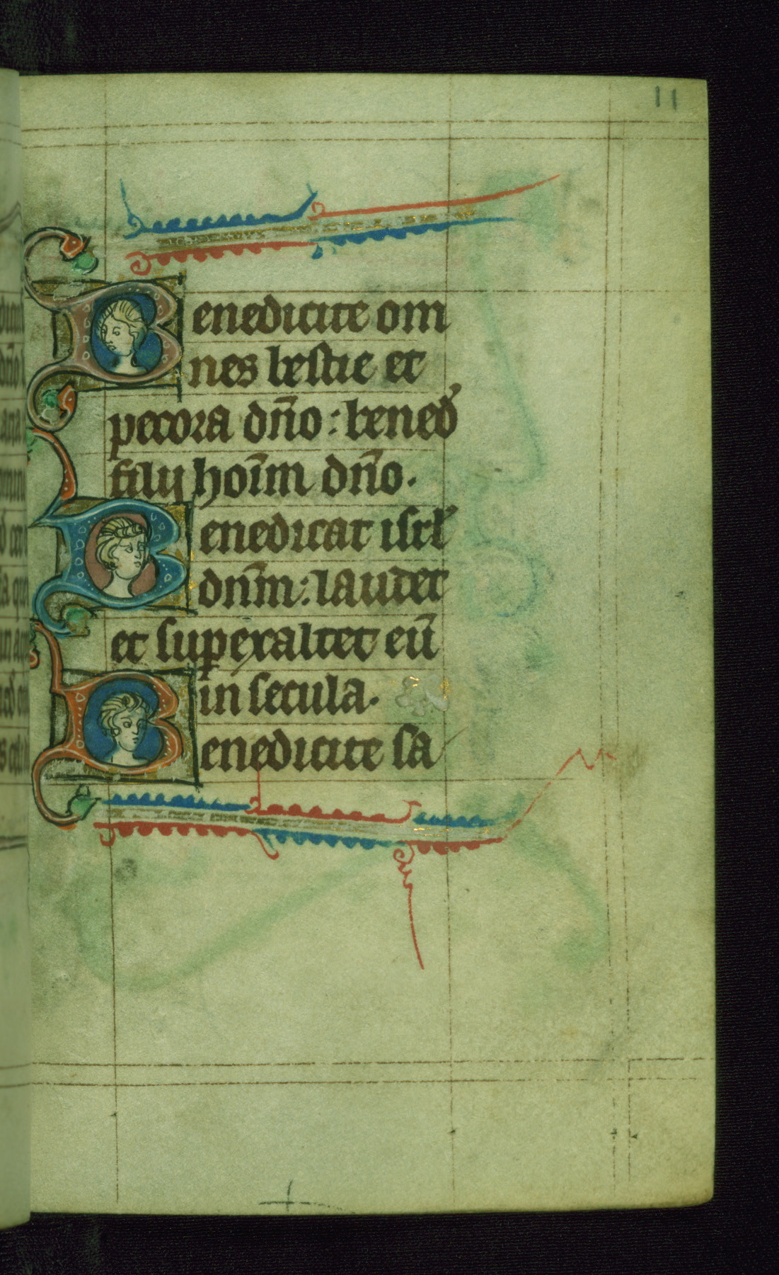 This fragmentary Book of Hours was created in Ghent ca. 1300 for the use of a woman with Dominican ties. Although quite a bit of text and imagery is missing, including the calendar and Office of the Dead, this tiny manuscript is lavishly decorated on nearly every page with marginal drolleries and grotesques, making it a rich and charming book even in its fragmentary state.